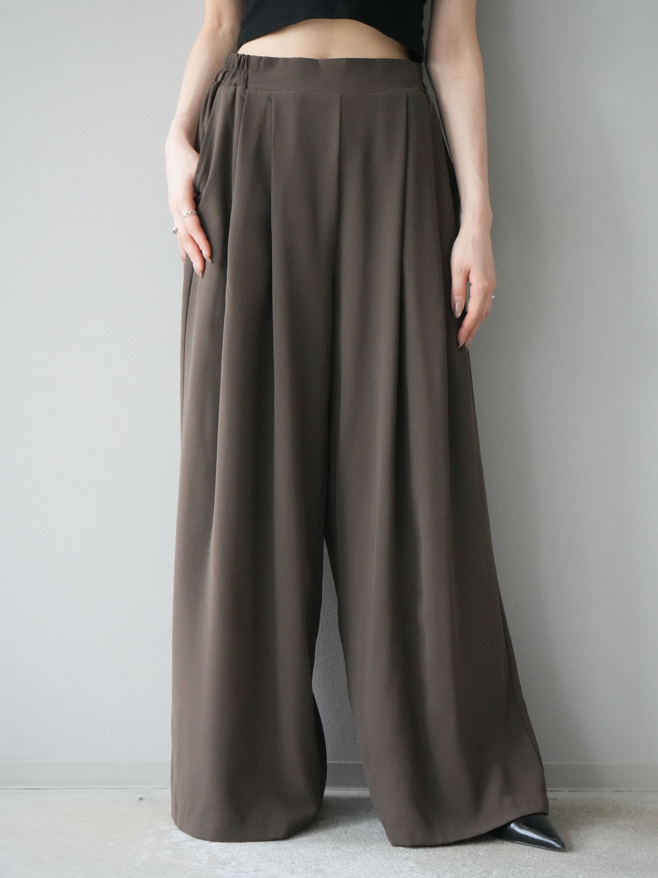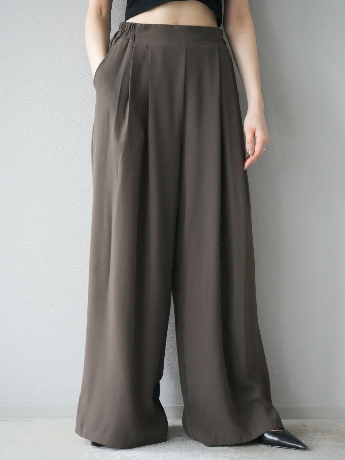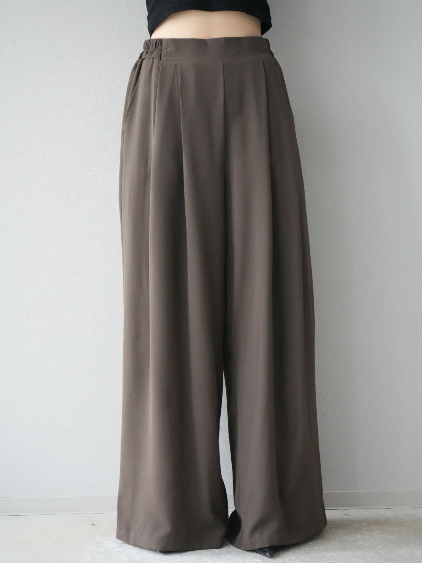 [予約]レーヨンライクタックワイドパンツ/モカ