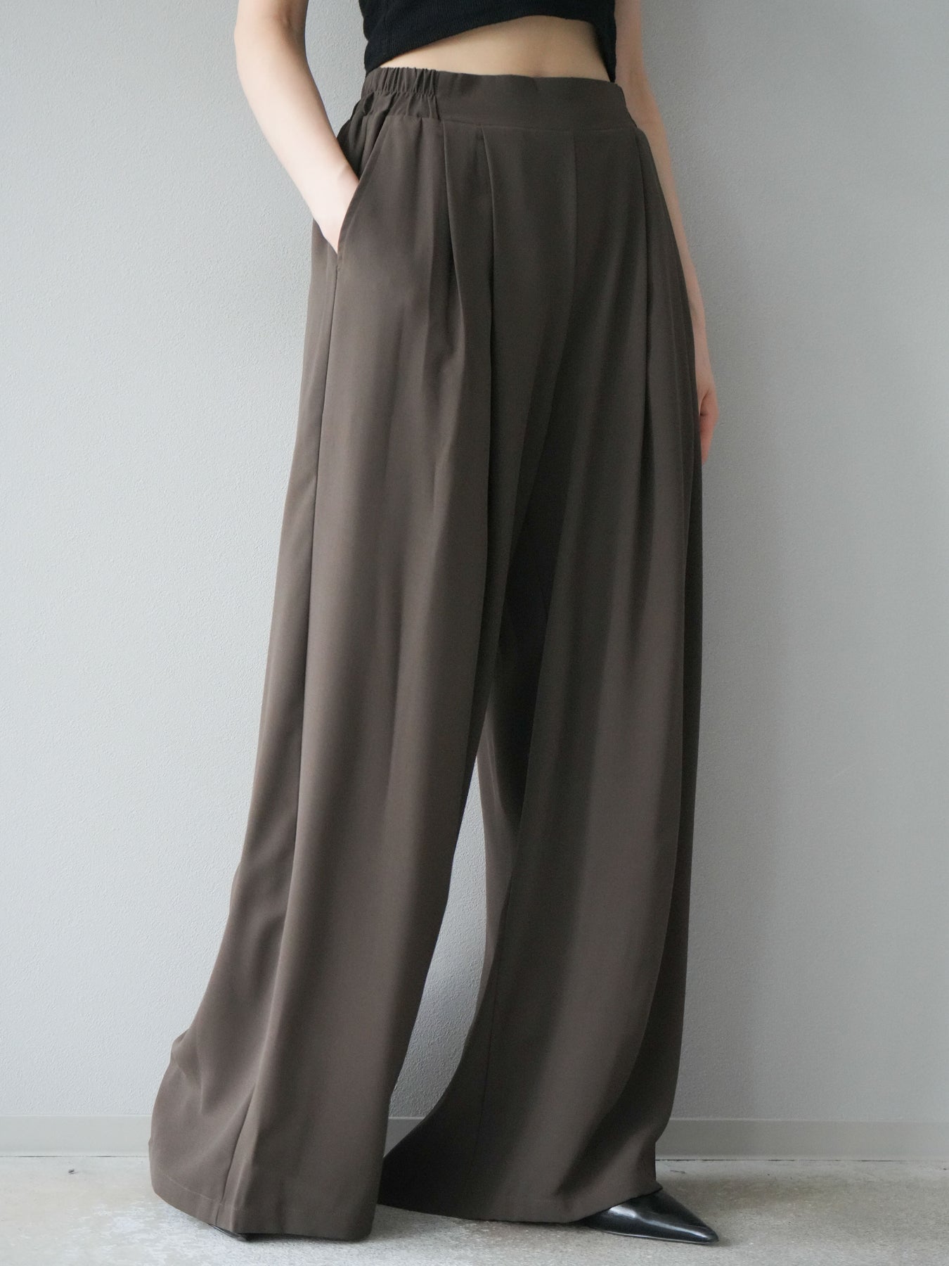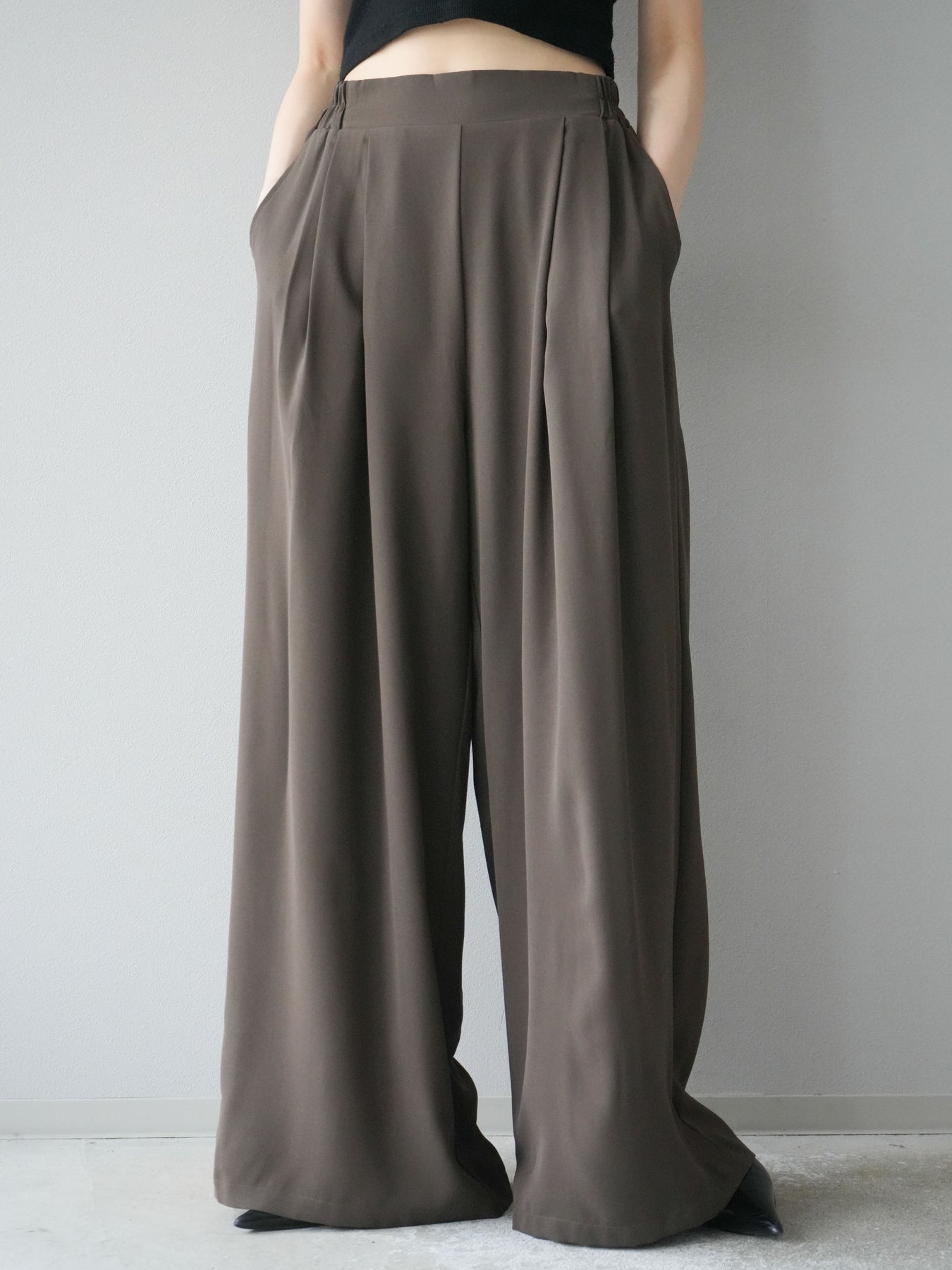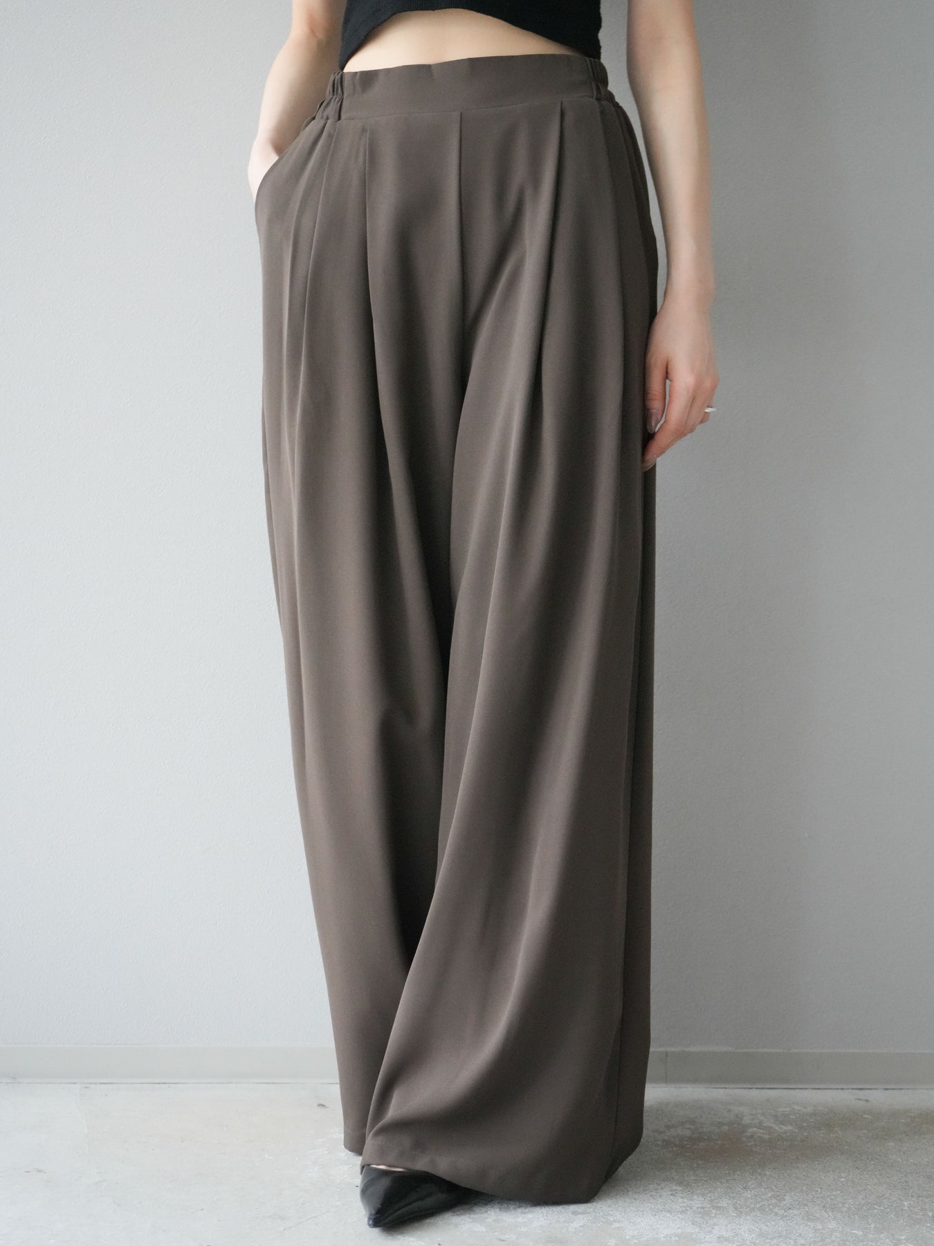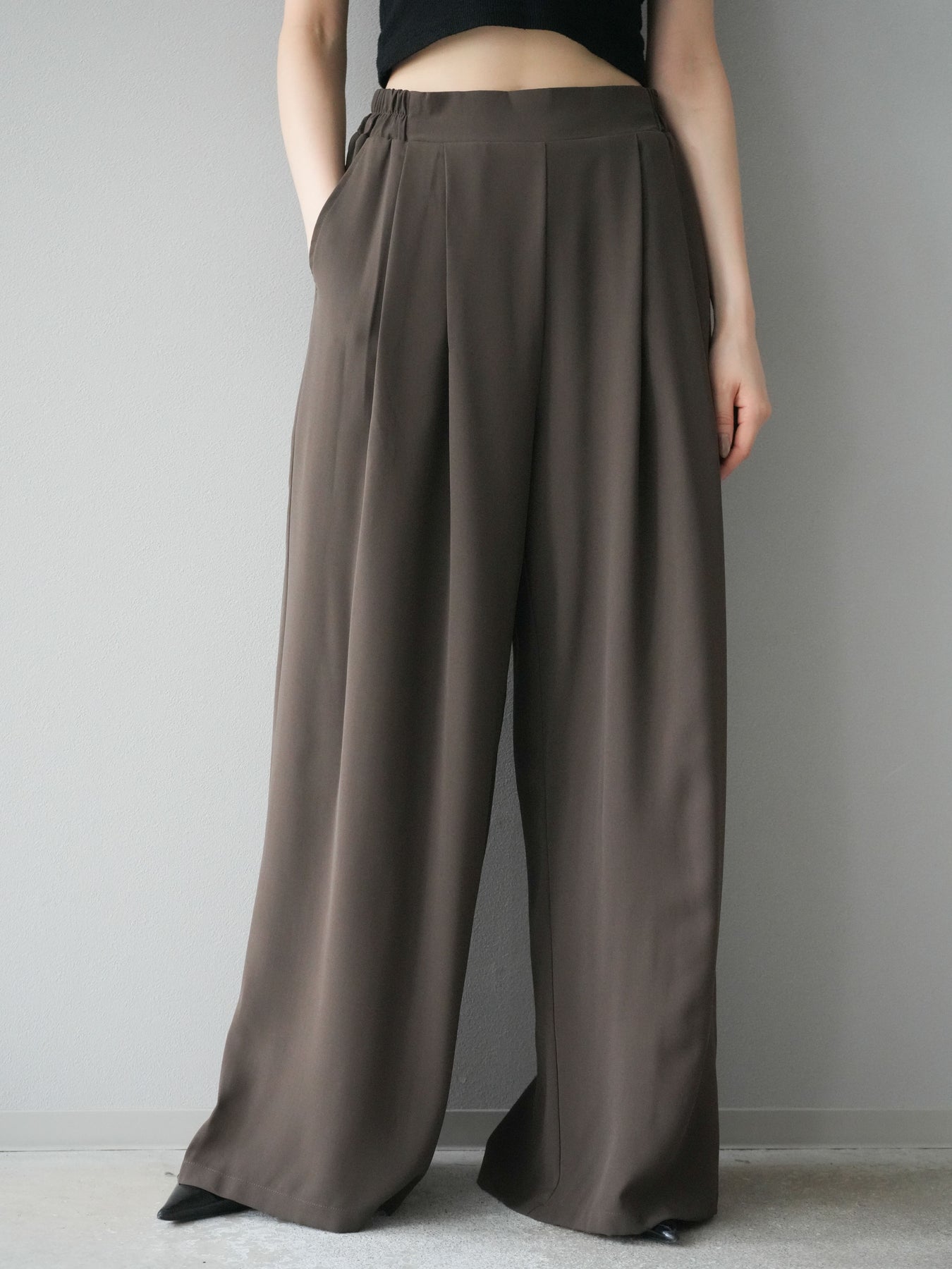 [予約]レーヨンライクタックワイドパンツ/モカ