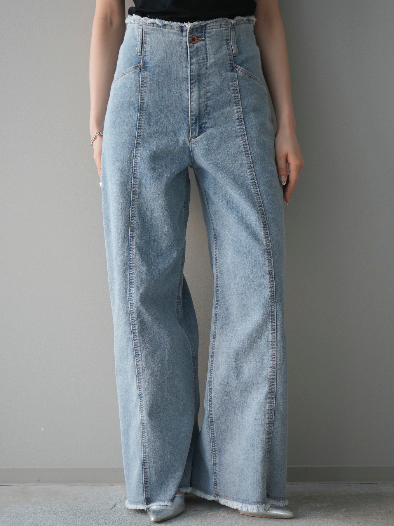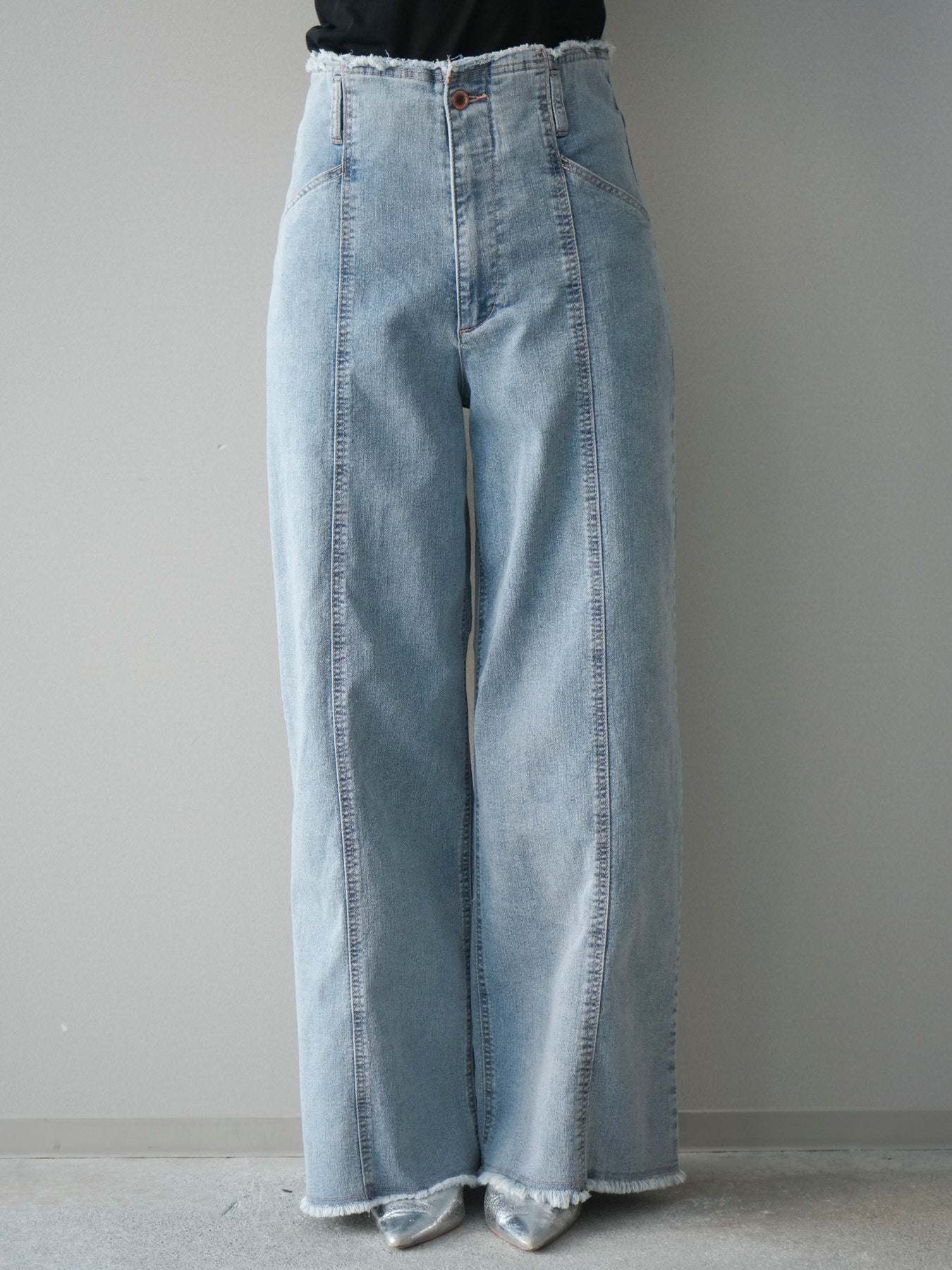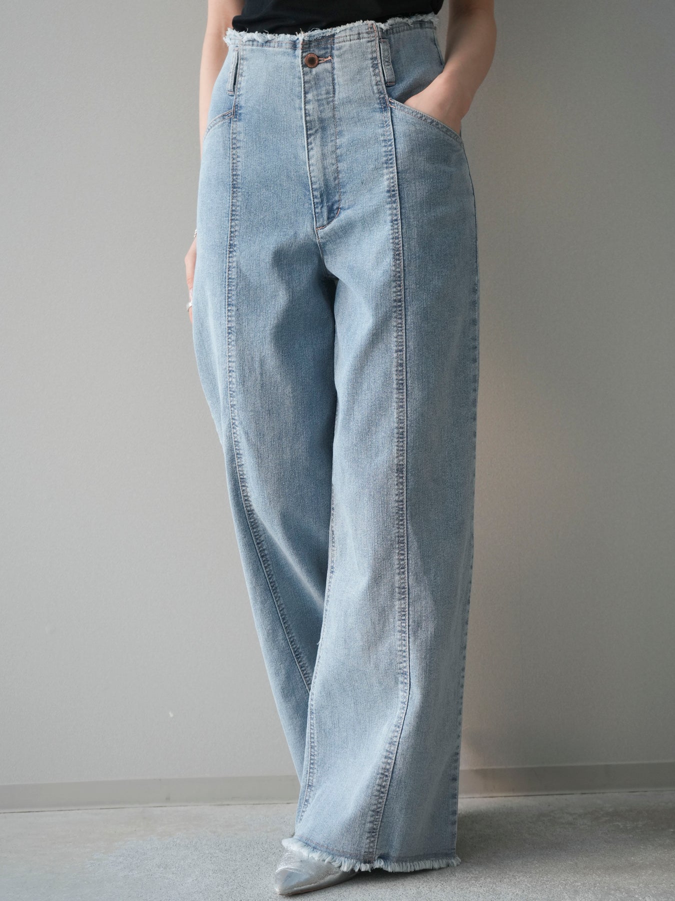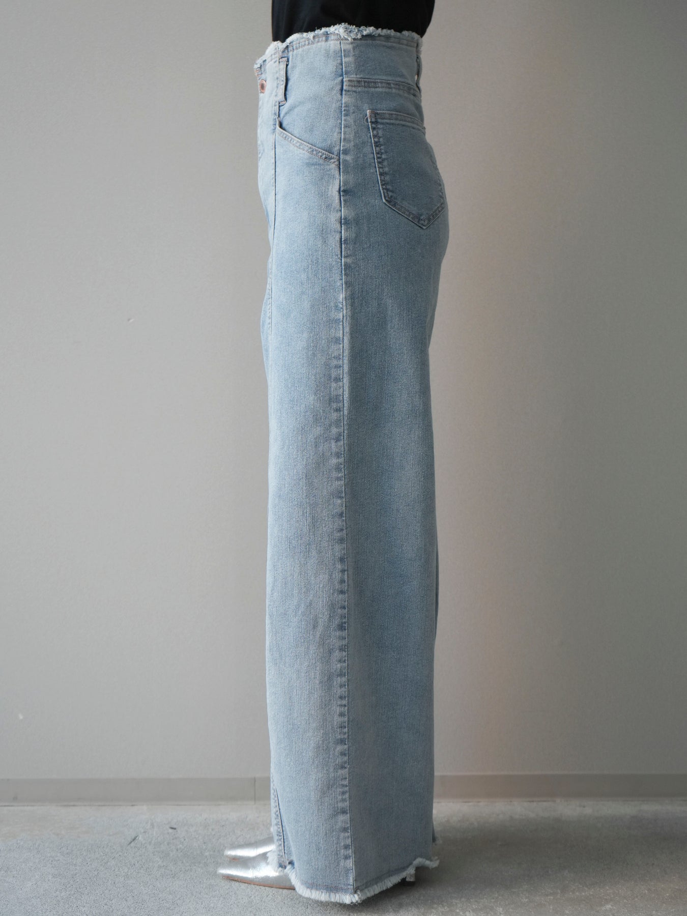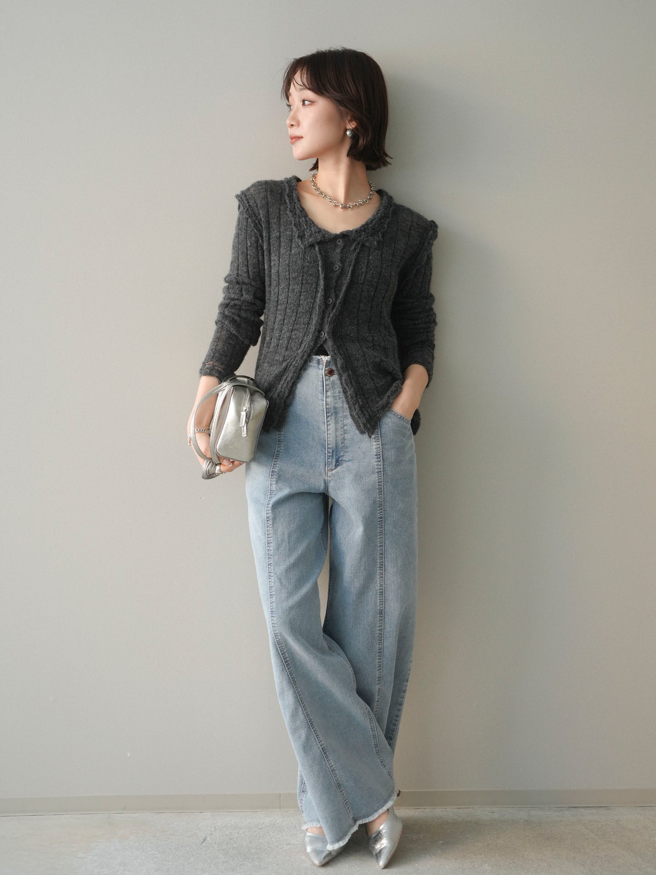 縦ラインを強調するセンターステッチが印象的なデニムパンツ。 まっすぐ落ちるシルエットが脚のラインをすっきりと見せ、程よい存在感をプラスします。 裾はカットオフ仕様で、ラフさの中に抜け感をプラス。 ストレッチ性のある素材感で動きやすく、長時間の着用でもストレスを感じにくいのもポイントです。 トップスを選ばず合わせやすく、シンプルなスタイリングでも自然とバランスが整う一本。 デイリーに取り入れやすく、コーディネートの軸として活躍します。 ※ボトムス、キャミソール(インナー)以外の商品は一律でインナーは付属していません。