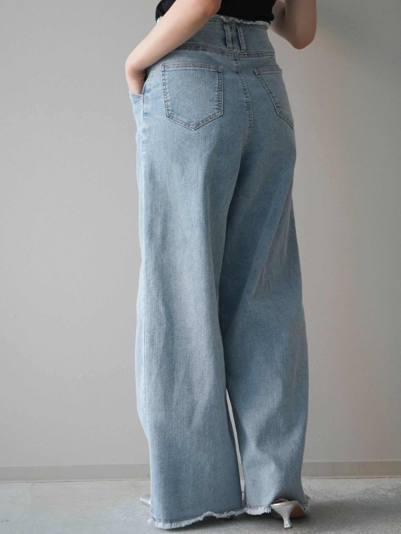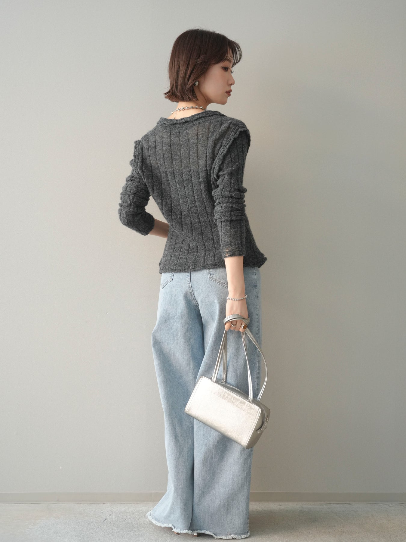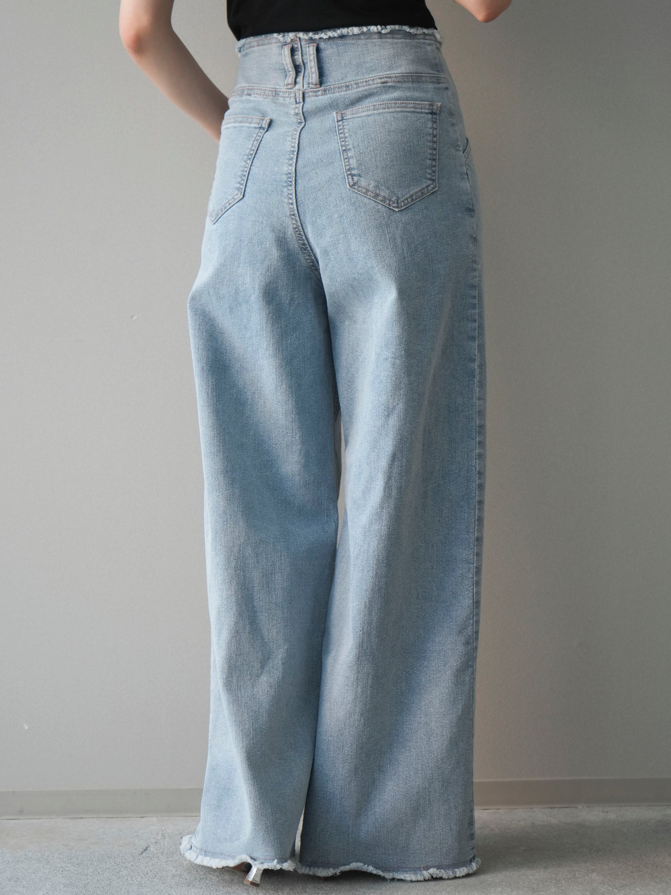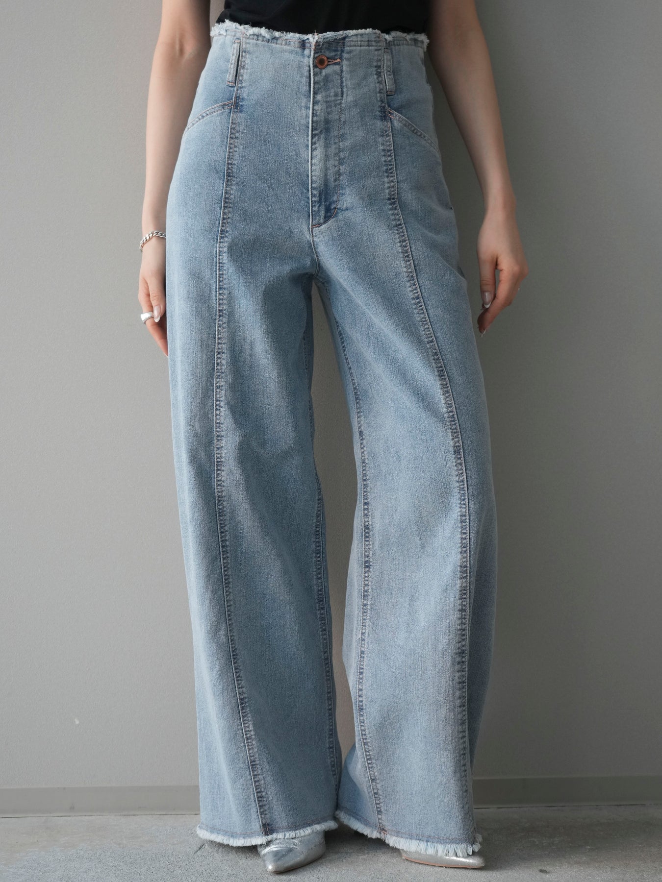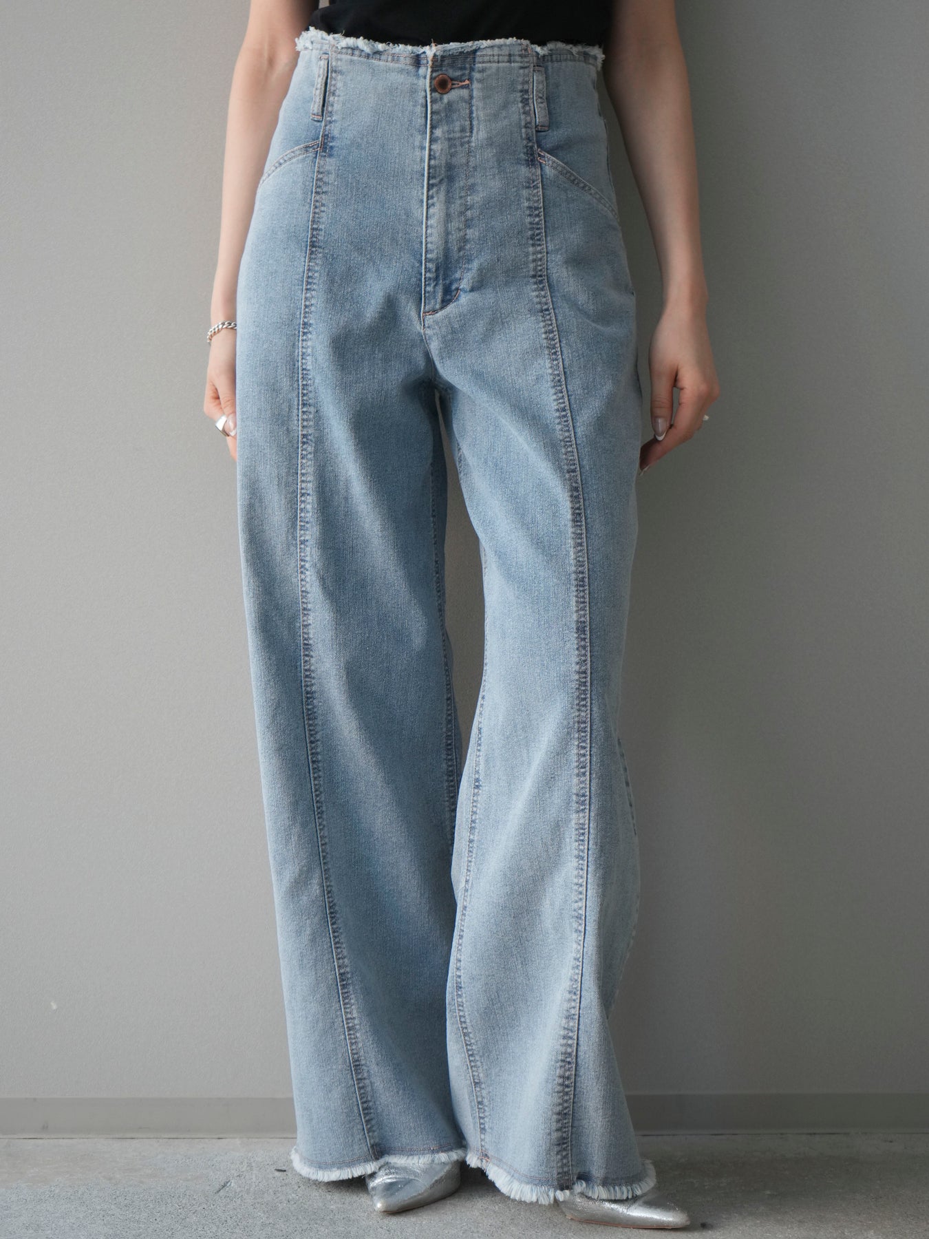 縦ラインを強調するセンターステッチが印象的なデニムパンツ。 まっすぐ落ちるシルエットが脚のラインをすっきりと見せ、程よい存在感をプラスします。 裾はカットオフ仕様で、ラフさの中に抜け感をプラス。 ストレッチ性のある素材感で動きやすく、長時間の着用でもストレスを感じにくいのもポイントです。 トップスを選ばず合わせやすく、シンプルなスタイリングでも自然とバランスが整う一本。 デイリーに取り入れやすく、コーディネートの軸として活躍します。 ※ボトムス、キャミソール(インナー)以外の商品は一律でインナーは付属していません。