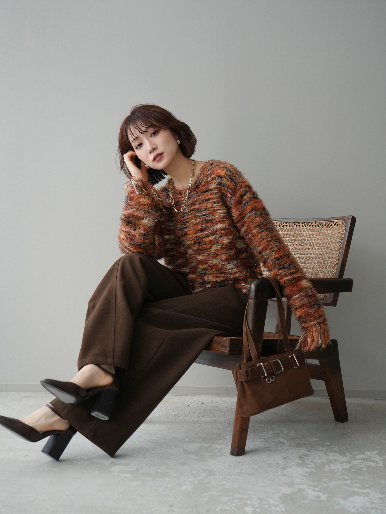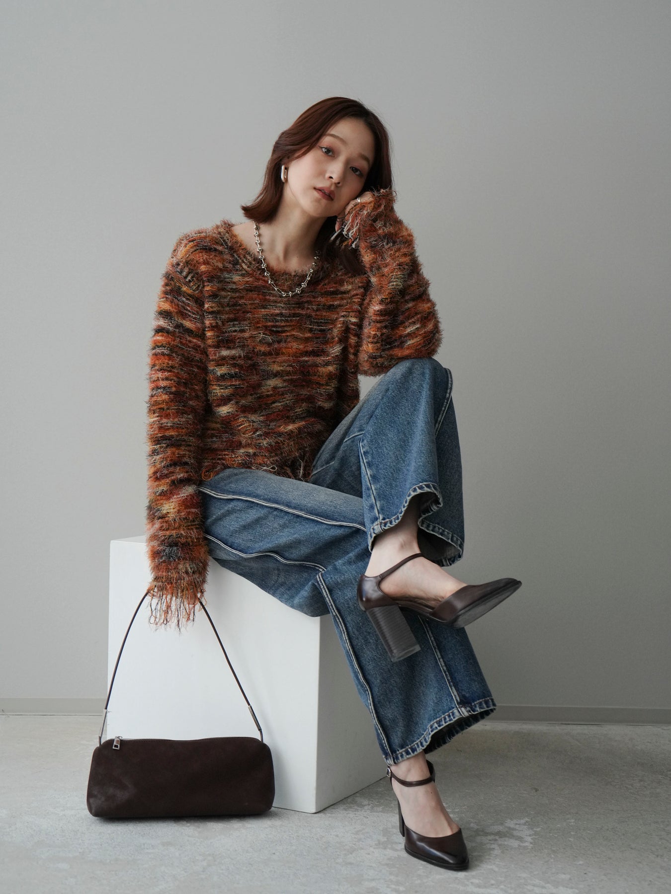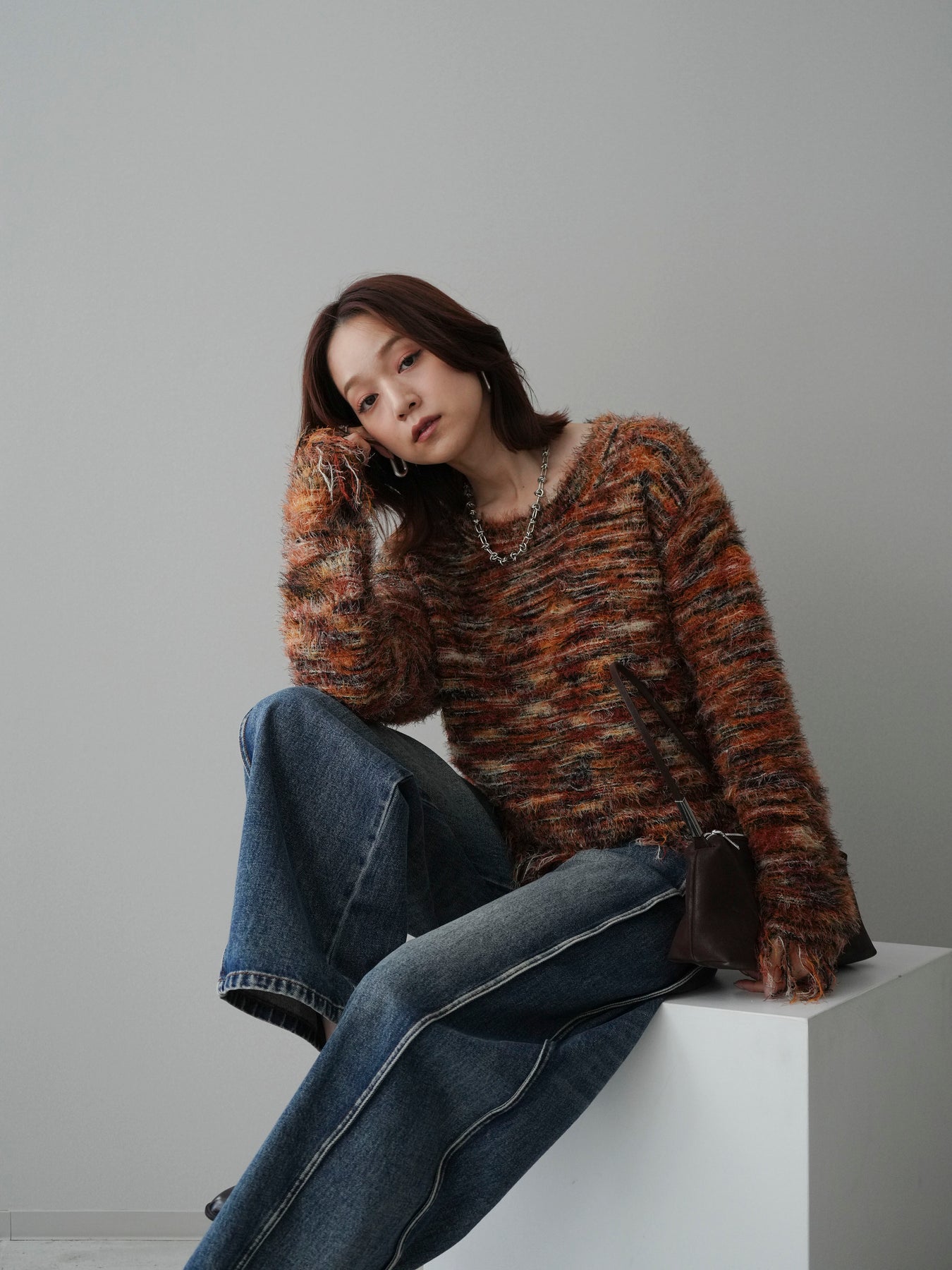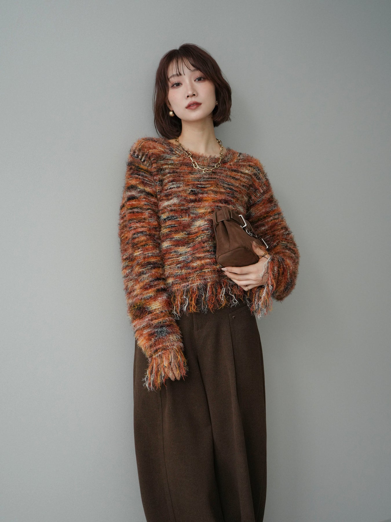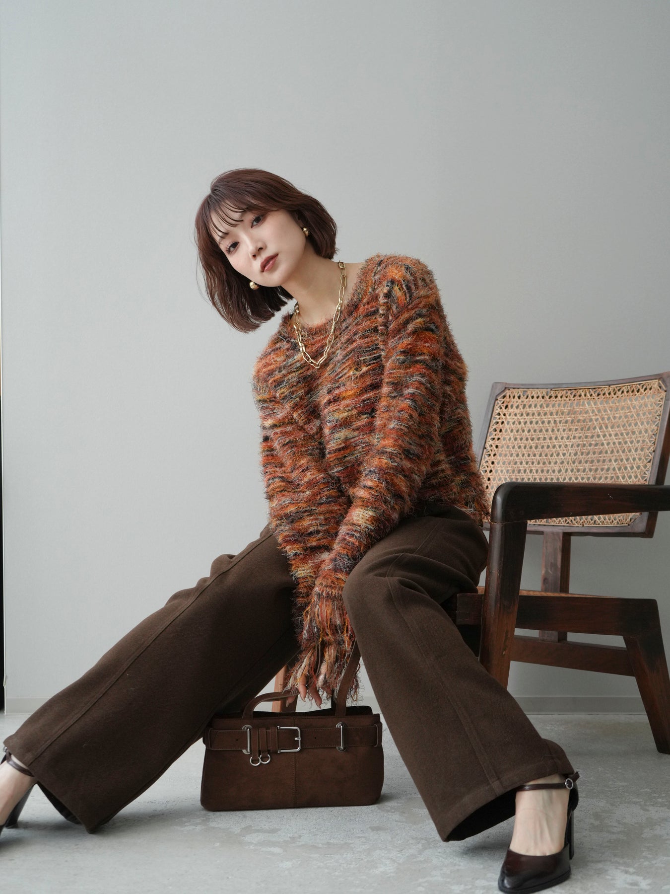 ざっくりと編まれたミックスヤーンが魅力的なシャギーニットプルオーバー。 ランダムな糸の色合いが立体感と表情をプラスし、着るだけでスタイリングが華やかに。 裾に施されたフリンジが軽やかな抜け感を演出し、トレンド感のあるリラックスシルエットでこなれた印象に。 デニムと合わせたカジュアルなスタイリングから、ロングスカートを合わせた女性らしい着こなしまで幅広く活躍します。