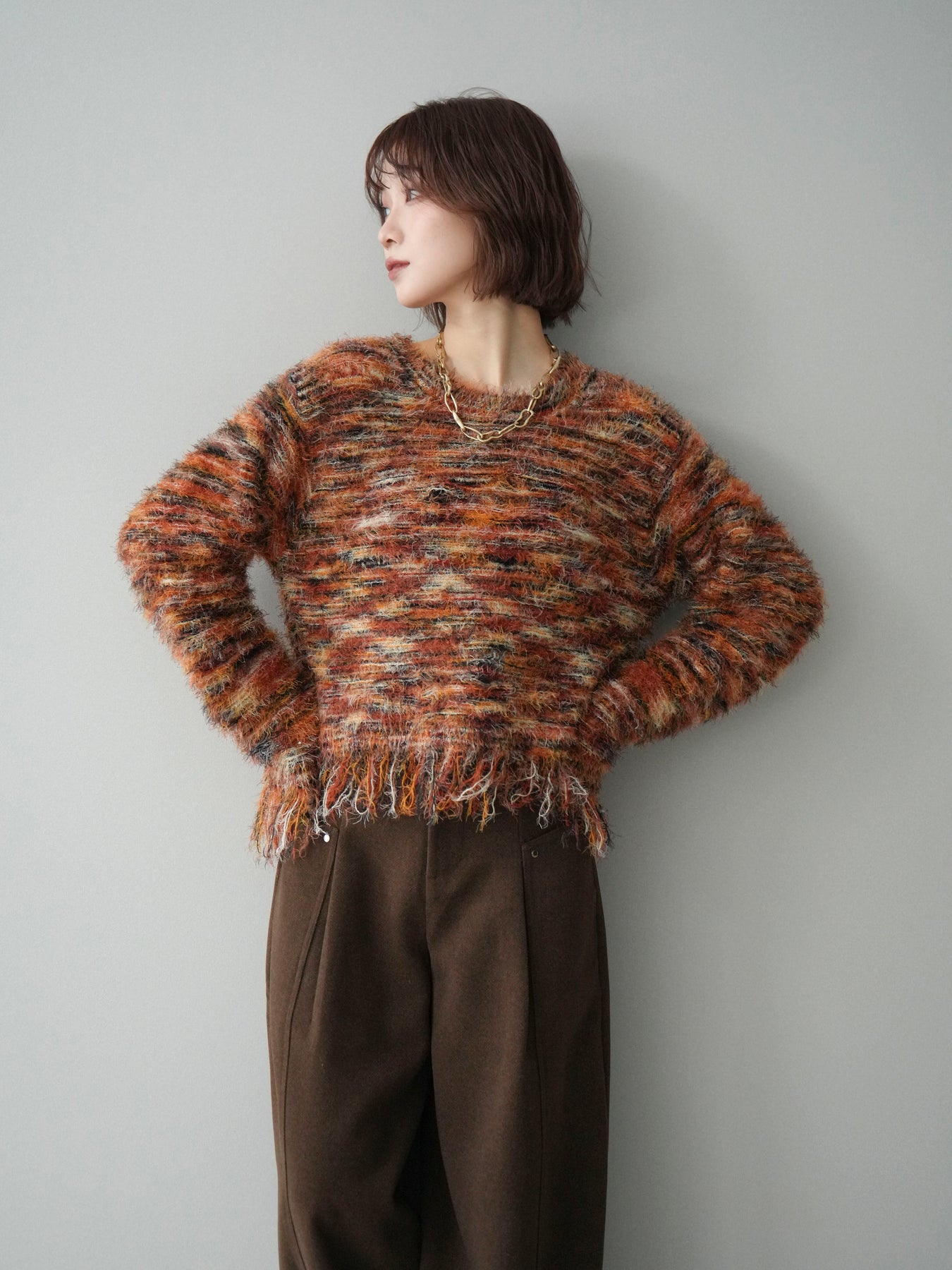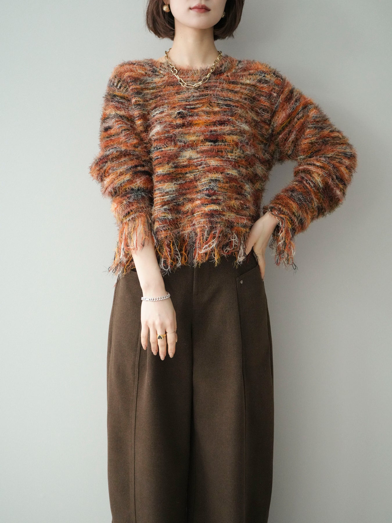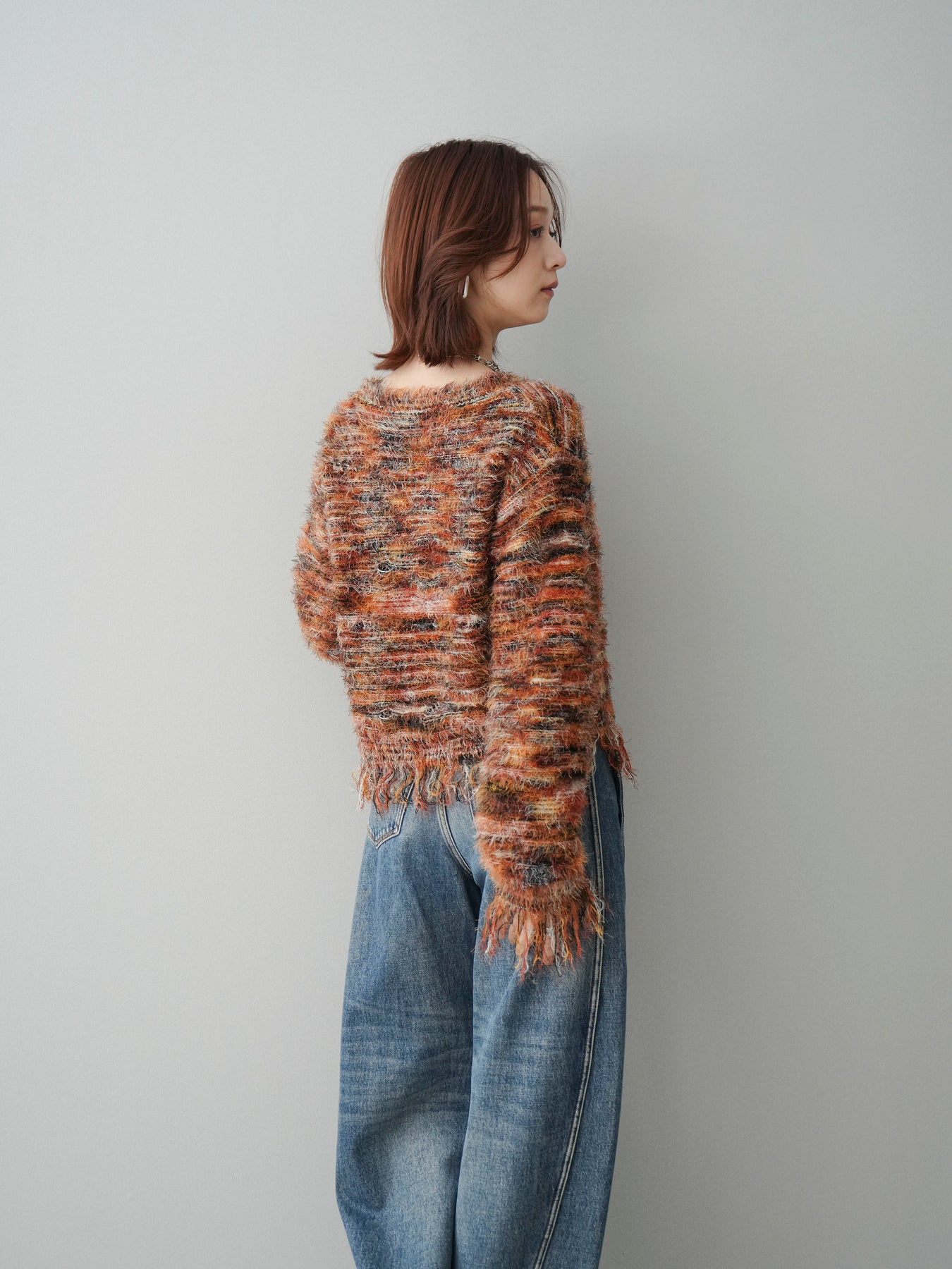 [予約]裾フリンジミックスヤーンシャギープルオーバー/orange