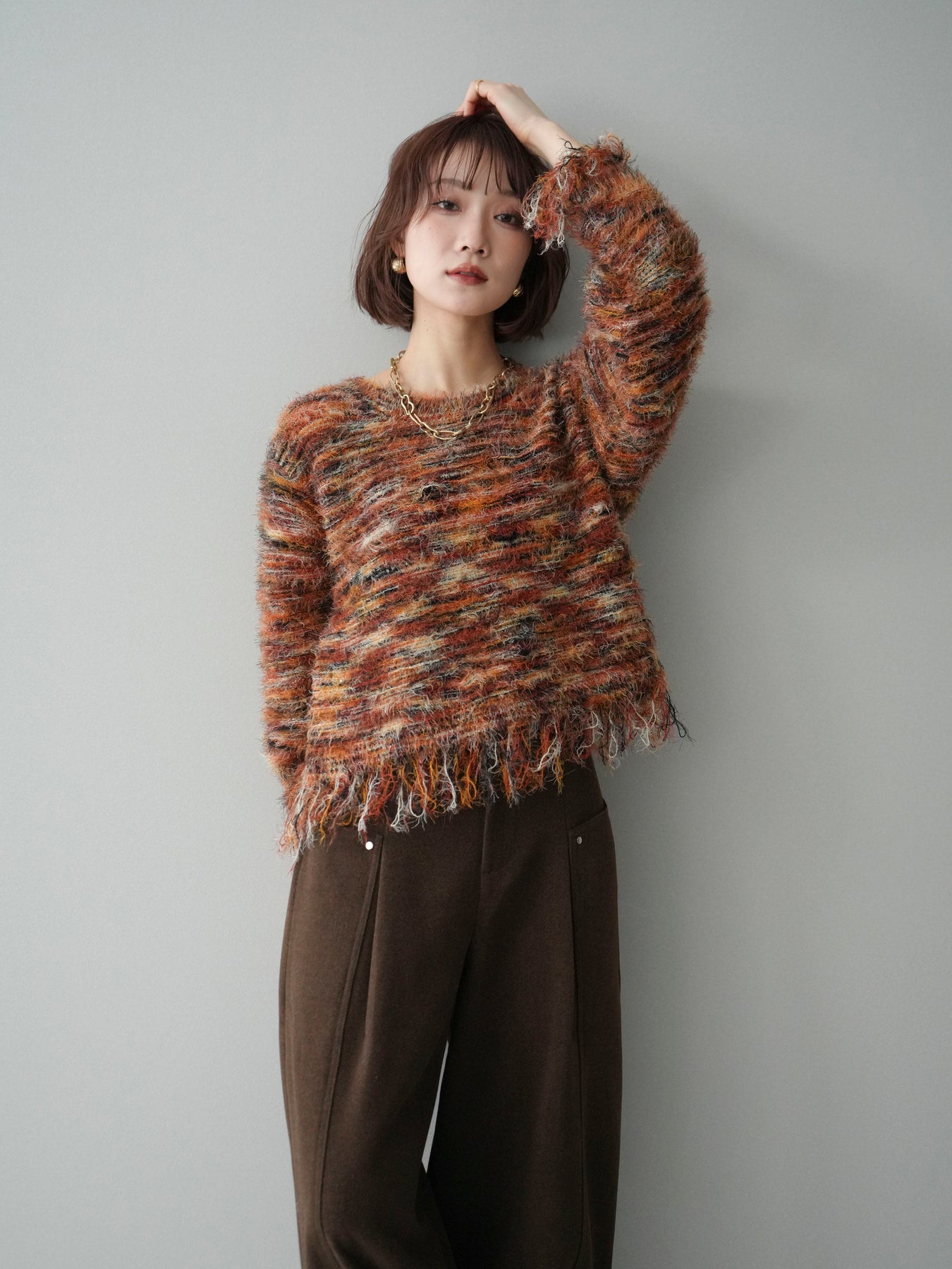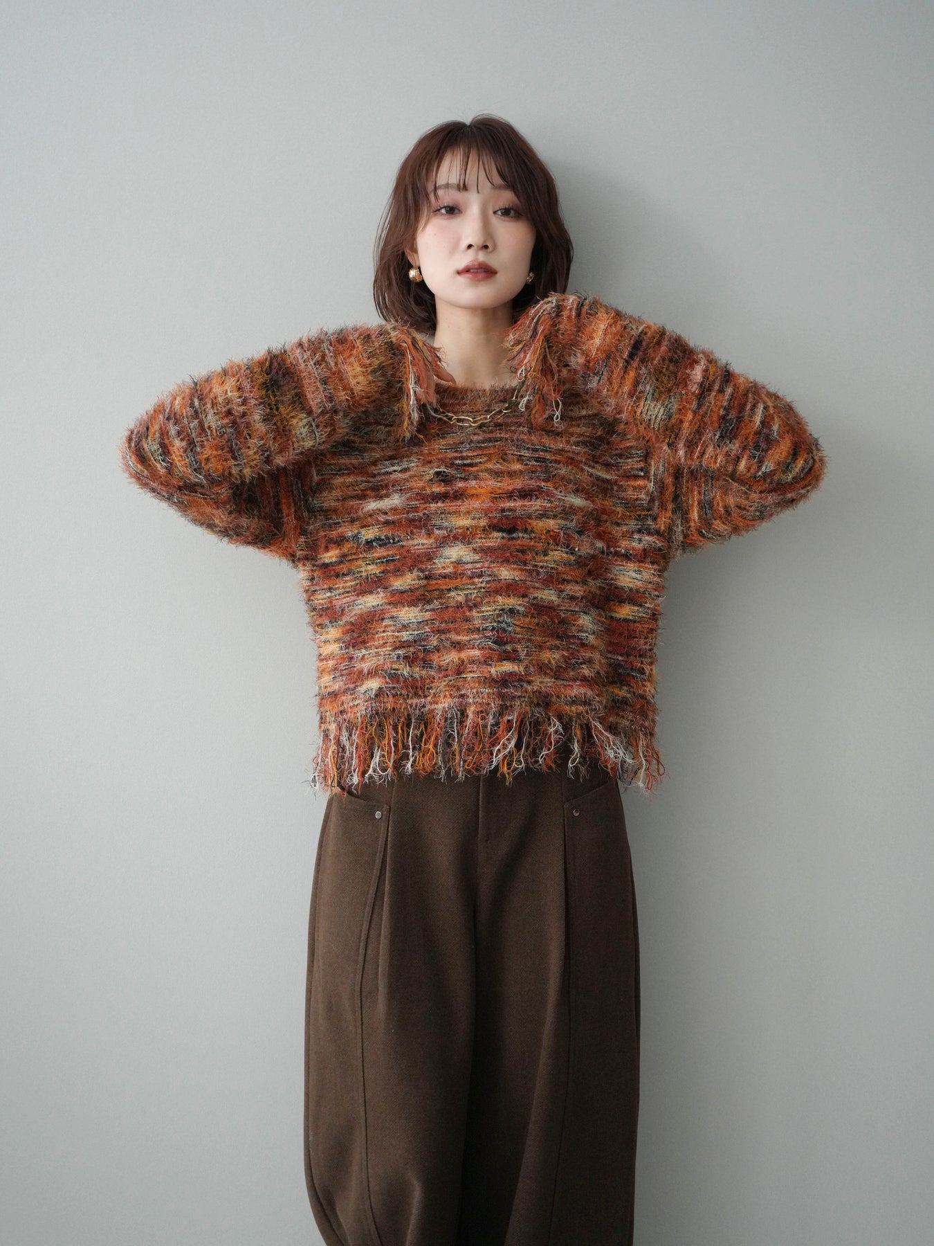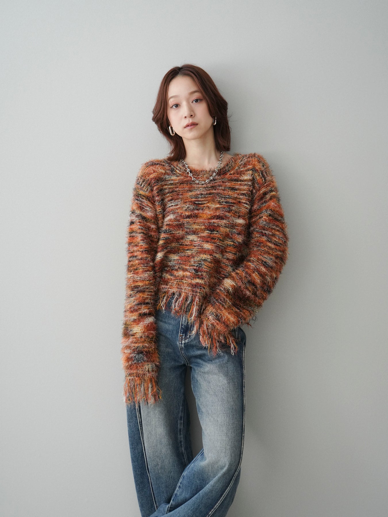 [予約]裾フリンジミックスヤーンシャギープルオーバー/orange