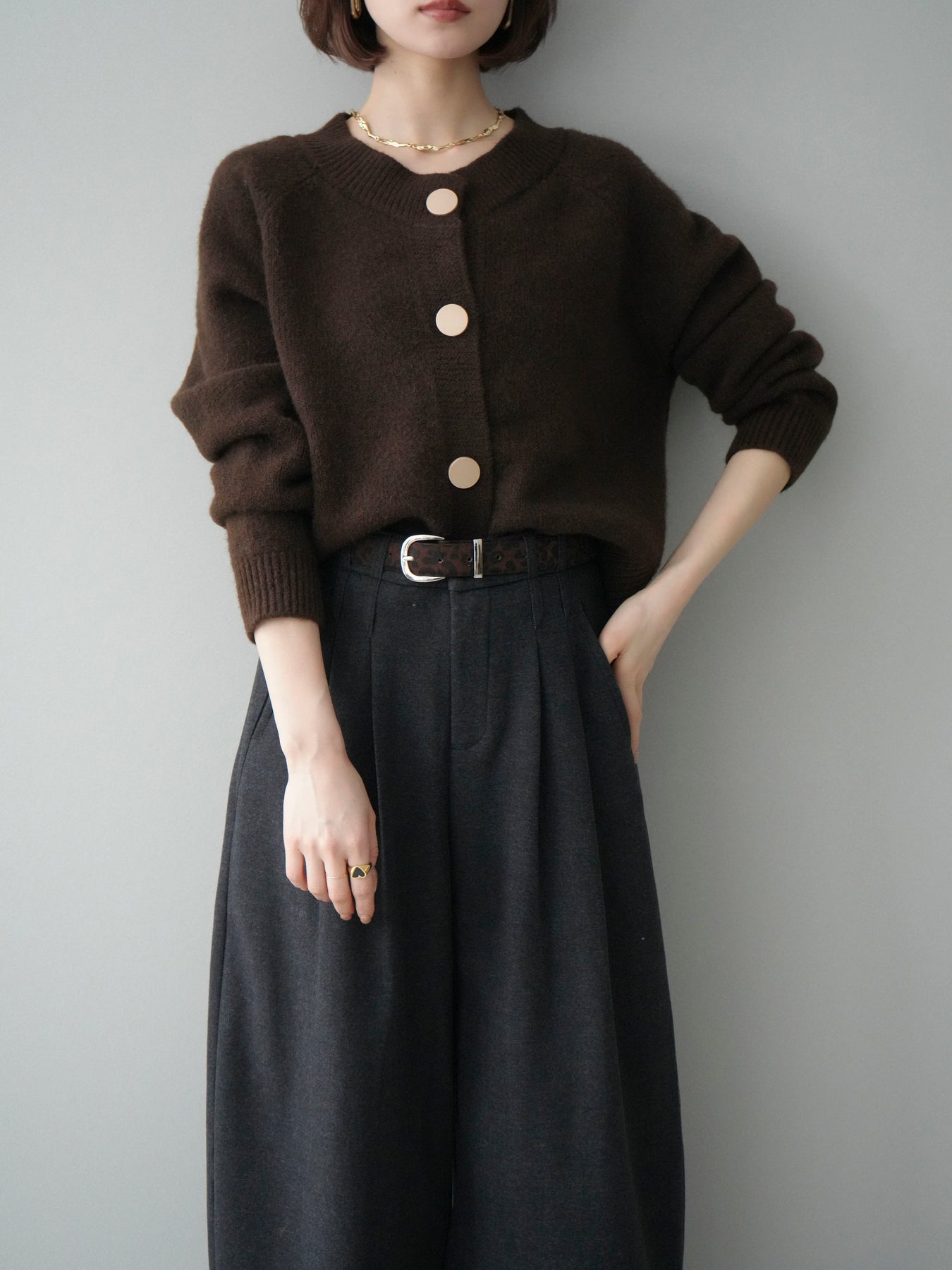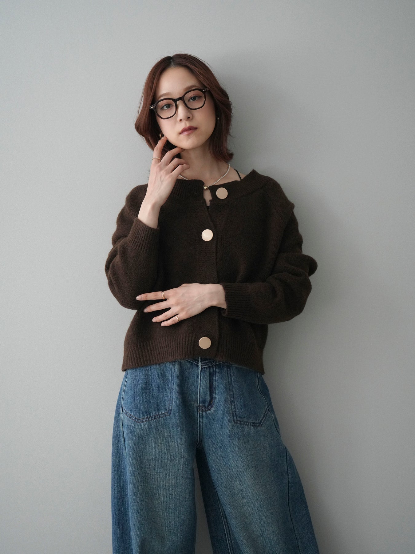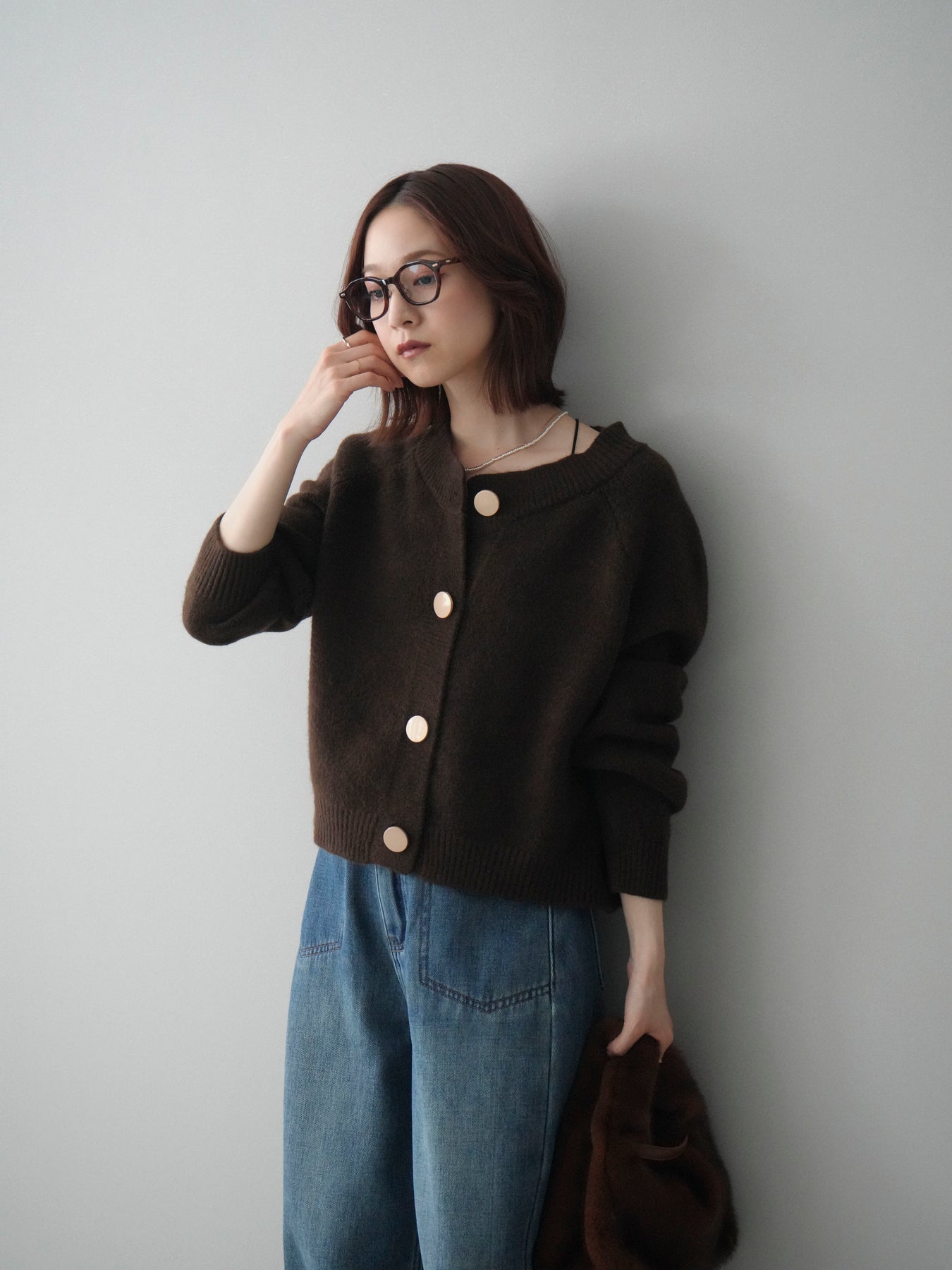 大きめのボタンがアクセントになったニットカーディガン。 ゆったりとしたシルエットと、目を引くフロントのBIGボタンデザインで、シンプルながらも存在感のある一着に。ドロップショルダーで程よく抜け感を演出し、デイリーコーデに気負わず取り入れやすいアイテムです。カーディガンとしてはもちろん、ボタンを閉じてプルオーバー風にも着用可能。デニムやスカートなど、幅広いスタイリングにマッチします。