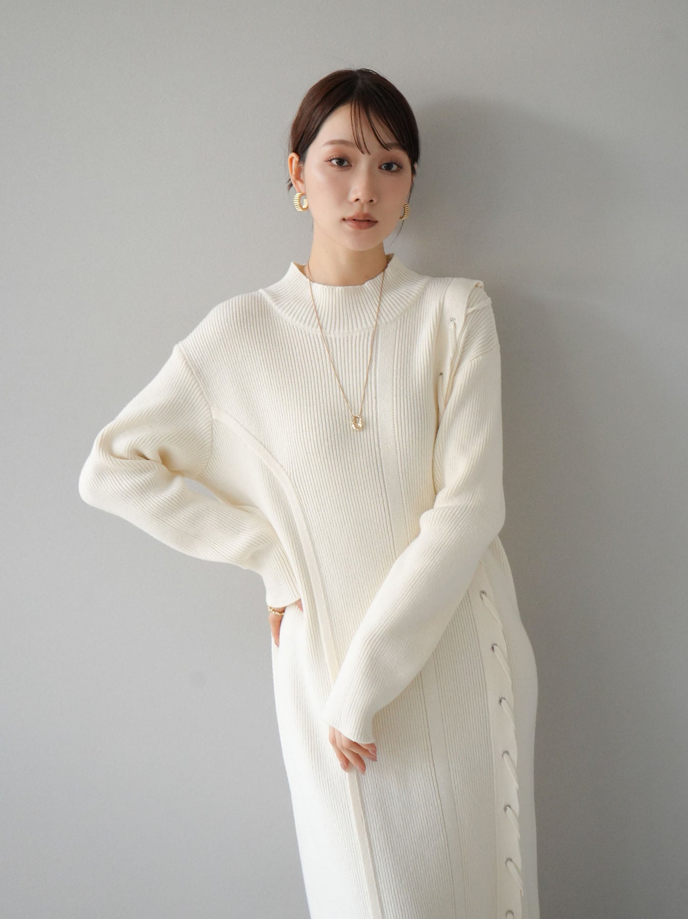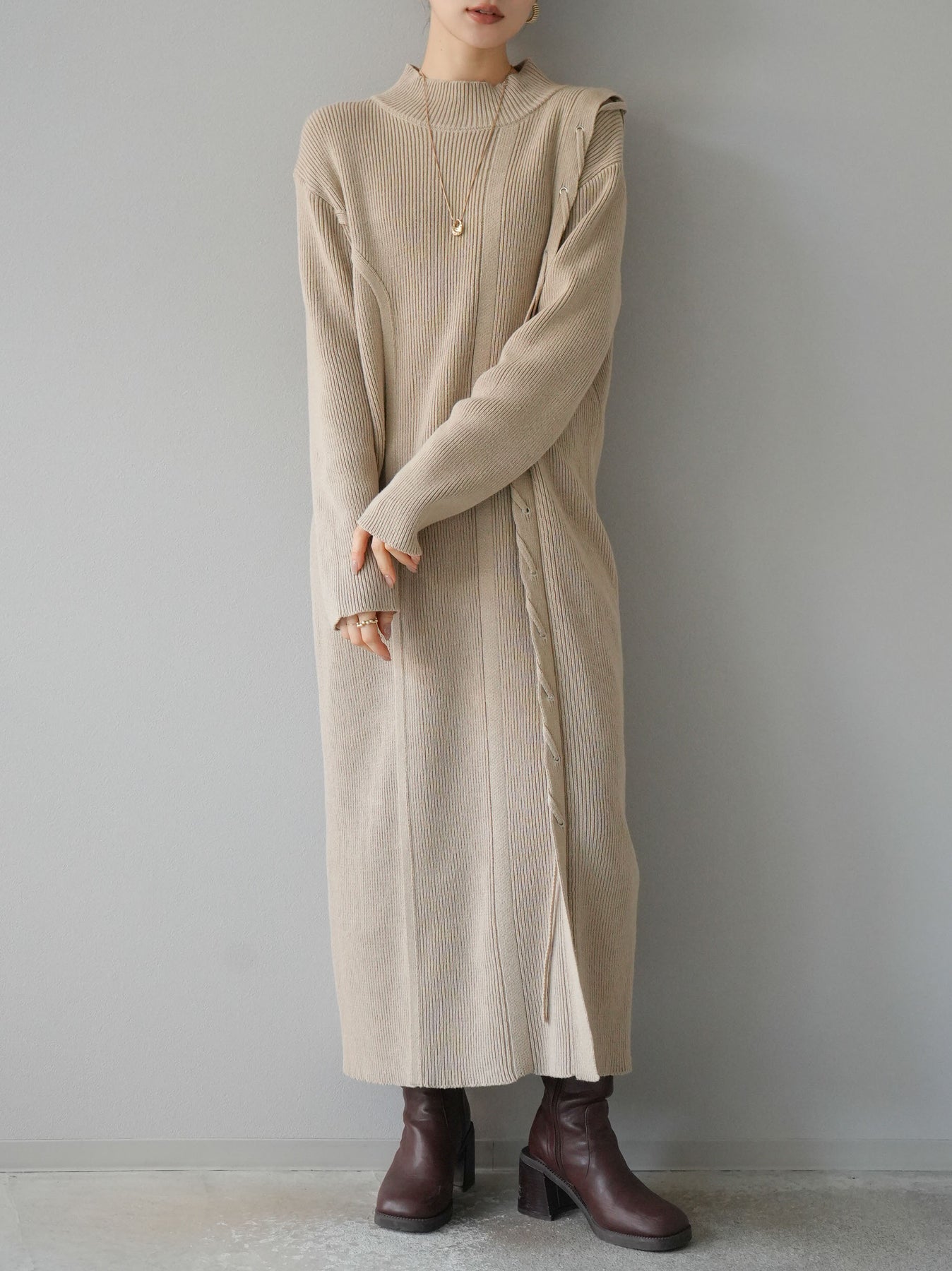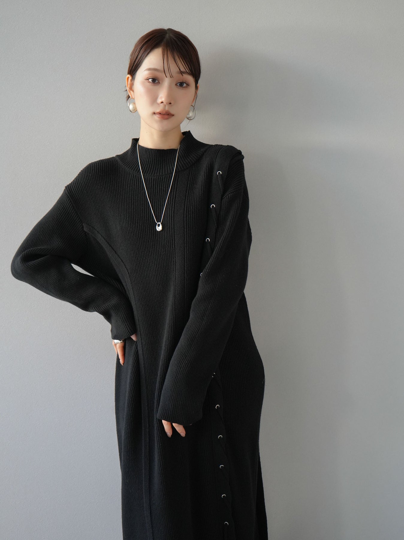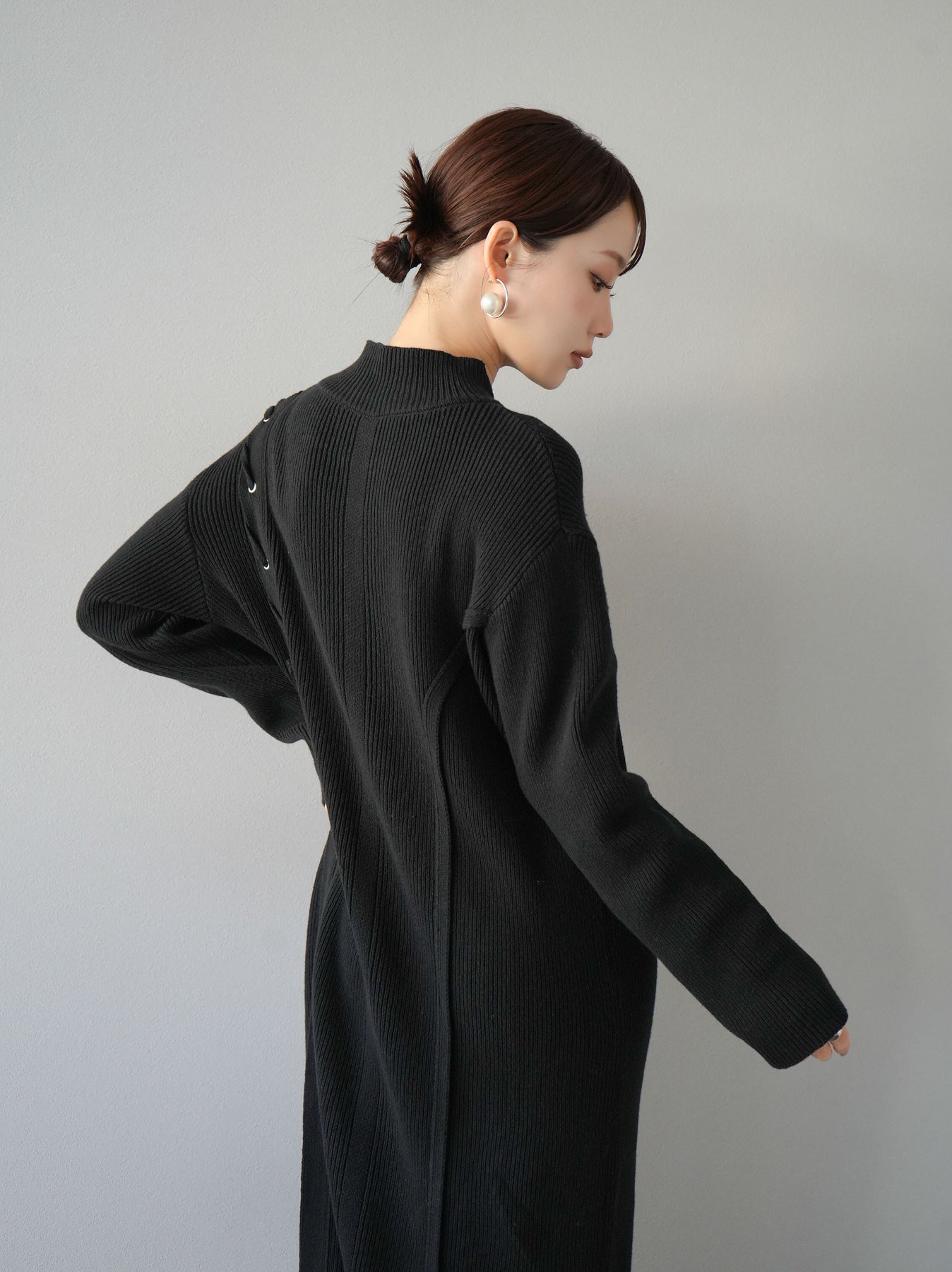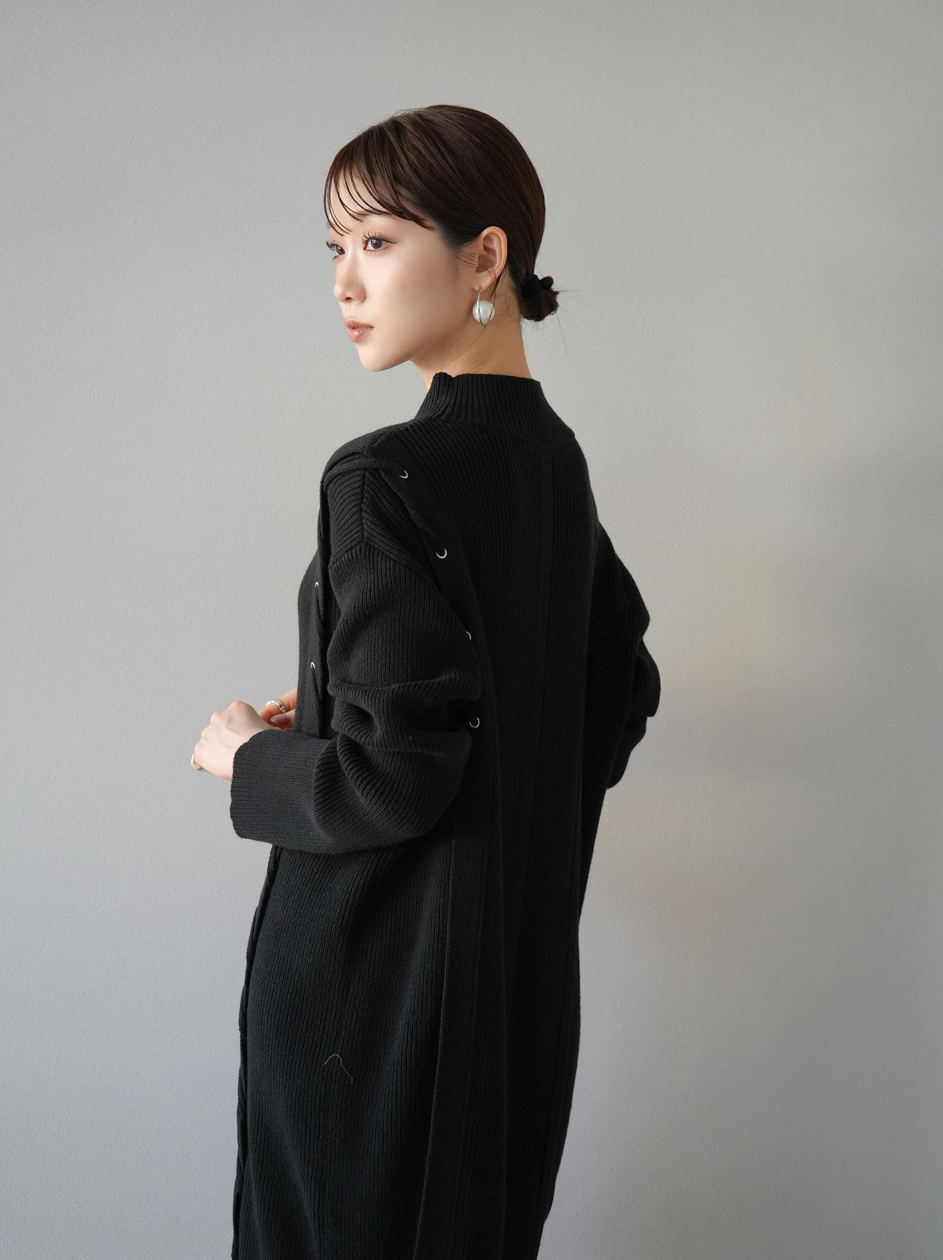 ◆ [預購] 不對稱繫帶高領針織連身裙