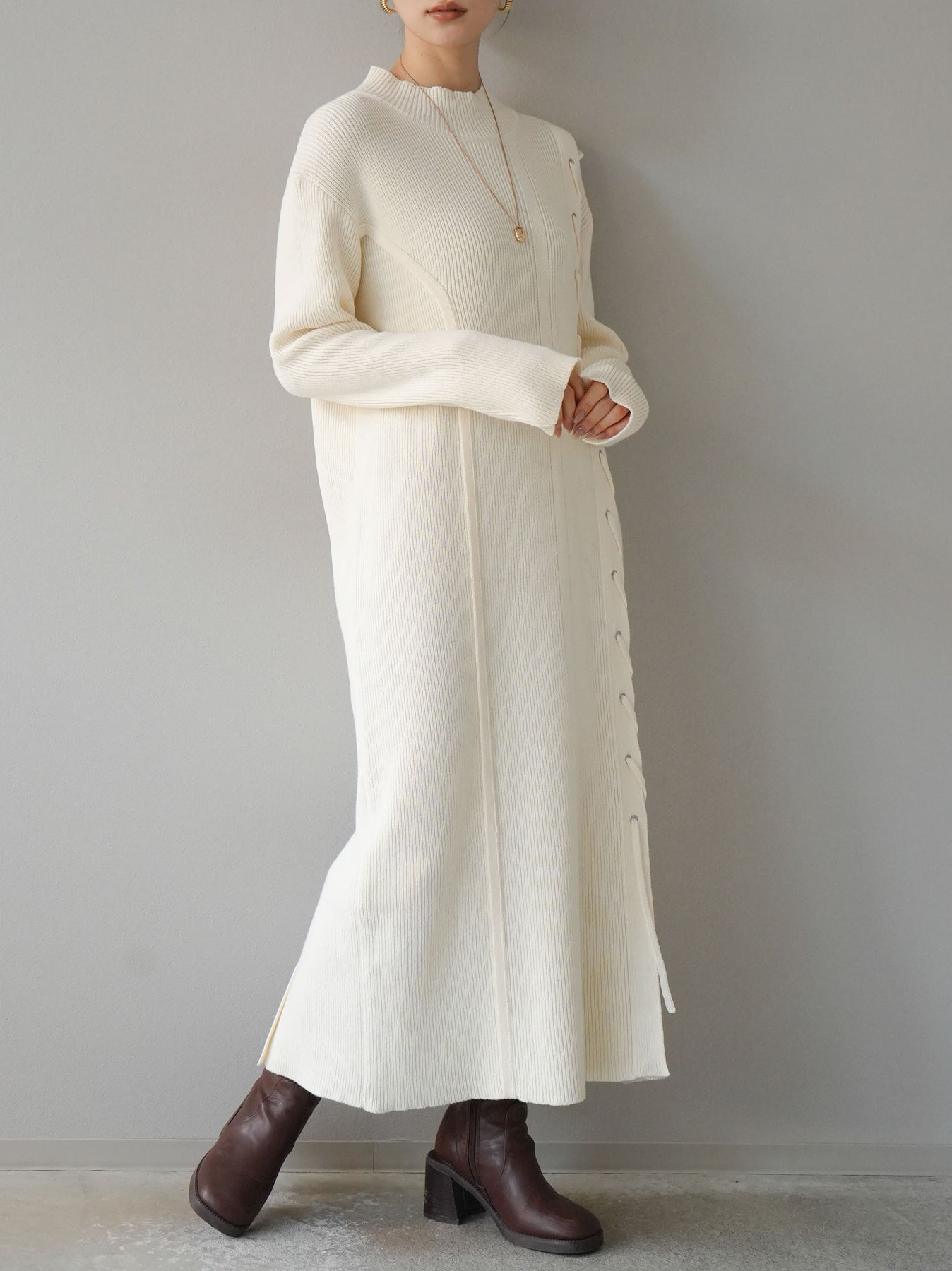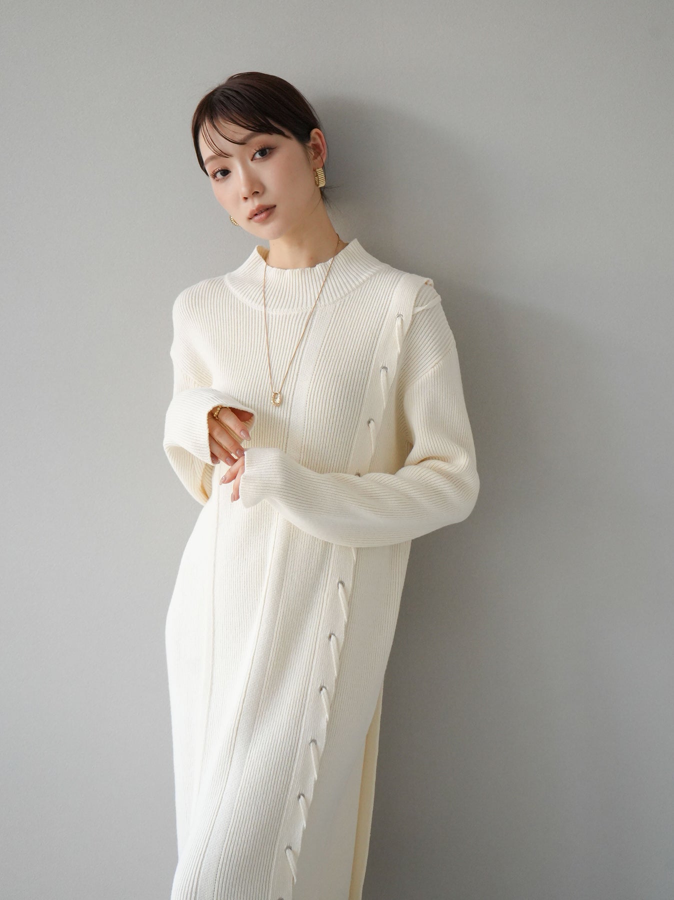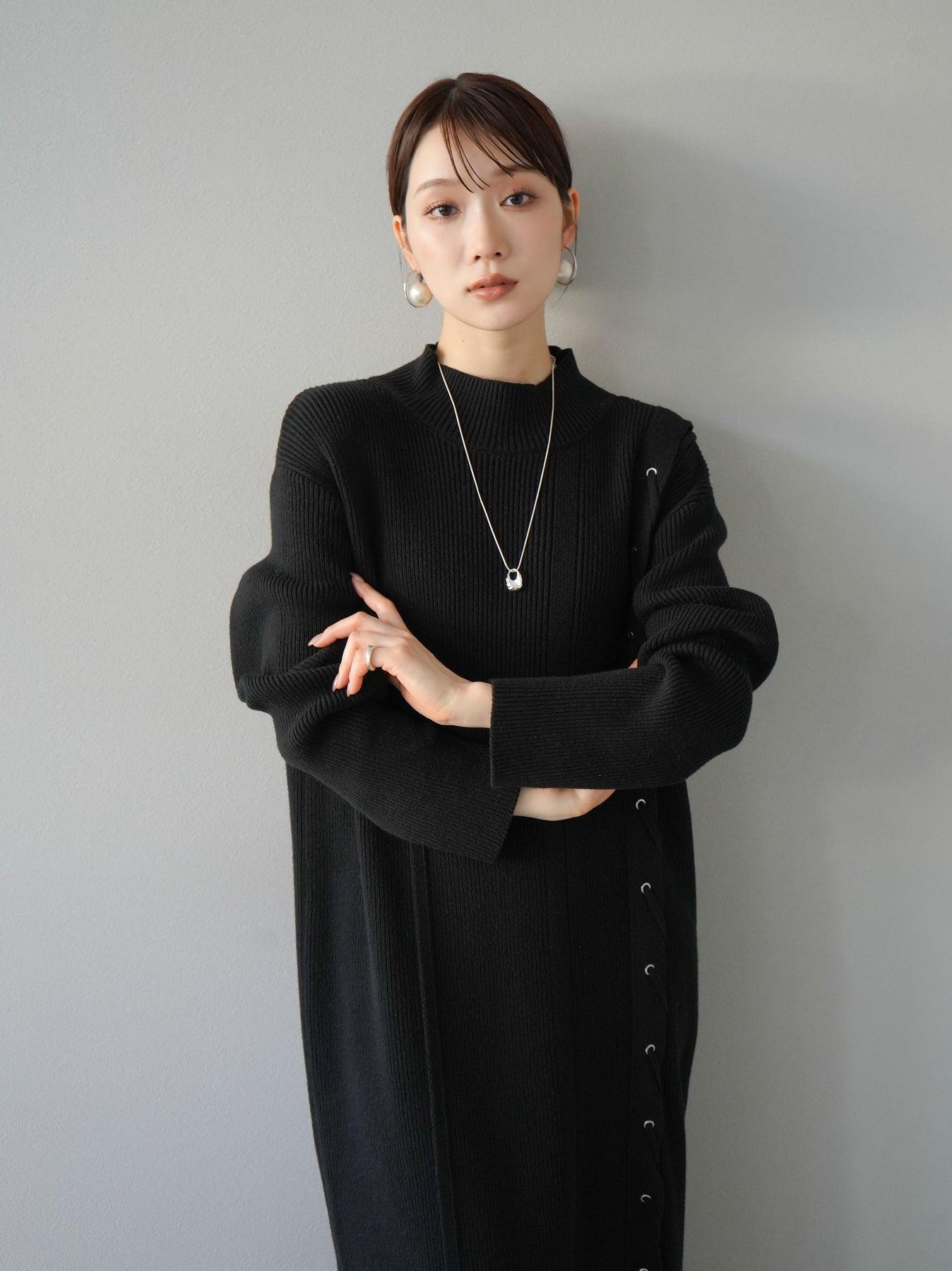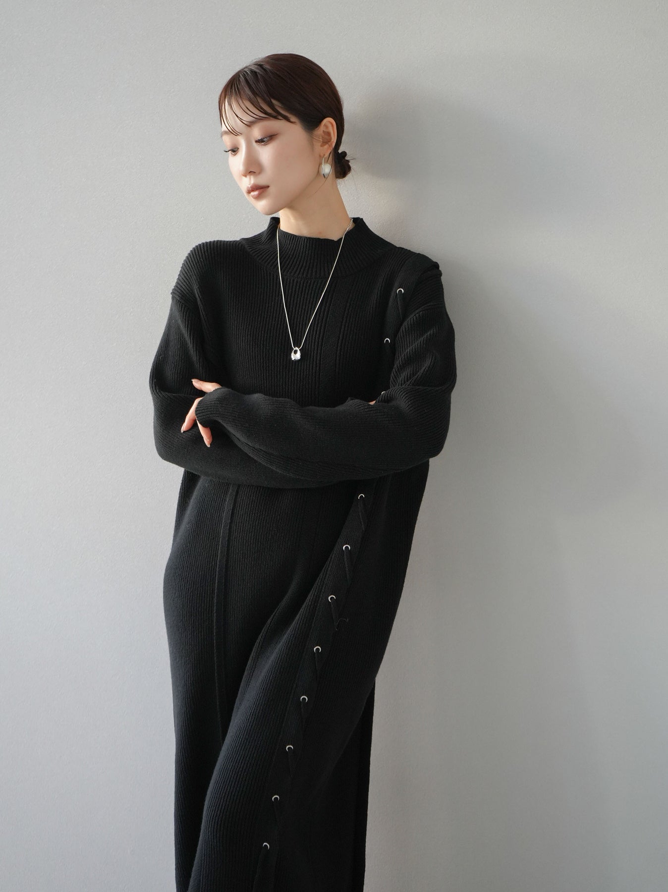 ◆ [預購] 不對稱繫帶高領針織連身裙