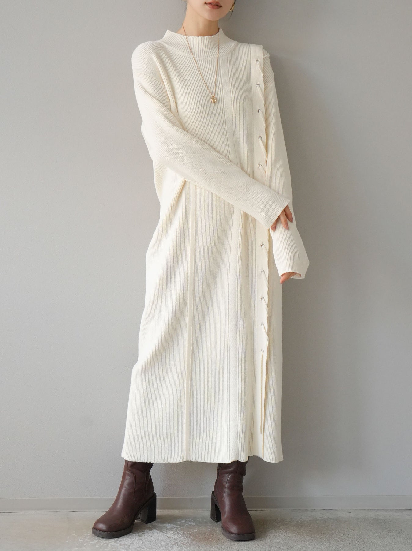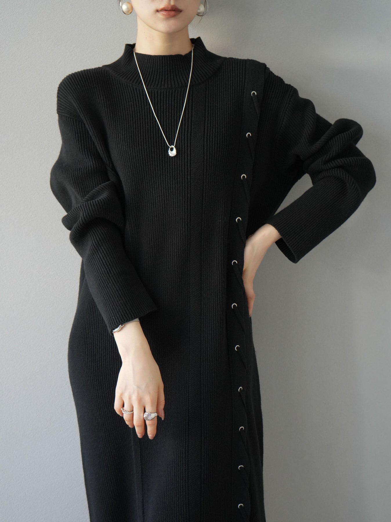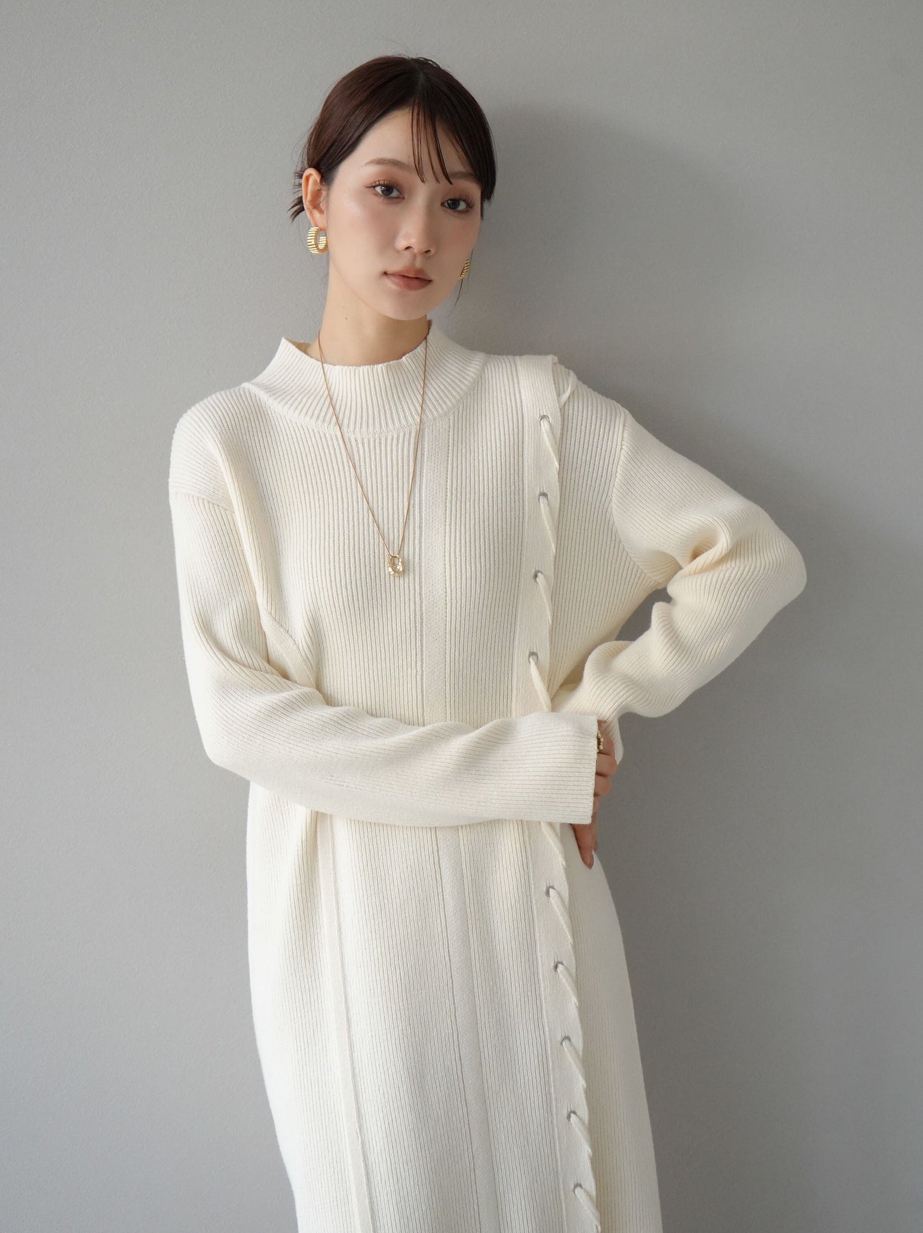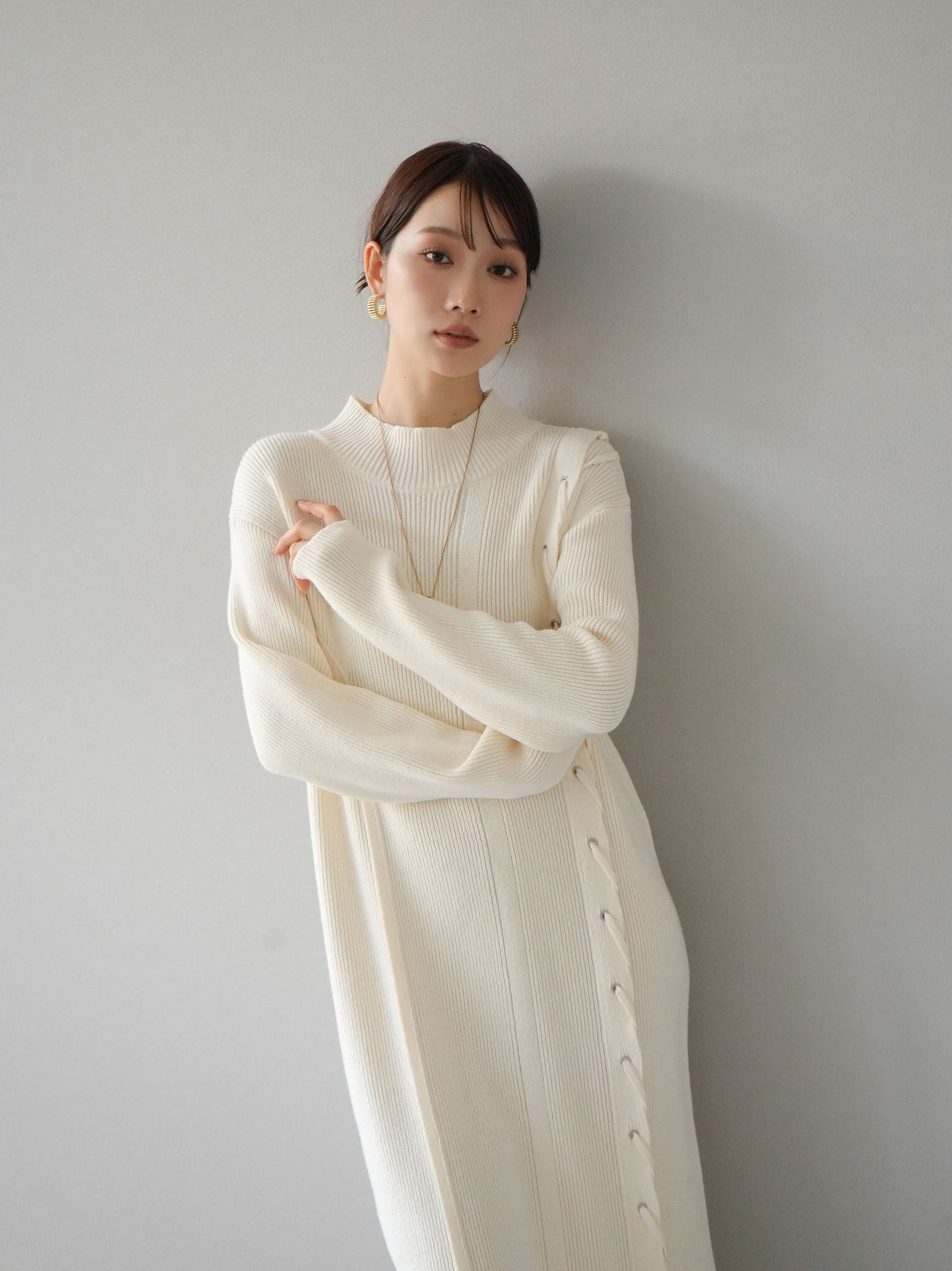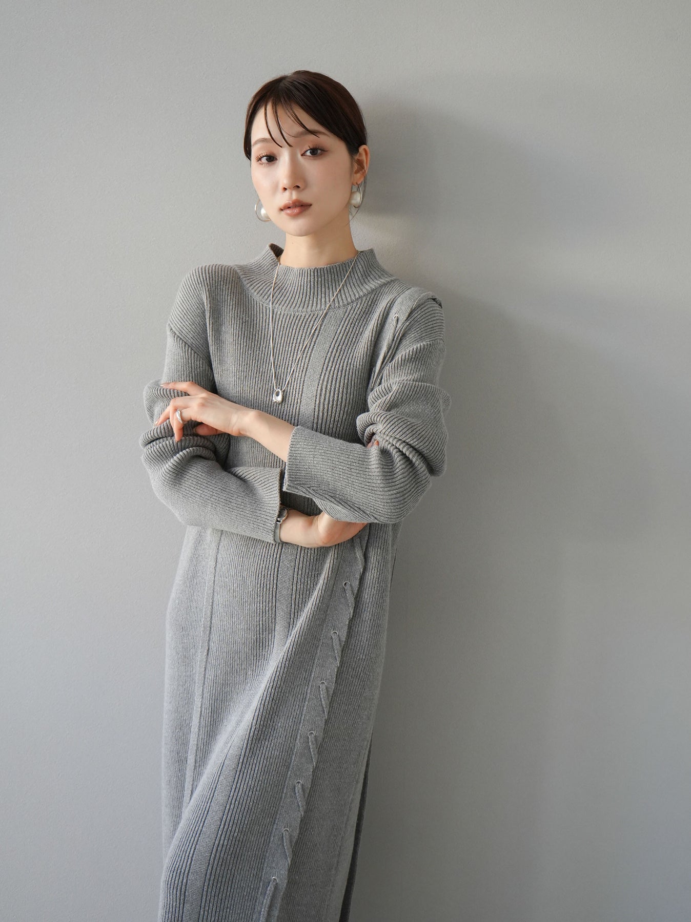 ◆ [預購] 不對稱繫帶高領針織連身裙