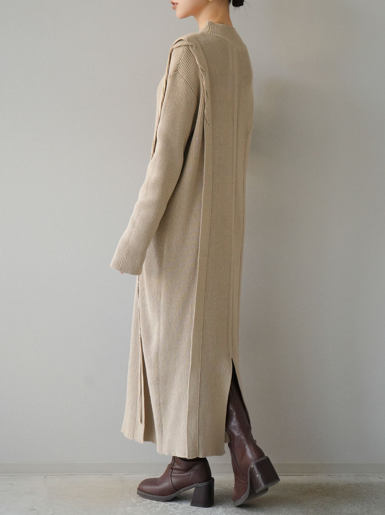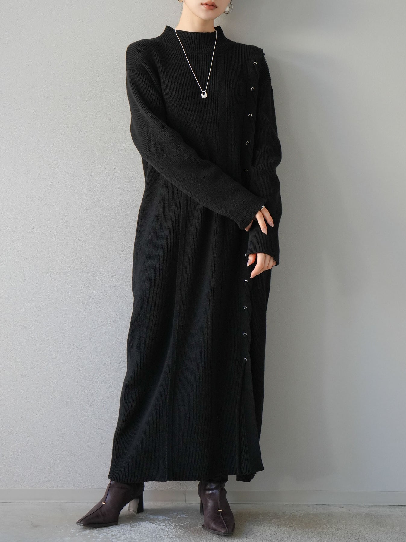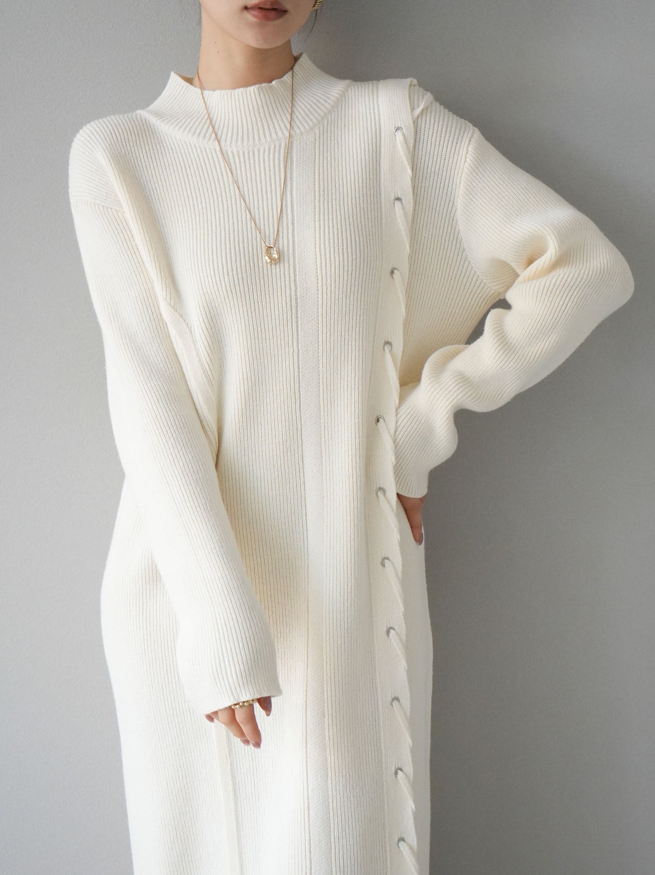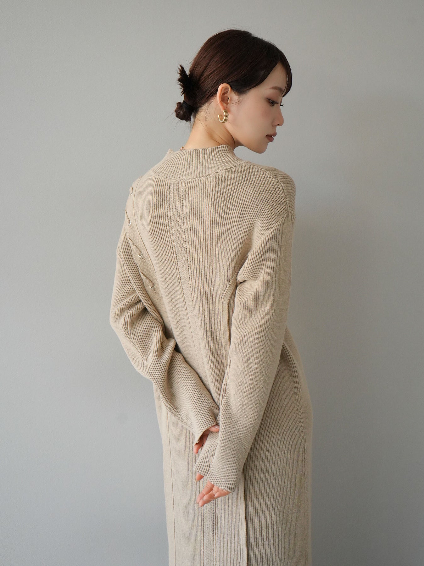 ◆ [預購] 不對稱繫帶高領針織連身裙