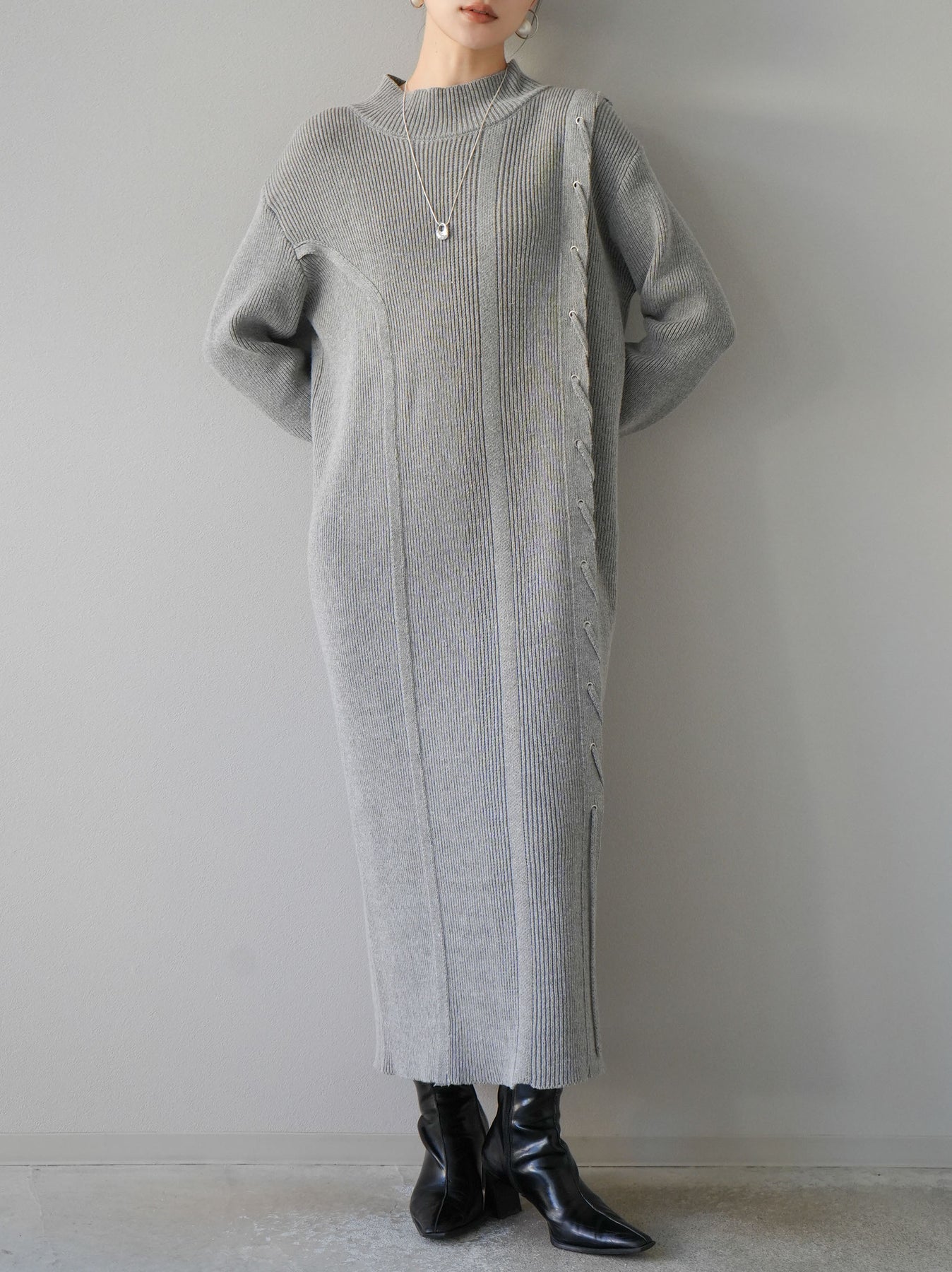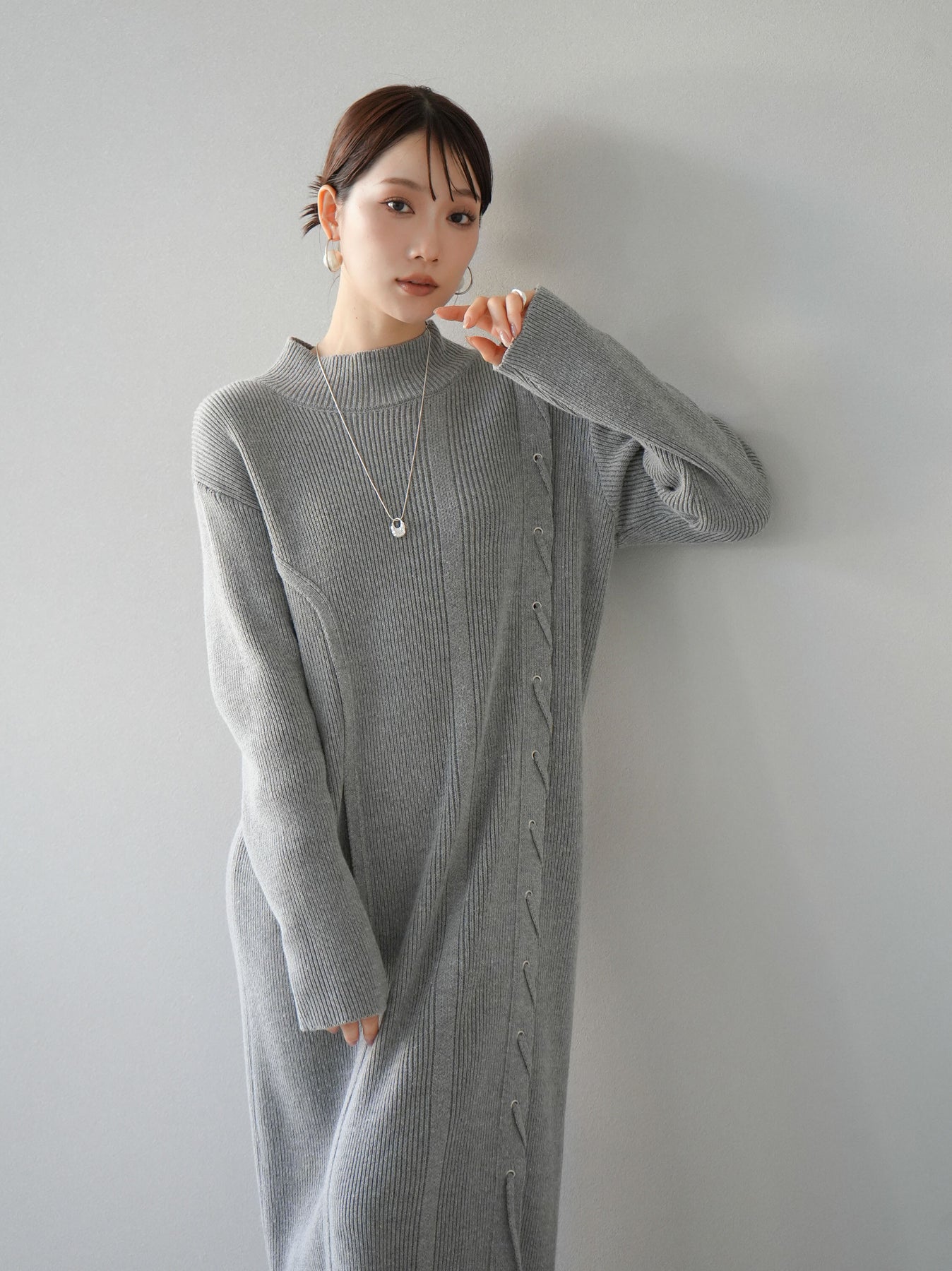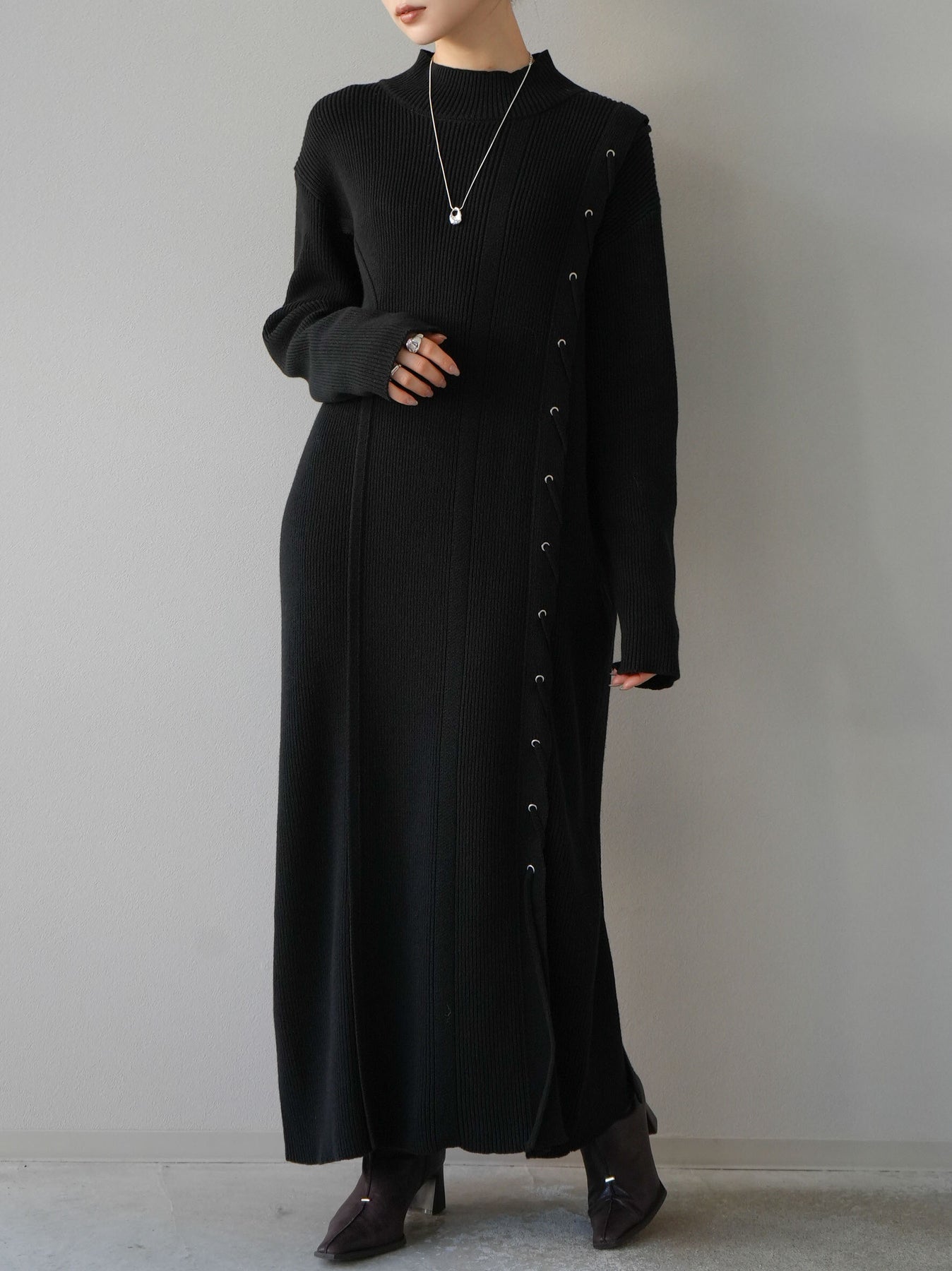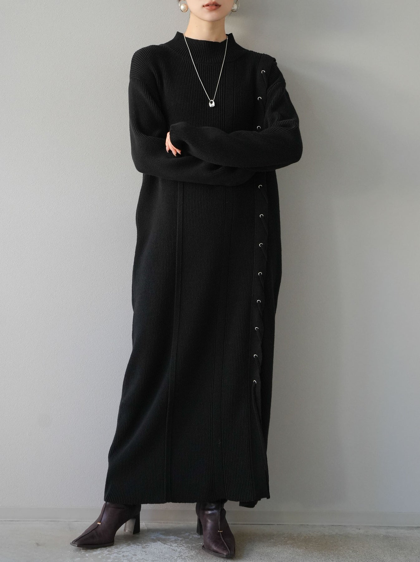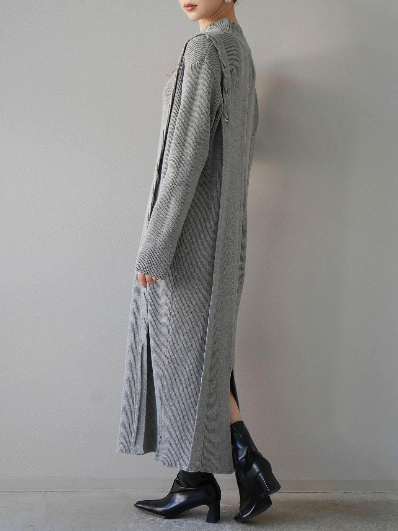 ◆ [預購] 不對稱繫帶高領針織連身裙