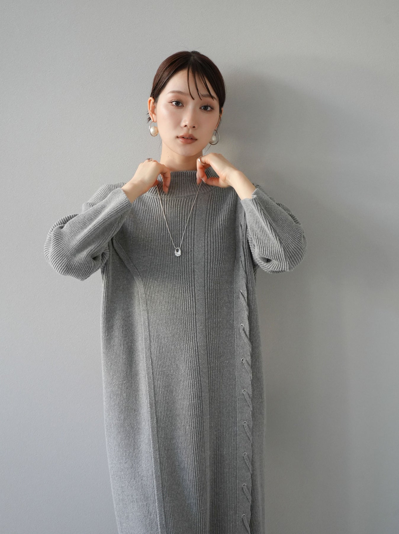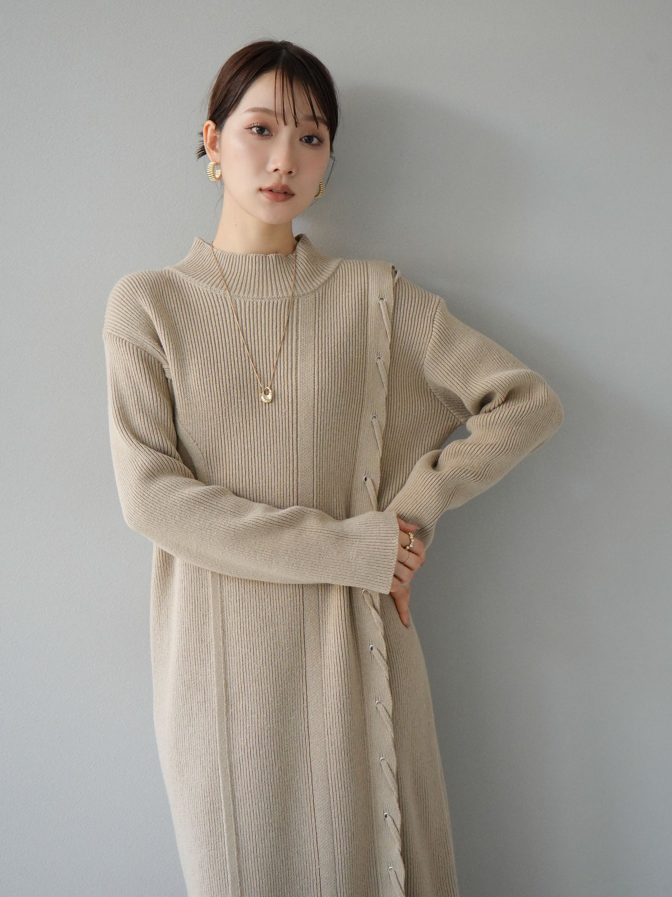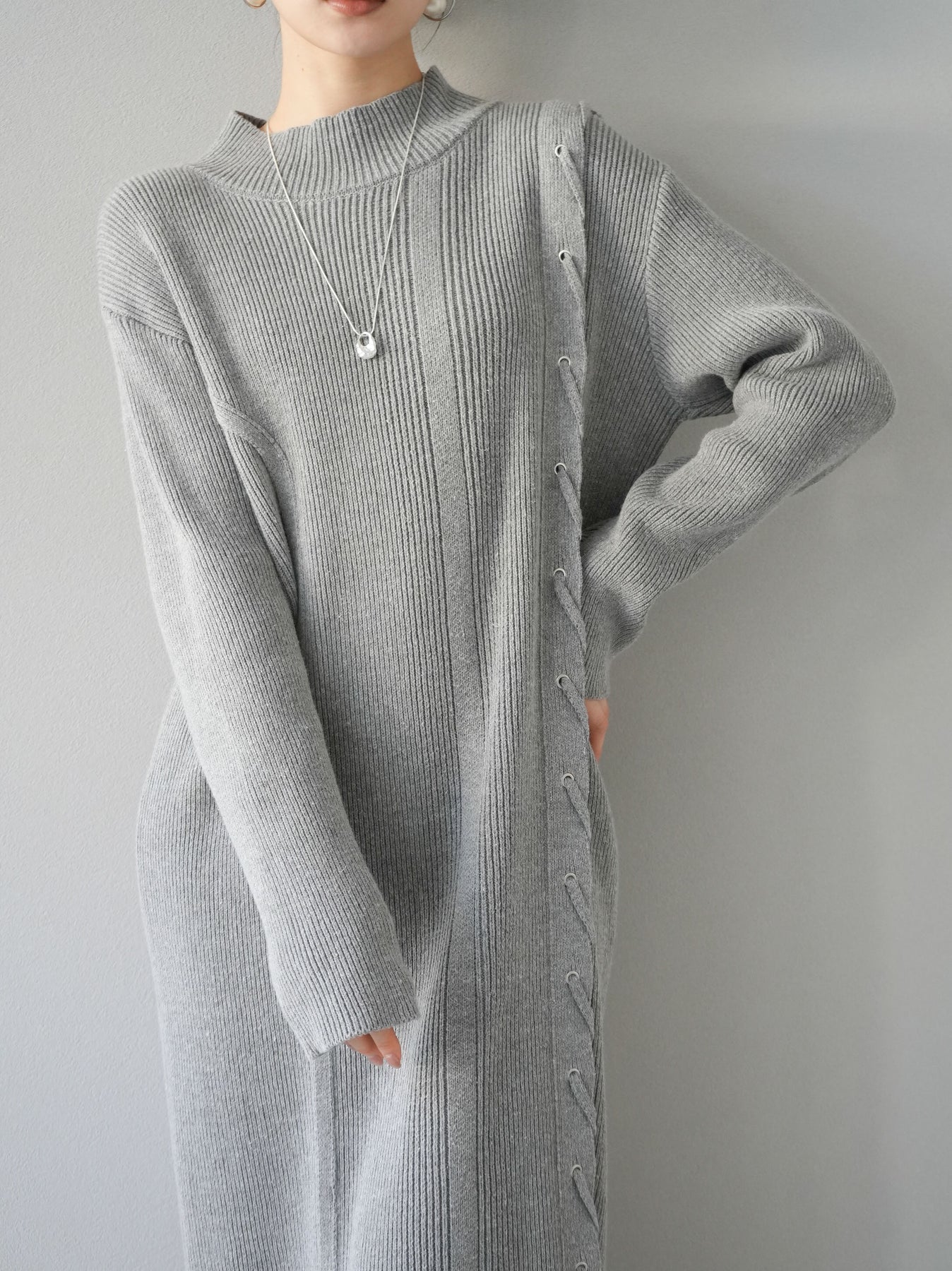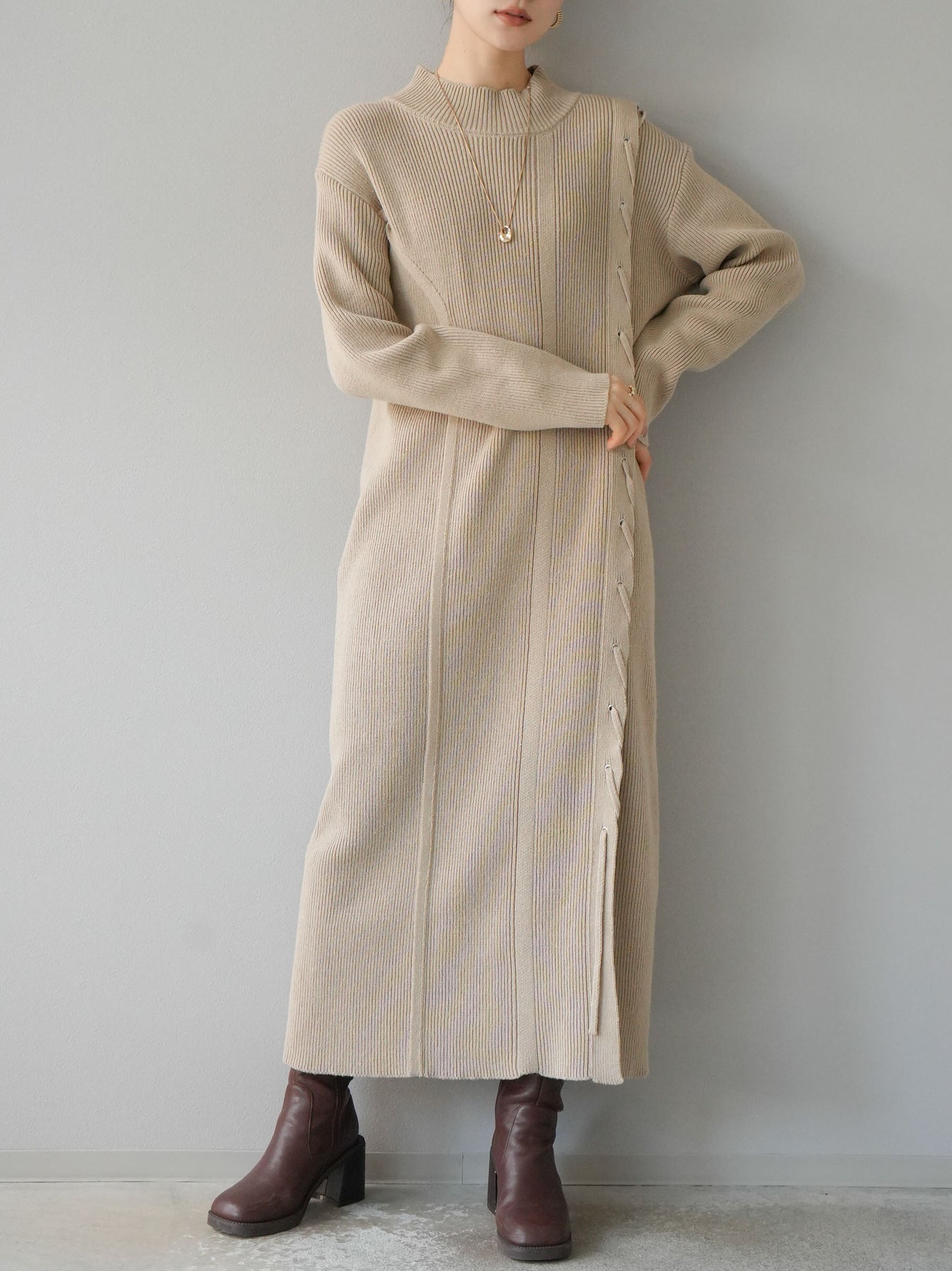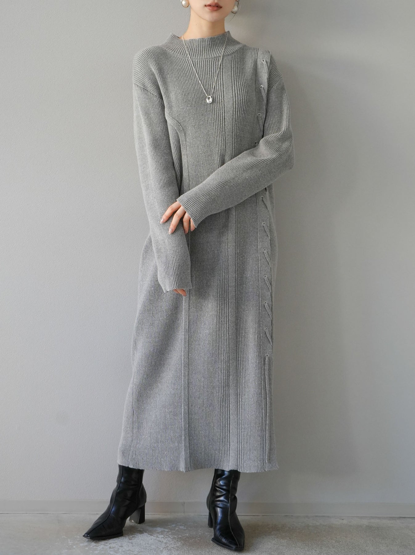 ◆ [預購] 不對稱繫帶高領針織連身裙