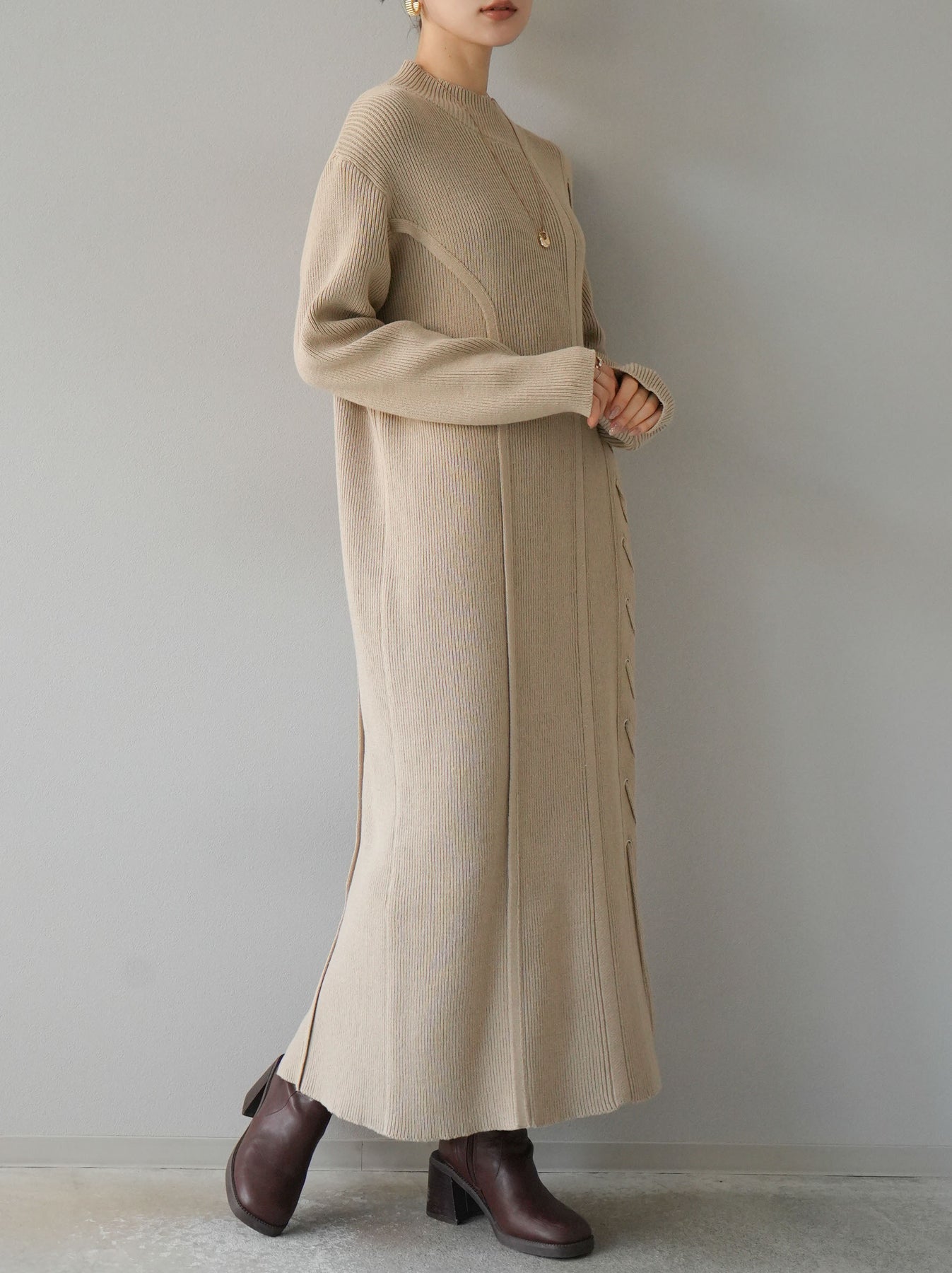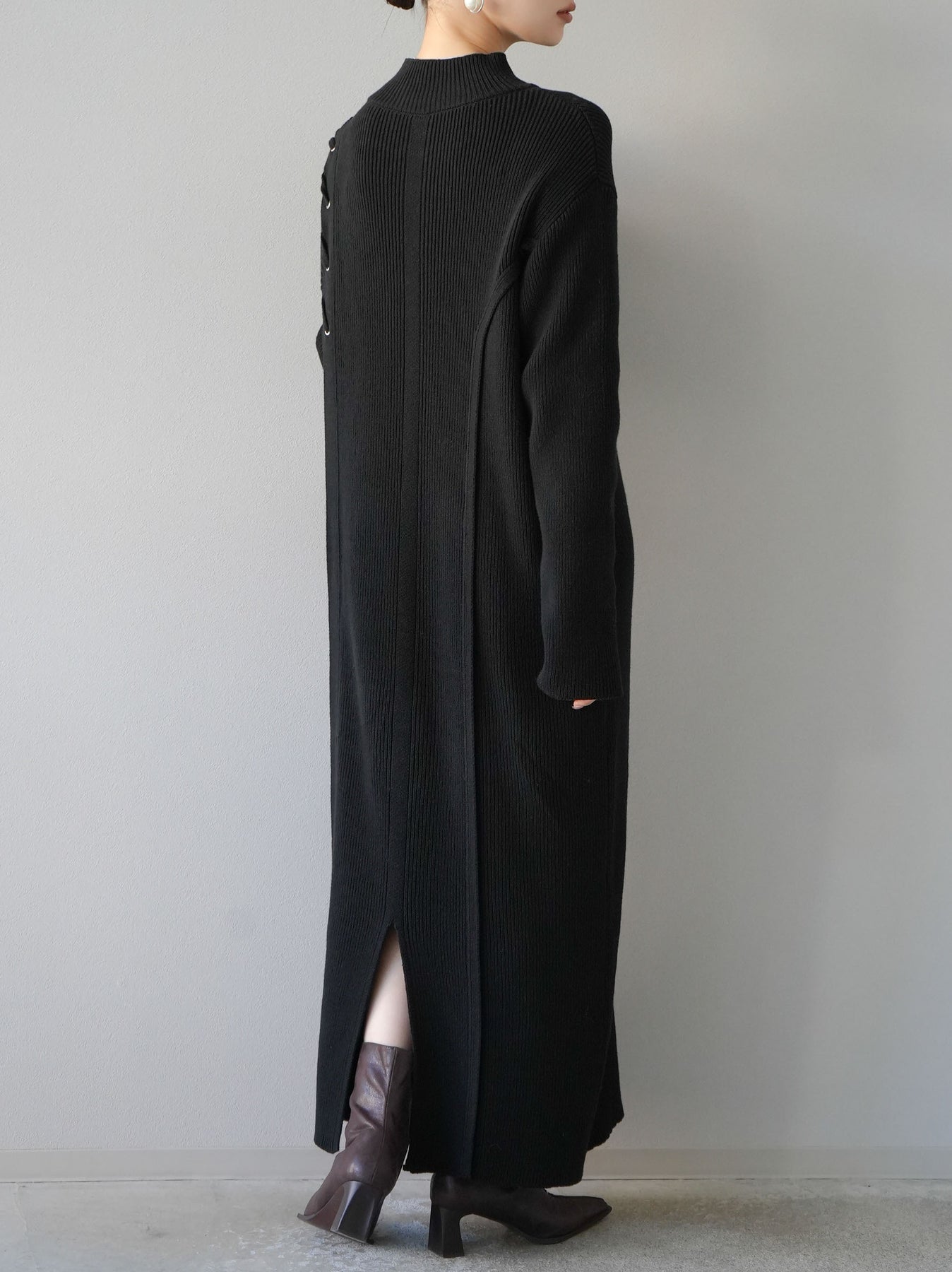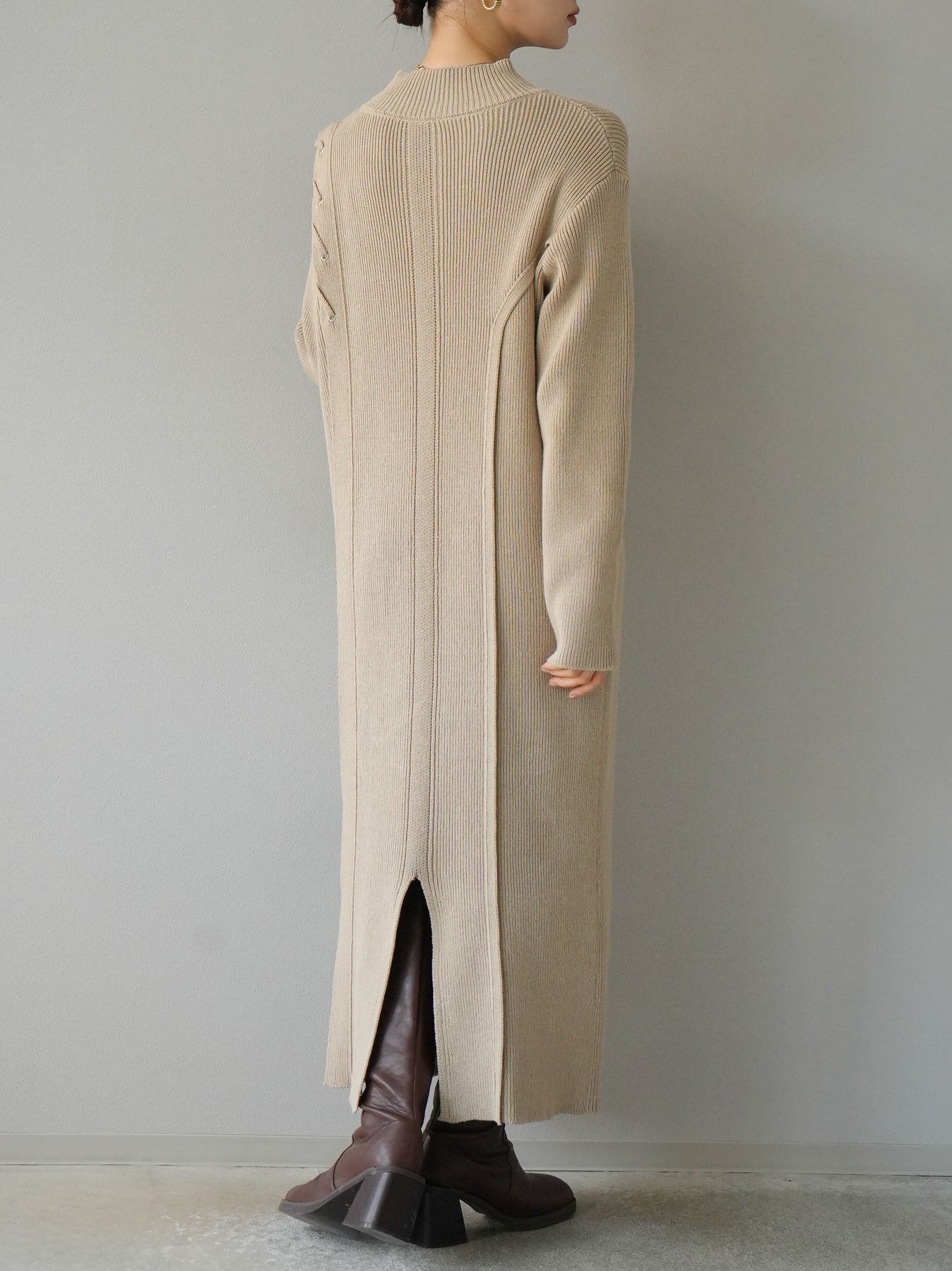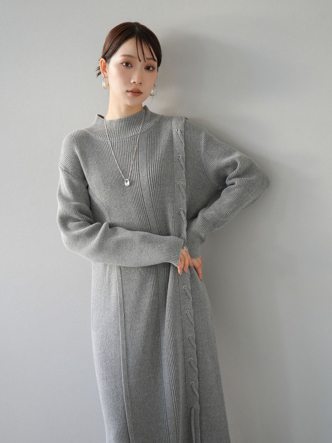 ◆ [預購] 不對稱繫帶高領針織連身裙