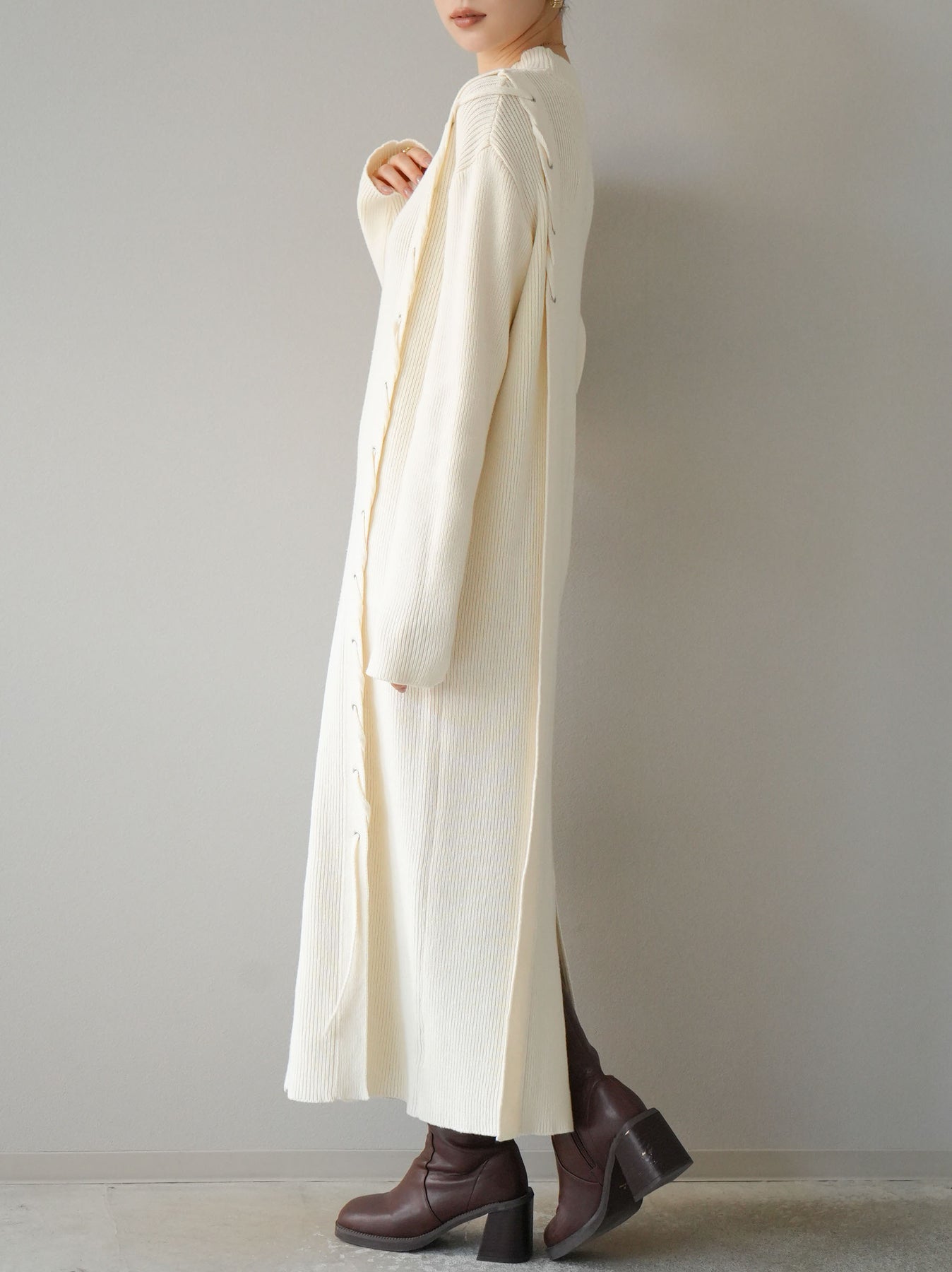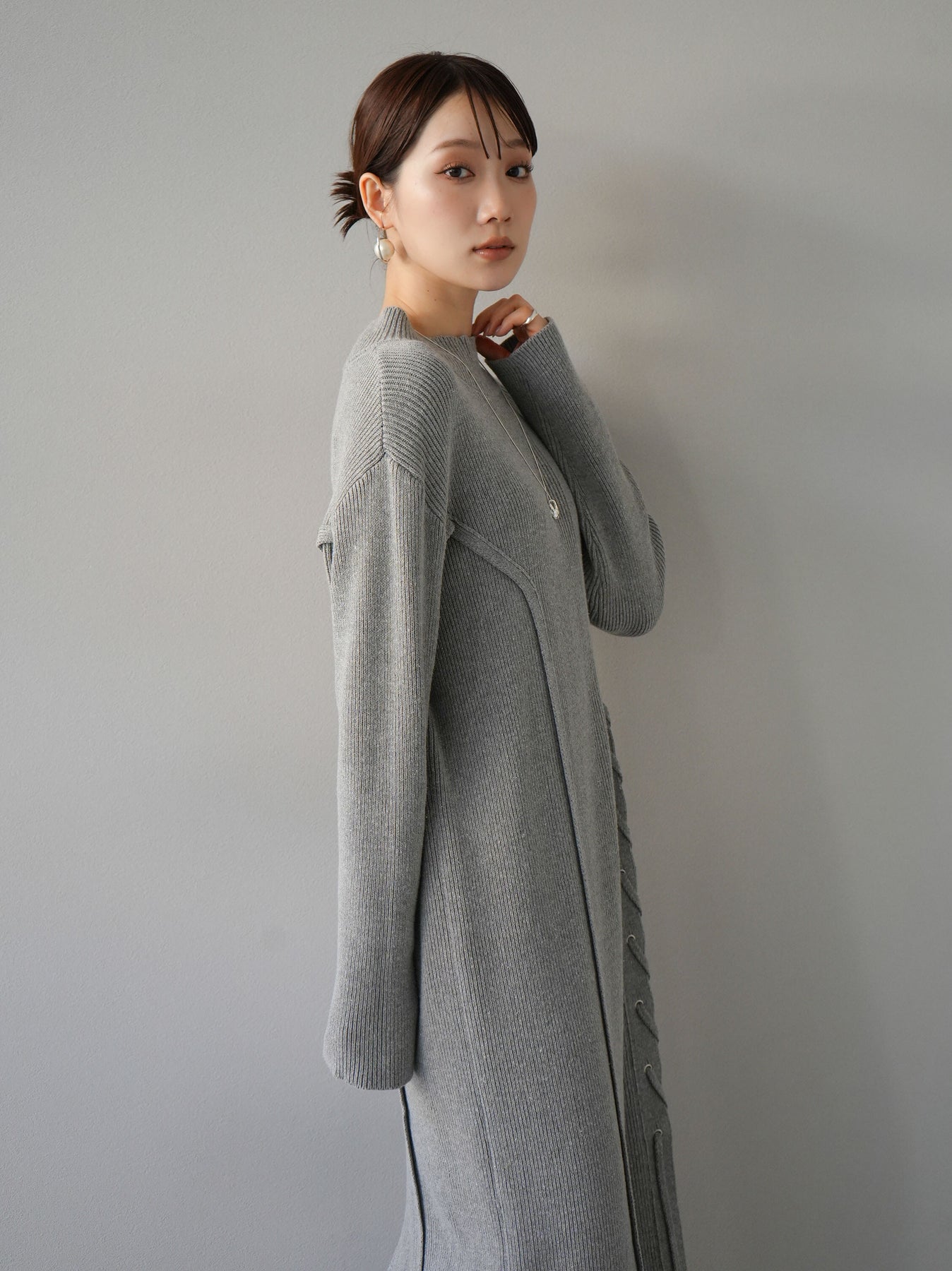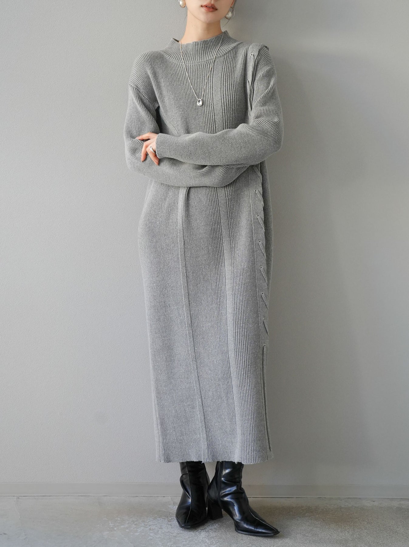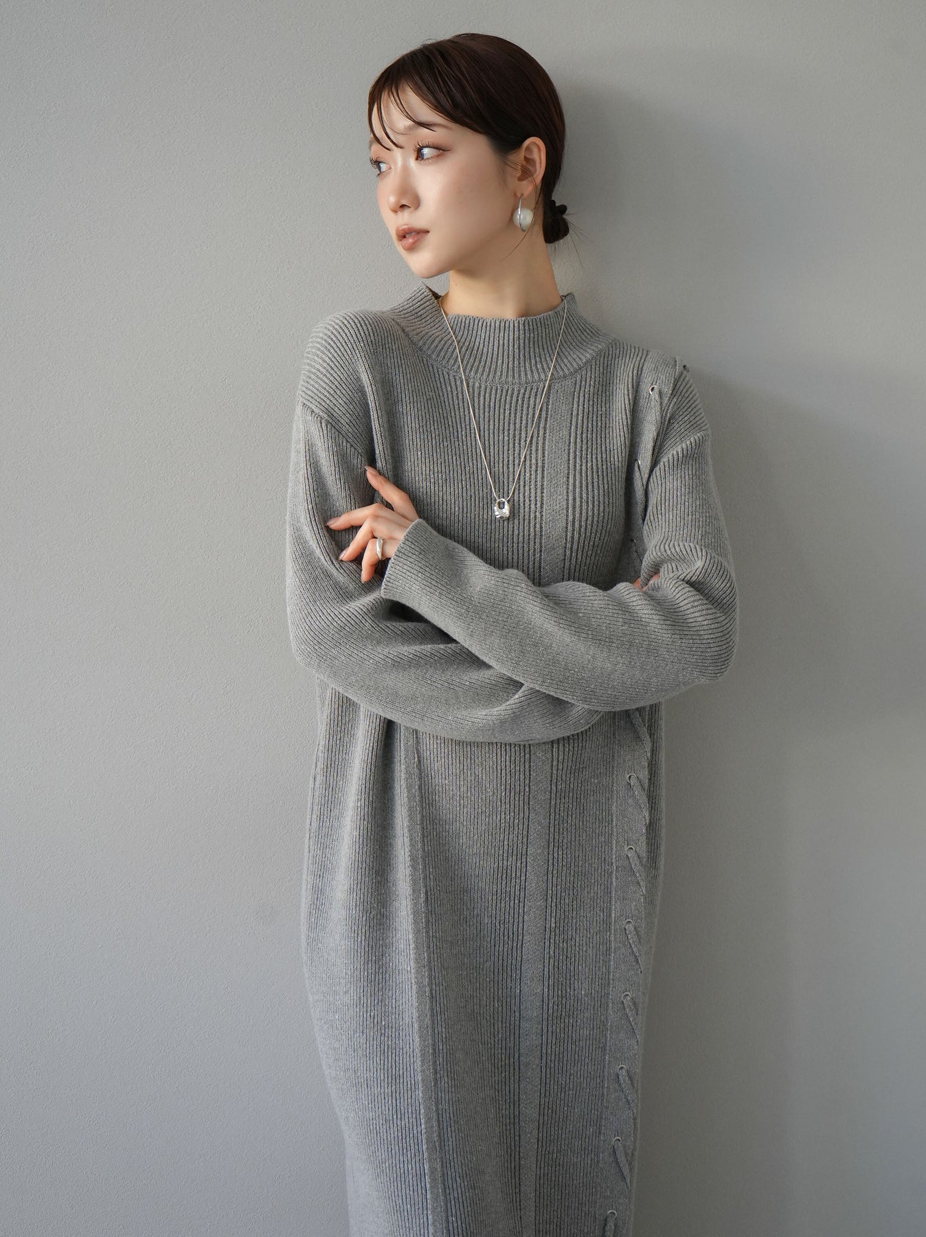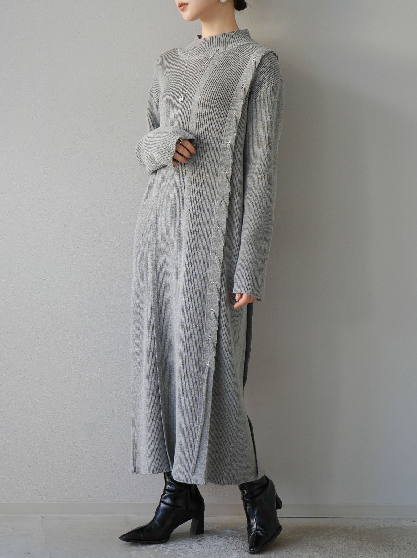 ◆ [預購] 不對稱繫帶高領針織連身裙