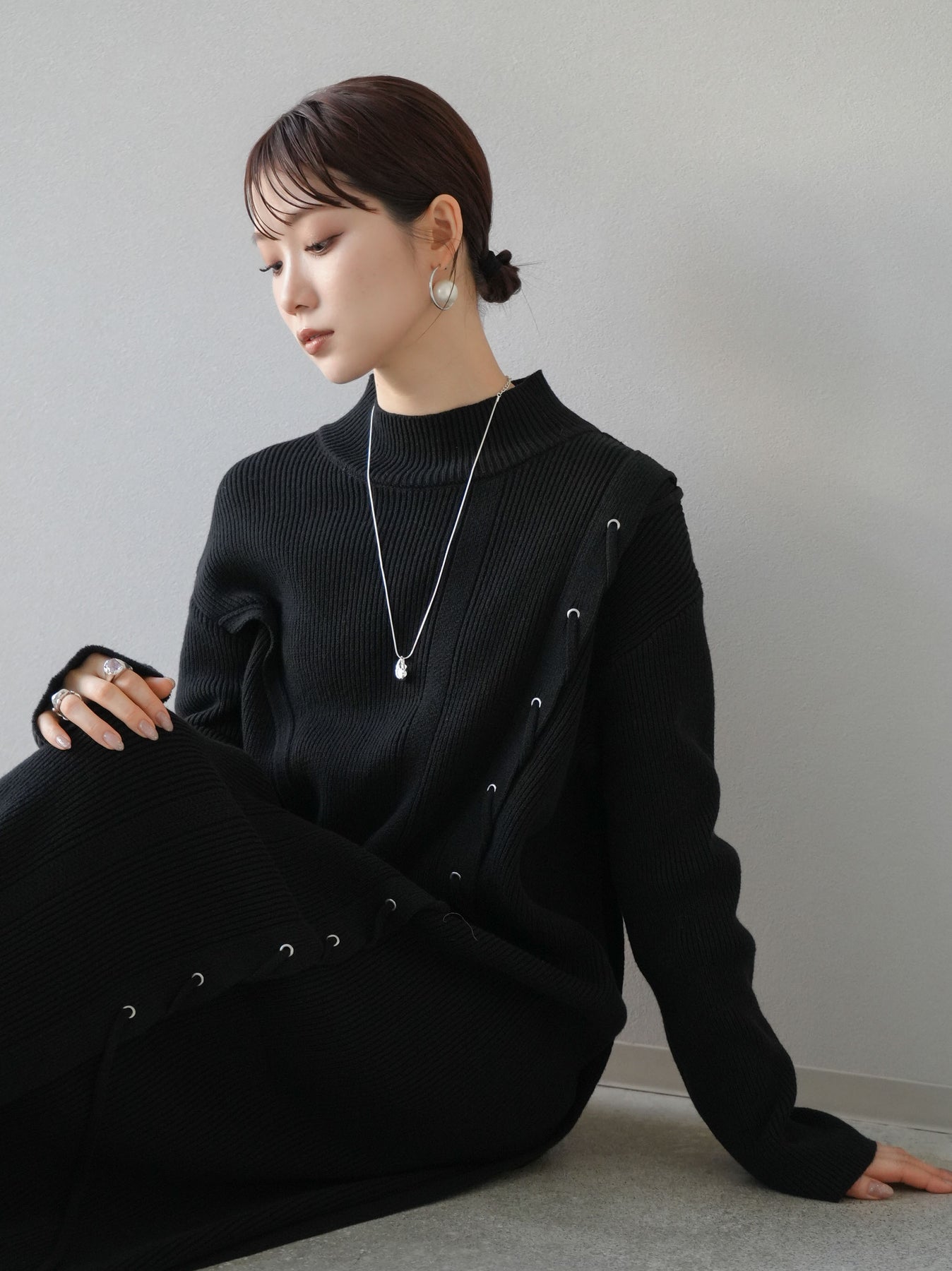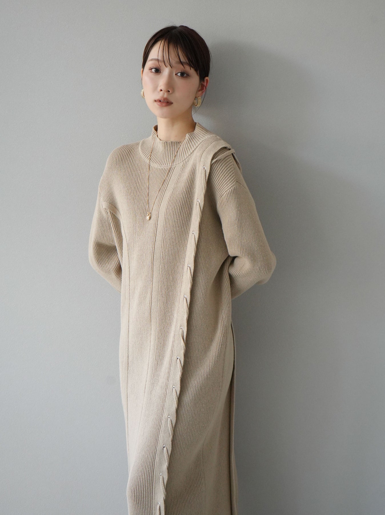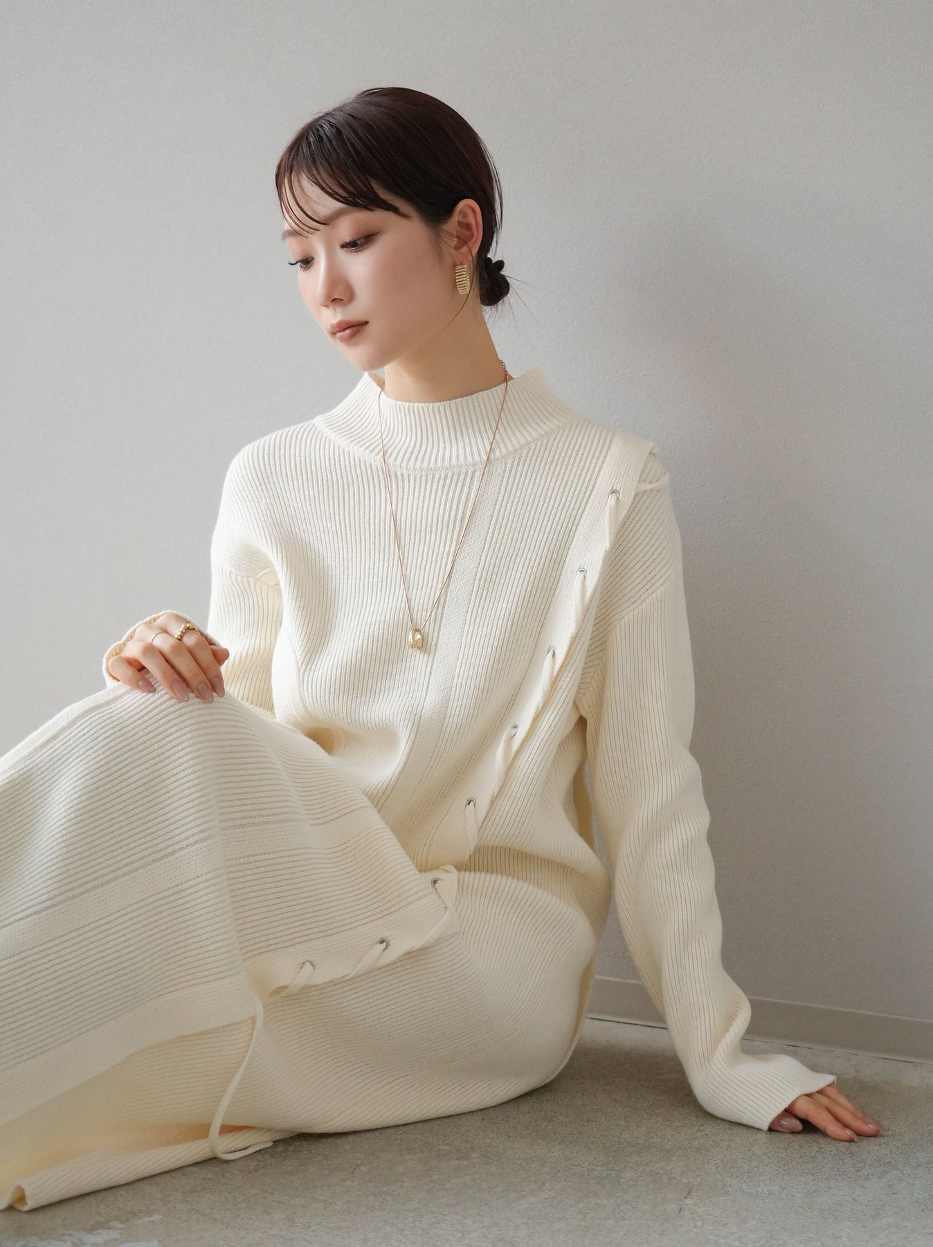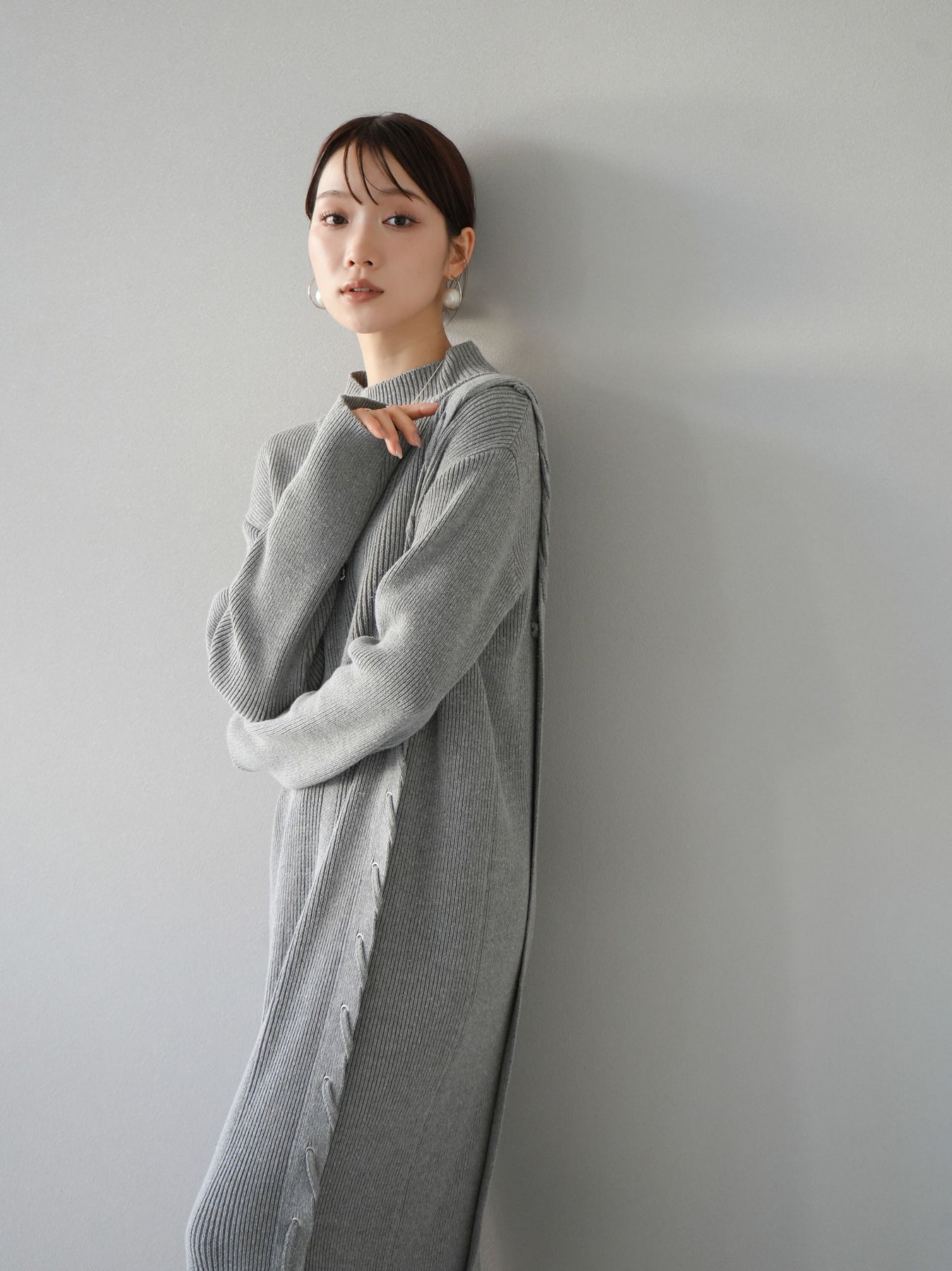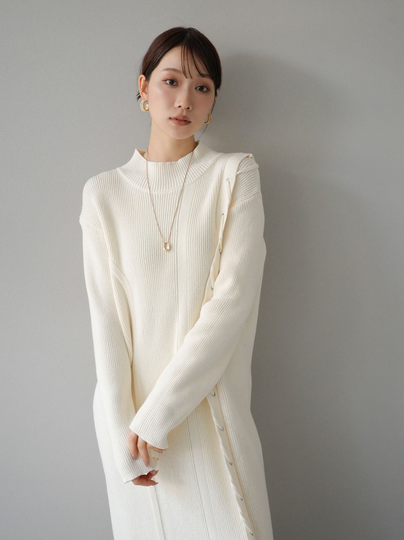 不對稱高領針織連身裙,飾有繫帶細節。簡單而獨特的設計使其成為一件可以單獨佩戴的時尚單品。寬鬆的輪廓帶來舒適的穿著體驗,適合從日常使用到特殊場合等各種場合。 ※除下裝、吊帶背心(內衣)以外的所有商品均不包含內衣。