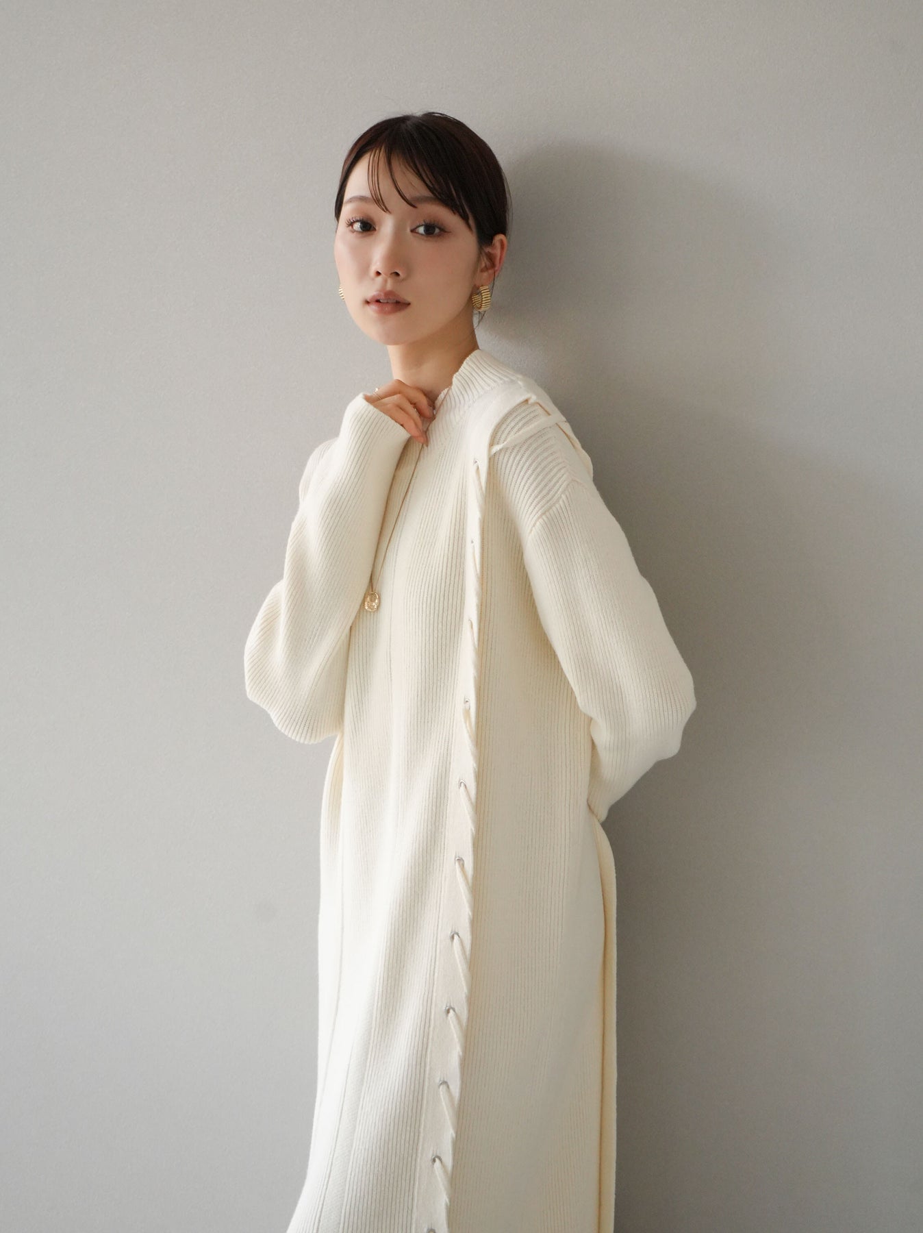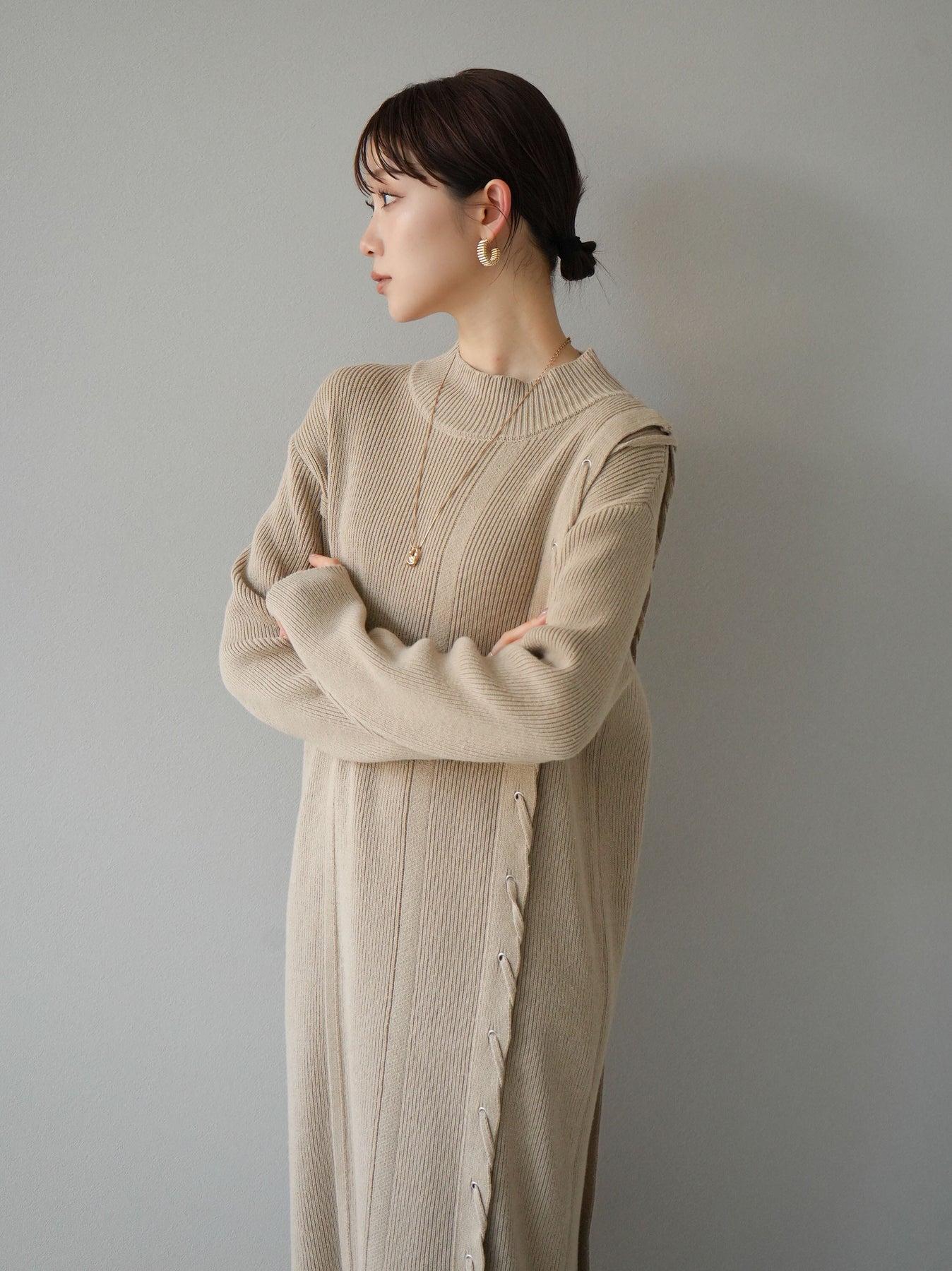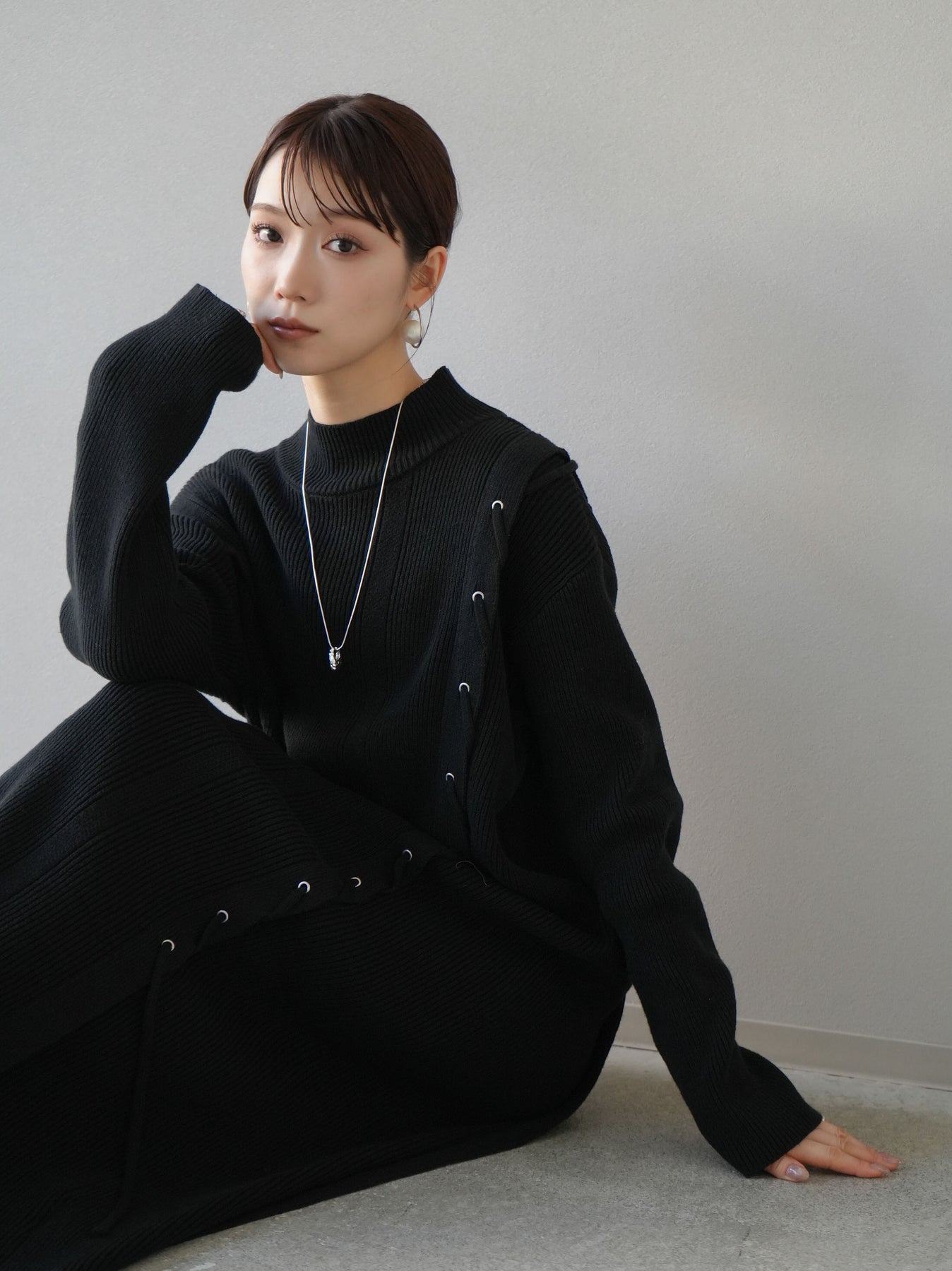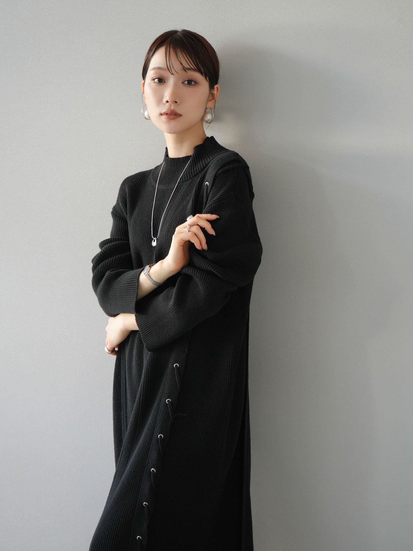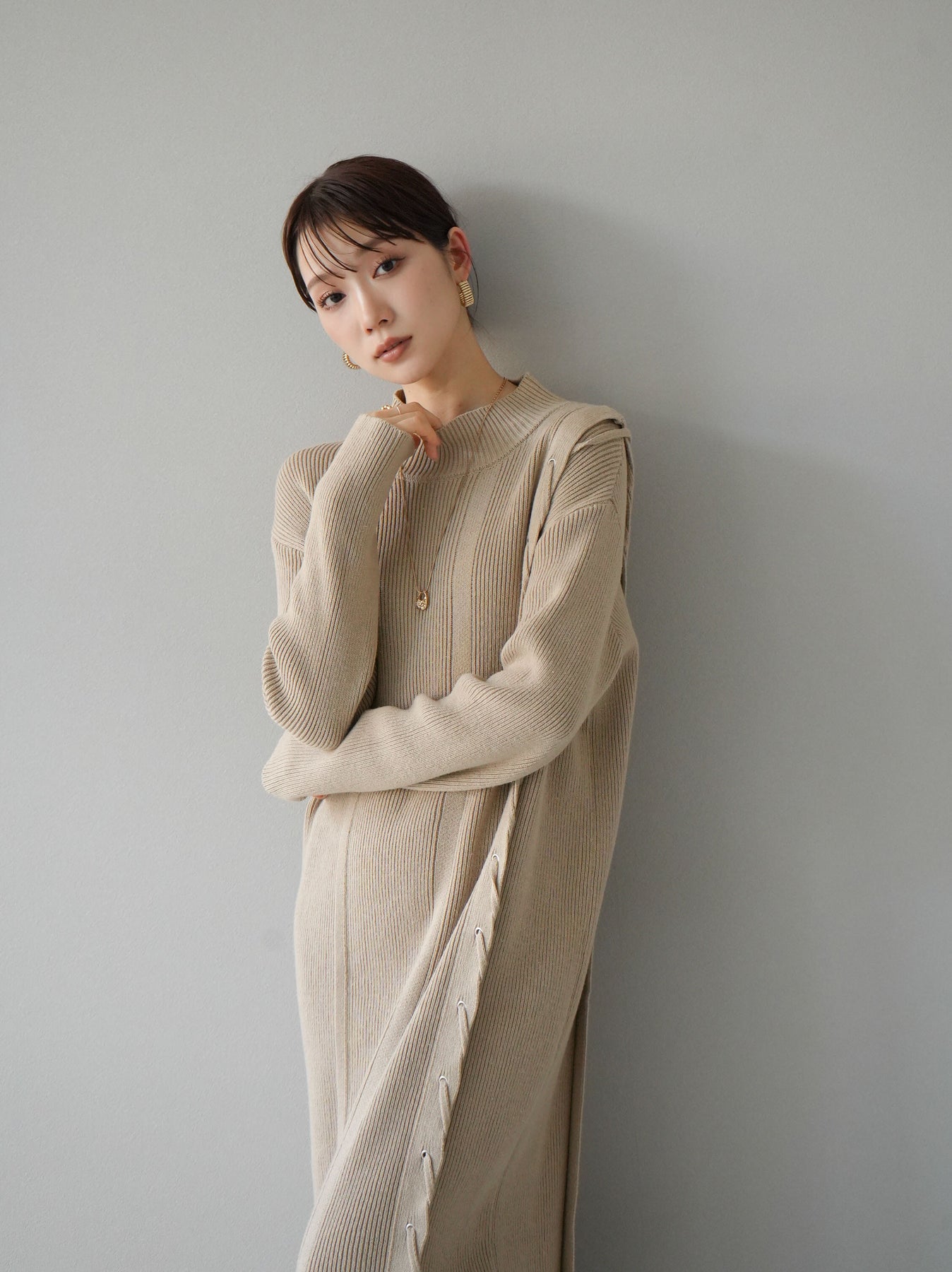 不對稱高領針織連身裙,飾有繫帶細節。簡單而獨特的設計使其成為一件可以單獨佩戴的時尚單品。寬鬆的輪廓帶來舒適的穿著體驗,適合從日常使用到特殊場合等各種場合。 ※除下裝、吊帶背心(內衣)以外的所有商品均不包含內衣。