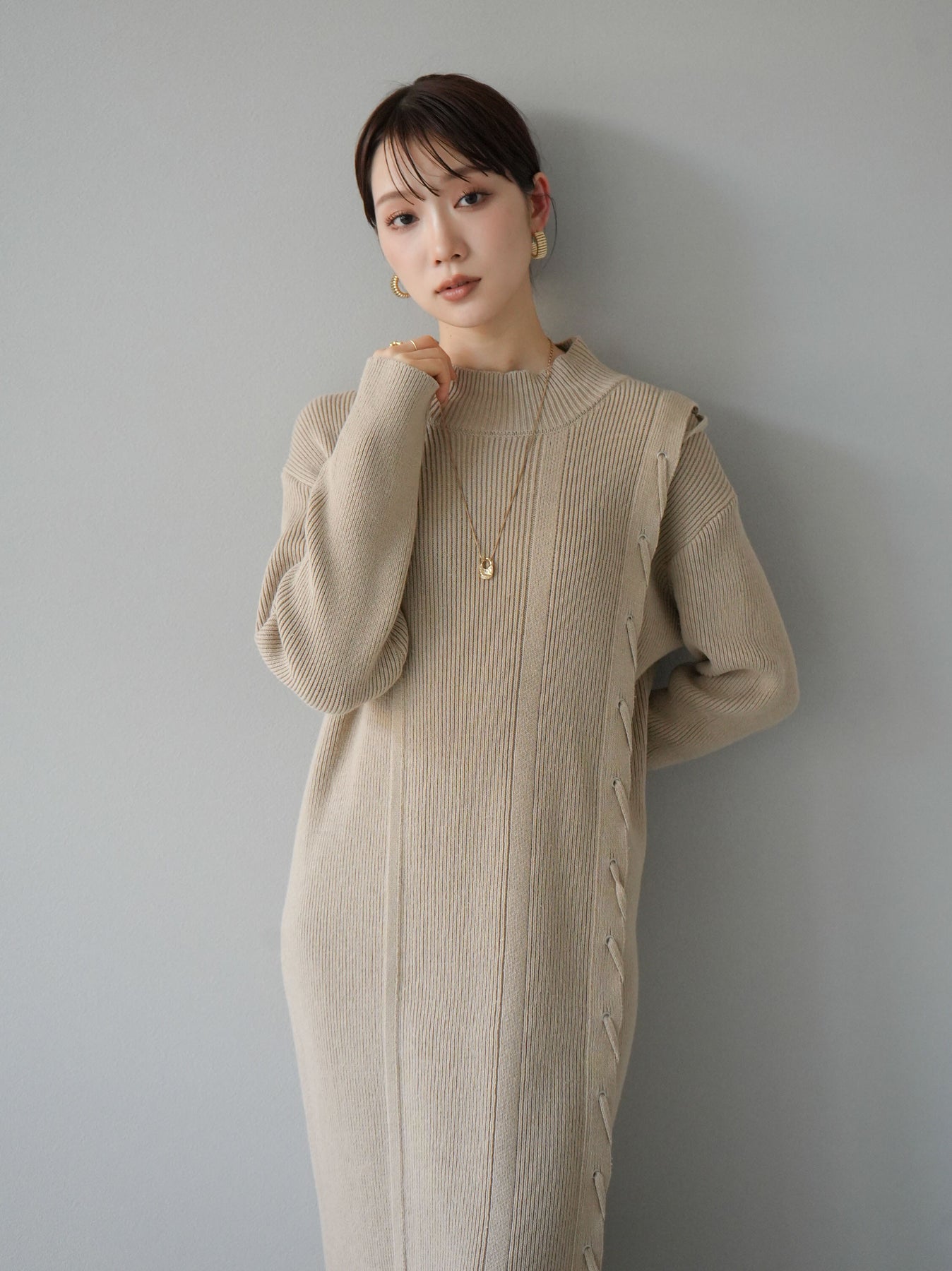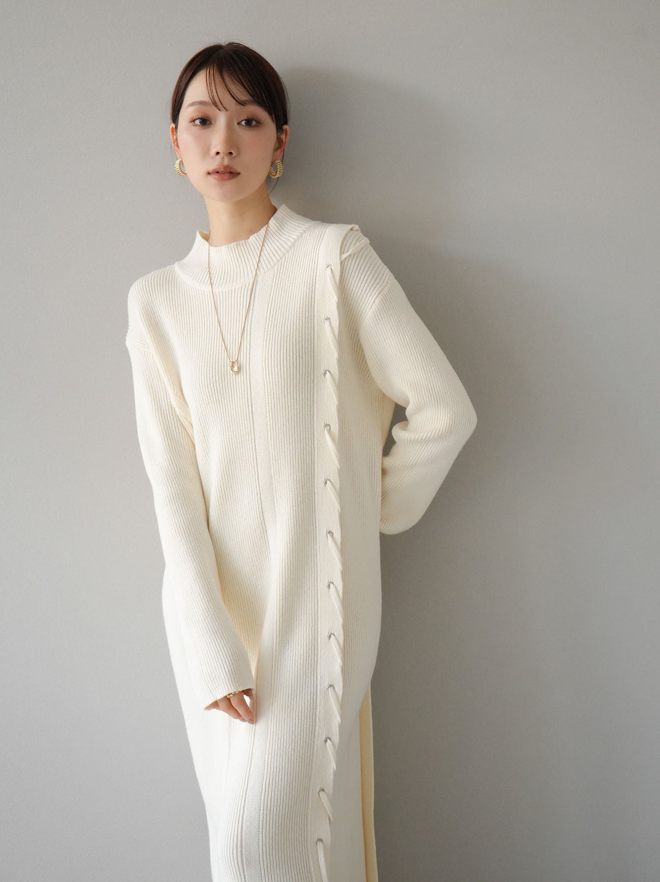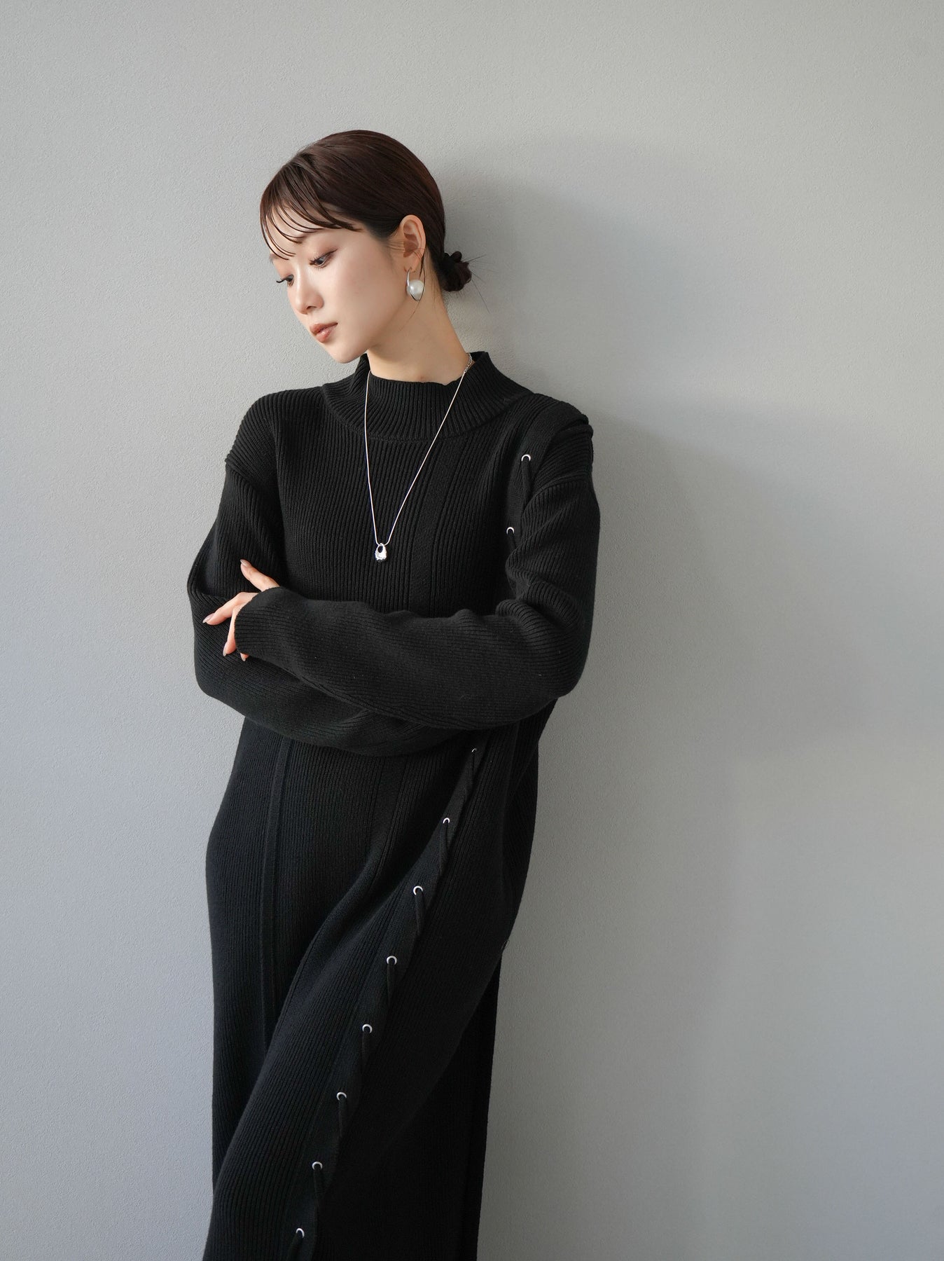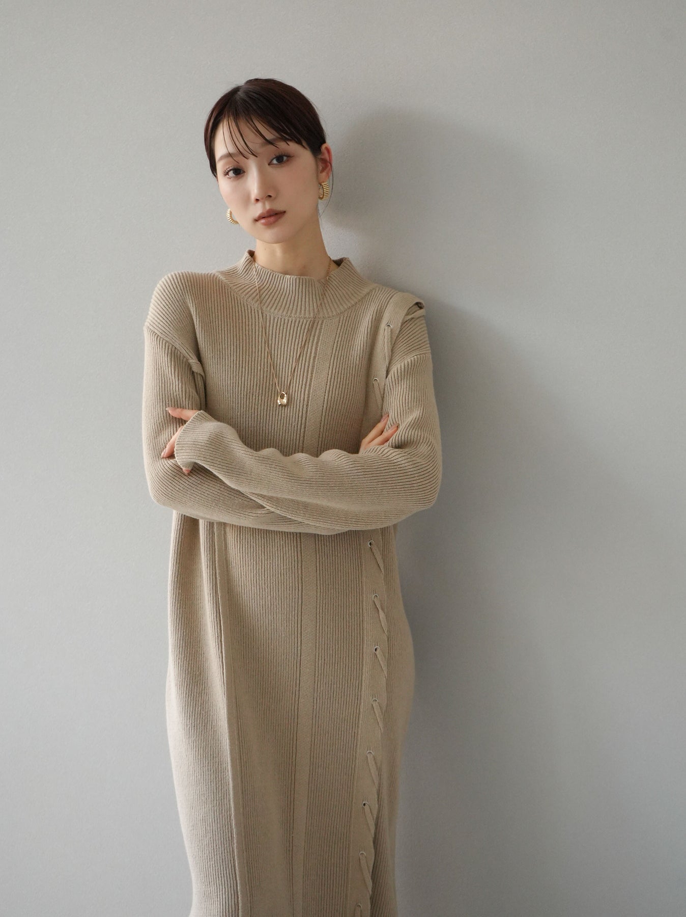 不對稱高領針織連身裙,飾有繫帶細節。簡單而獨特的設計使其成為一件可以單獨佩戴的時尚單品。寬鬆的輪廓帶來舒適的穿著體驗,適合從日常使用到特殊場合等各種場合。 ※除下裝、吊帶背心(內衣)以外的所有商品均不包含內衣。