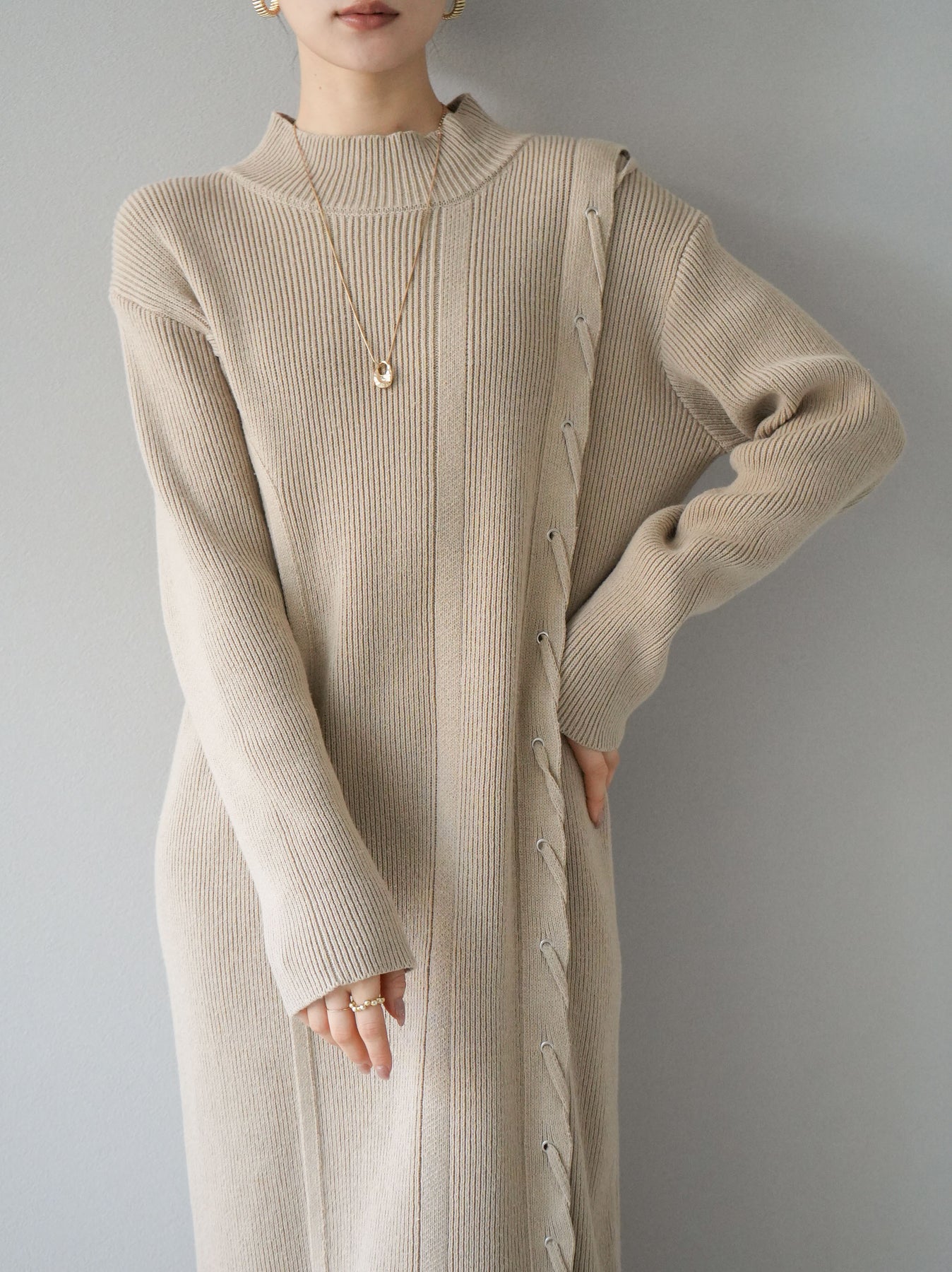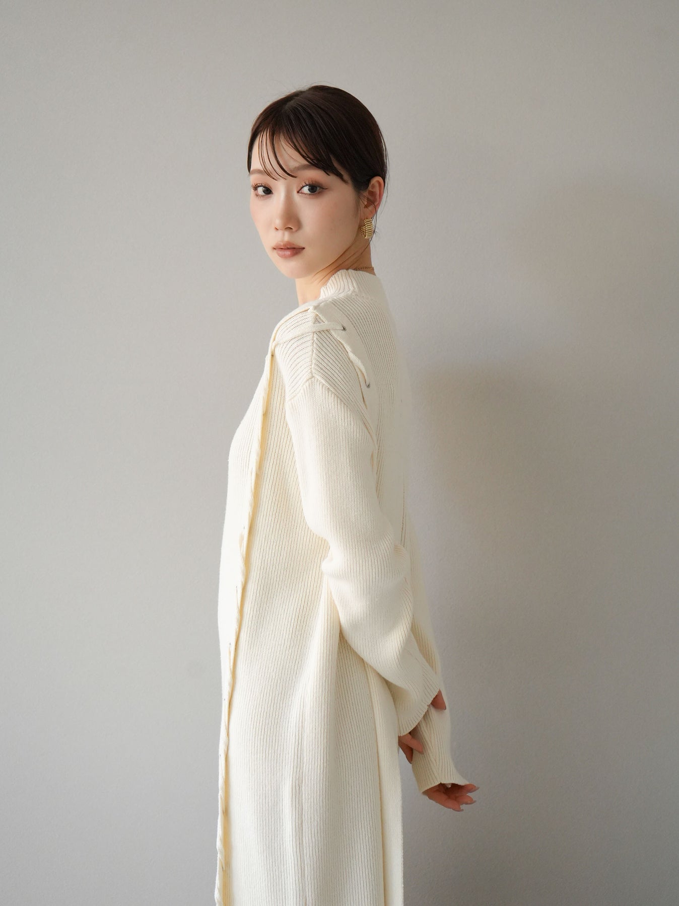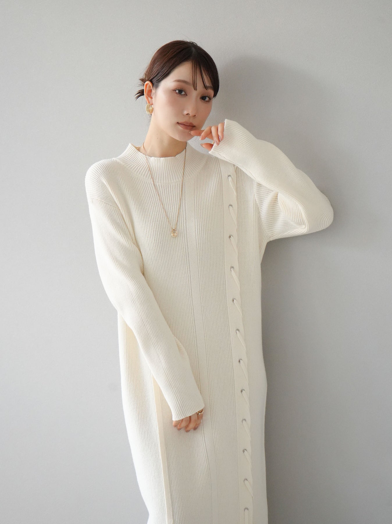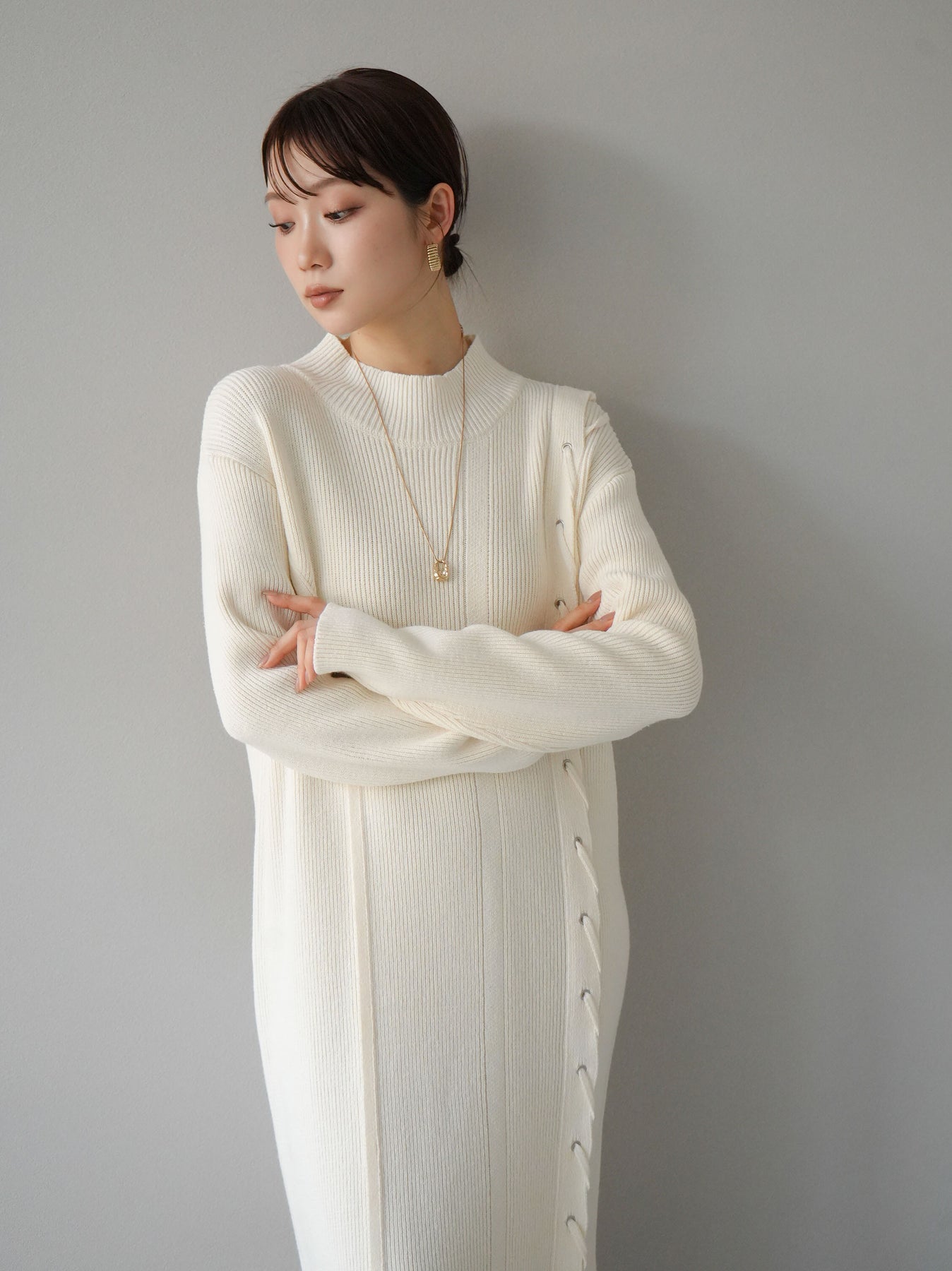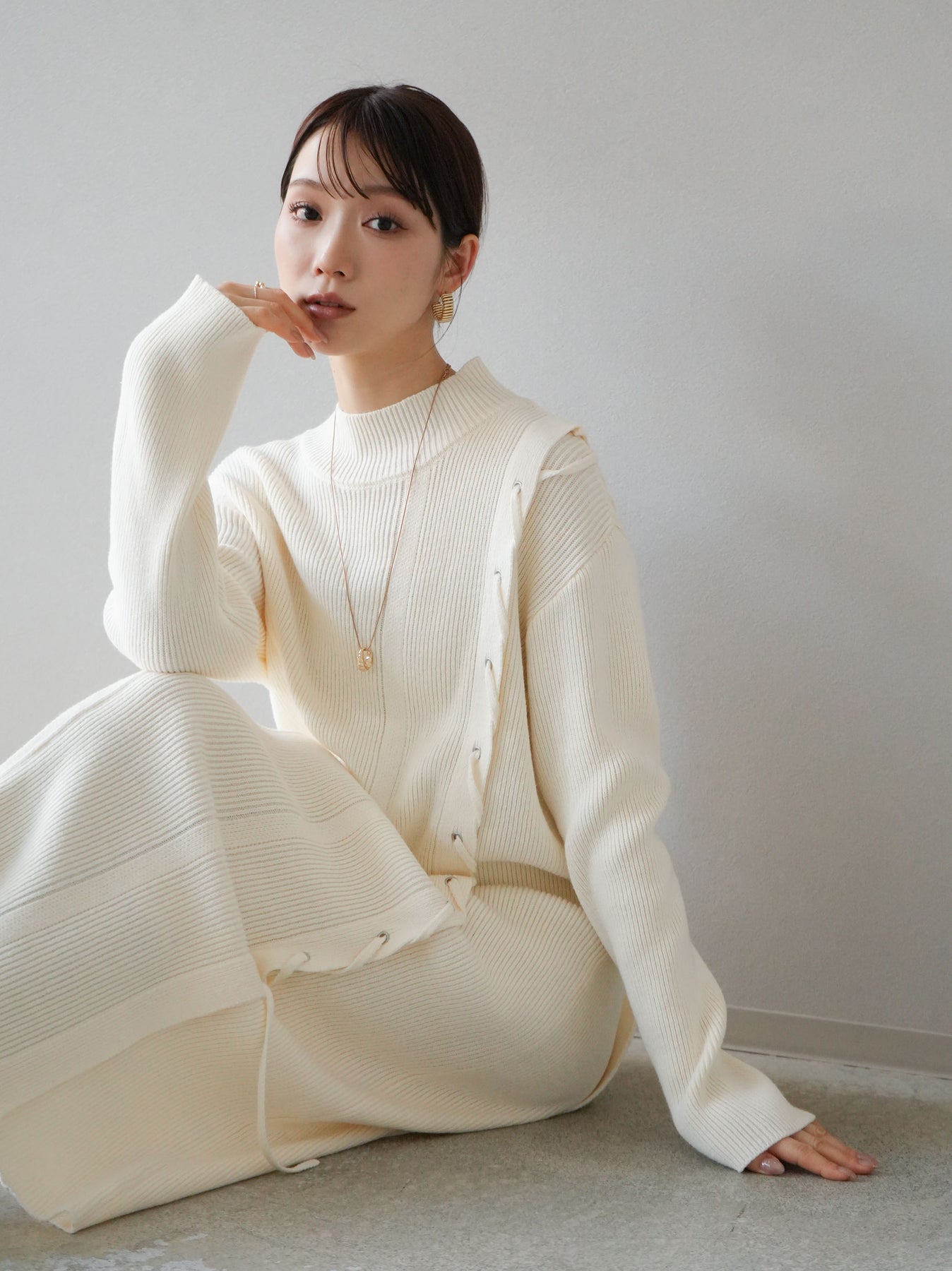 不對稱高領針織連身裙,飾有繫帶細節。簡單而獨特的設計使其成為一件可以單獨佩戴的時尚單品。寬鬆的輪廓帶來舒適的穿著體驗,適合從日常使用到特殊場合等各種場合。 ※除下裝、吊帶背心(內衣)以外的所有商品均不包含內衣。