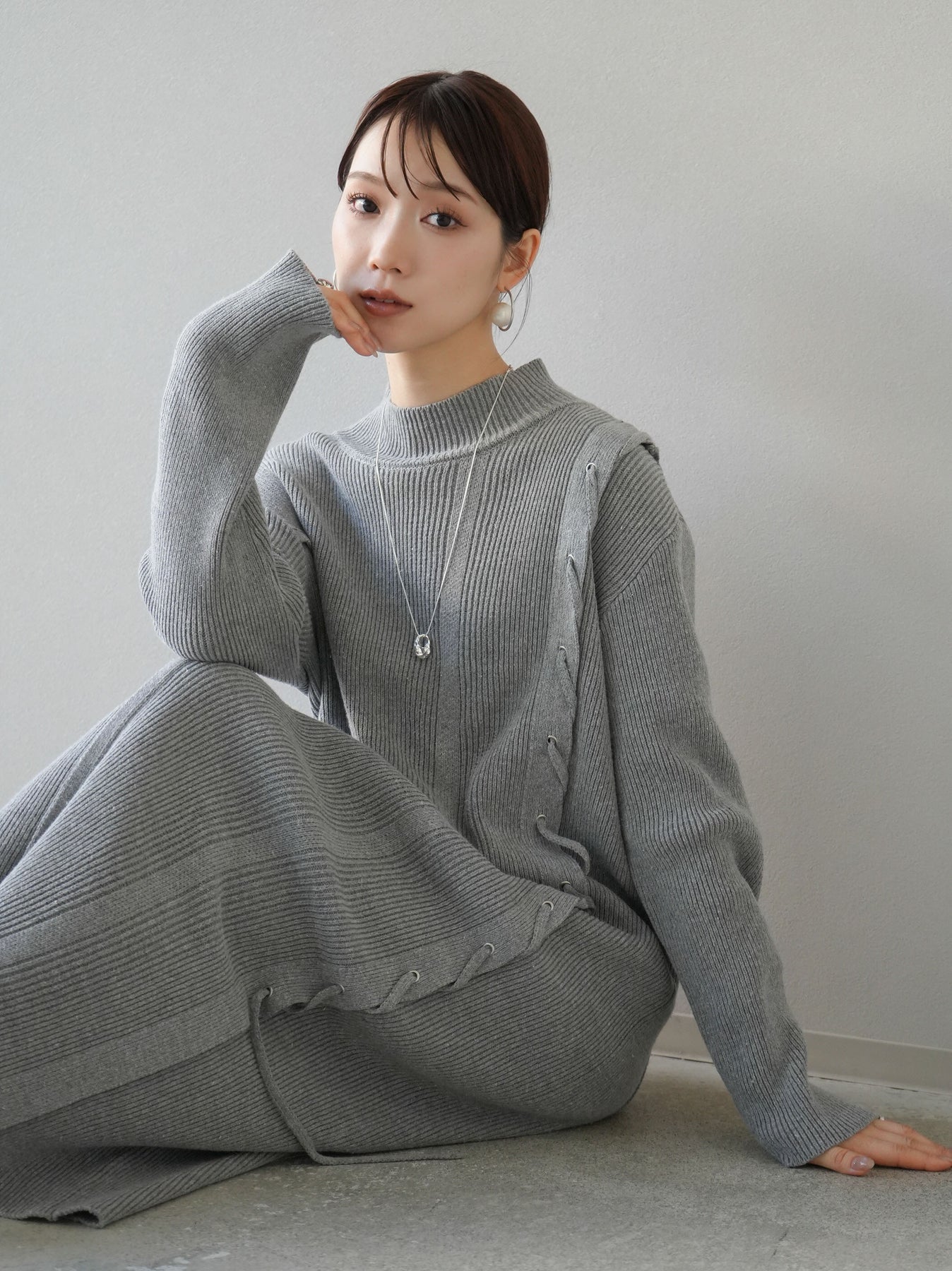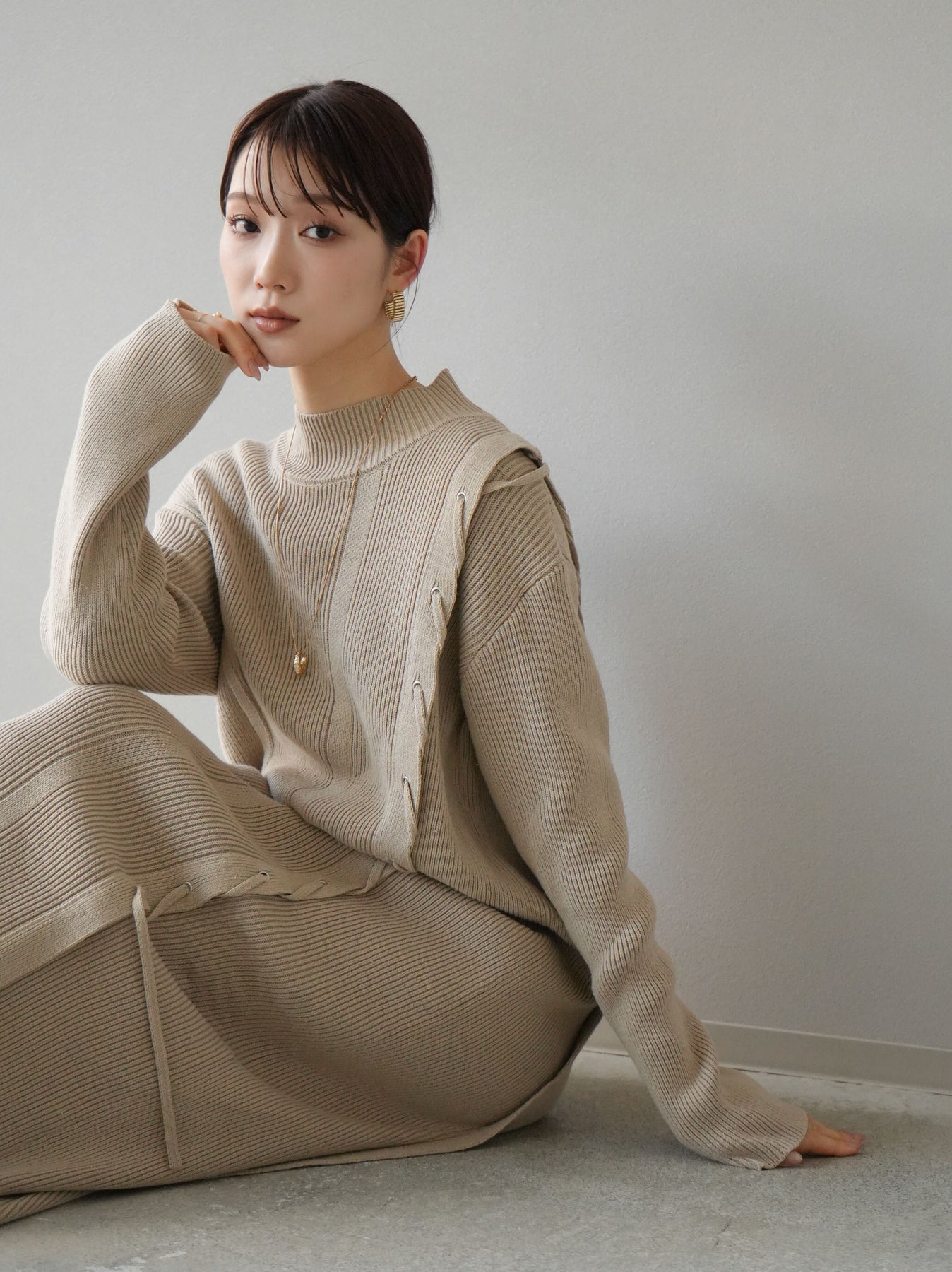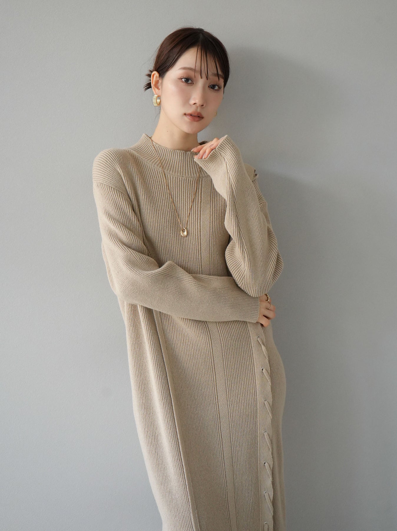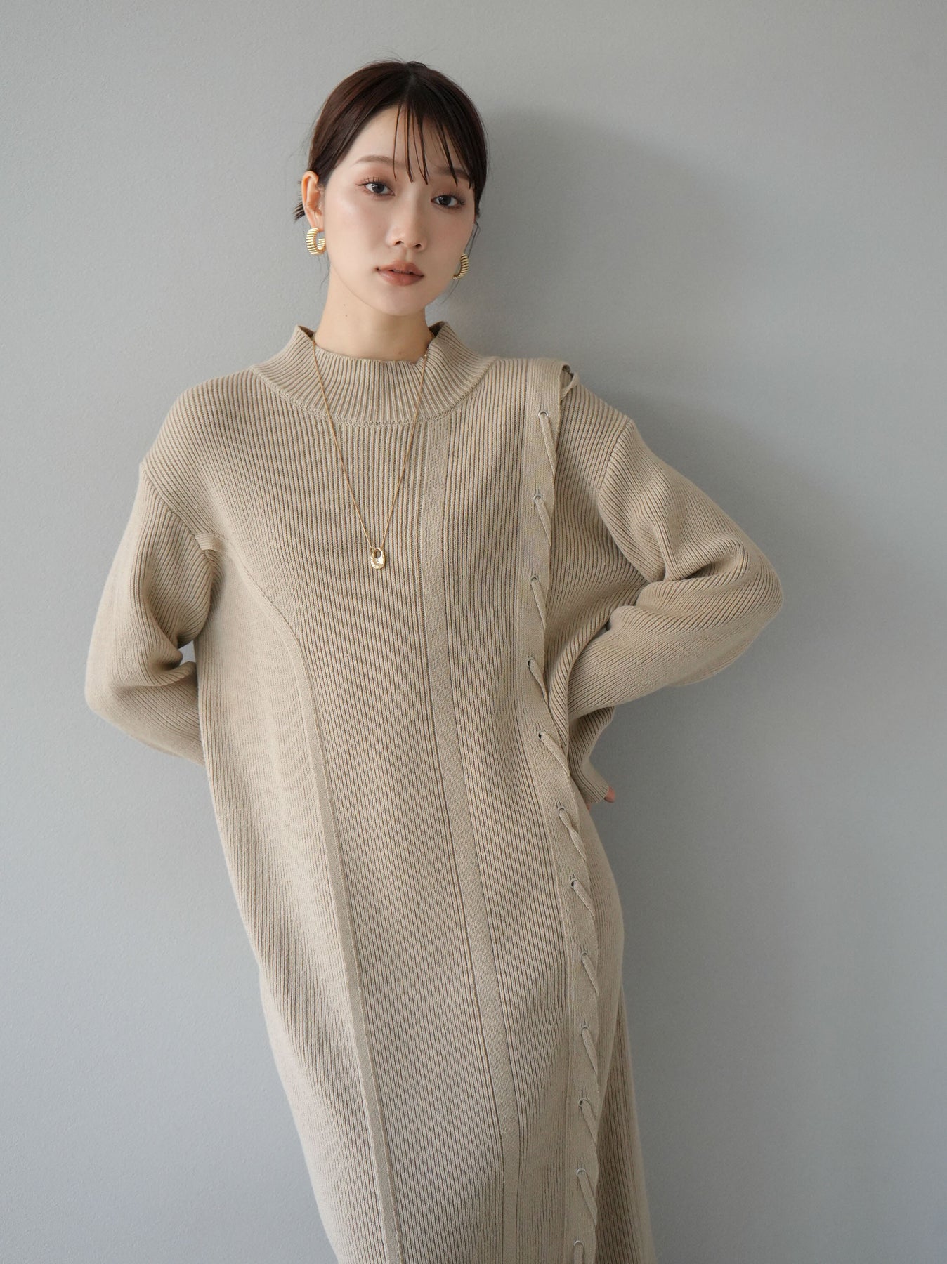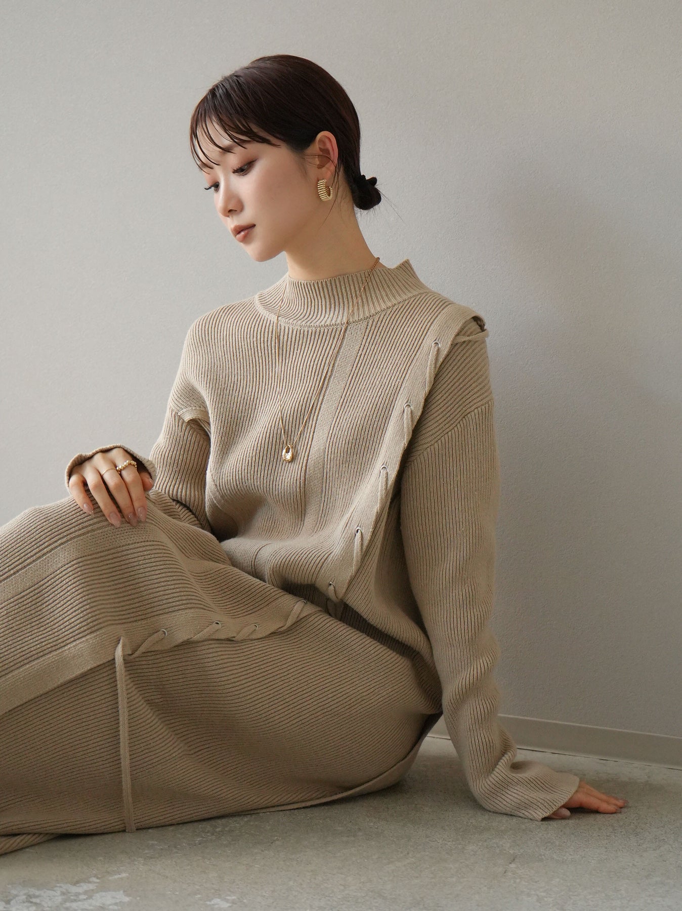 不對稱高領針織連身裙,飾有繫帶細節。簡單而獨特的設計使其成為一件可以單獨佩戴的時尚單品。寬鬆的輪廓帶來舒適的穿著體驗,適合從日常使用到特殊場合等各種場合。 ※除下裝、吊帶背心(內衣)以外的所有商品均不包含內衣。