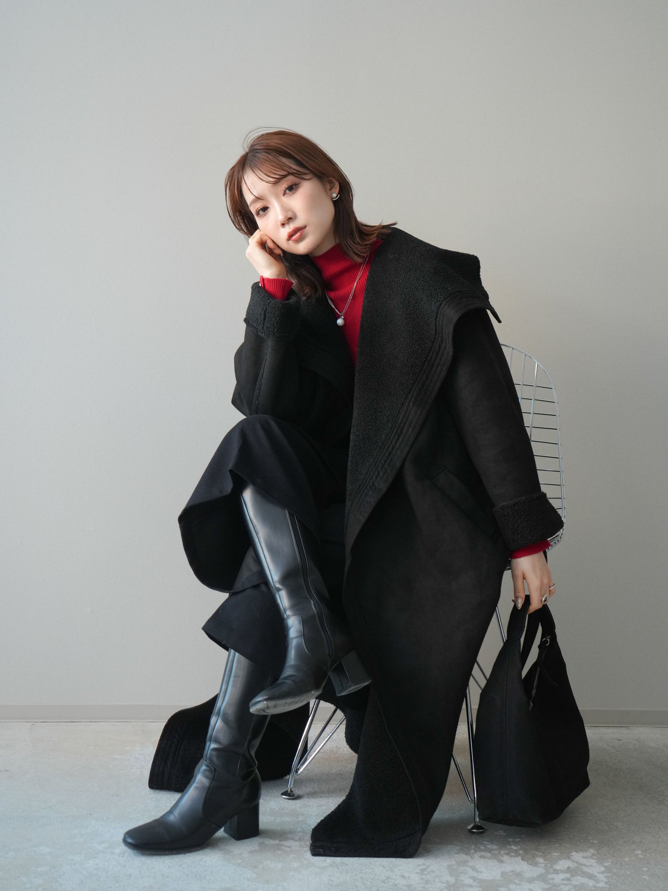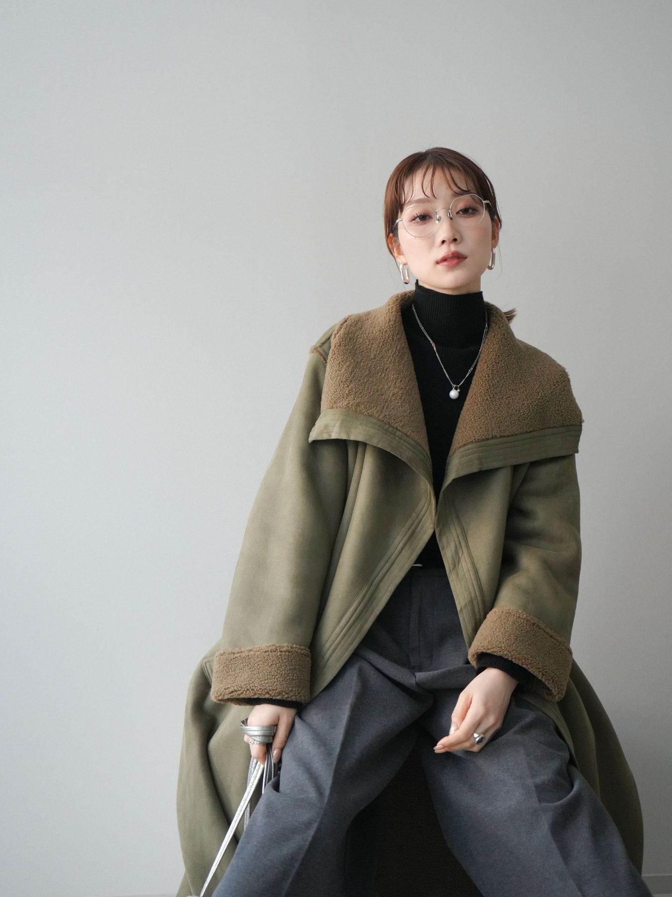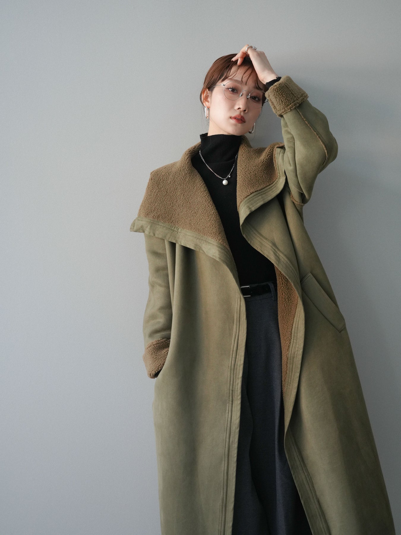 存在感のあるビッグカラーが視線を惹きつけるムートンコート。ふんわりと柔らかな肌ざわりと暖かな着心地が魅力で、羽織るだけで冬のスタイルを上品かつリラックスムードに仕上げてくれます。しっかりとした厚みがありながらも軽やかに着られるバランスに整え、付属のウエストベルトでシルエットの調整も可能。ラフに羽織って抜け感を出したり、ベルトを締めてフェミニンにまとめたりと、シーンに合わせた着こなしを楽しめる一枚です。存在感がありつつ合わせやすいデザインで、冬のワードローブにぜひ加えたい主役級アウターです。