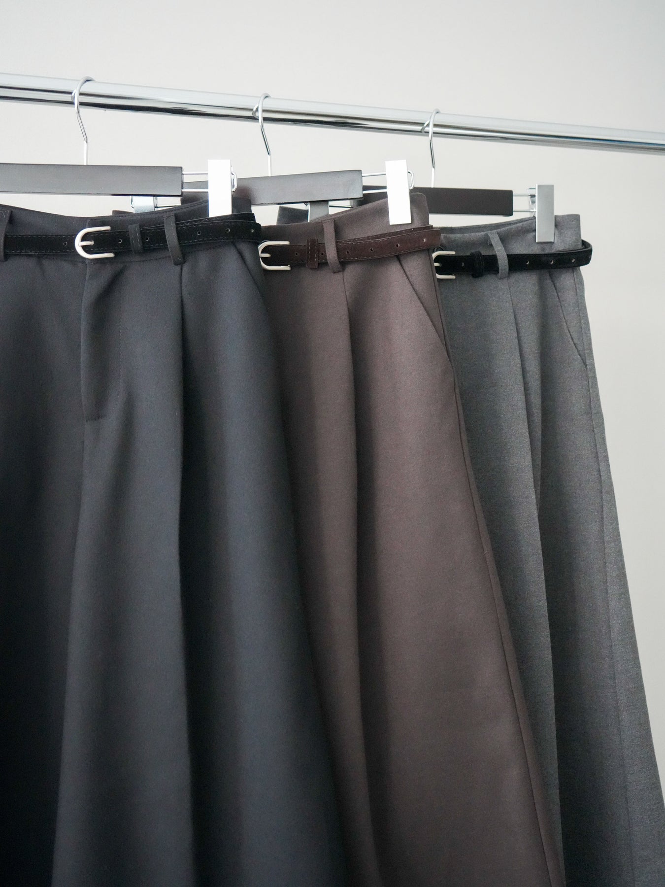 ◆ [予約]ベルト付ウールタッチミディアムパンツ