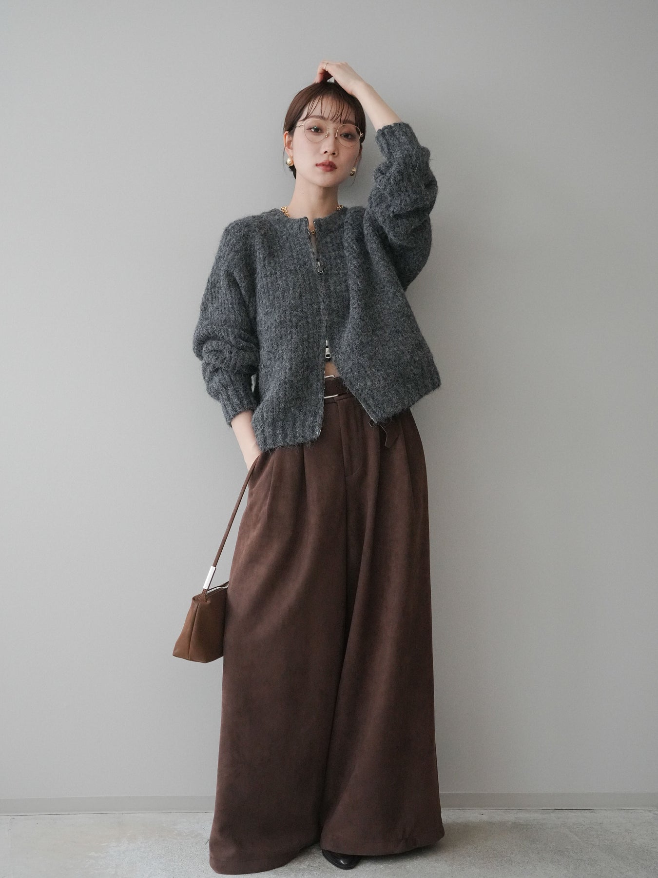 しなやかなスエード調素材が上品な印象を与えるタックワイドパンツ。タックを入れることで生まれる美しい落ち感と立体的なシルエットが、歩くたびに軽やかな揺れを演出します。ウエストには存在感のあるベルトと遊び心のあるモチーフチャームをセットし、シンプルなコーディネートのアクセントに。ゆとりのあるワイドシルエットながらも、ウエスト周りはすっきりと見えるバランスに仕上げており、スタイルアップを叶えてくれます。デイリーからきれいめまで幅広いシーンで活躍する万能な一本です。