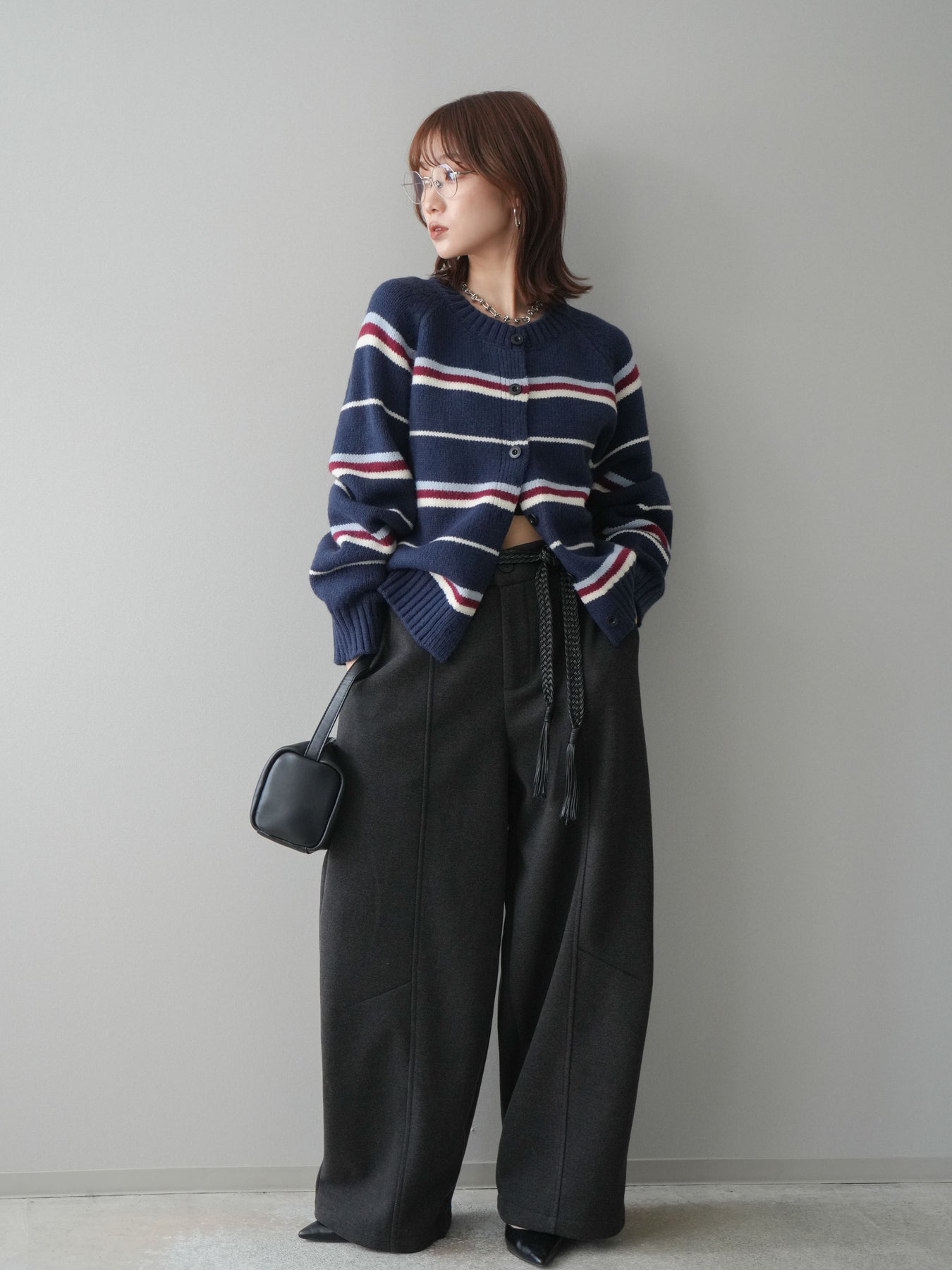 裏起毛の暖かみと快適な穿き心地を兼ね備えたカーブシルエットパンツ。 緩やかな丸みを描くシルエットとセンターシームが、立体感と脚のラインをきれいに見せてくれます。ウエストには取り外し可能な共布ベルト付きで、スタイルにメリハリをプラス。ヒップや太ももまわりはゆったりと、裾にかけてすっきりとしたバランスで、カジュアルからきれいめまで幅広く着回せる一本です。