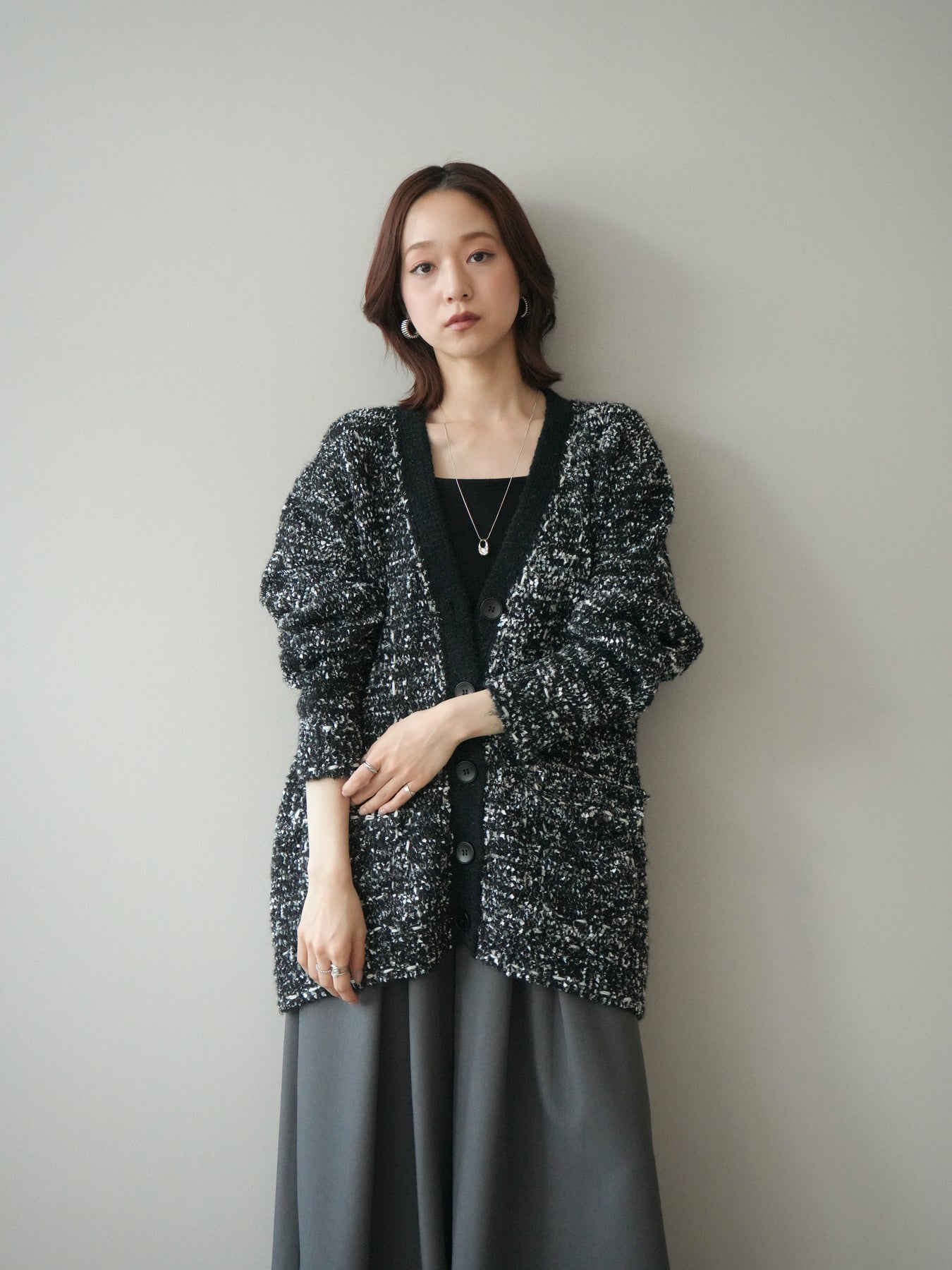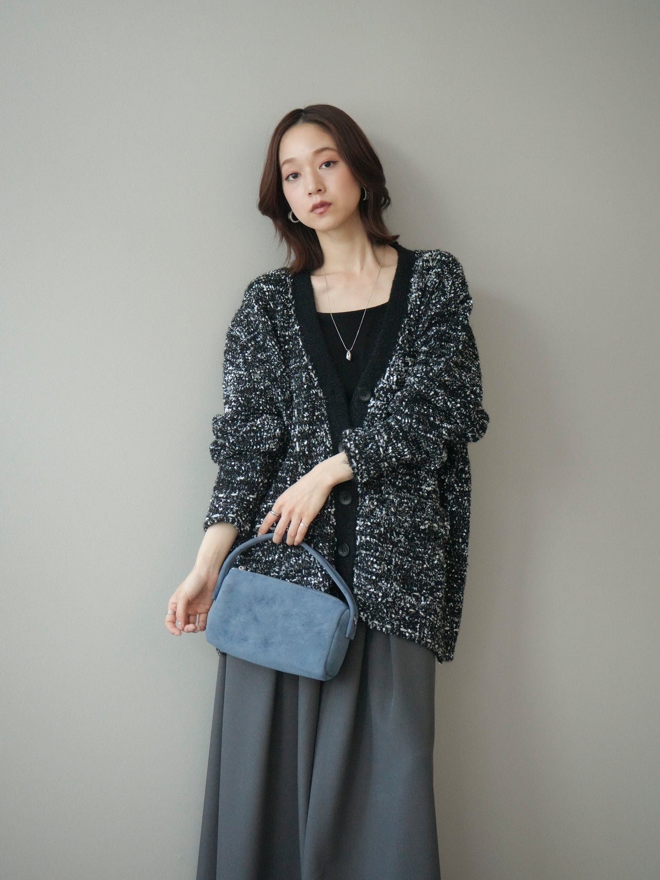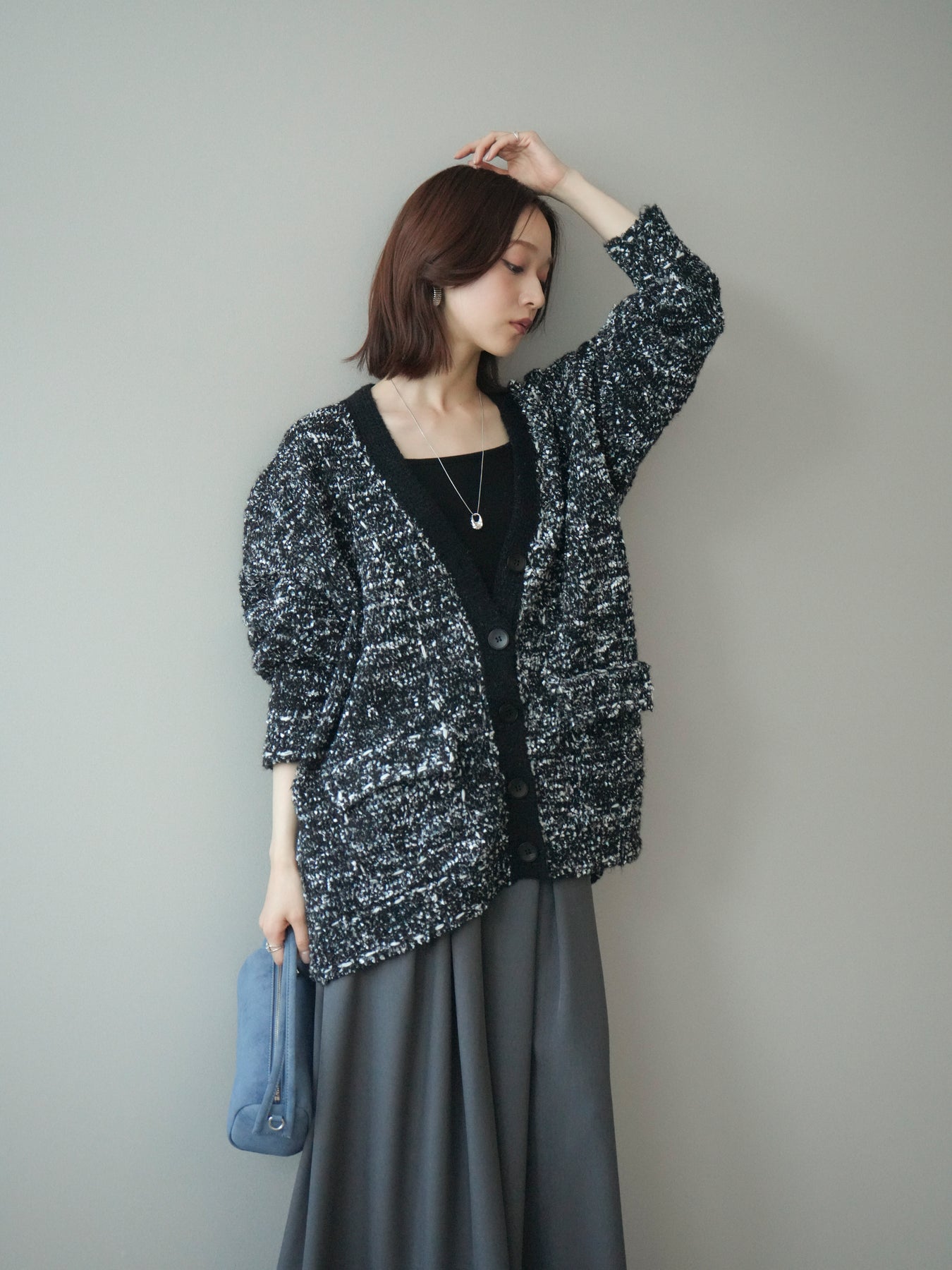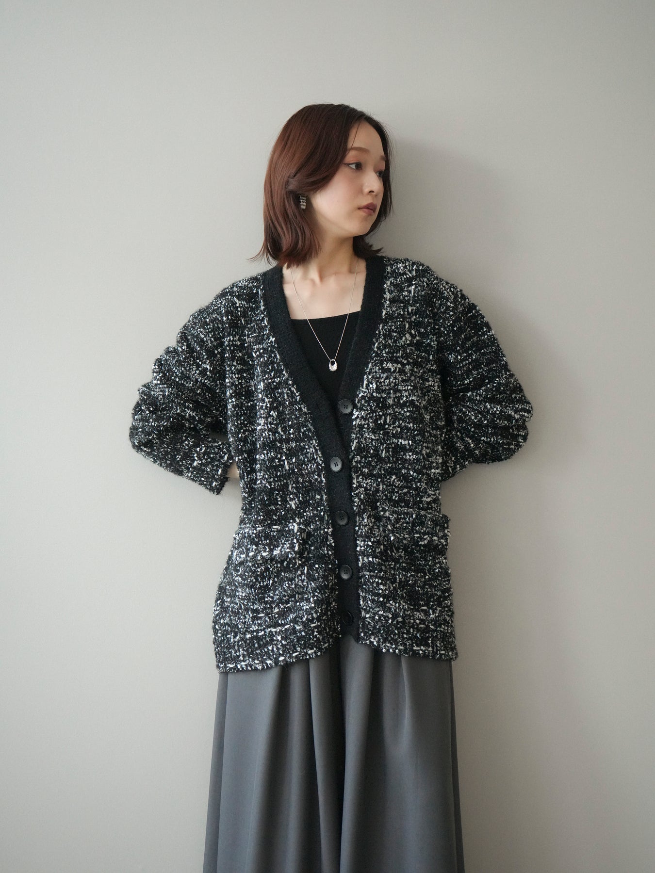 表情豊かなモールネップ素材が魅力のニットカーディガン。 細かな糸の表情が奥行きを生み、シンプルながらも存在感のある仕上がりです。 落ち着いた印象の中に程よい華やかさがあり、さっと羽織るだけでコーディネートを引き締めてくれます。 すっきりとした印象のデザインで、カジュアルからきれいめまで幅広いスタイリングにマッチ。 季節の変わり目や室内外の温度調整にも活躍する、着回し力の高い一着です。