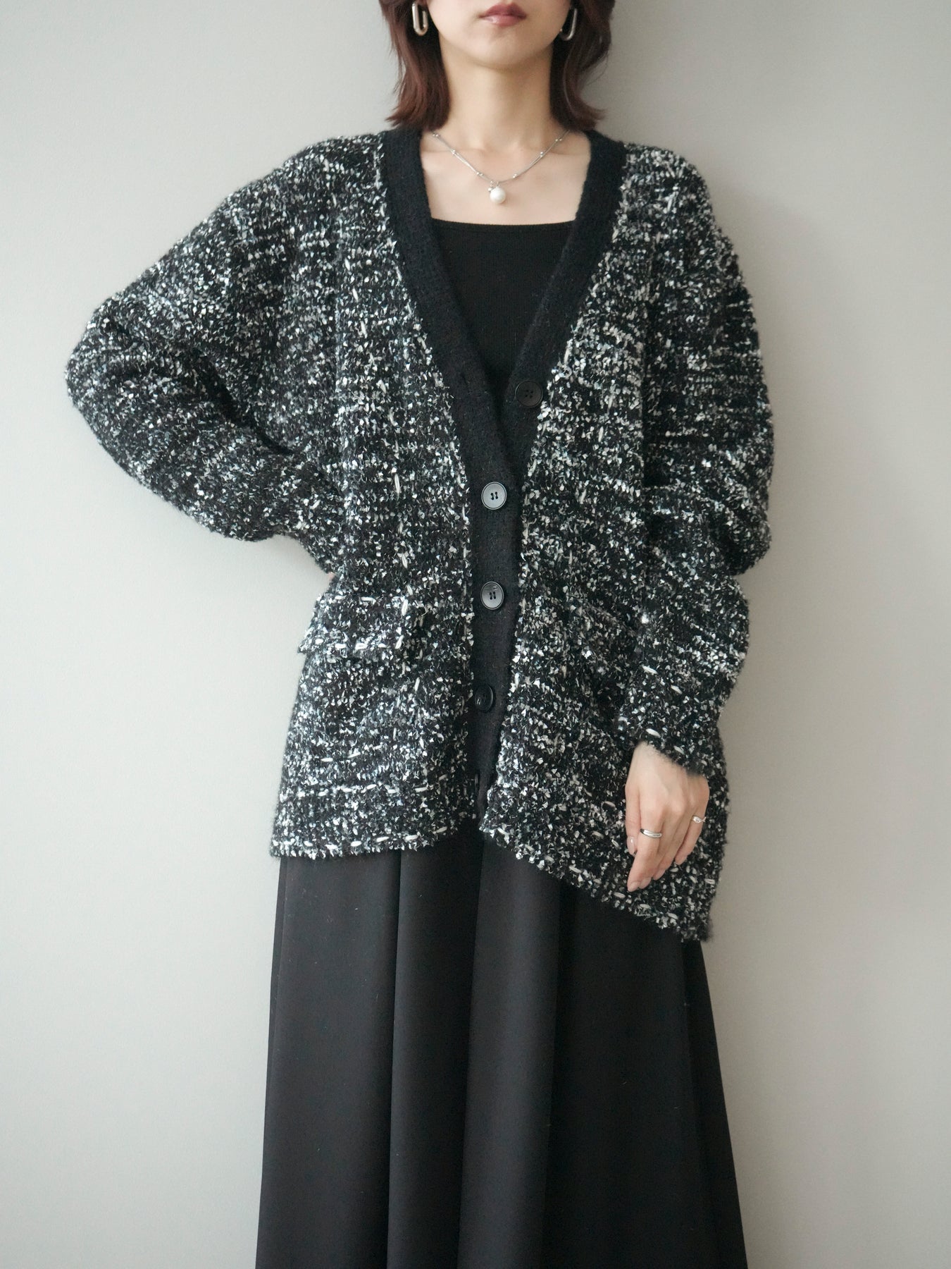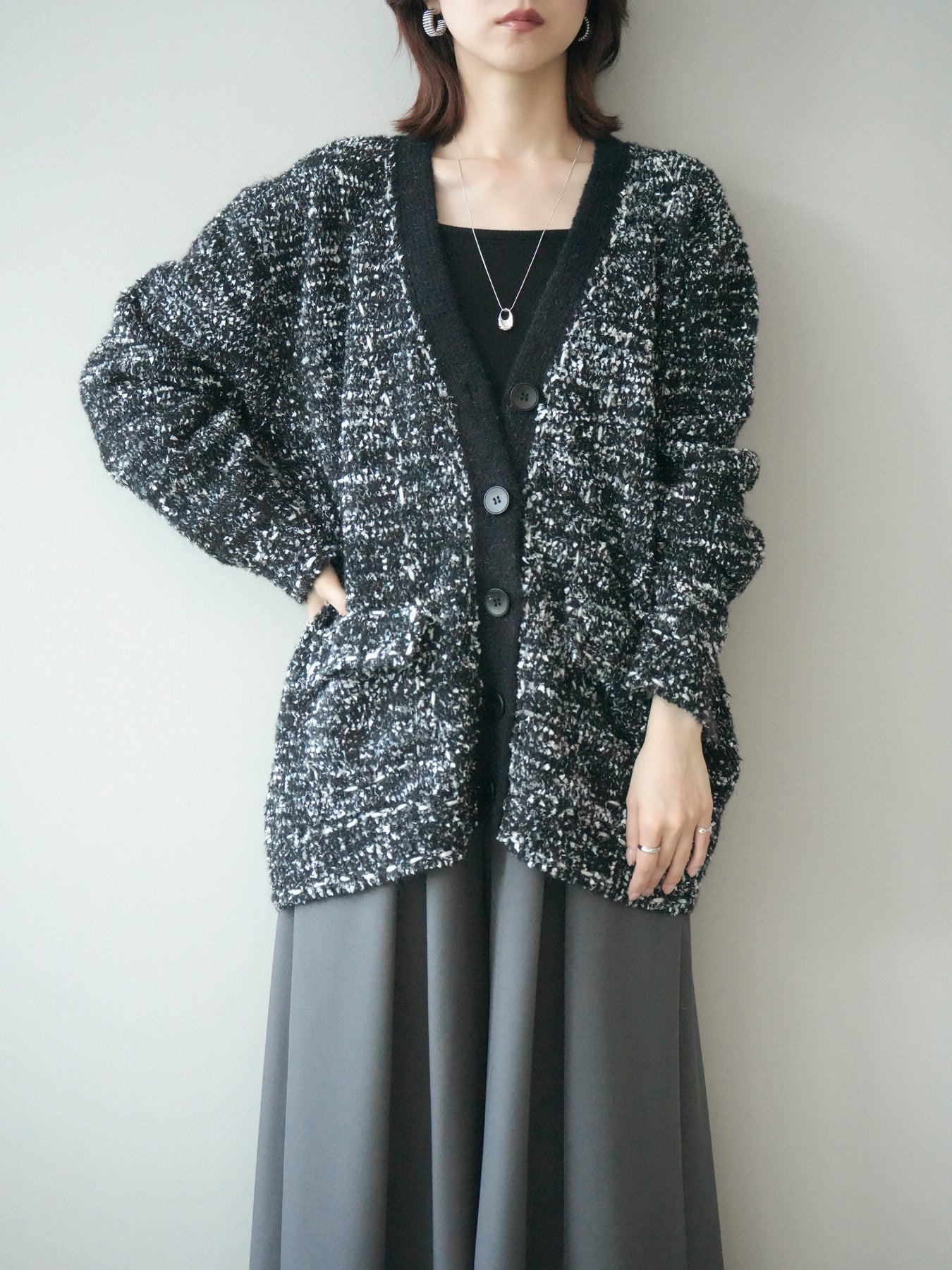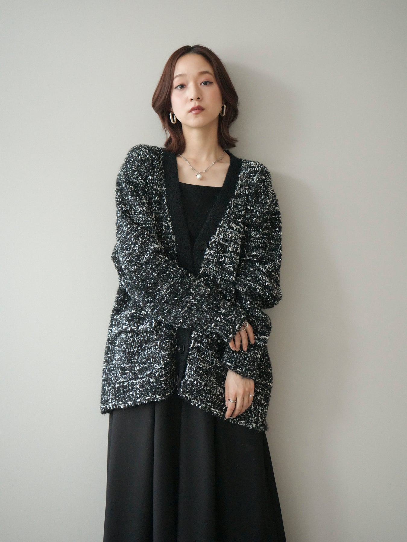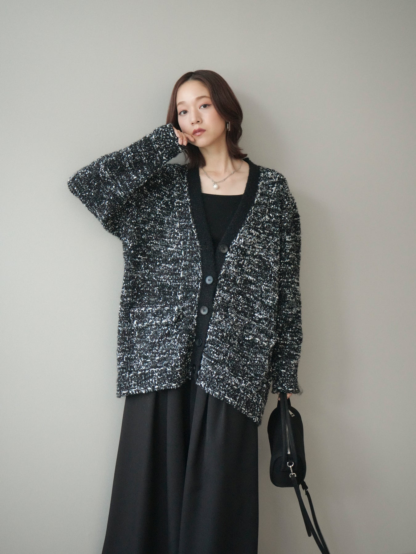 表情豊かなモールネップ素材が魅力のニットカーディガン。 細かな糸の表情が奥行きを生み、シンプルながらも存在感のある仕上がりです。 落ち着いた印象の中に程よい華やかさがあり、さっと羽織るだけでコーディネートを引き締めてくれます。 すっきりとした印象のデザインで、カジュアルからきれいめまで幅広いスタイリングにマッチ。 季節の変わり目や室内外の温度調整にも活躍する、着回し力の高い一着です。