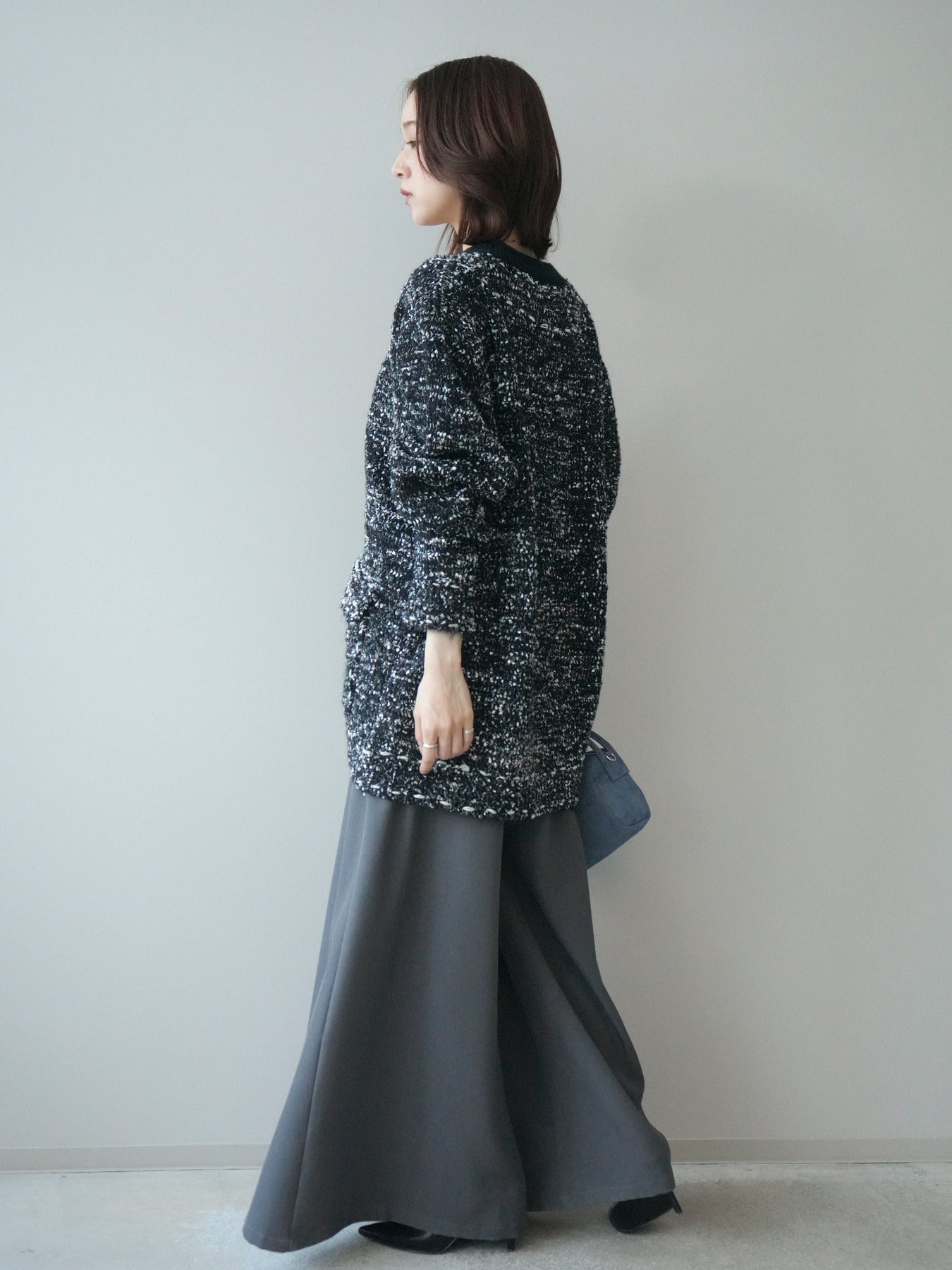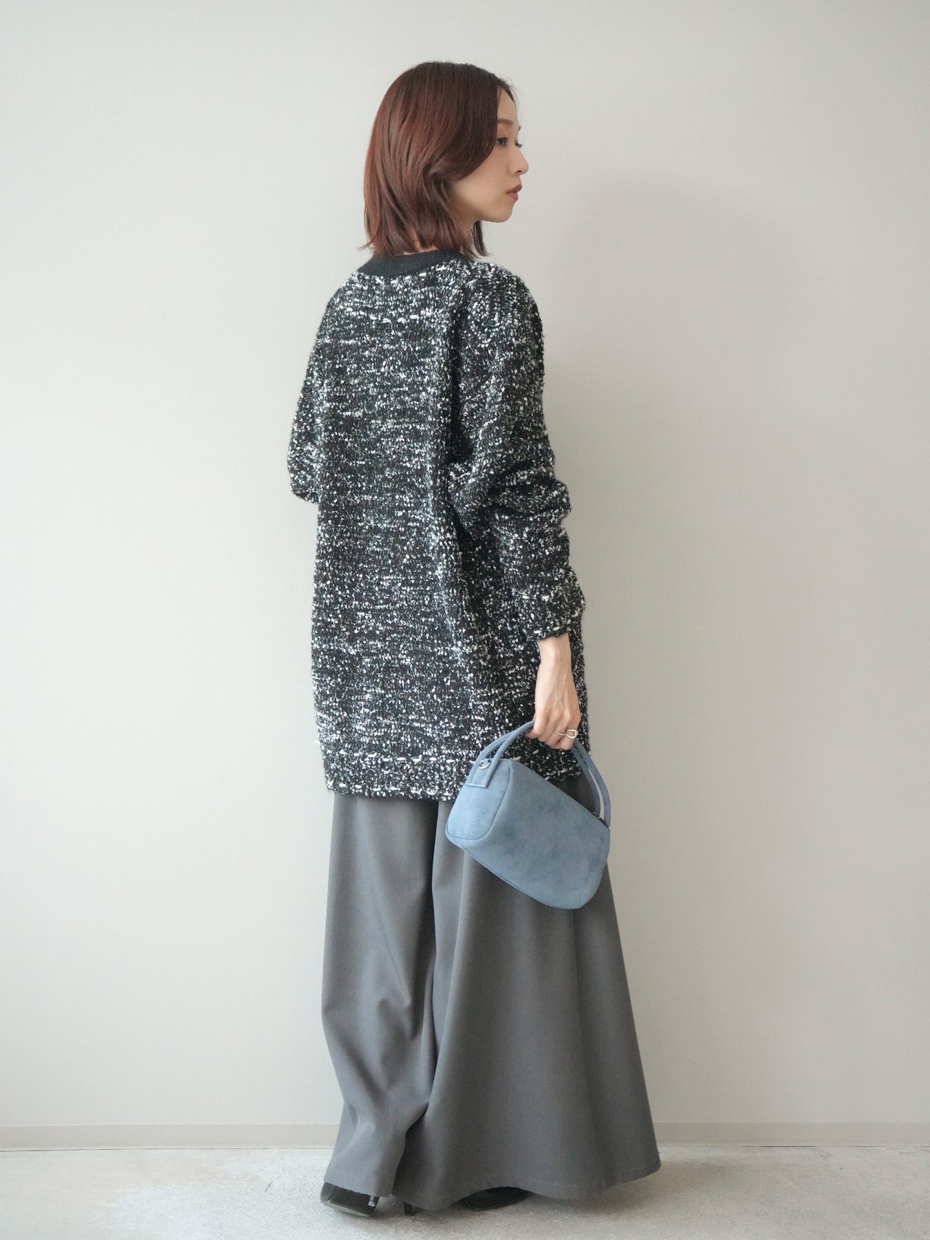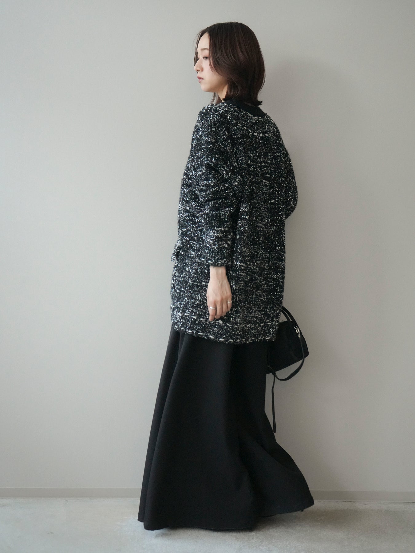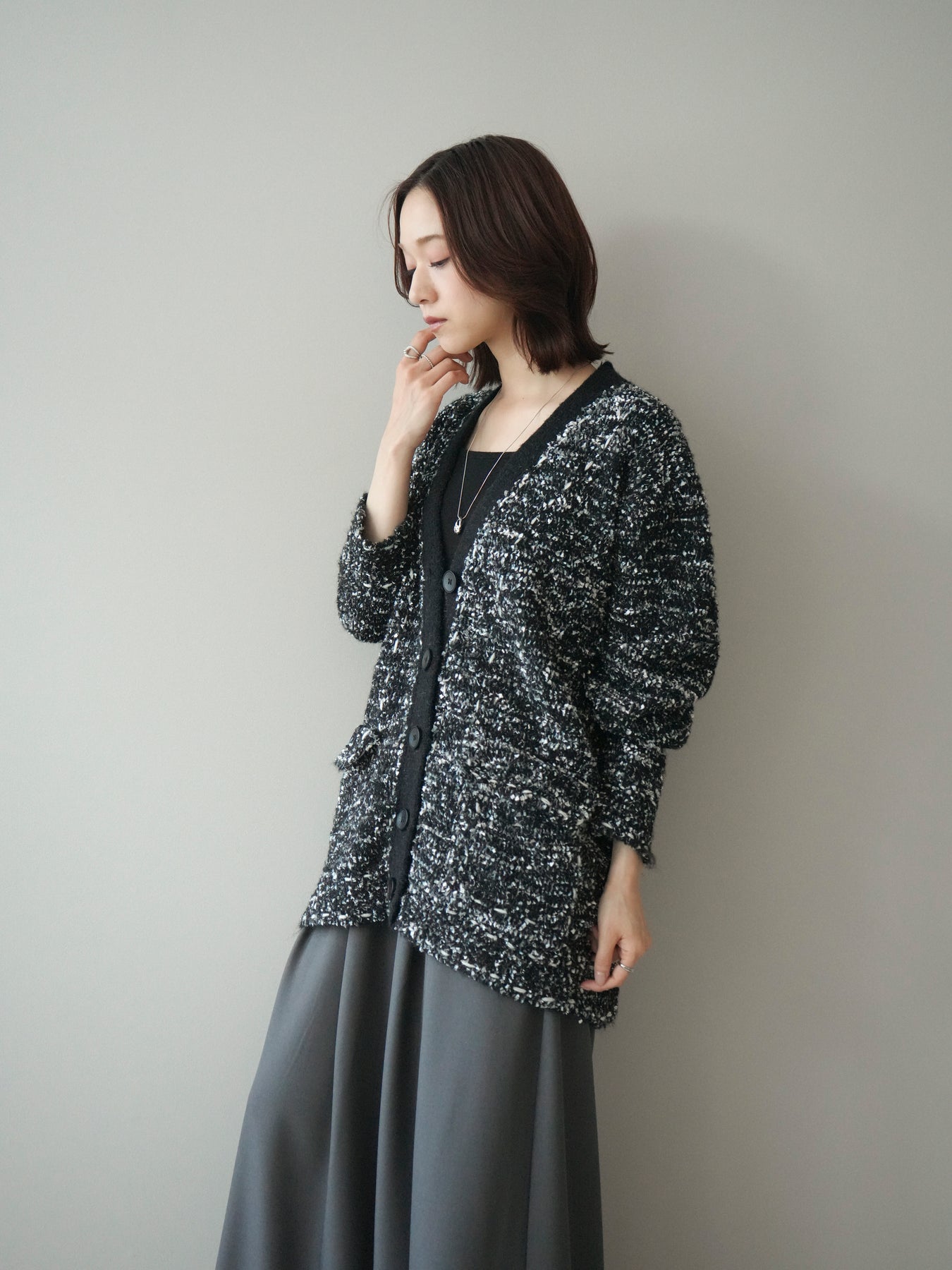 表情豊かなモールネップ素材が魅力のニットカーディガン。 細かな糸の表情が奥行きを生み、シンプルながらも存在感のある仕上がりです。 落ち着いた印象の中に程よい華やかさがあり、さっと羽織るだけでコーディネートを引き締めてくれます。 すっきりとした印象のデザインで、カジュアルからきれいめまで幅広いスタイリングにマッチ。 季節の変わり目や室内外の温度調整にも活躍する、着回し力の高い一着です。