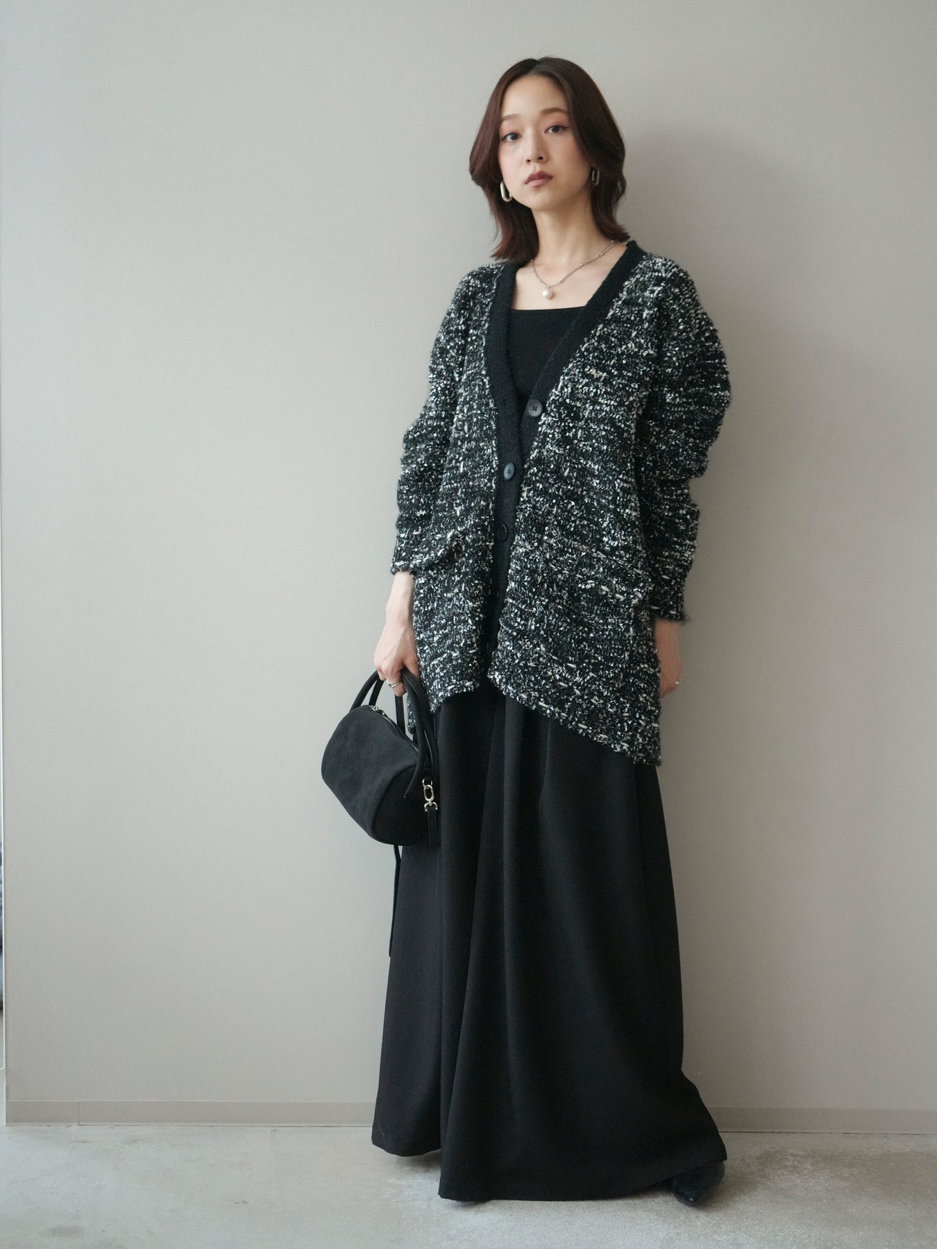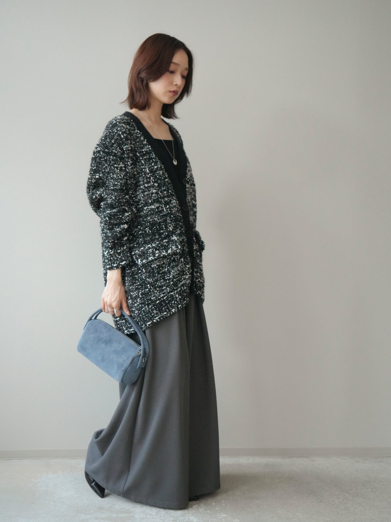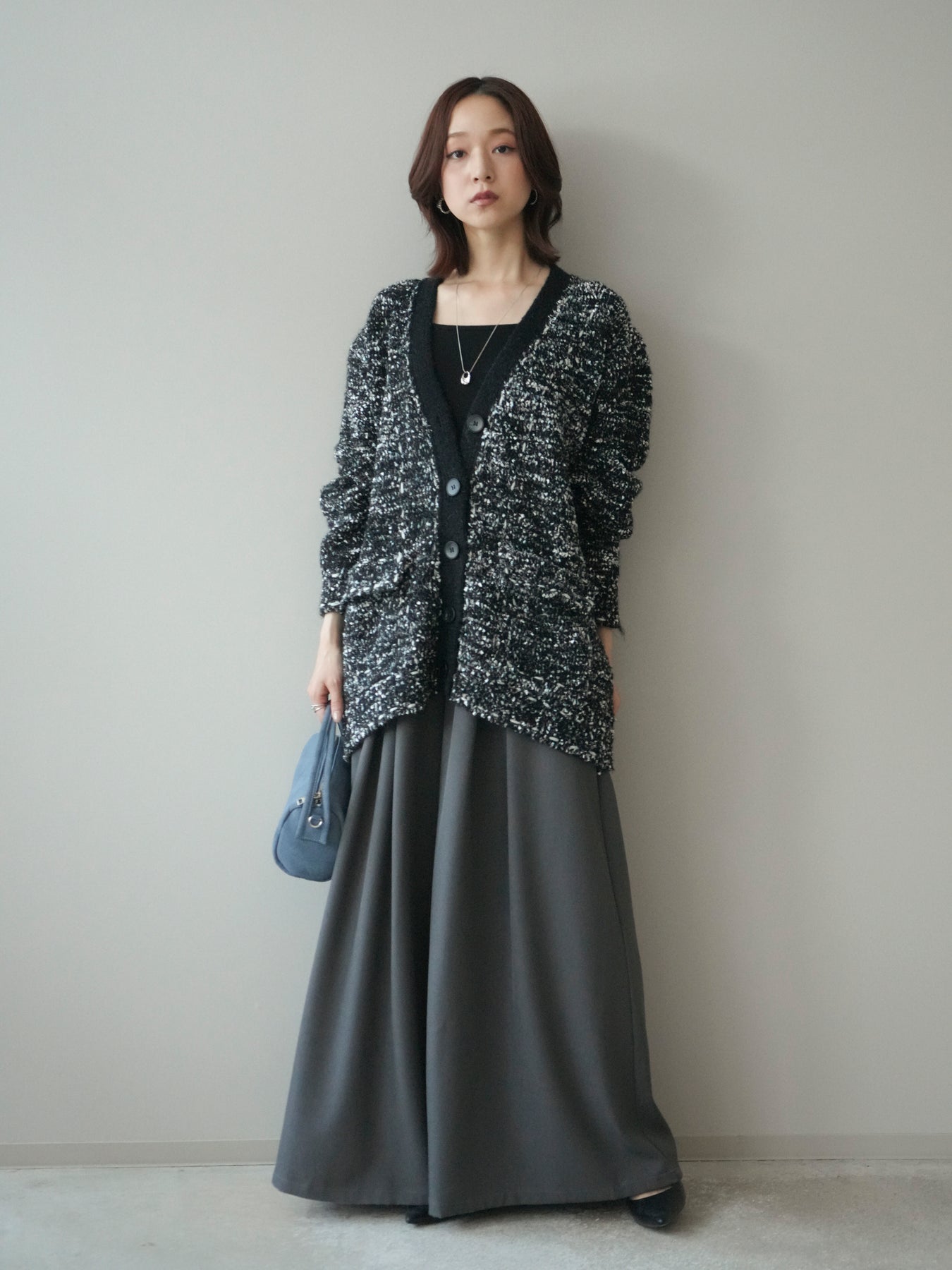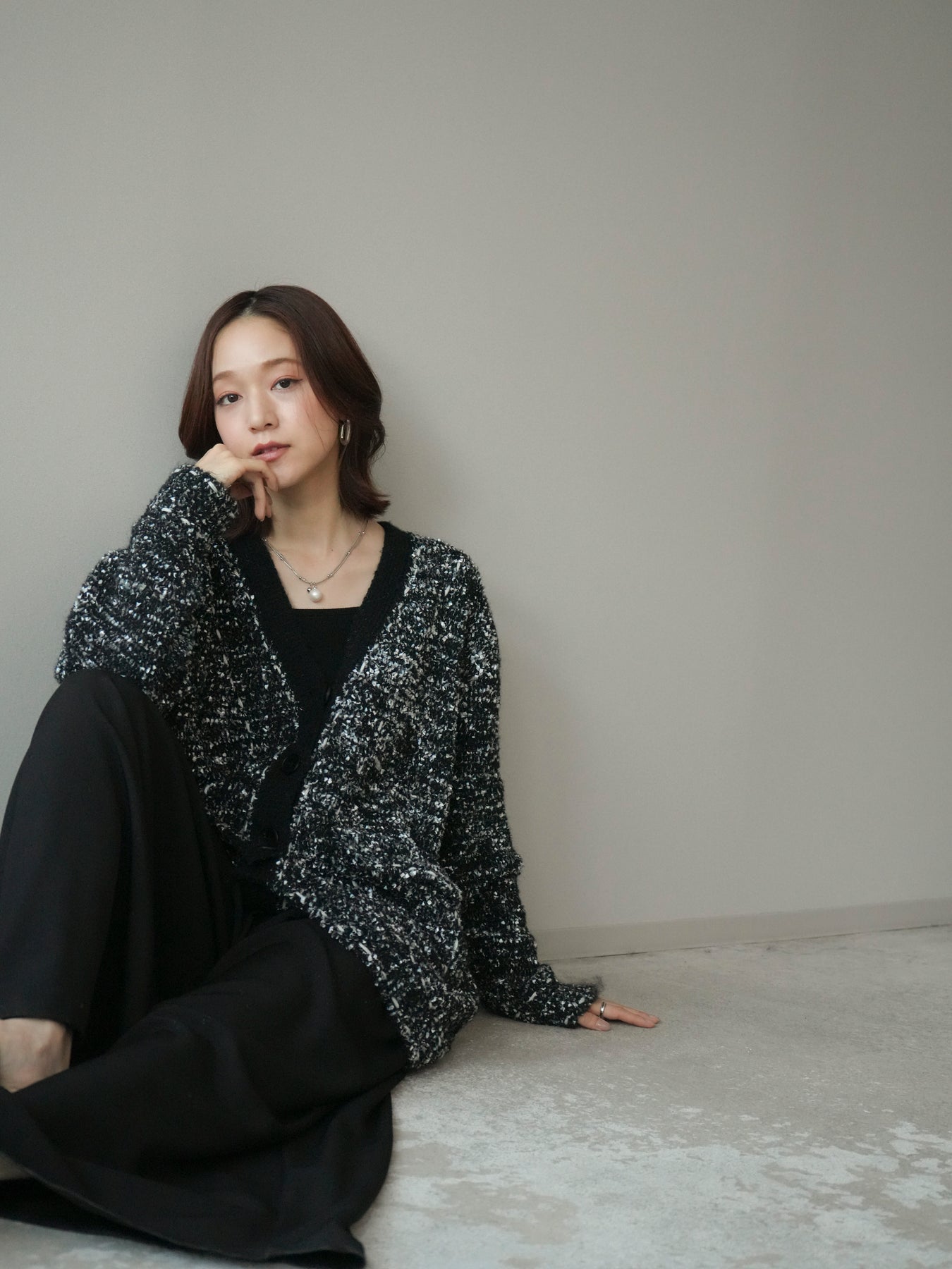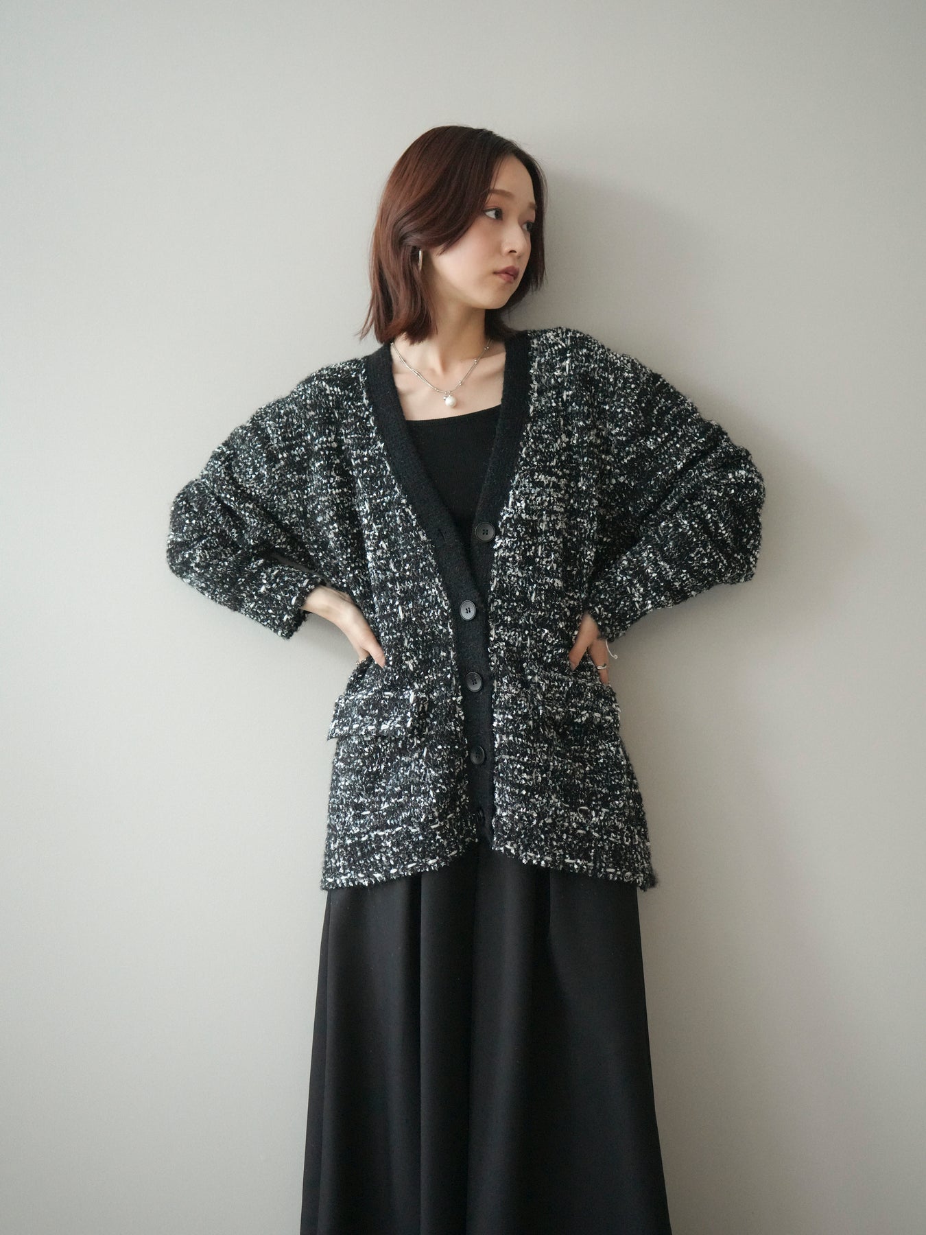 表情豊かなモールネップ素材が魅力のニットカーディガン。 細かな糸の表情が奥行きを生み、シンプルながらも存在感のある仕上がりです。 落ち着いた印象の中に程よい華やかさがあり、さっと羽織るだけでコーディネートを引き締めてくれます。 すっきりとした印象のデザインで、カジュアルからきれいめまで幅広いスタイリングにマッチ。 季節の変わり目や室内外の温度調整にも活躍する、着回し力の高い一着です。