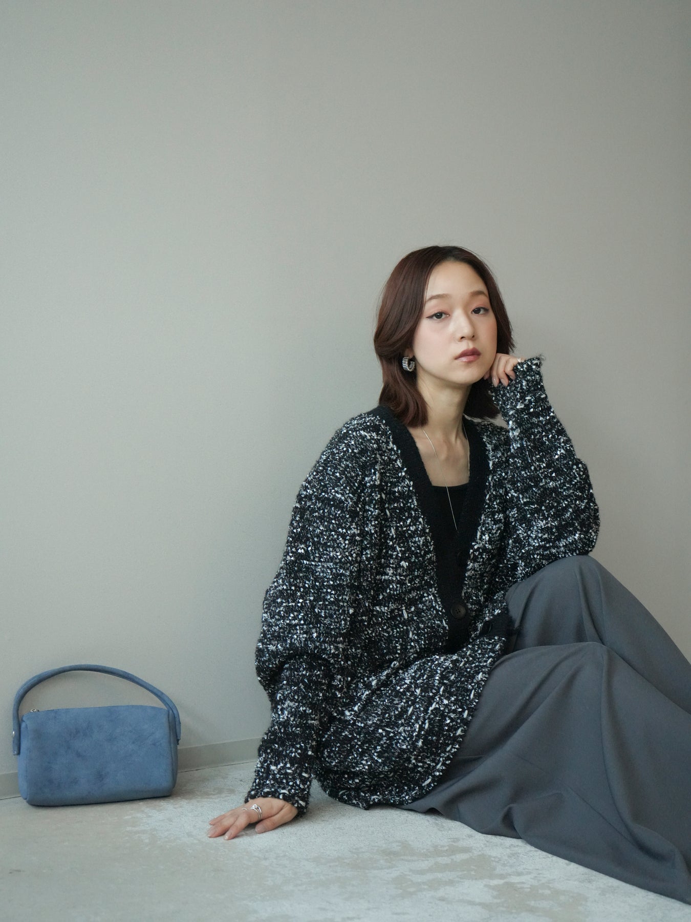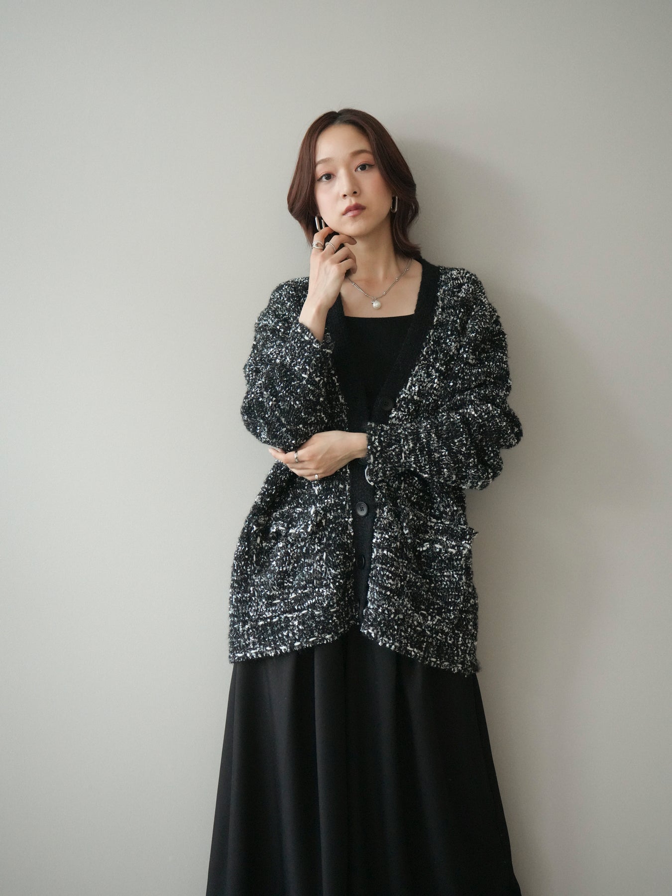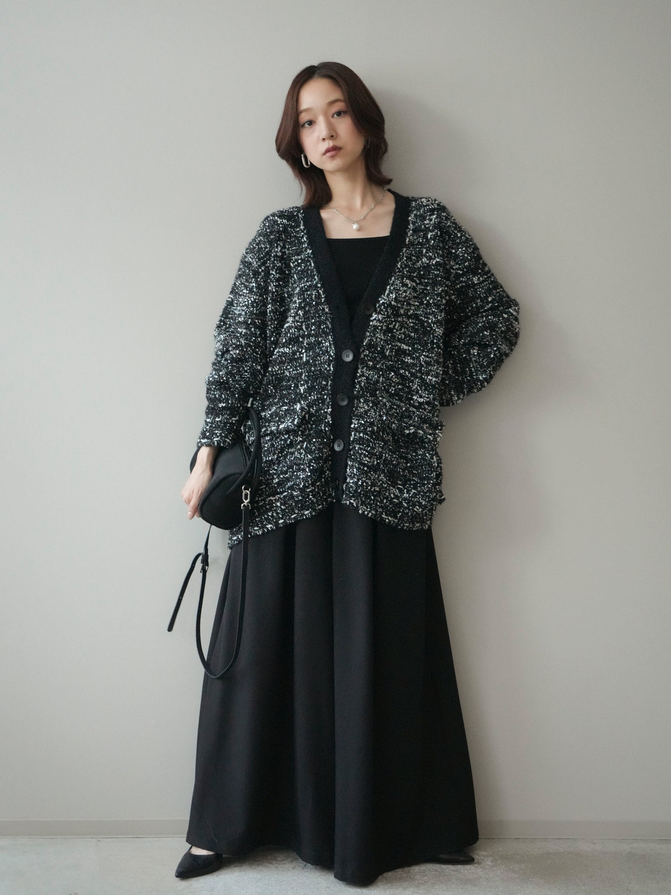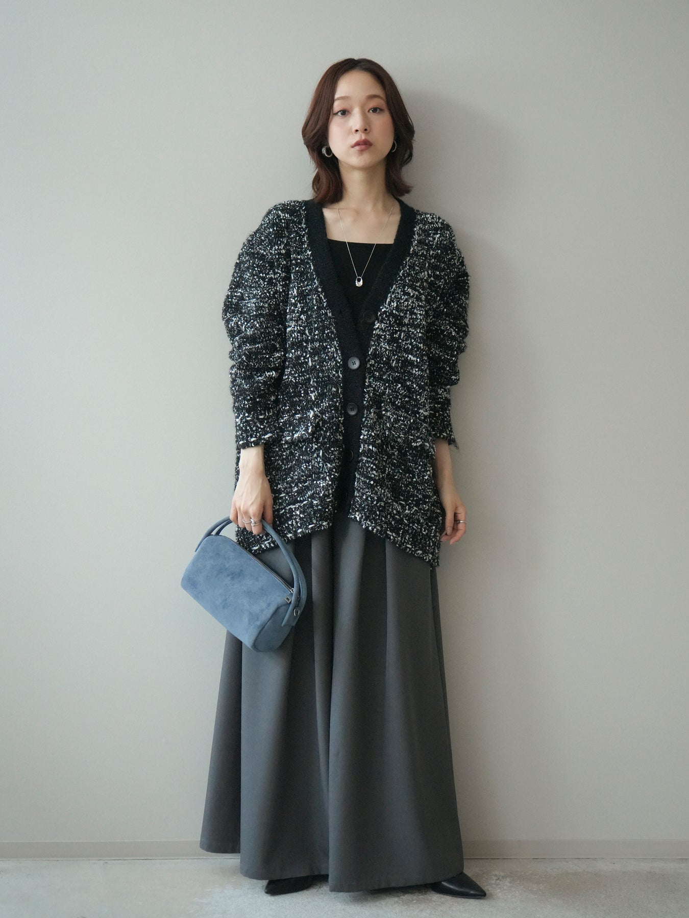 表情豊かなモールネップ素材が魅力のニットカーディガン。 細かな糸の表情が奥行きを生み、シンプルながらも存在感のある仕上がりです。 落ち着いた印象の中に程よい華やかさがあり、さっと羽織るだけでコーディネートを引き締めてくれます。 すっきりとした印象のデザインで、カジュアルからきれいめまで幅広いスタイリングにマッチ。 季節の変わり目や室内外の温度調整にも活躍する、着回し力の高い一着です。