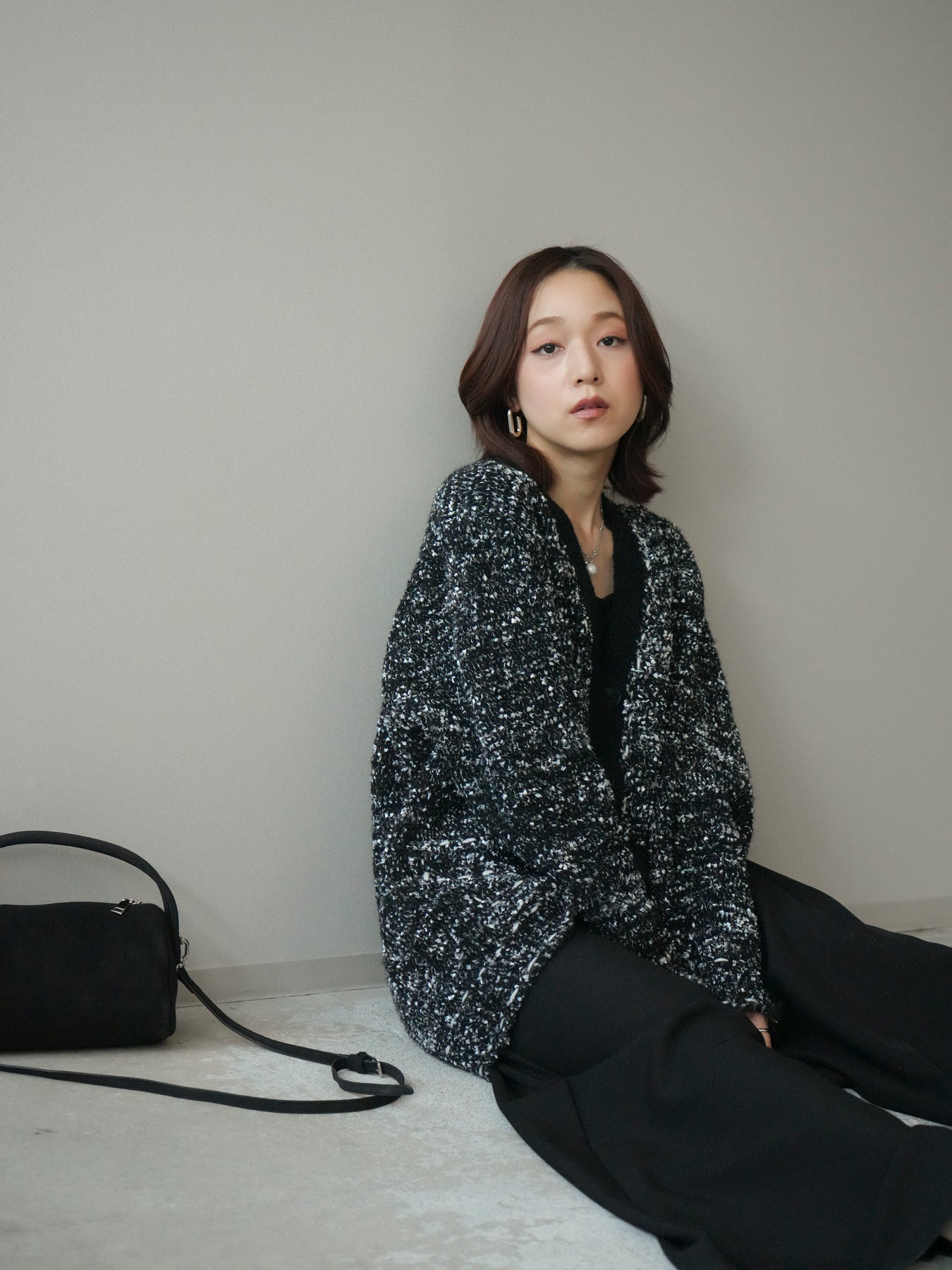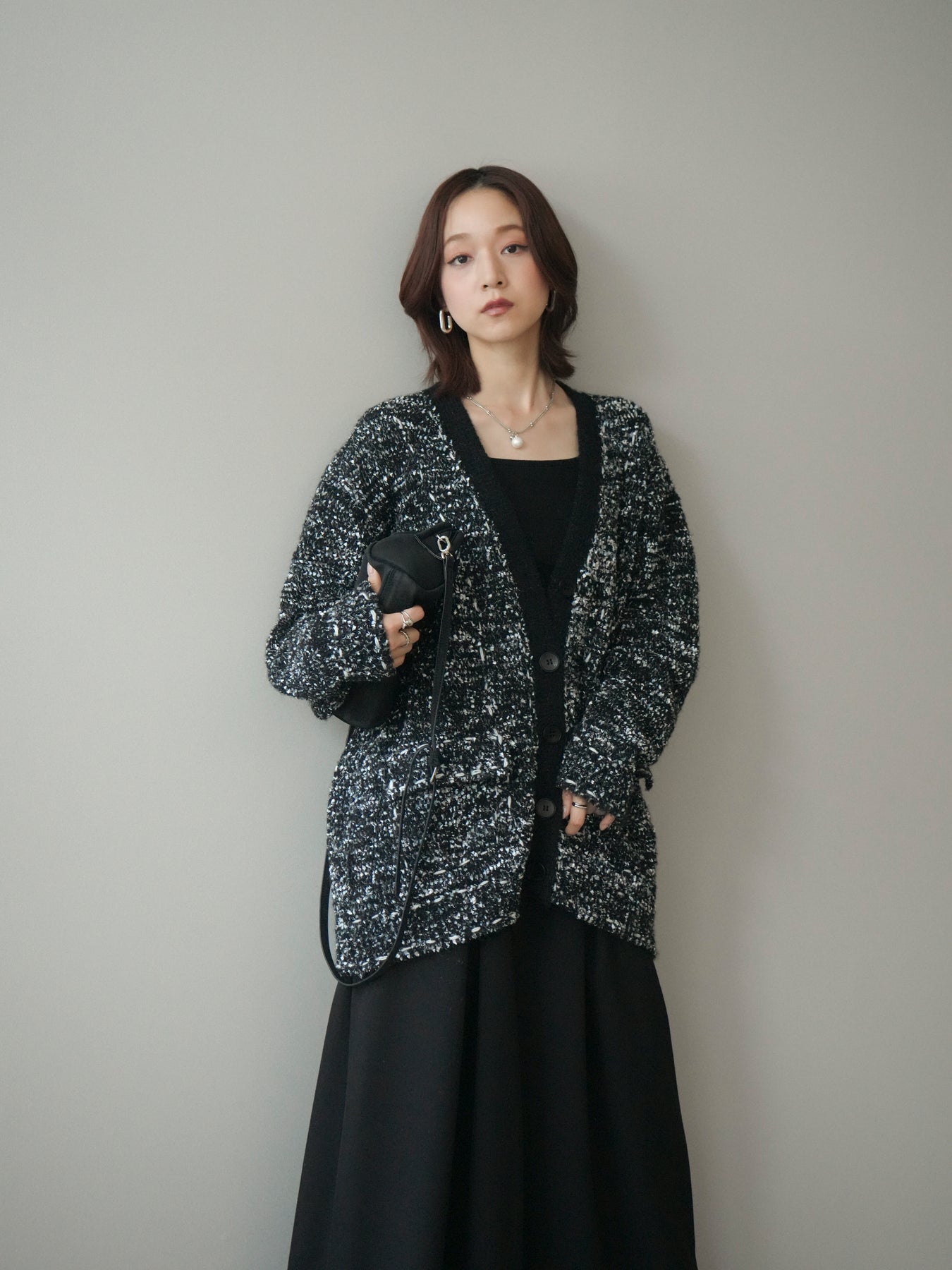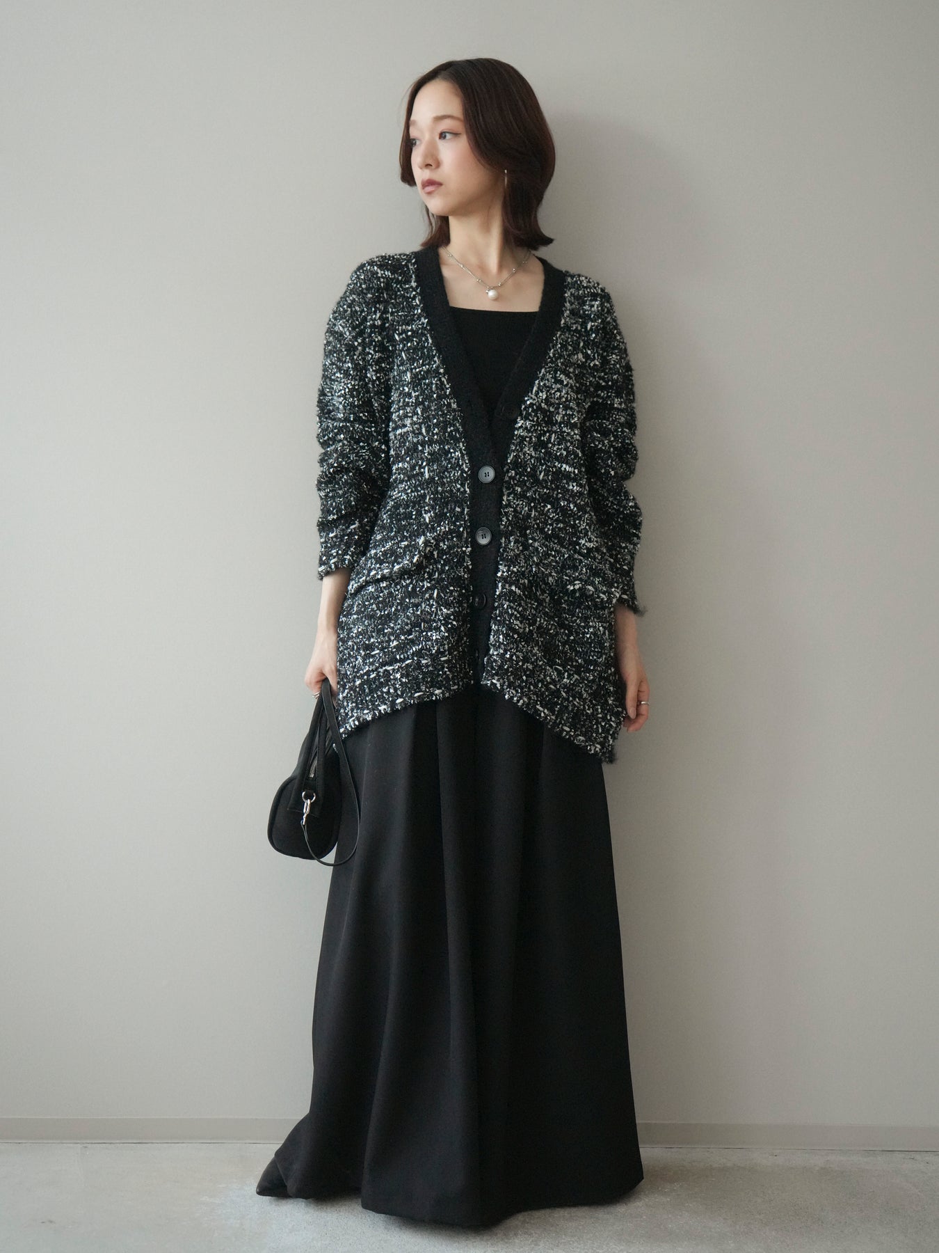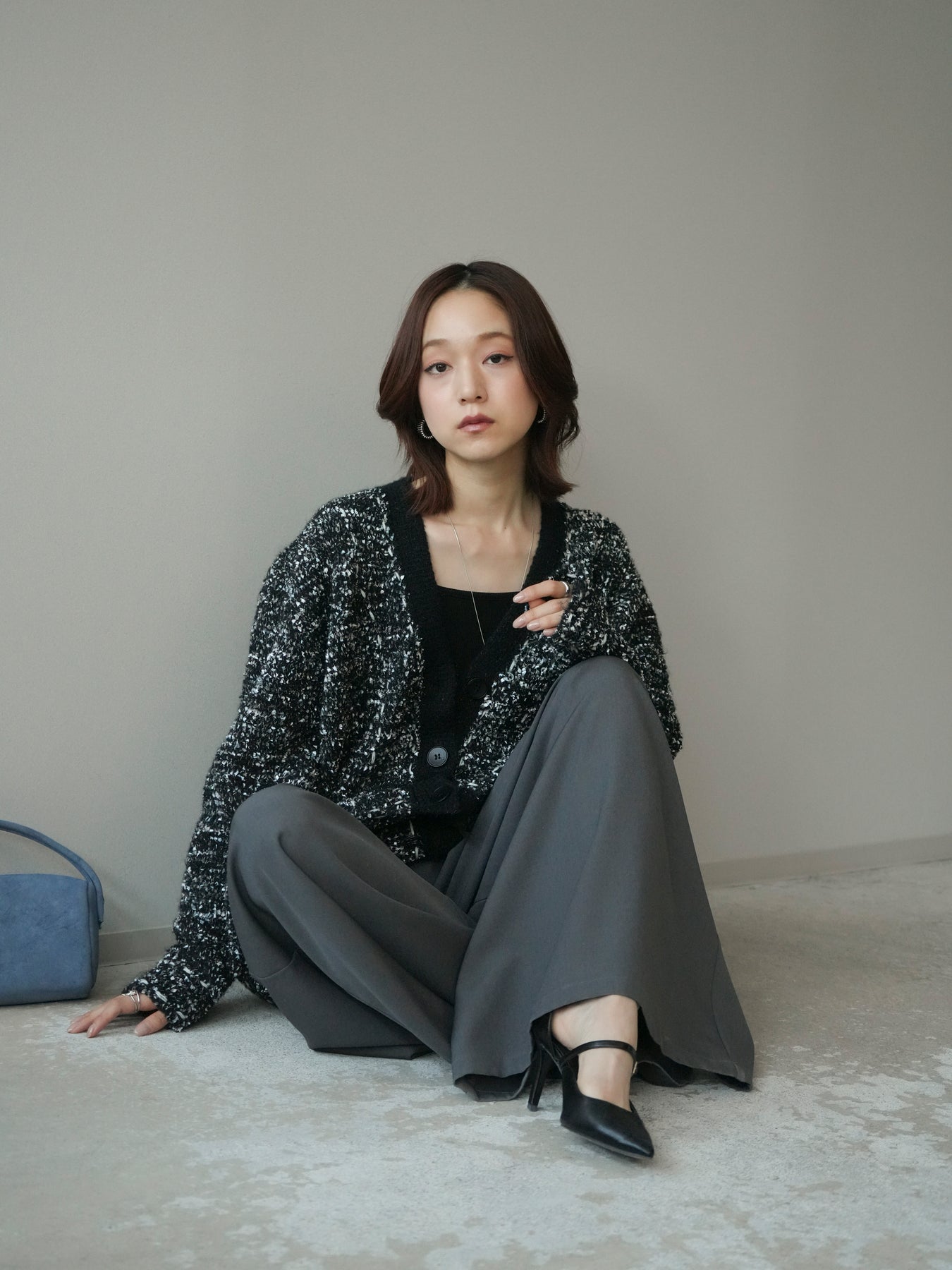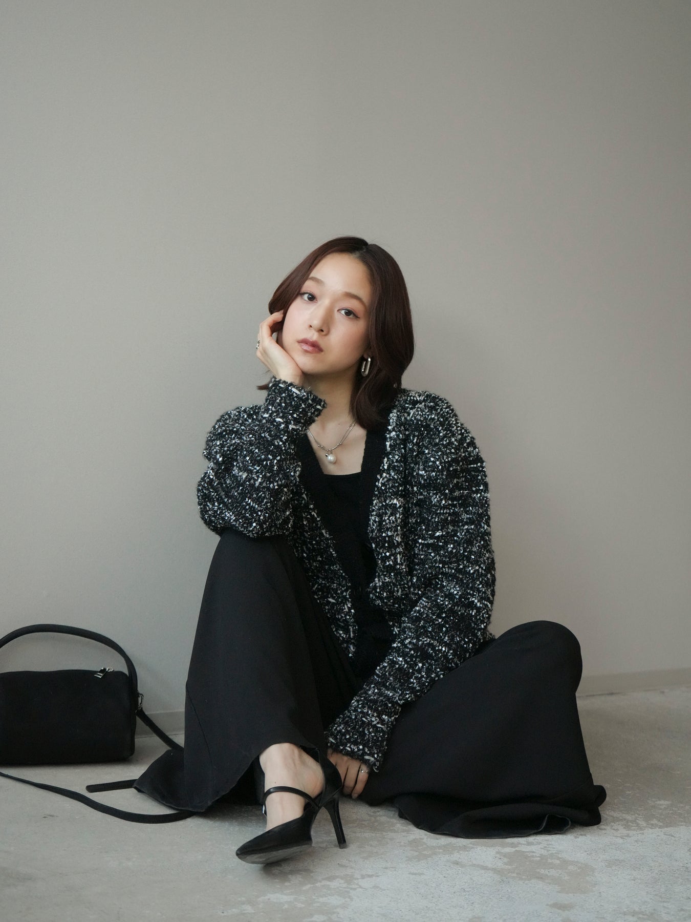 表情豊かなモールネップ素材が魅力のニットカーディガン。 細かな糸の表情が奥行きを生み、シンプルながらも存在感のある仕上がりです。 落ち着いた印象の中に程よい華やかさがあり、さっと羽織るだけでコーディネートを引き締めてくれます。 すっきりとした印象のデザインで、カジュアルからきれいめまで幅広いスタイリングにマッチ。 季節の変わり目や室内外の温度調整にも活躍する、着回し力の高い一着です。