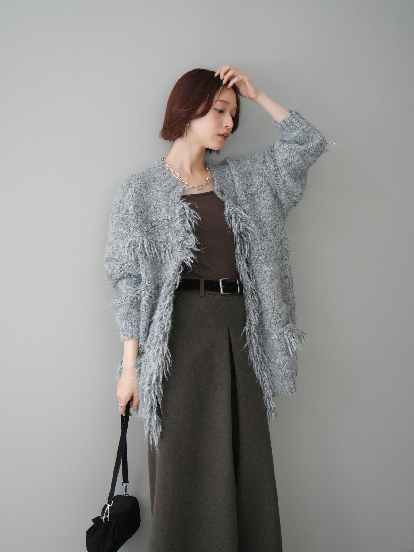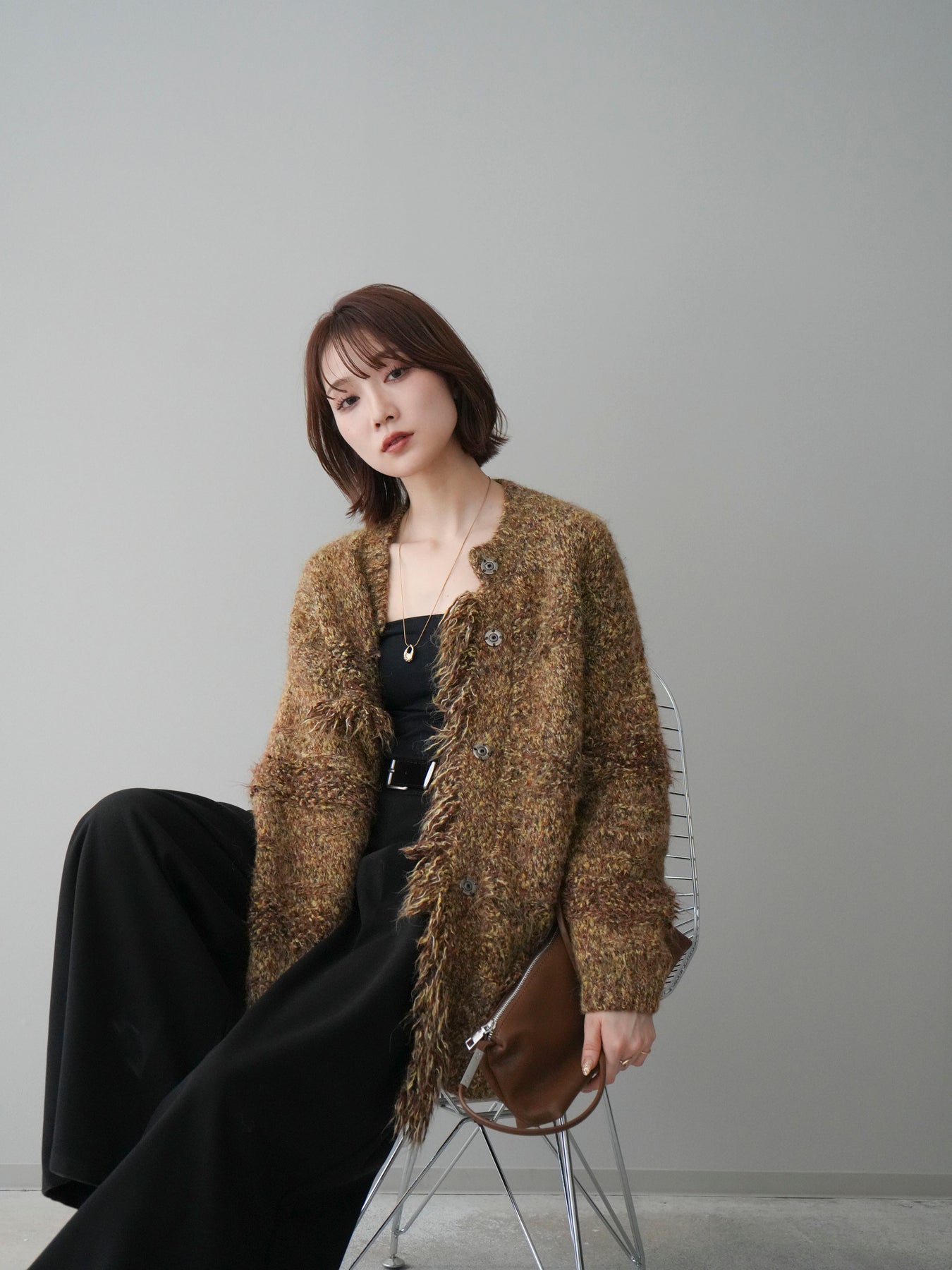 ◆ [予約]ミックスヤーンフリンジデザインニットジャケット