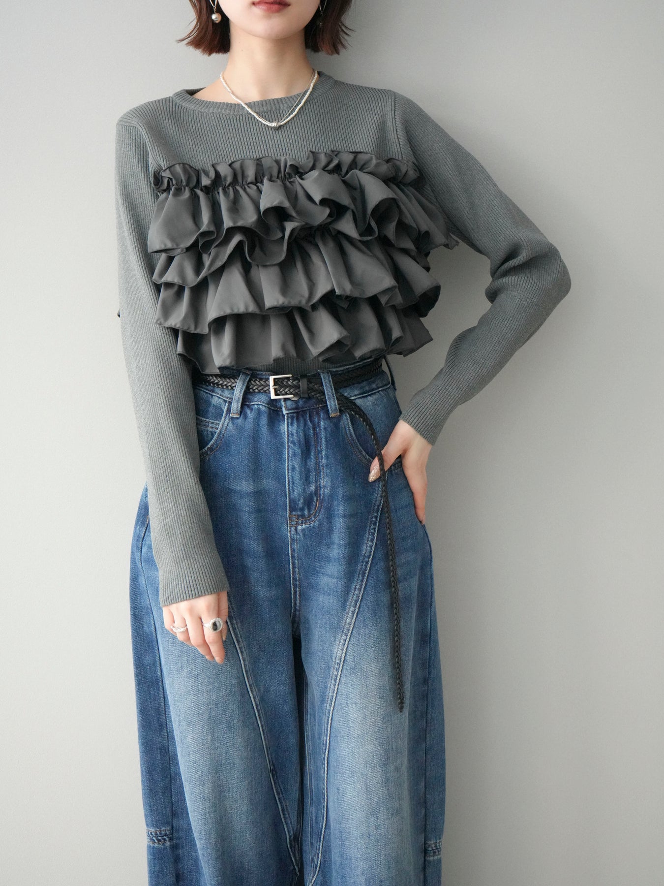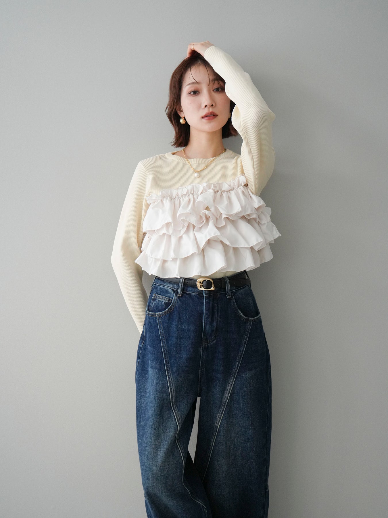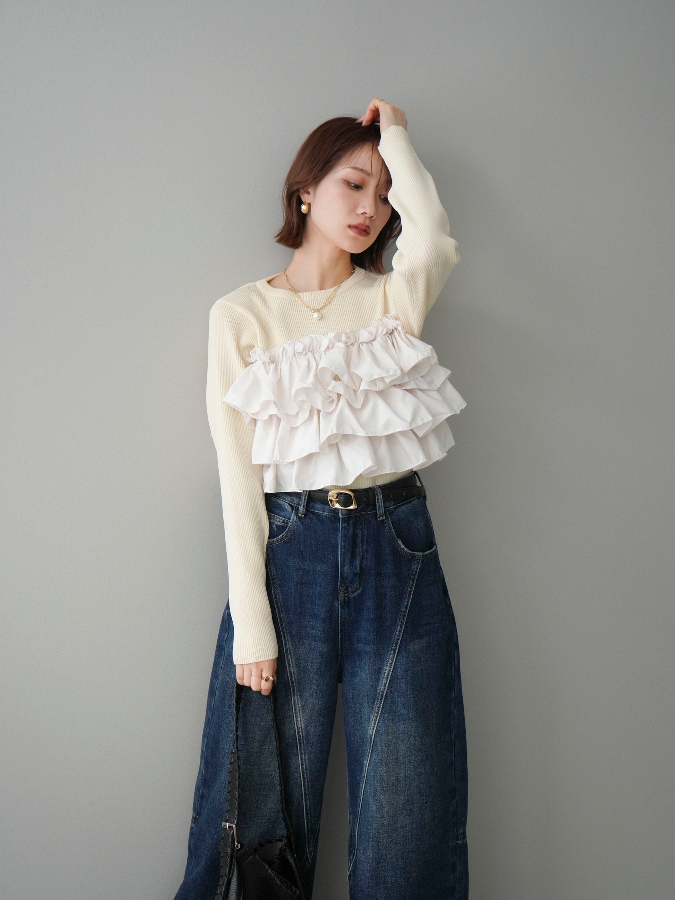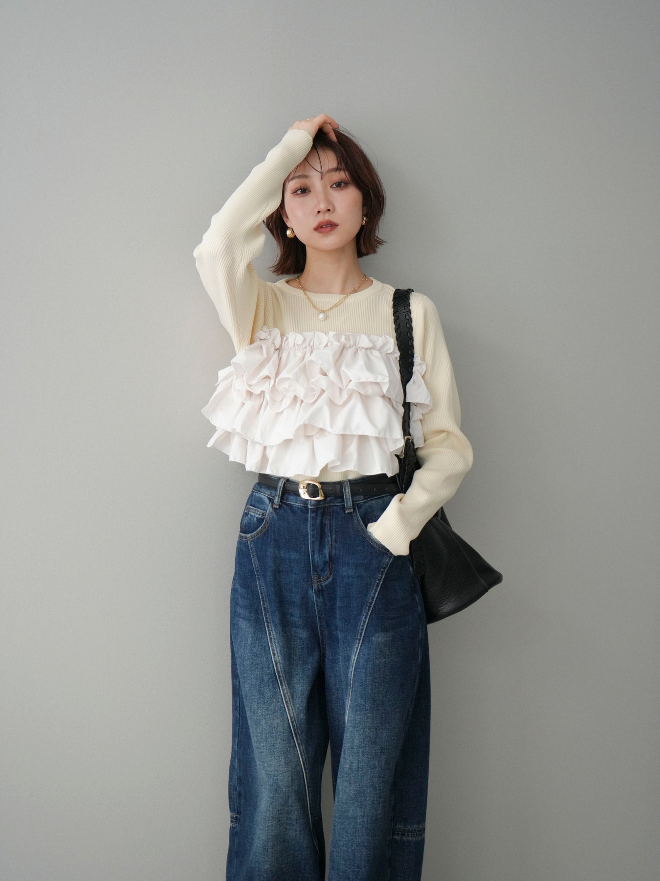 ◆ [予約]フリルビスチェドッキングスポンジニットプルオーバー