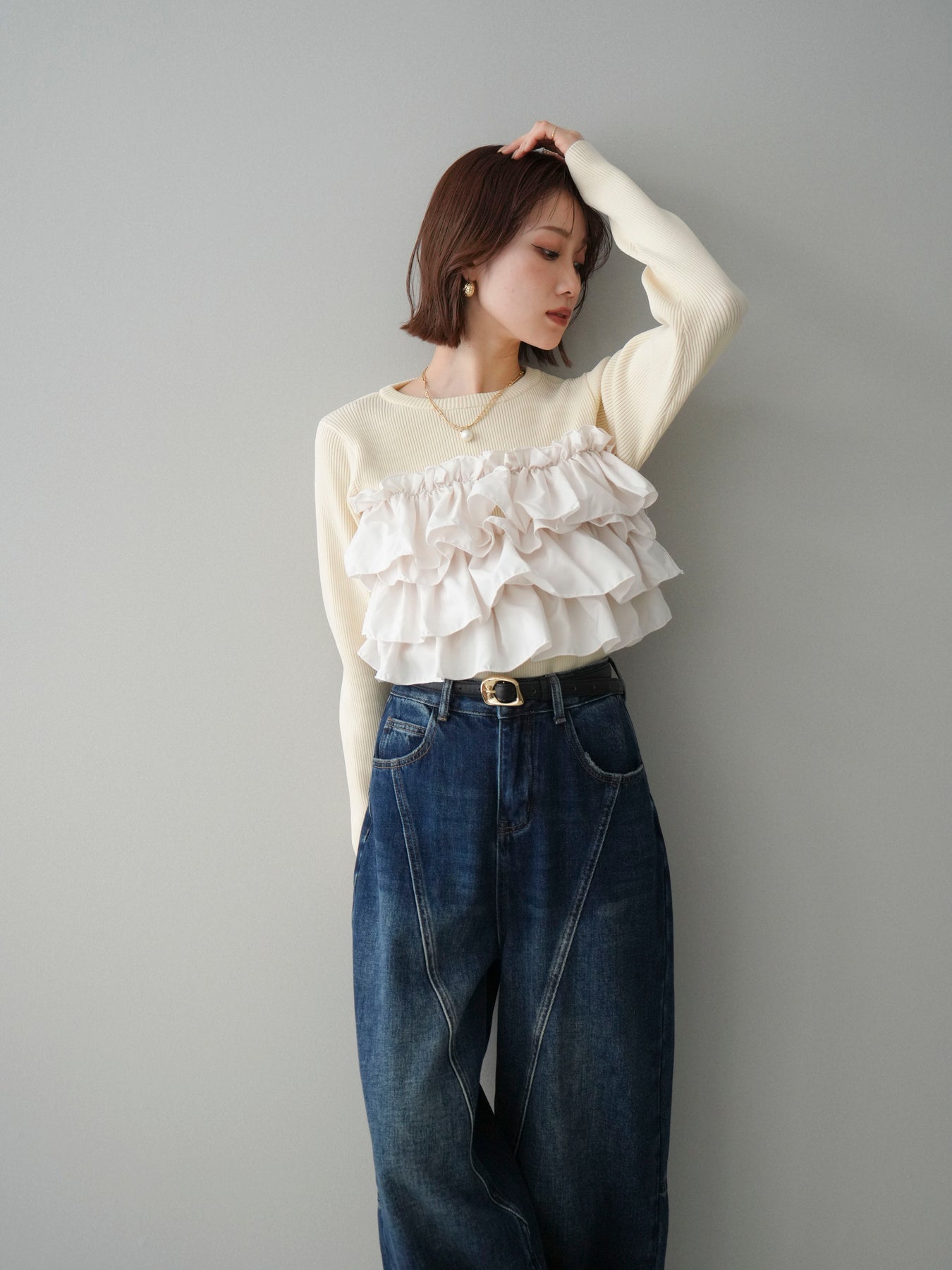 ◆ [予約]フリルビスチェドッキングスポンジニットプルオーバー