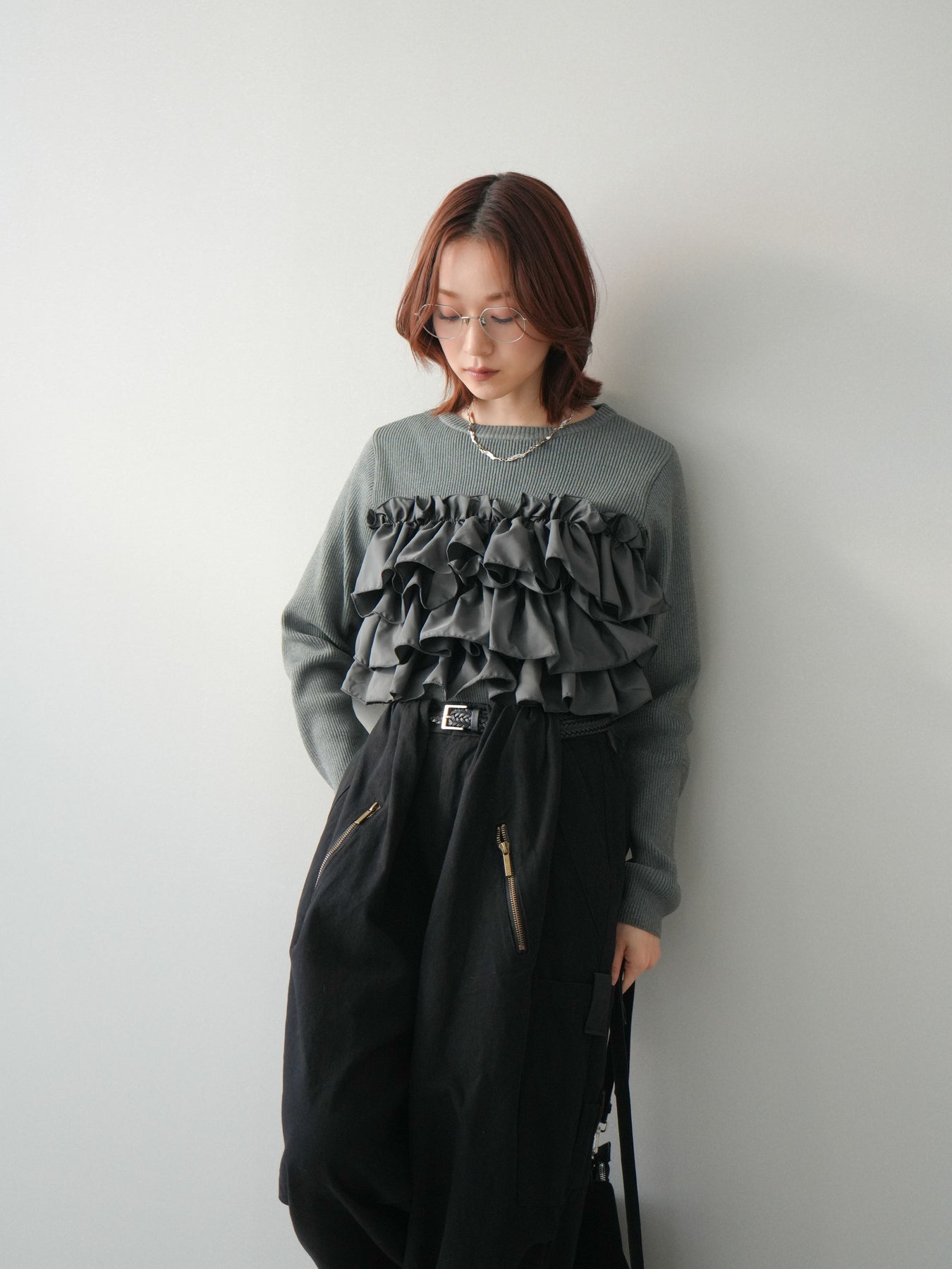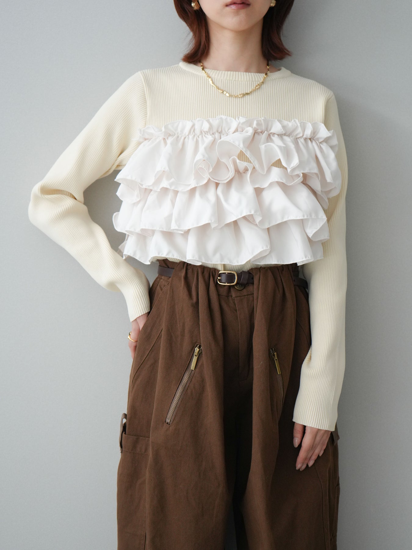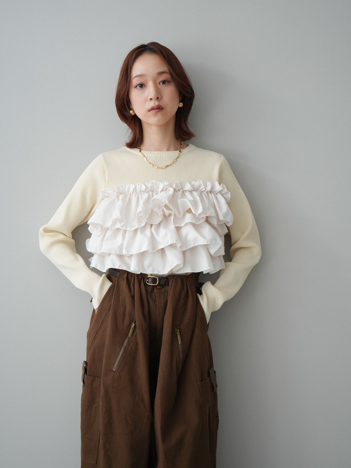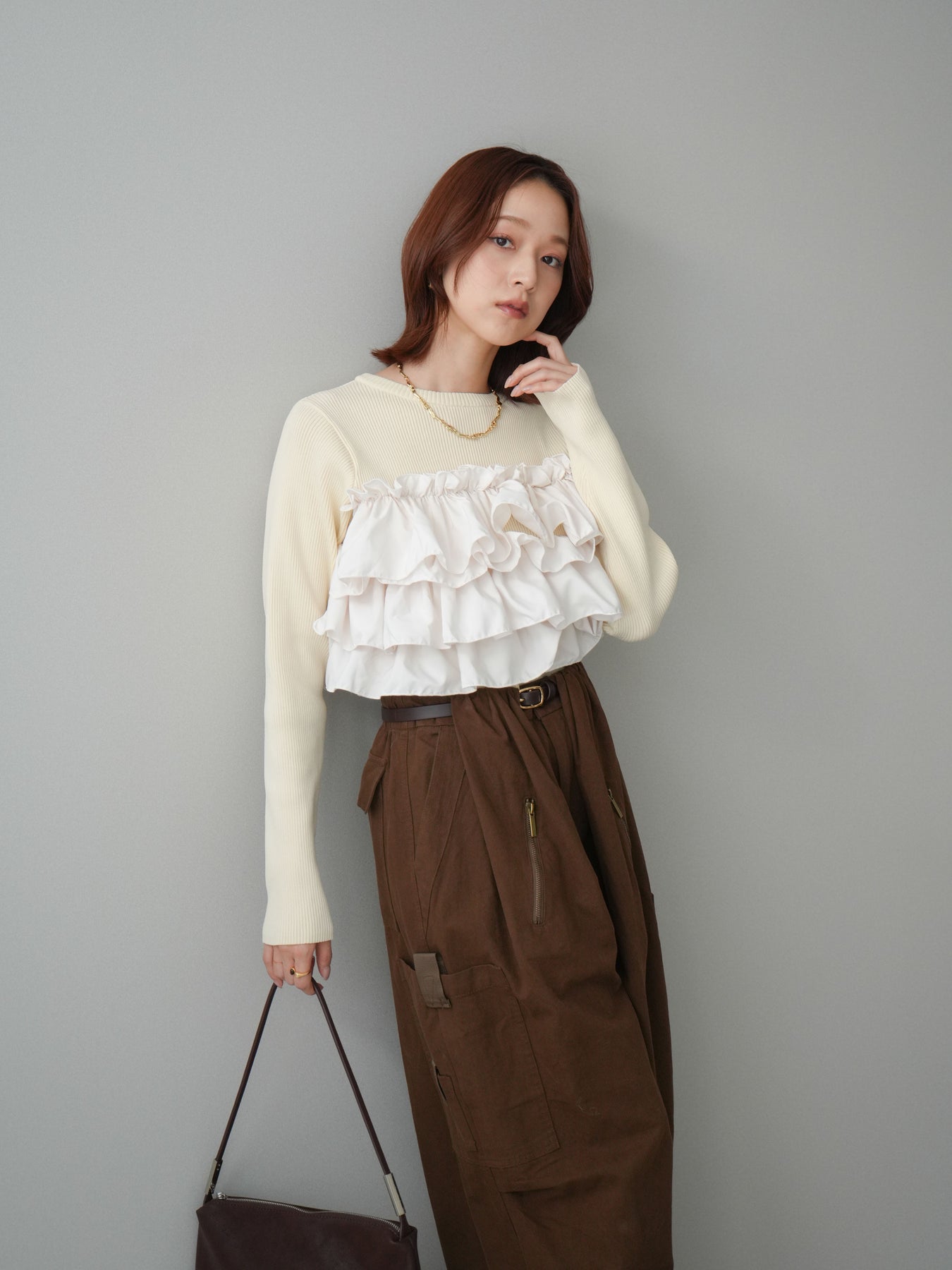 ◆ [予約]フリルビスチェドッキングスポンジニットプルオーバー