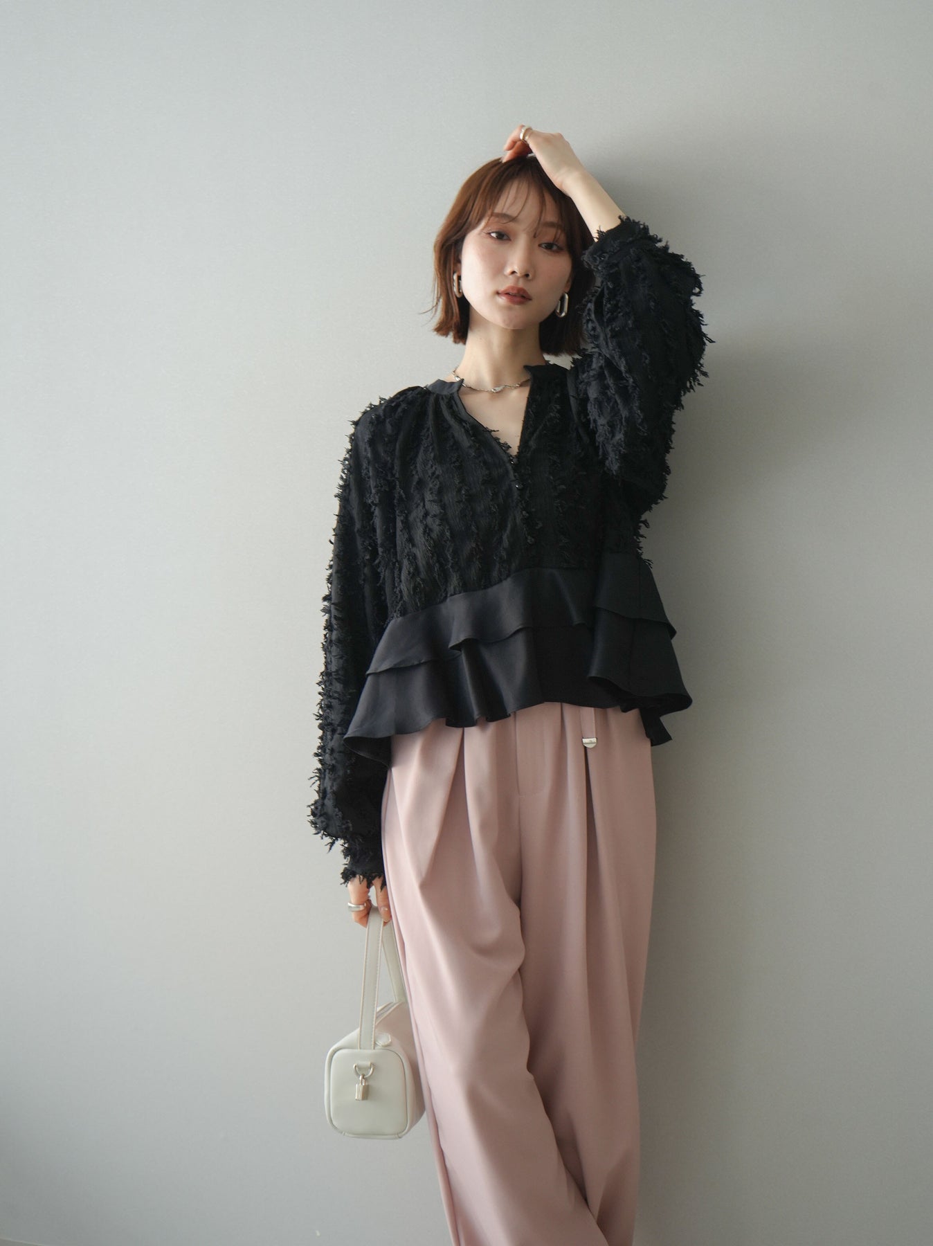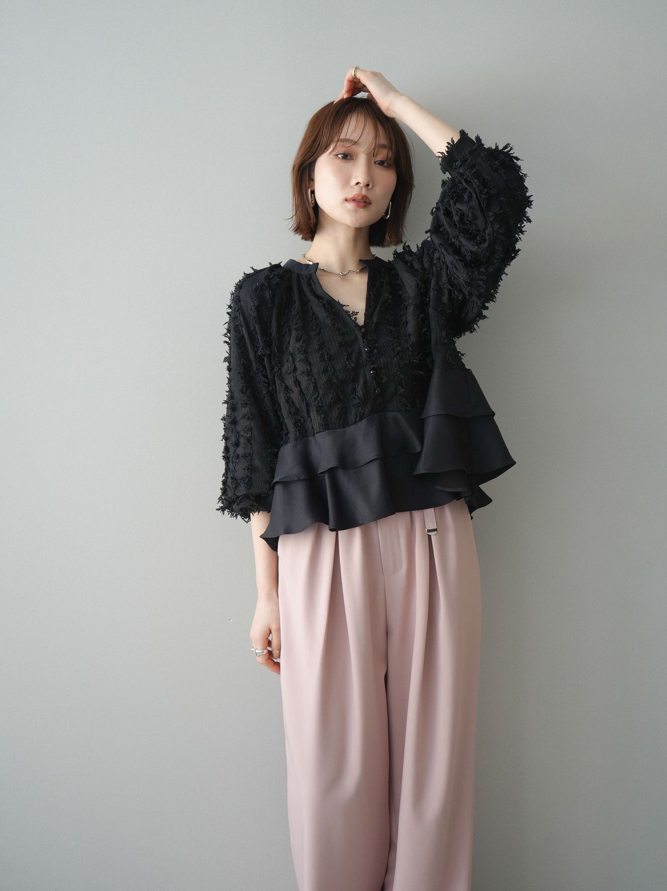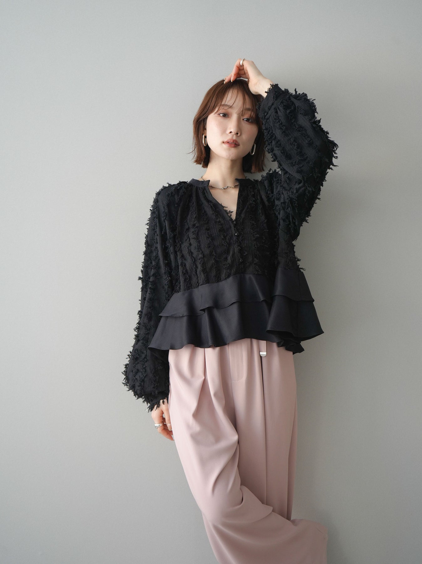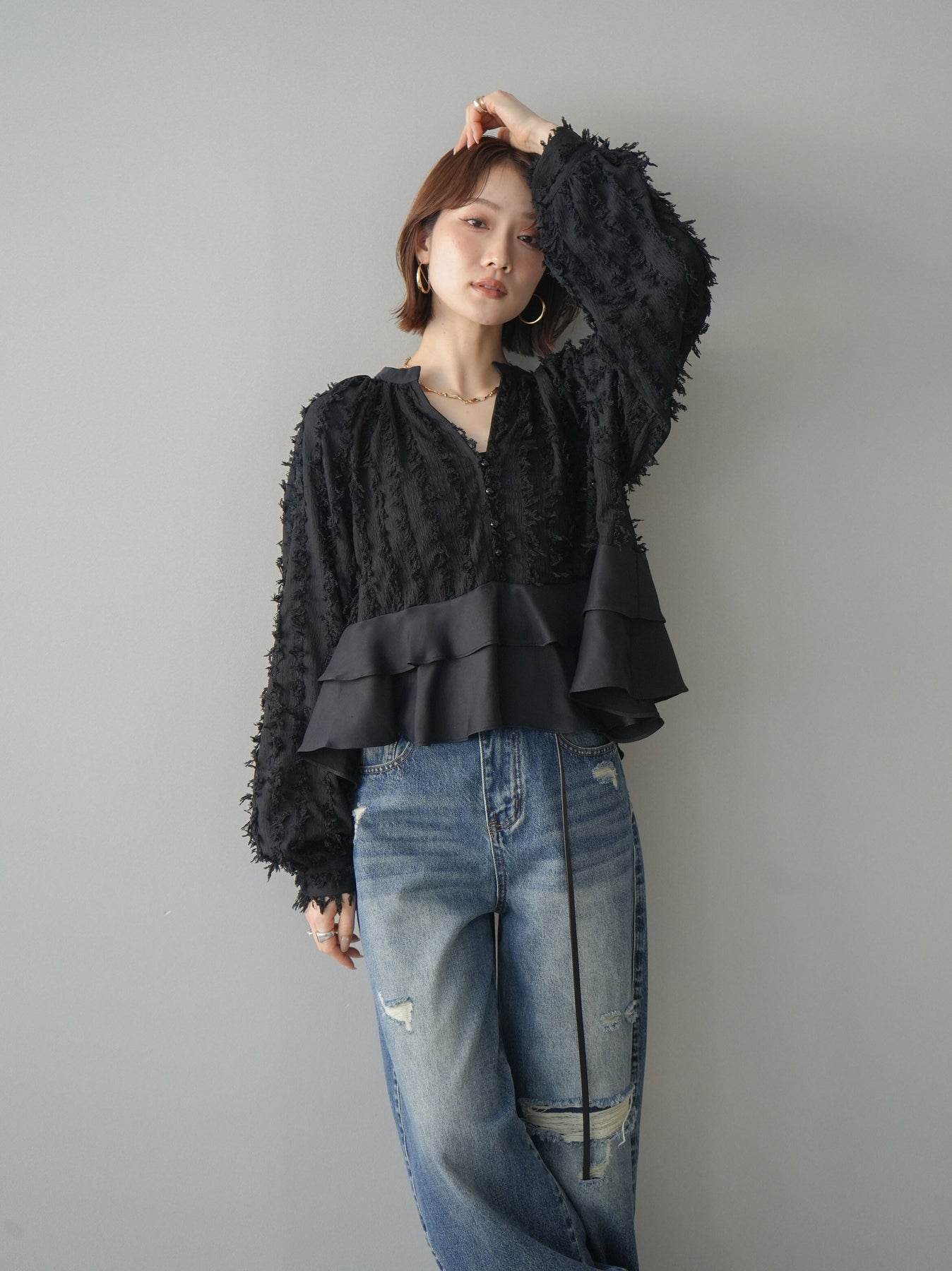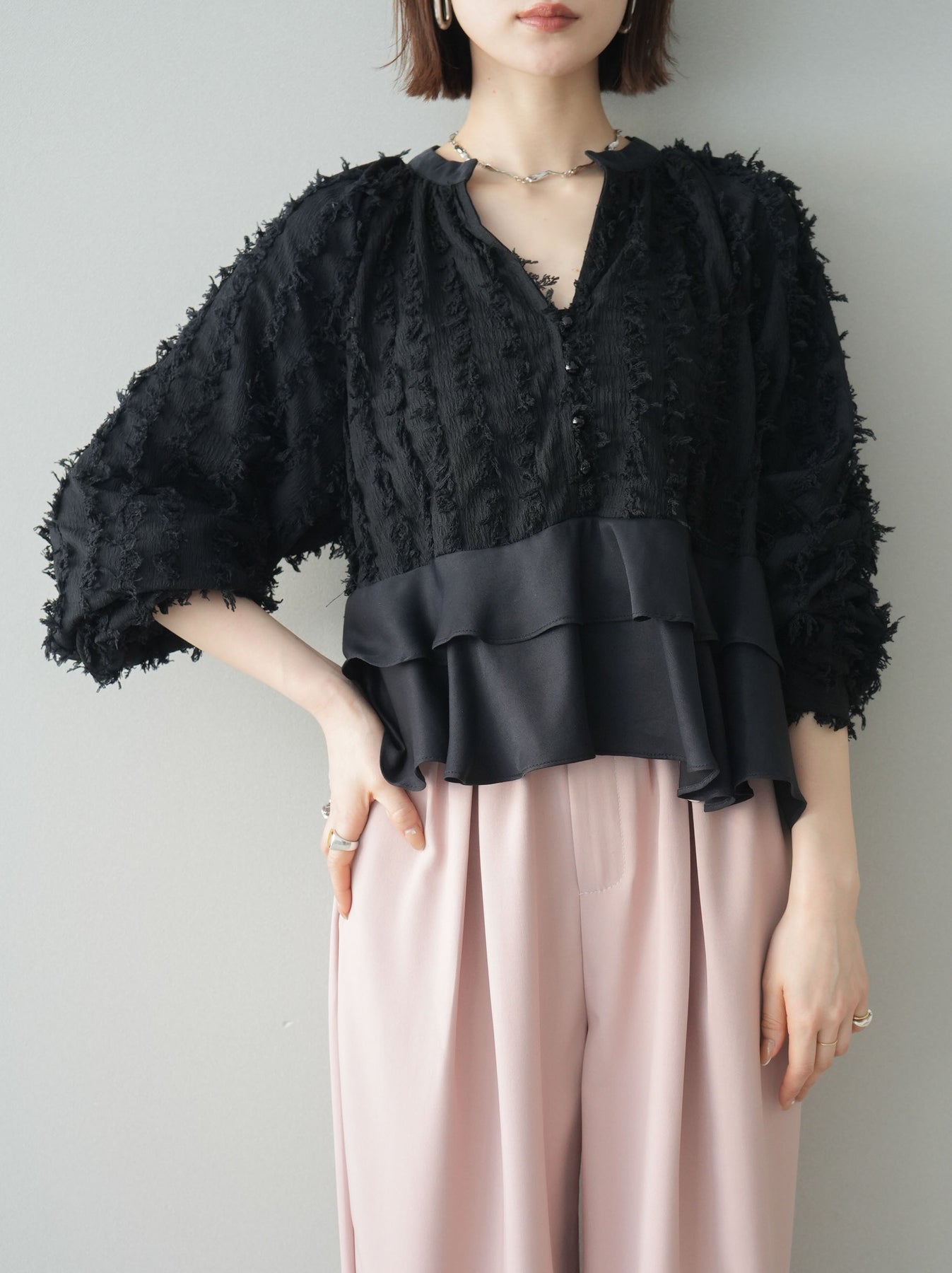 ◆ [予約]ジャガードぺプラムフリルブラウス