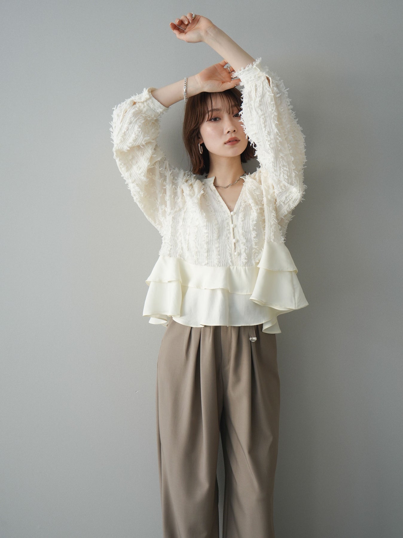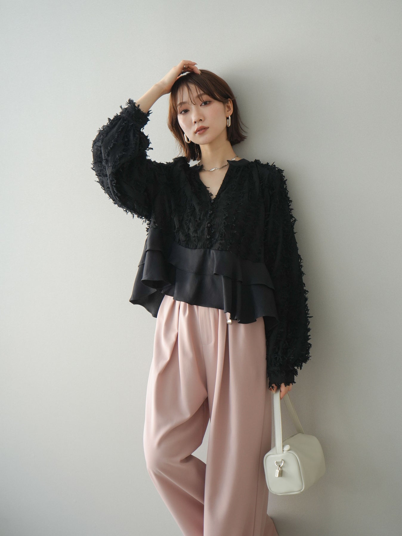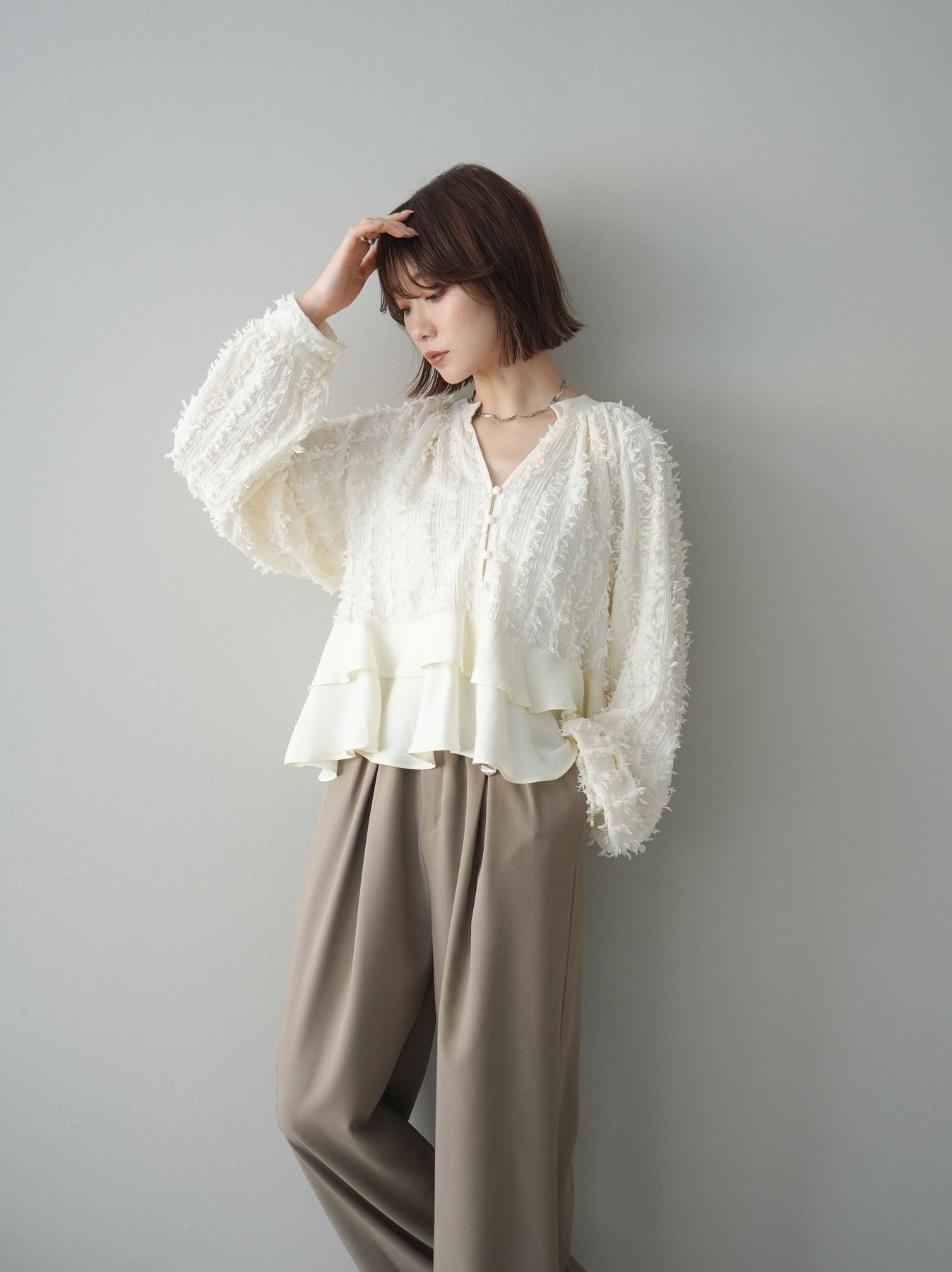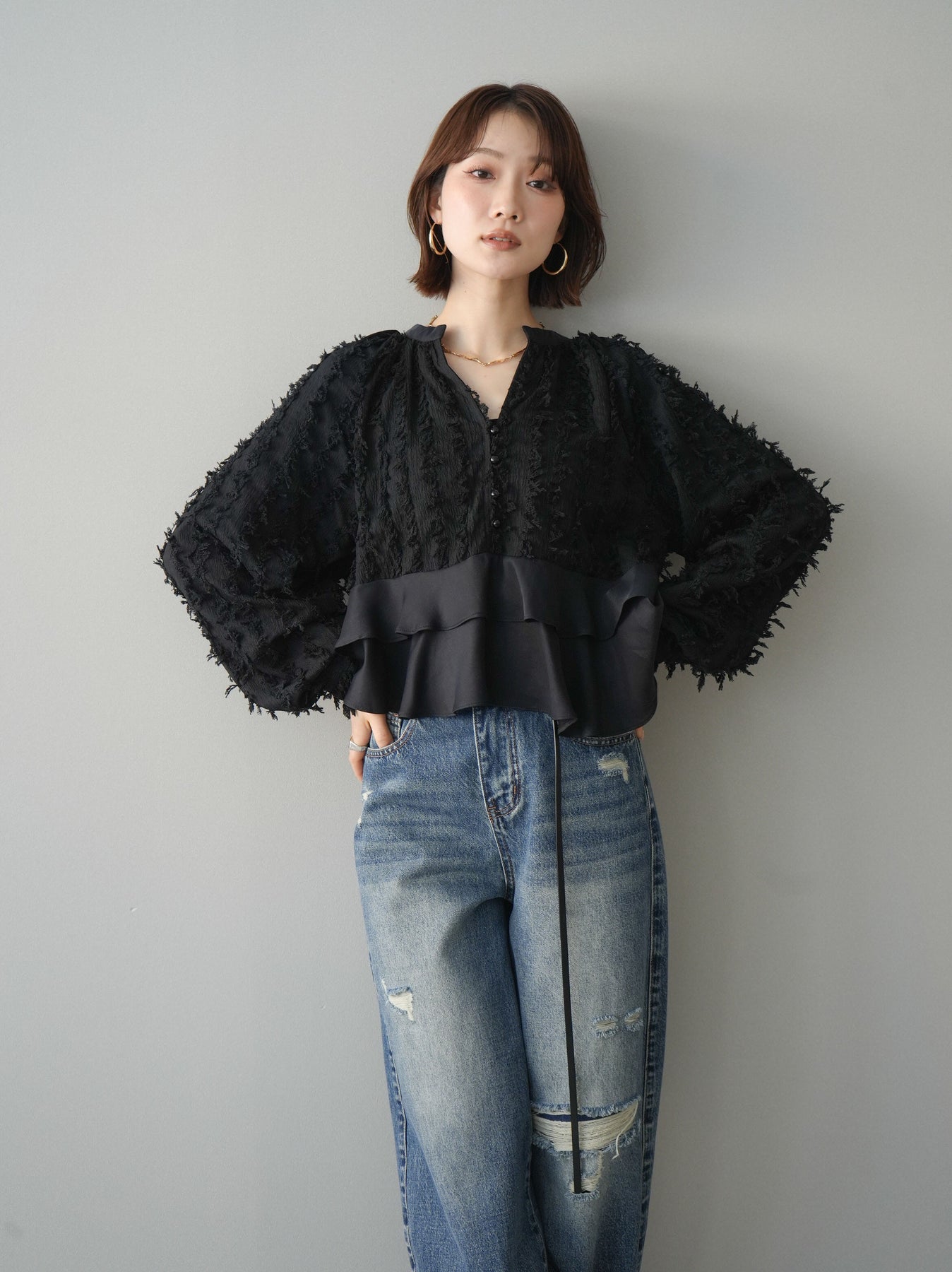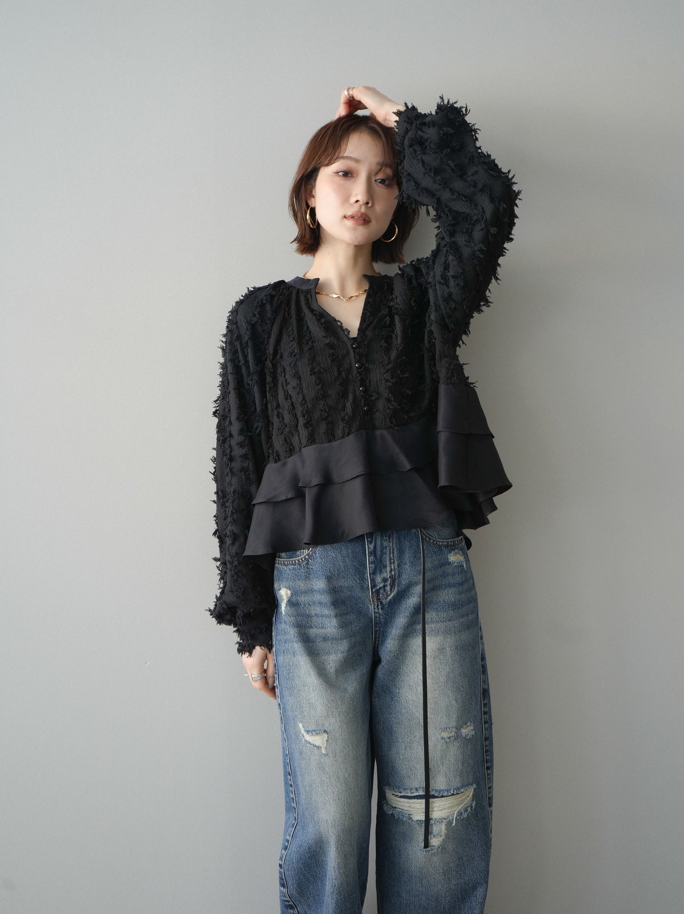 ◆ [予約]ジャガードぺプラムフリルブラウス