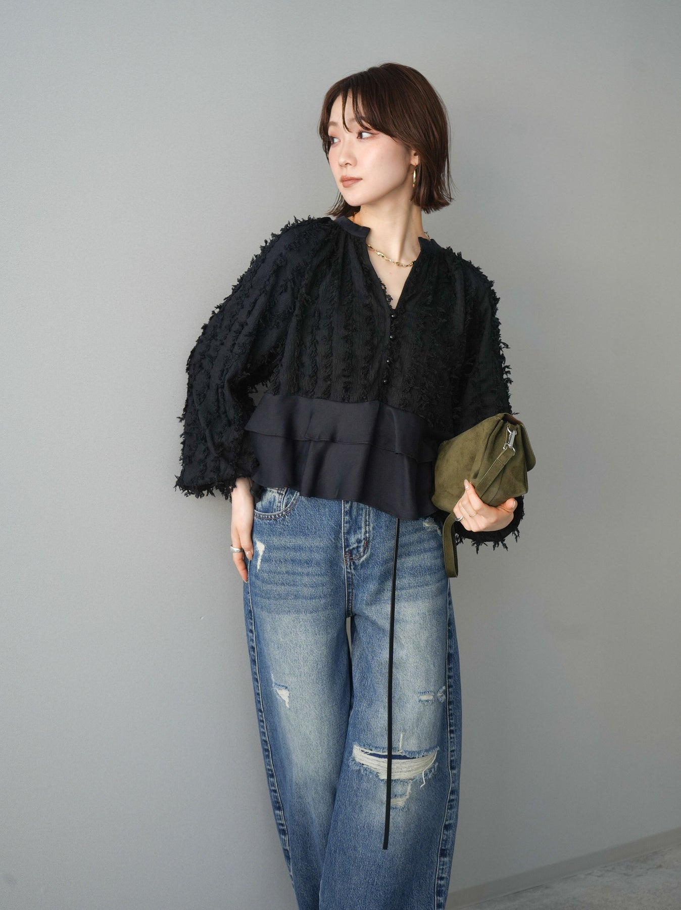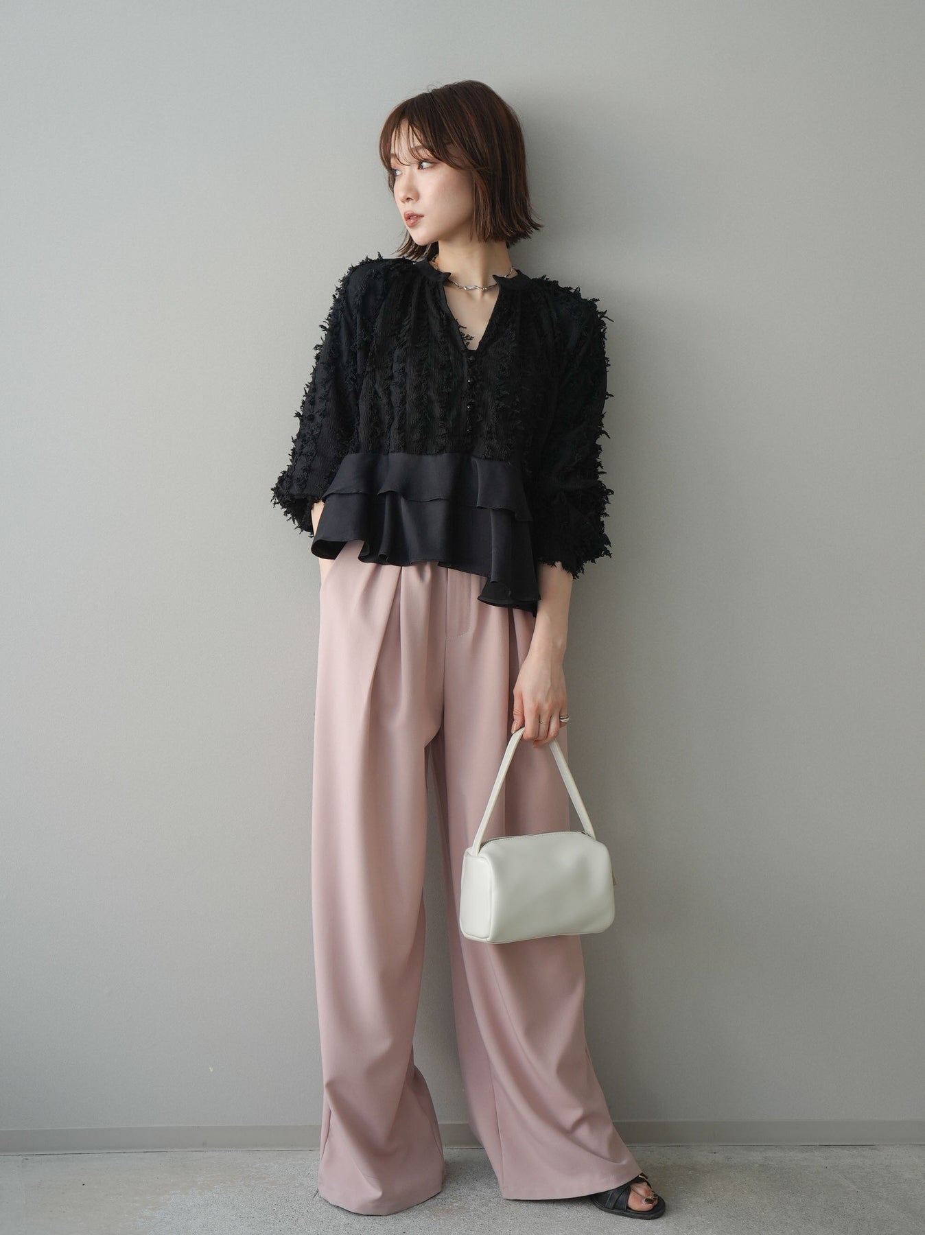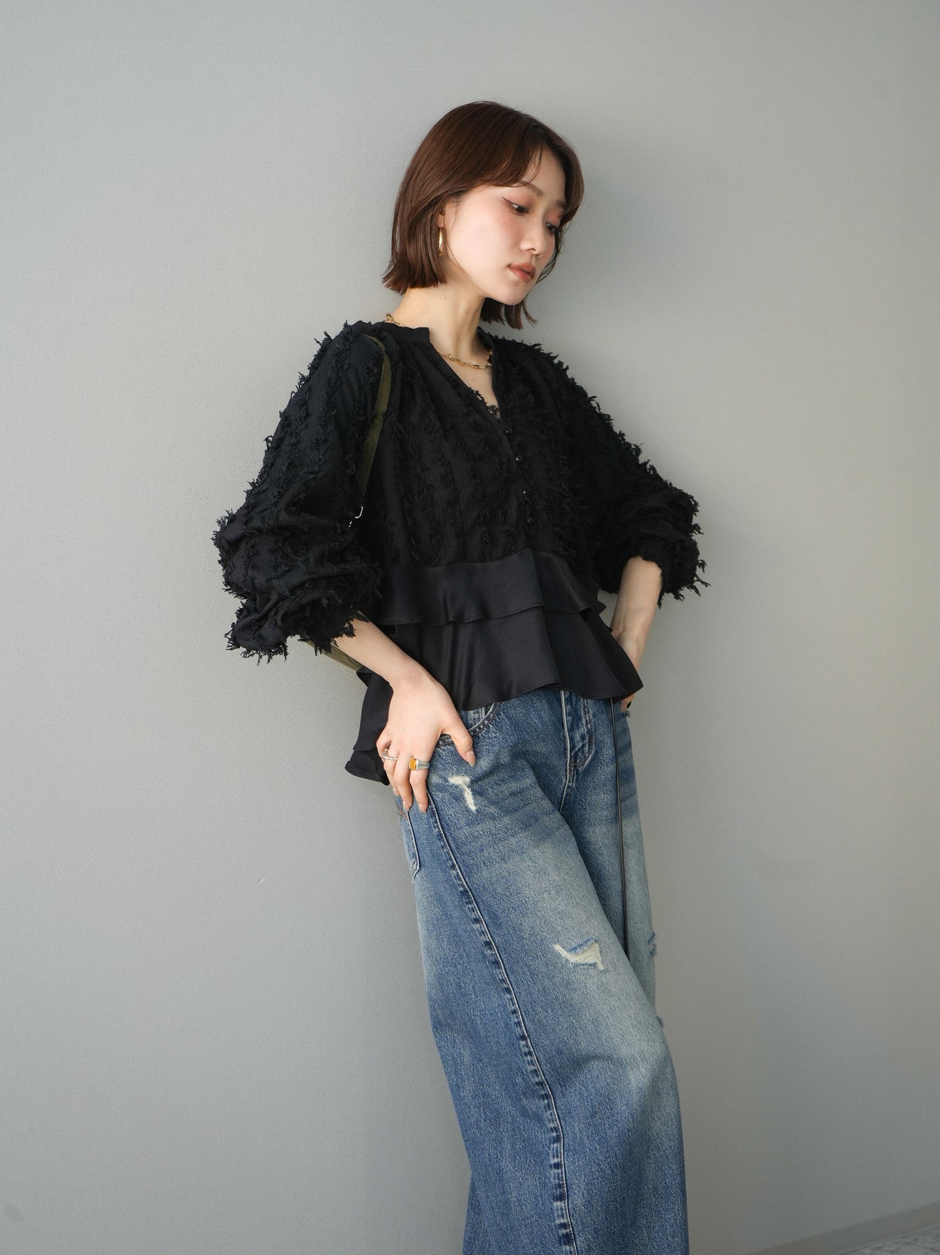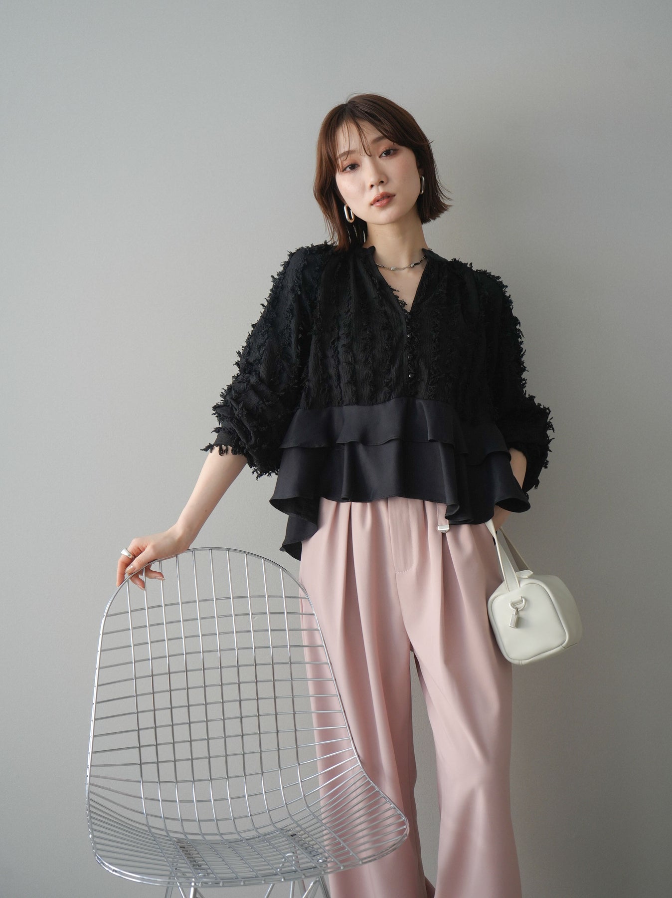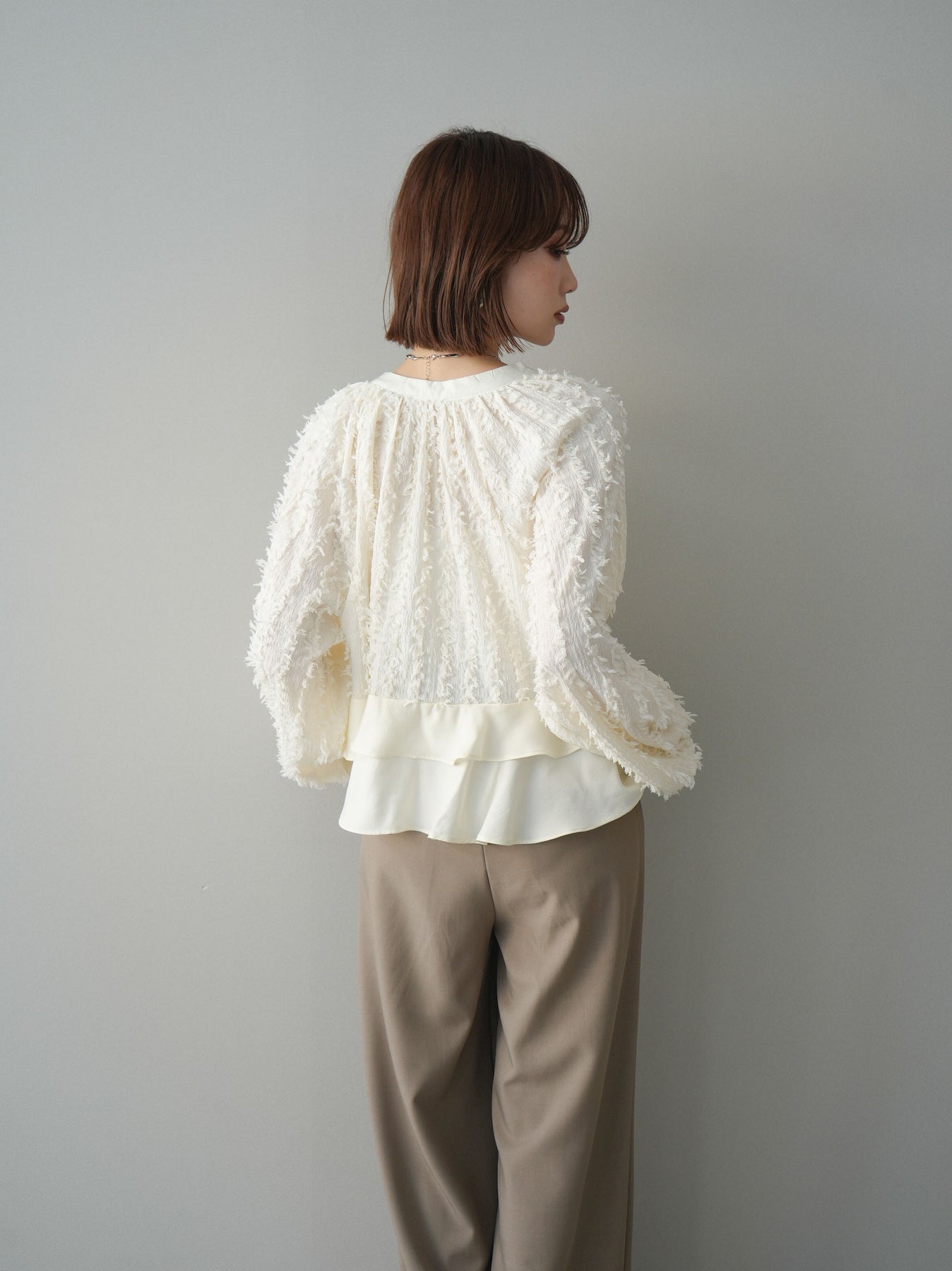 ◆ [予約]ジャガードぺプラムフリルブラウス