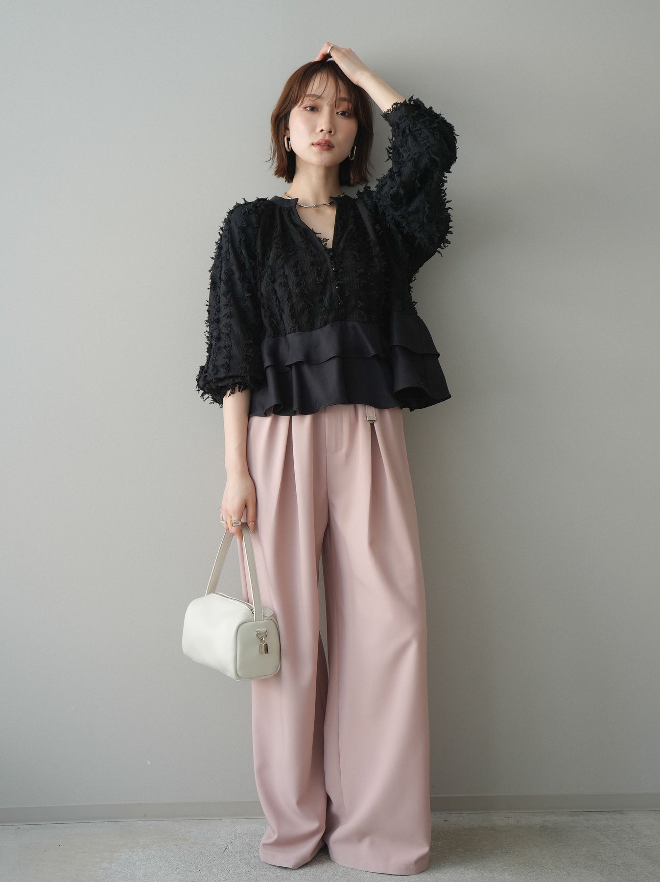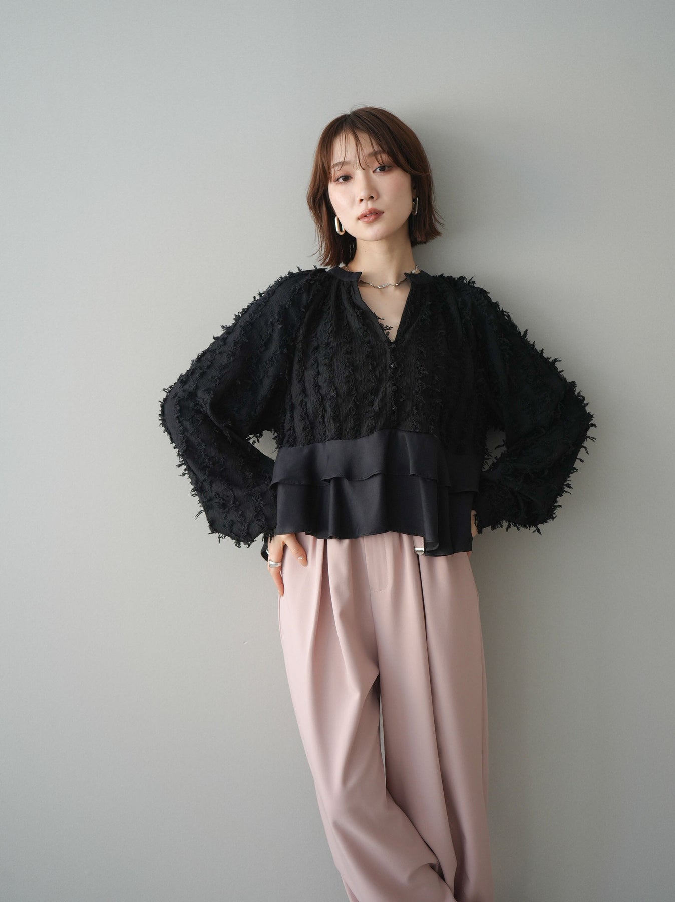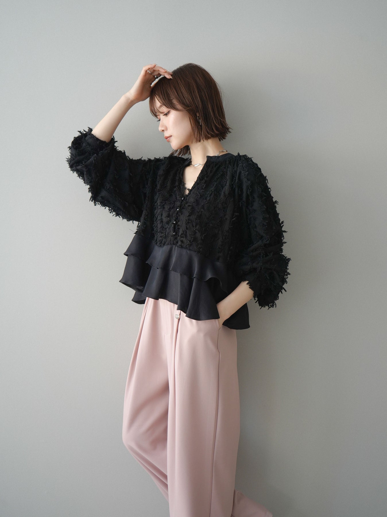 ◆ [予約]ジャガードぺプラムフリルブラウス