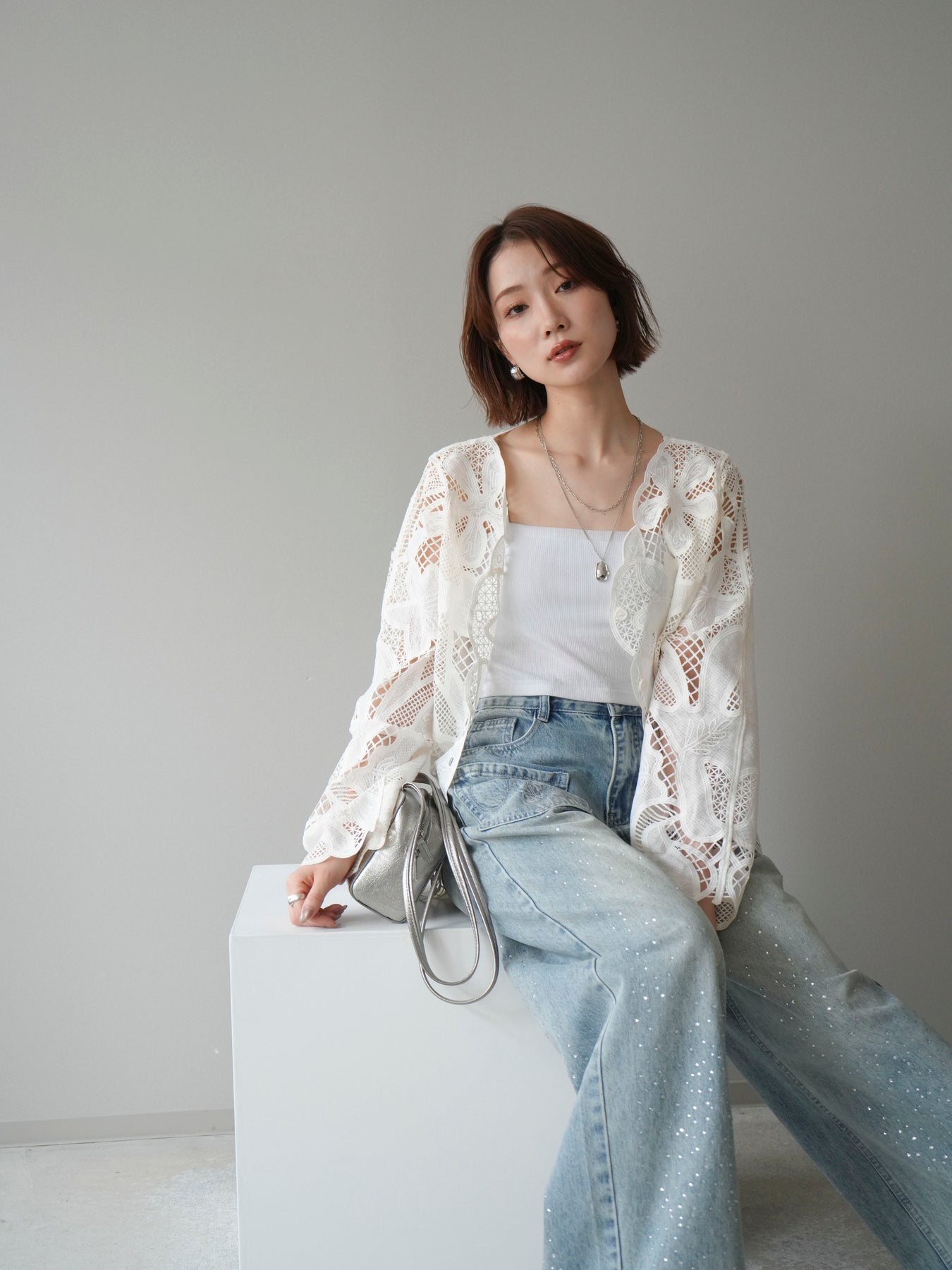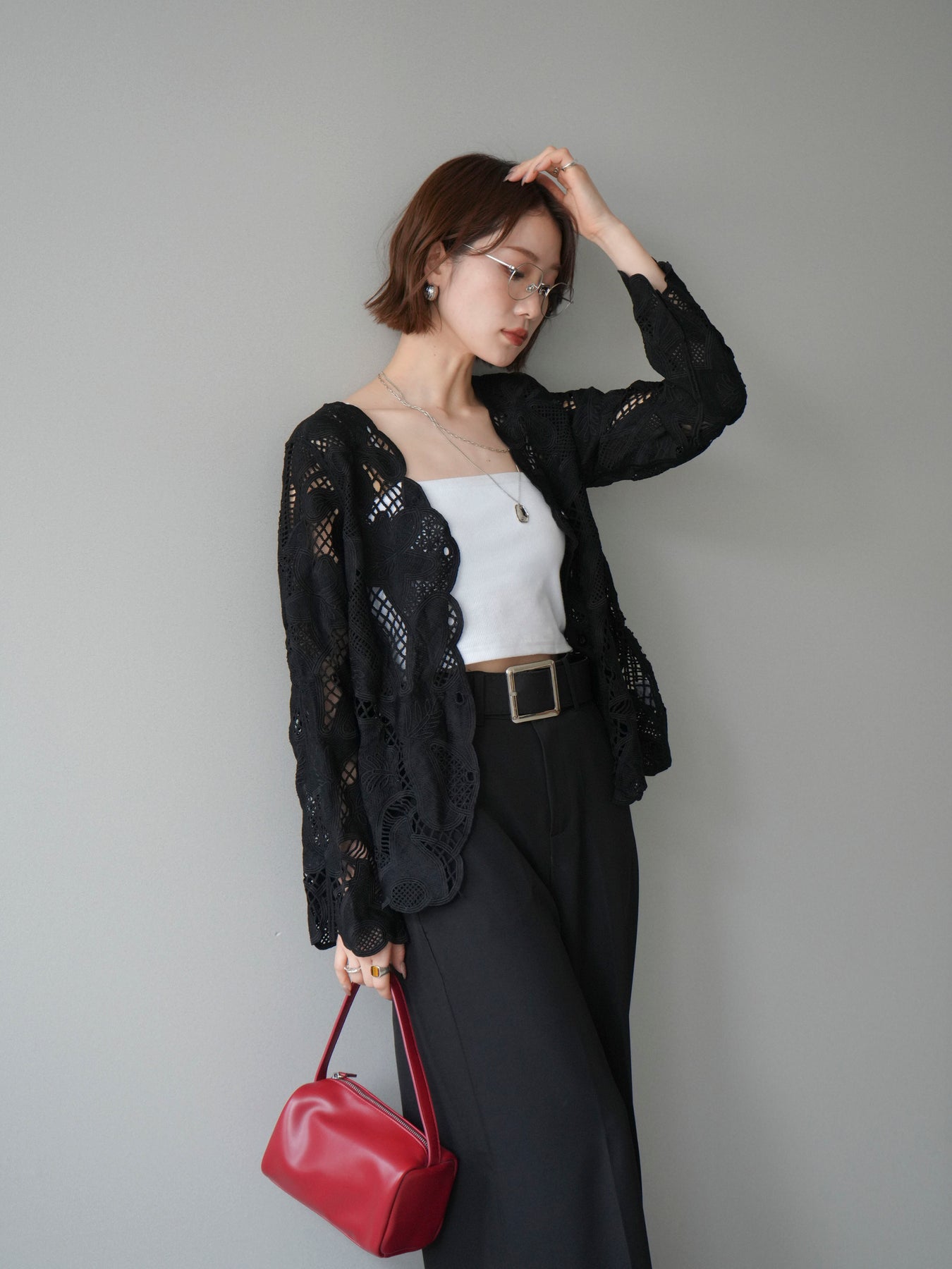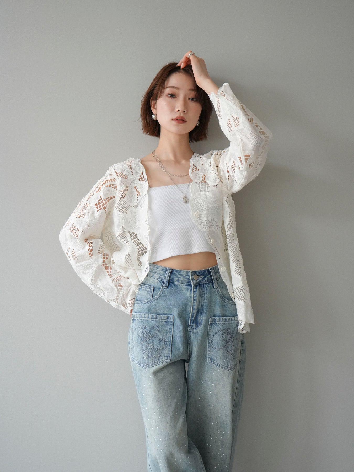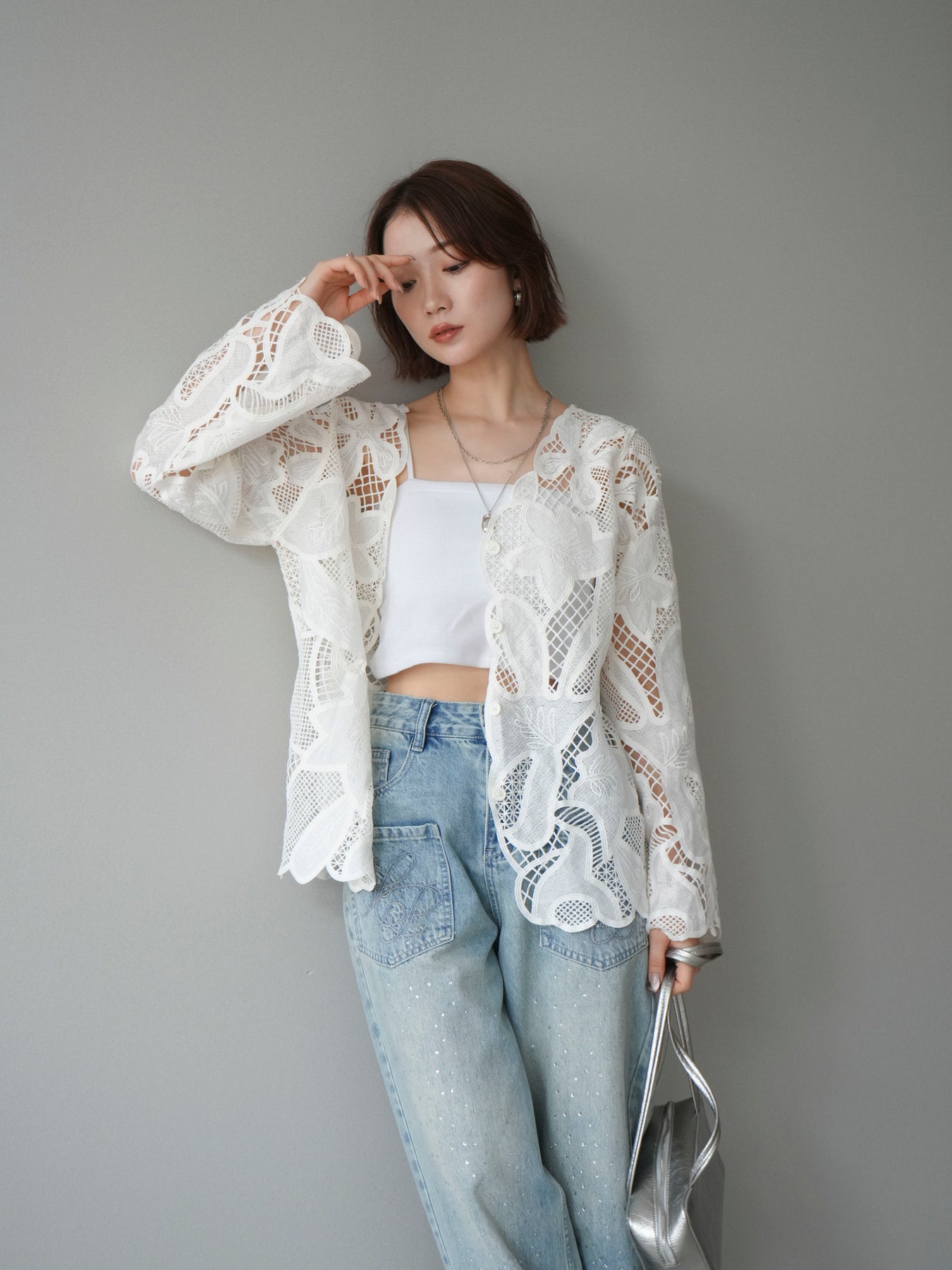 這款扇形邊襯衫飾有精美的立體蕾絲細節。領口和袖口的精緻蕾絲花邊巧妙地勾勒出臉部輪廓,營造出柔美嫵媚的氣質。寬鬆的版型和輕盈的布料,穿著舒適,同時又不失優雅。流蘇裝飾的繫帶更添一絲精緻,為整體造型增添層次感。搭配下裝即可輕鬆打造時尚造型,無論是日常穿著還是外出,都是理想之選。 *請注意,除下裝和吊帶背心(內衣)外,其他商品均不包含內衣。