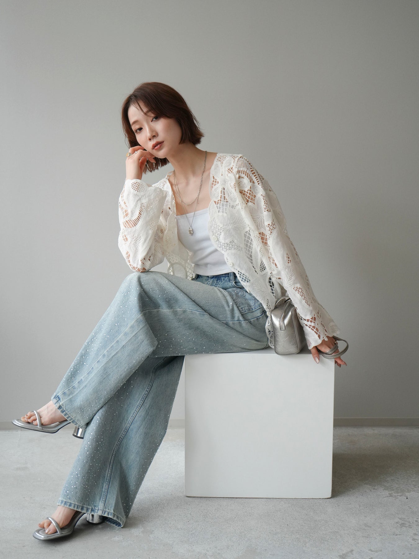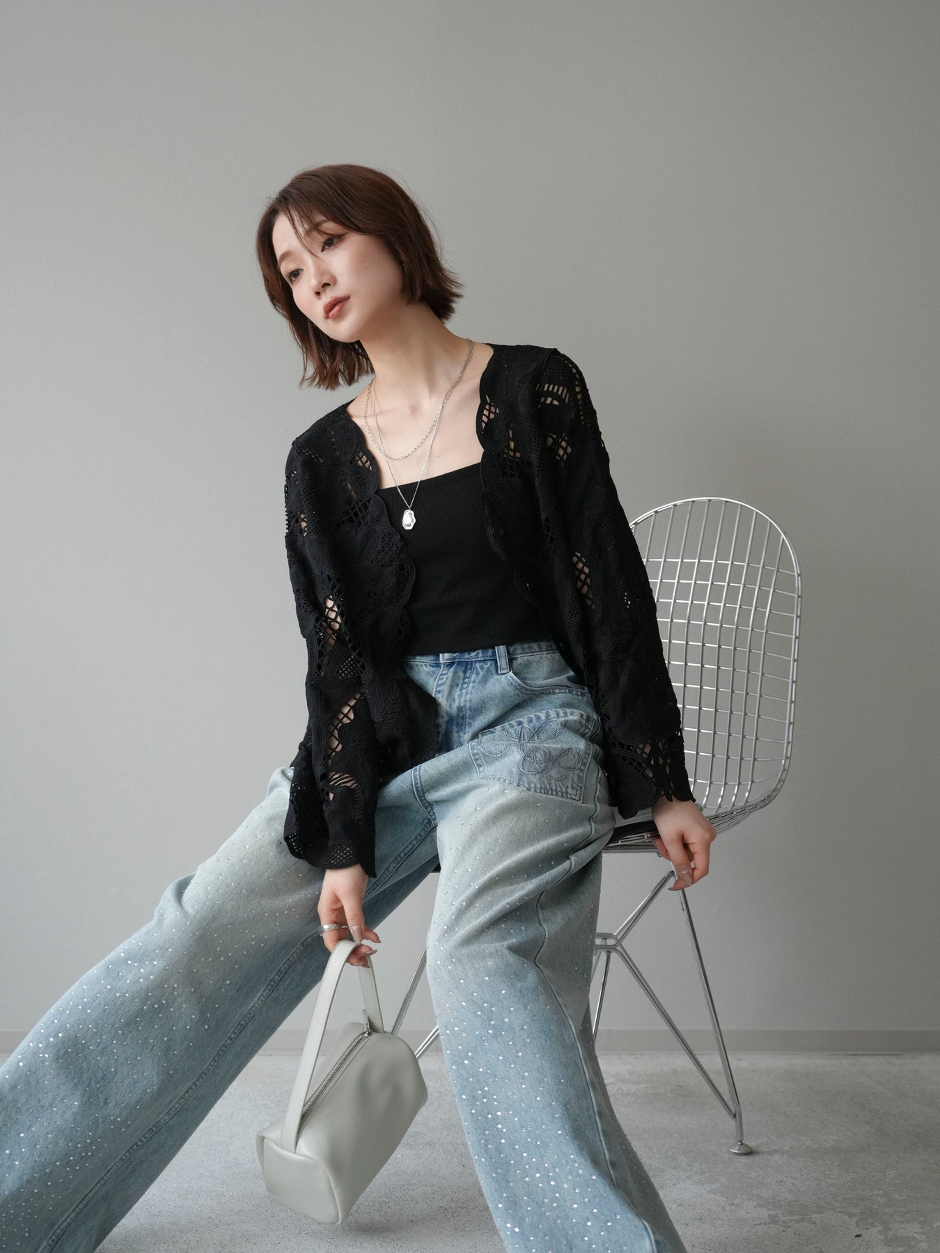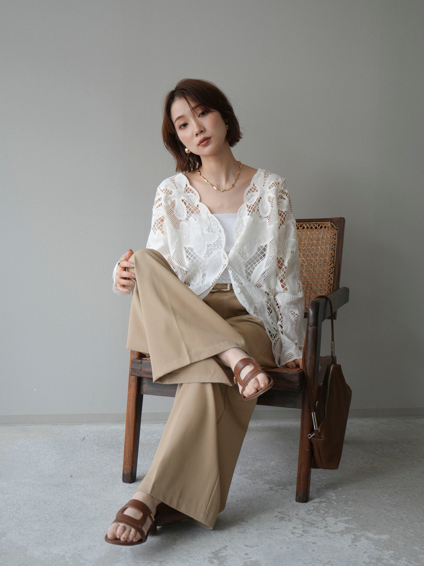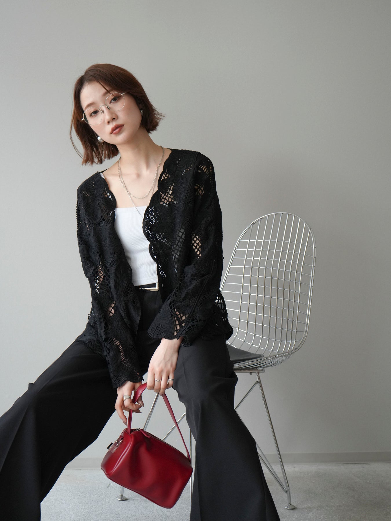 這款扇形邊襯衫飾有精美的立體蕾絲細節。領口和袖口的精緻蕾絲花邊巧妙地勾勒出臉部輪廓,營造出柔美嫵媚的氣質。寬鬆的版型和輕盈的布料,穿著舒適,同時又不失優雅。流蘇裝飾的繫帶更添一絲精緻,為整體造型增添層次感。搭配下裝即可輕鬆打造時尚造型,無論是日常穿著還是外出,都是理想之選。 *請注意,除下裝和吊帶背心(內衣)外,其他商品均不包含內衣。