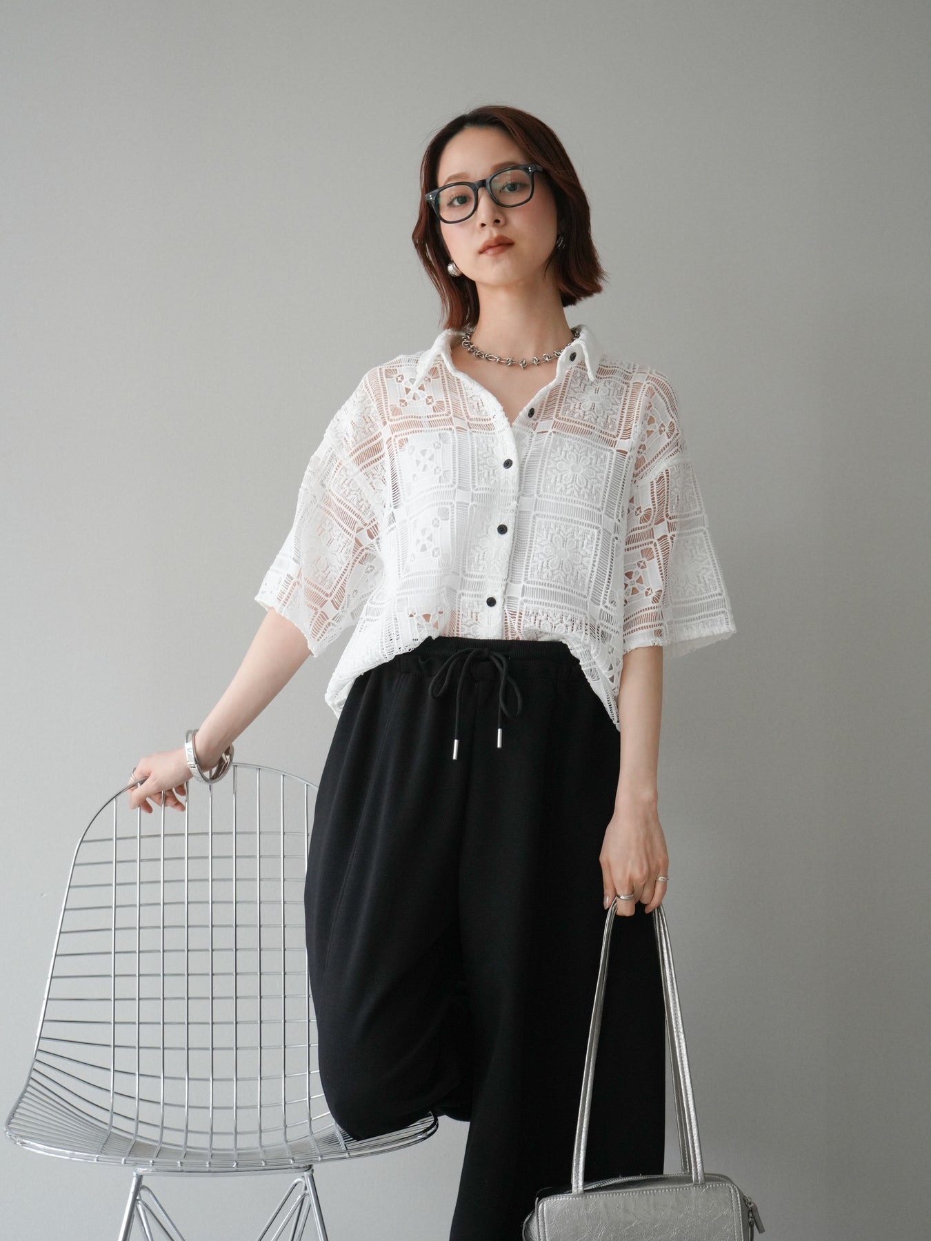 這款半袖襯衫飾有精緻的方形蕾絲。立體蕾絲布料營造出輕盈飄逸的效果,為您的造型增添一絲輕盈優雅。寬鬆舒適的版型,更添精緻氣質。前襟扣環設計,既可作為上衣穿著,也可作為輕薄外套。內搭內衣,打造百變造型,是日常穿著和特殊場合的理想選擇。 *請注意,除下裝和吊帶背心(內衣)外,其他商品均不包含內衣。