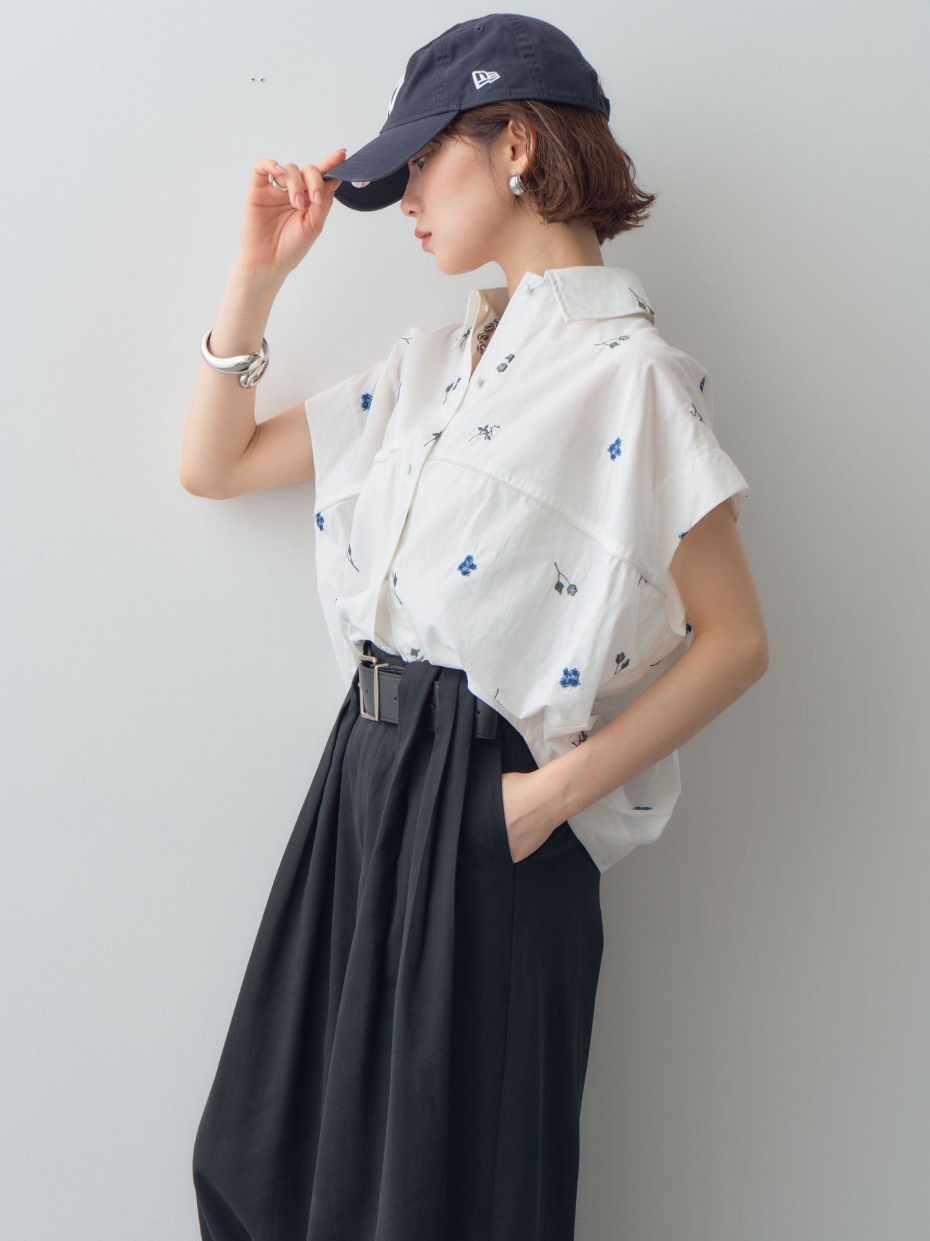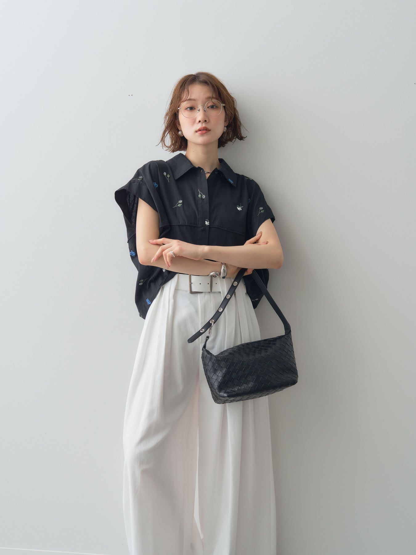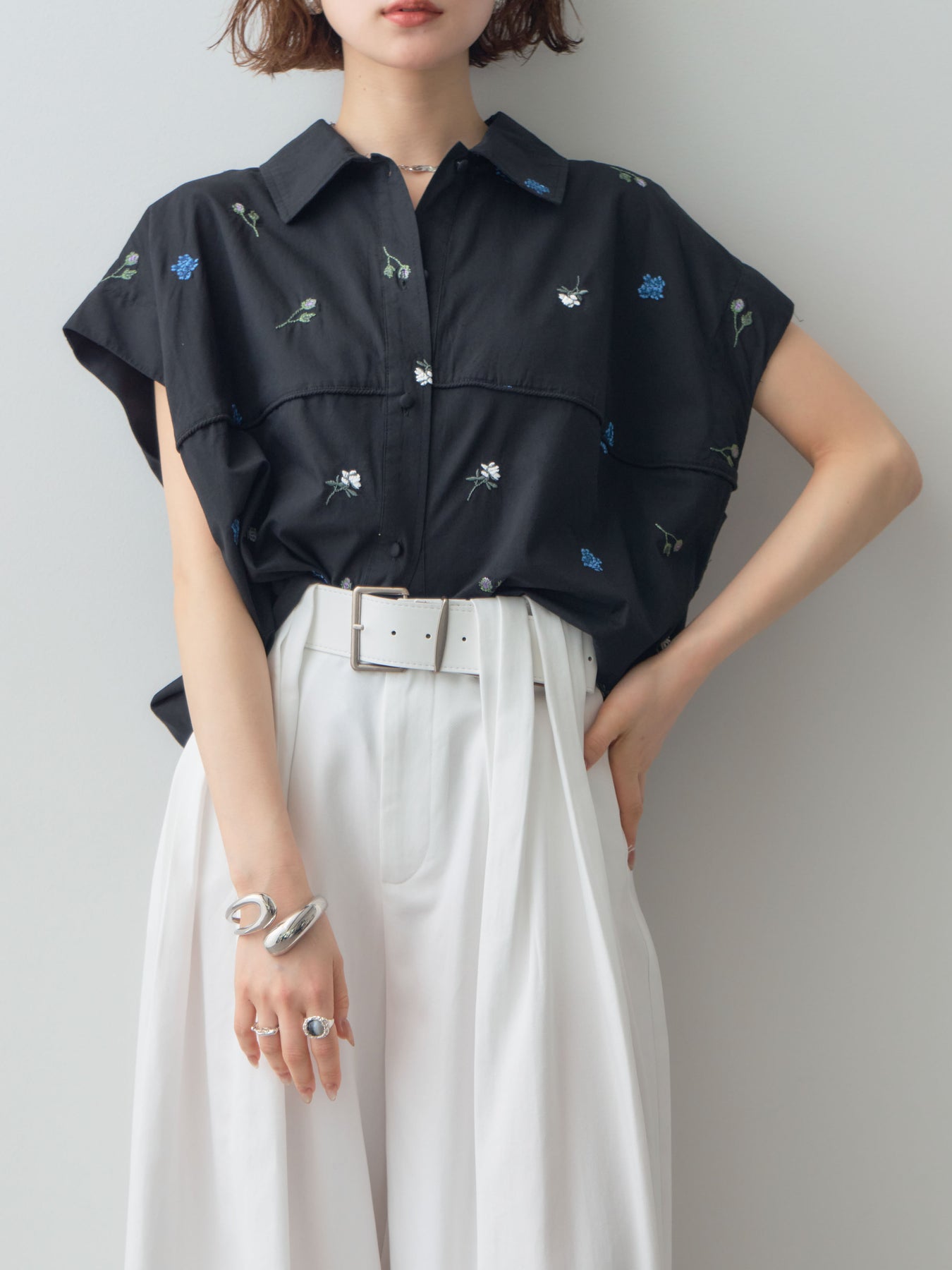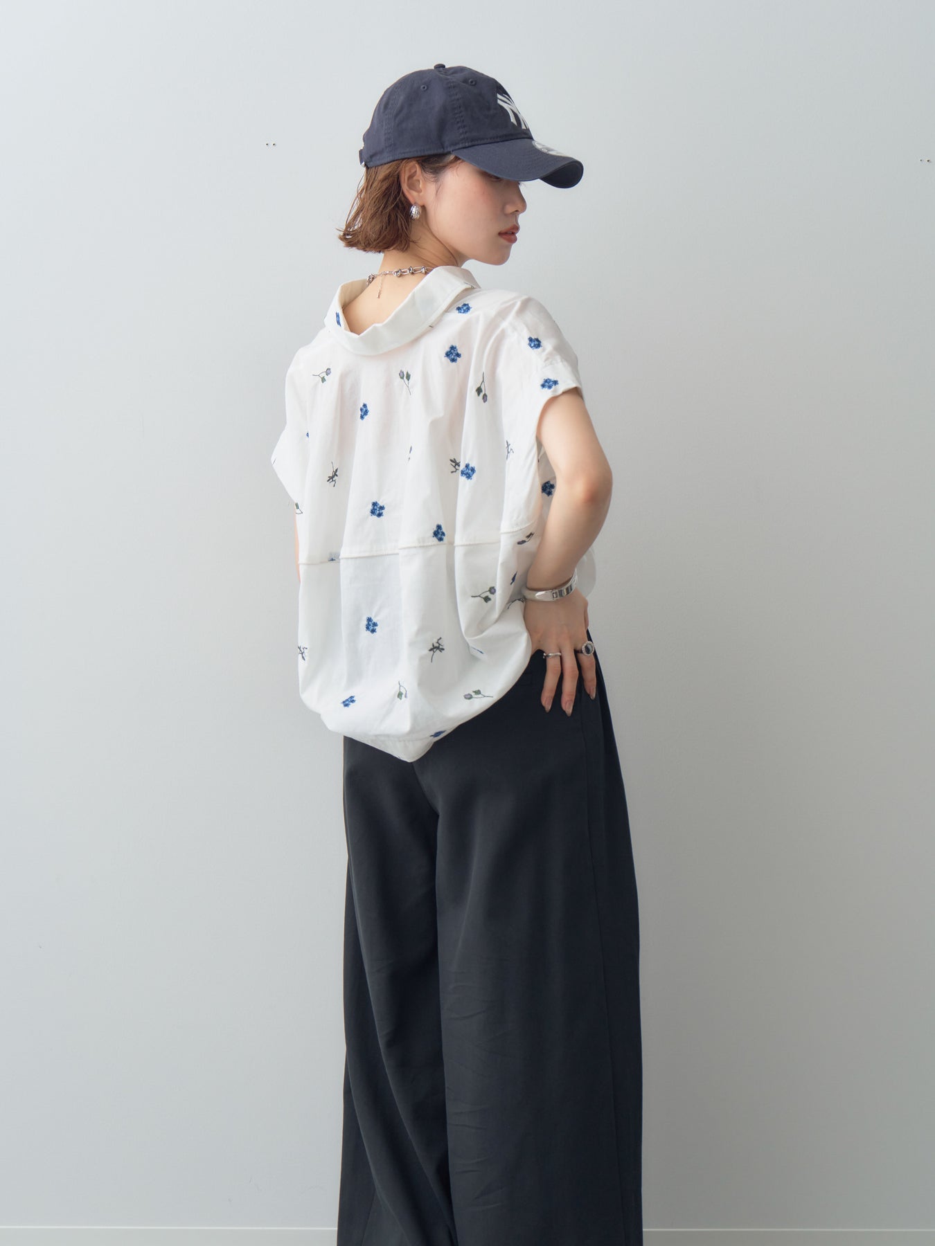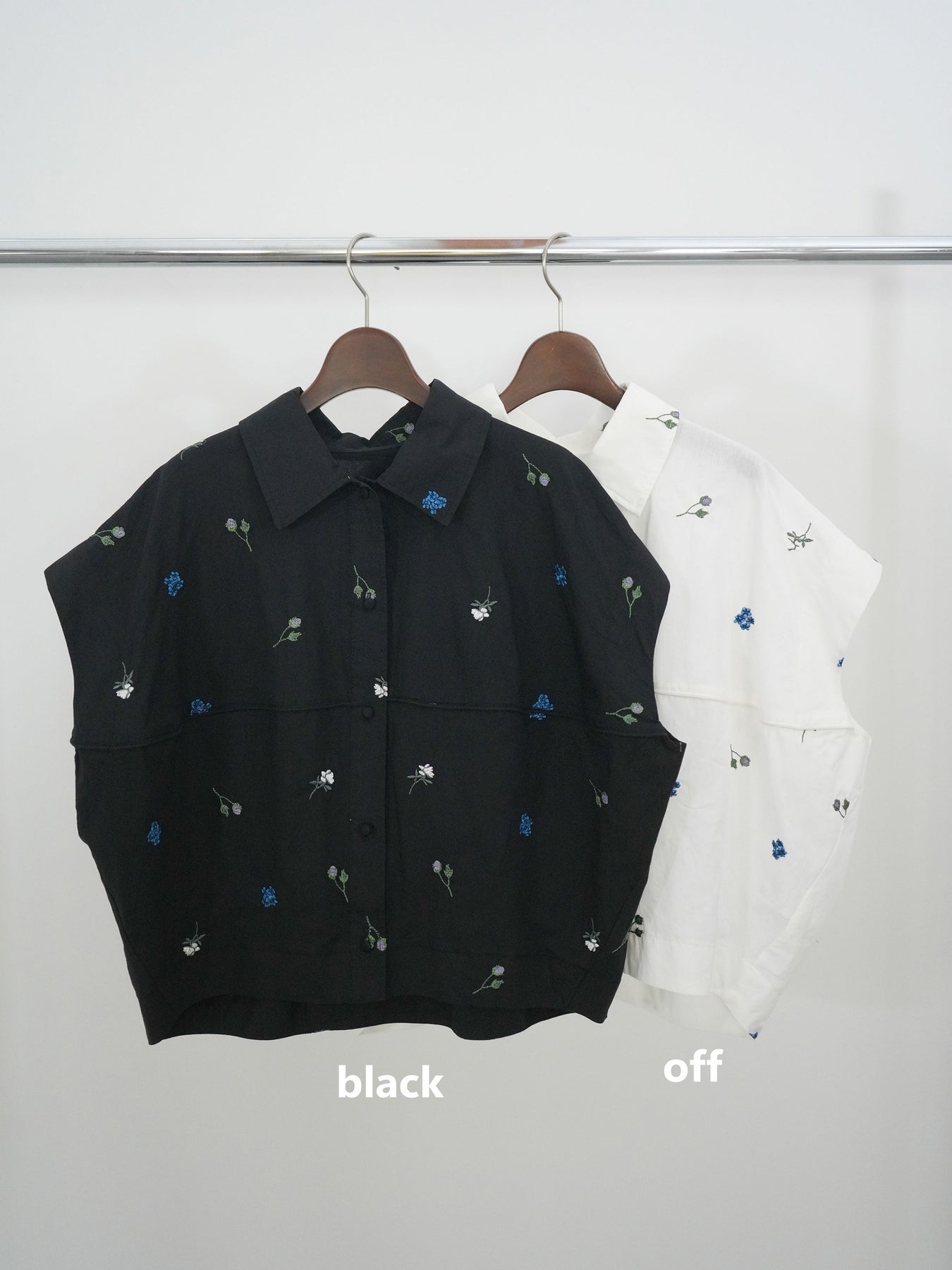 ◆ 【預購】花朵刺繡燈籠無袖襯衫