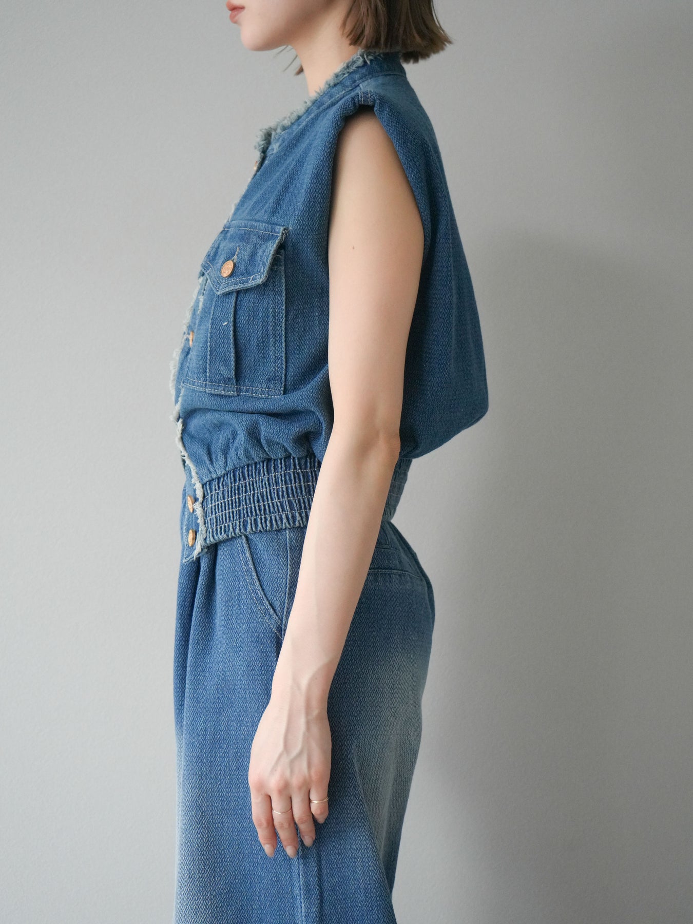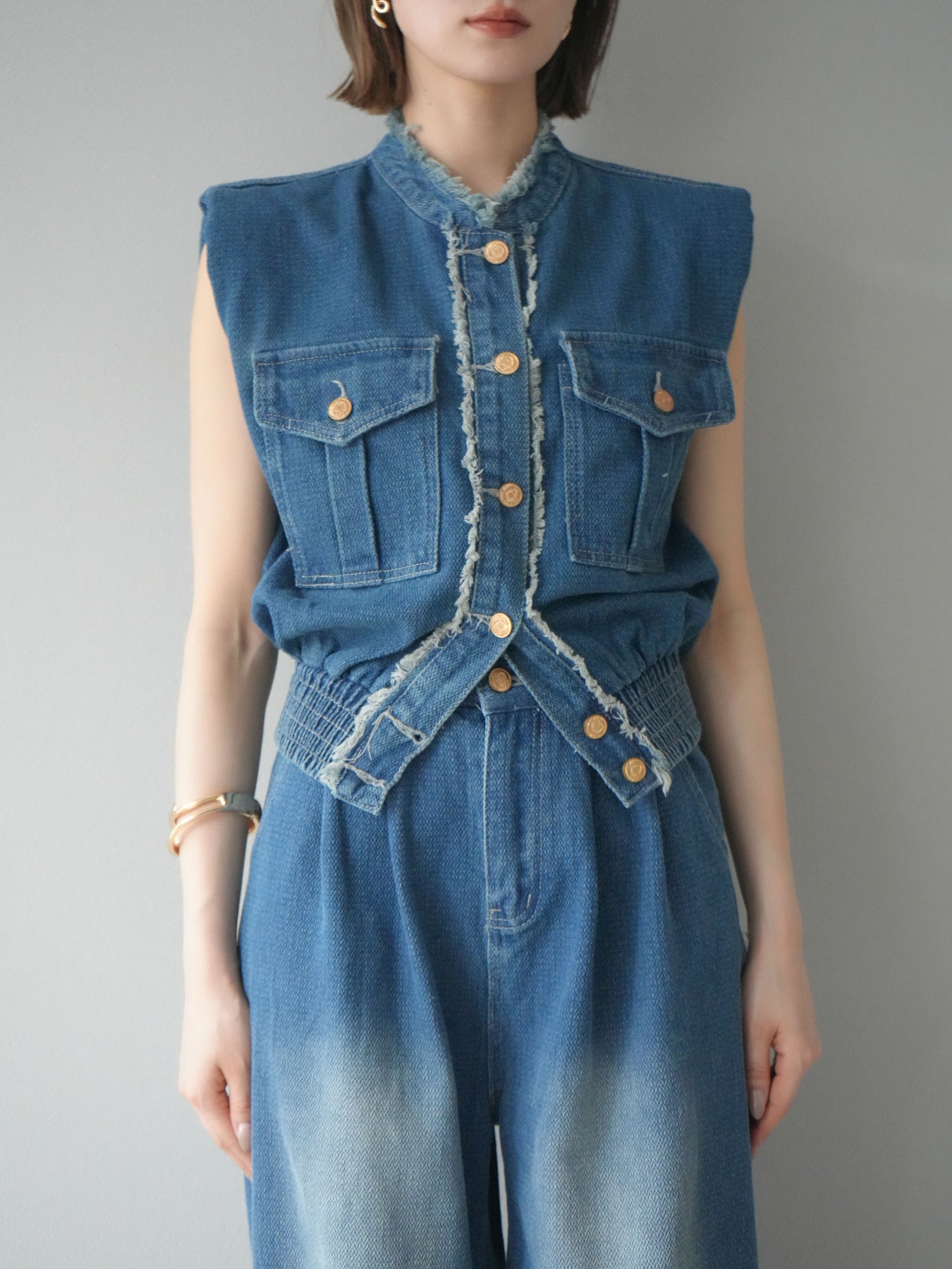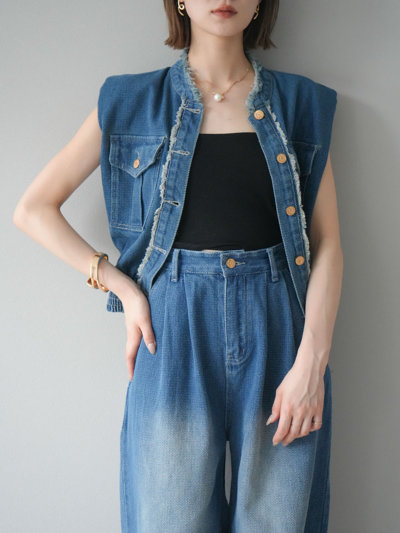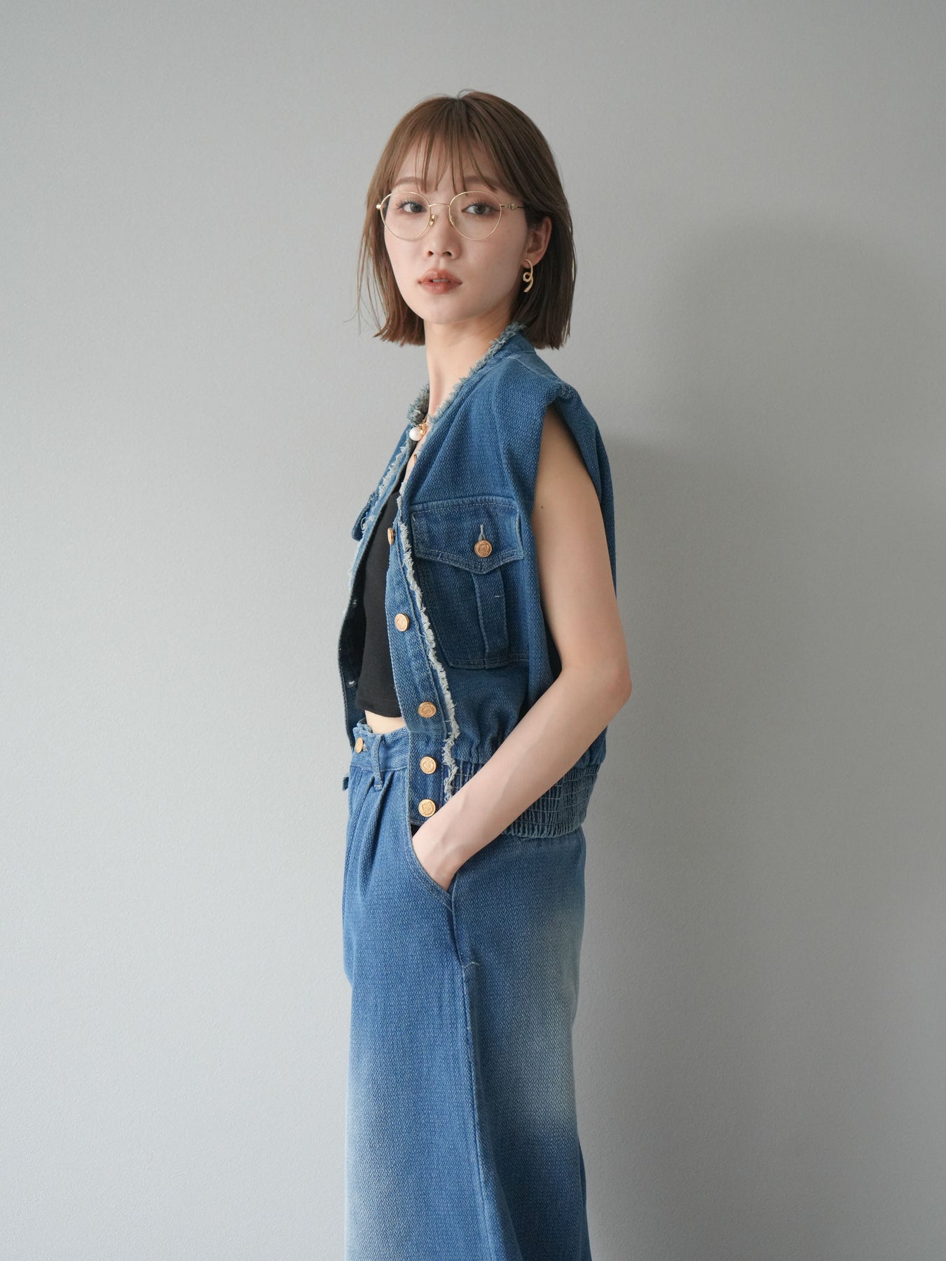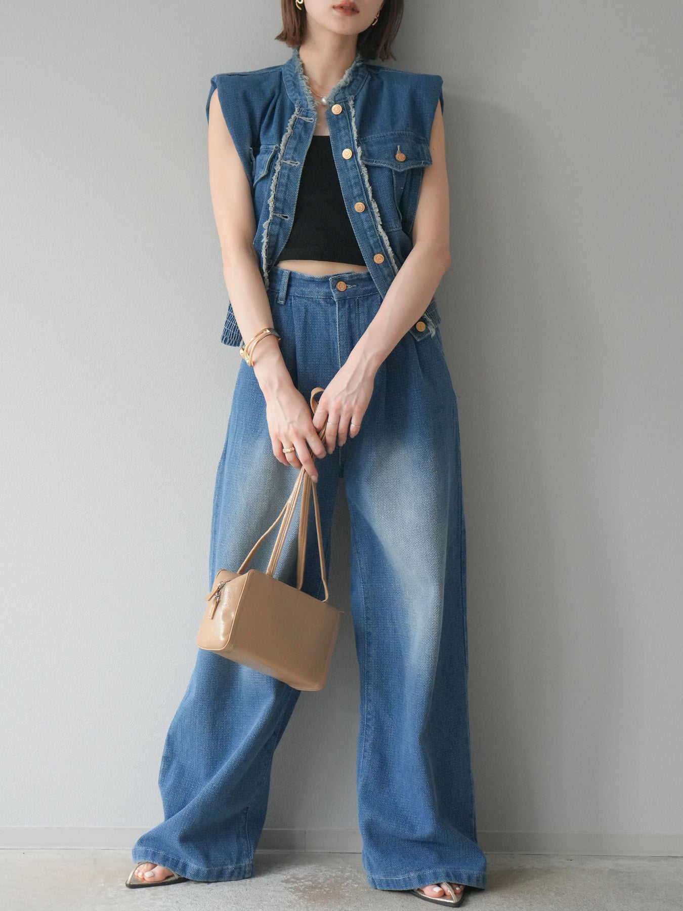 [SET] 流蘇牛仔背心&褲子套裝/藍色(2件套)