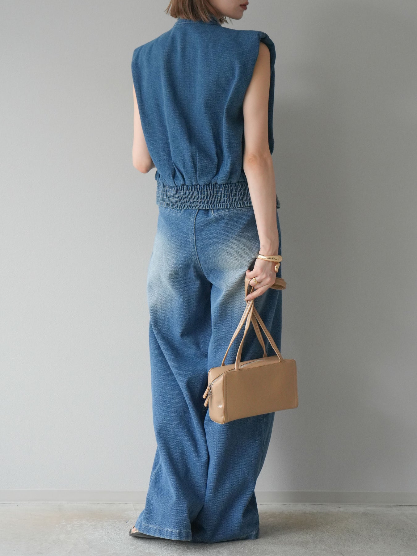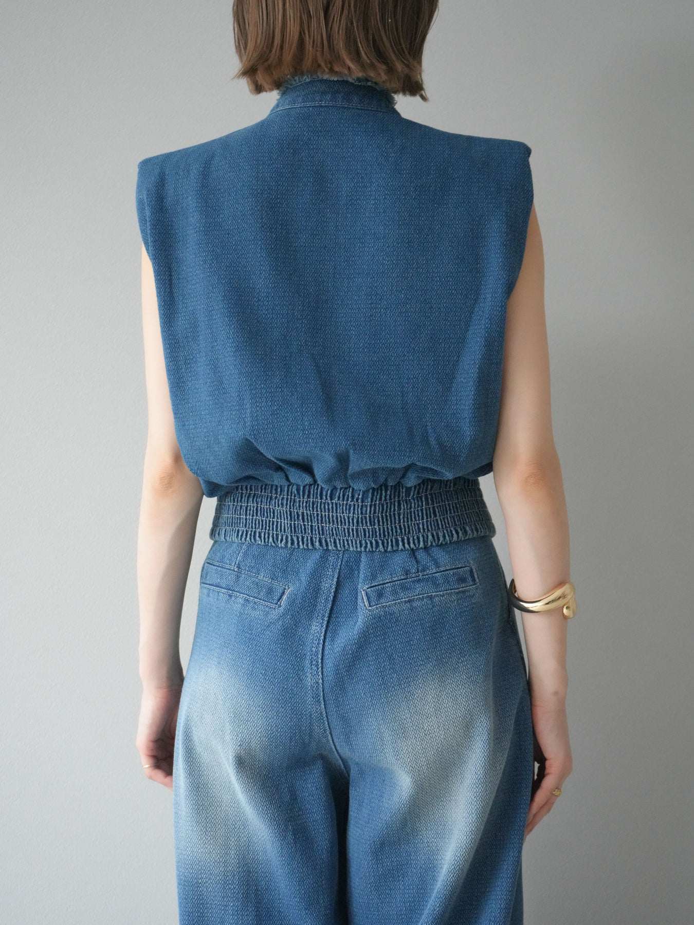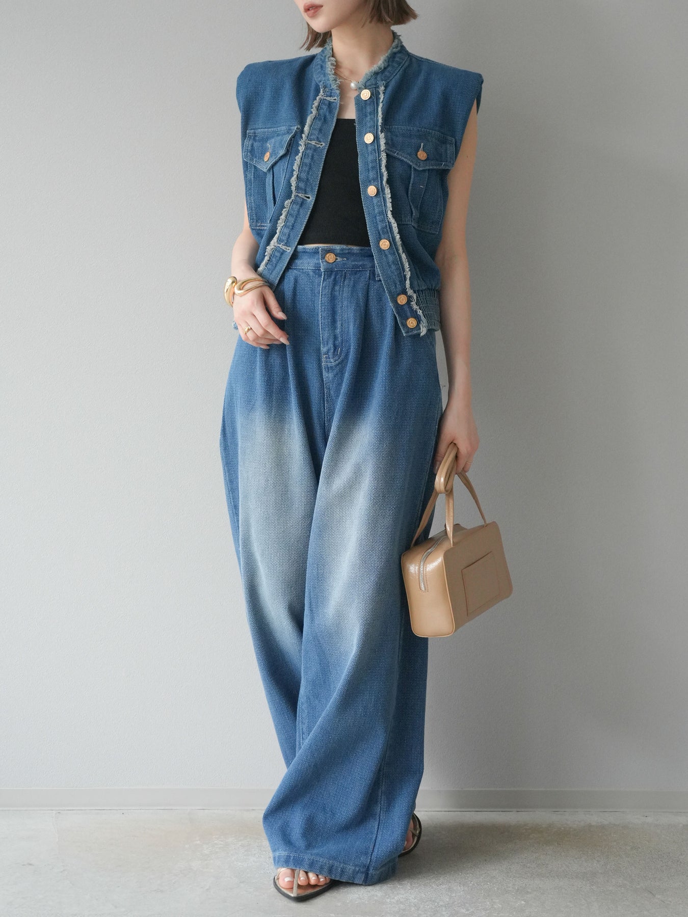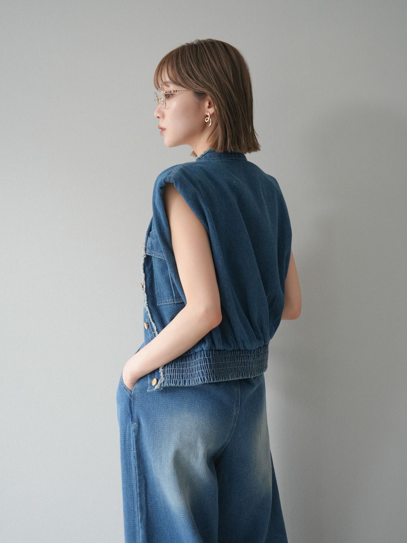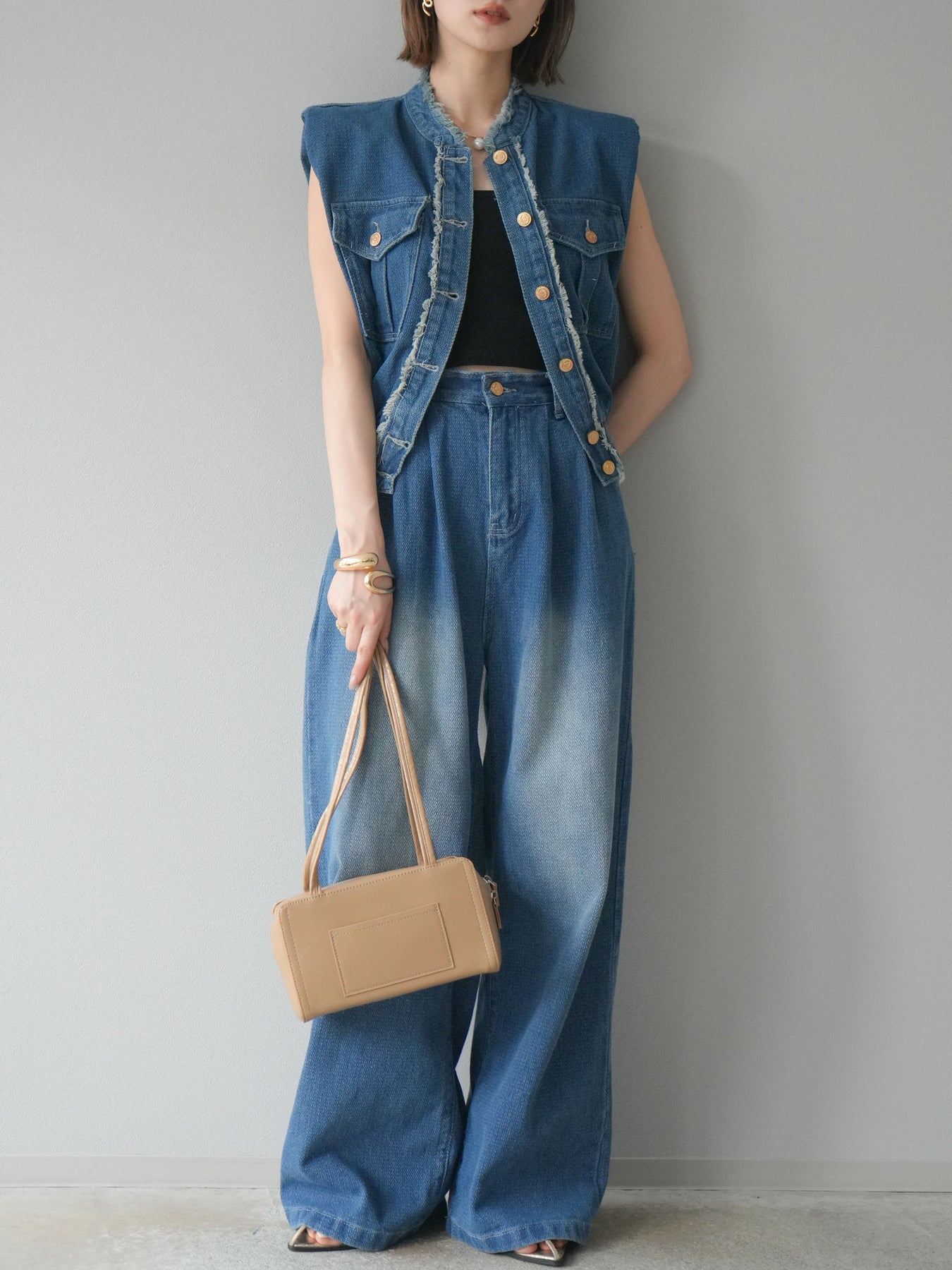 流蘇點綴的牛仔背心和褲子套裝。背心採用小巧的剪裁和褶飾,打造清晰的輪廓;褲子則採用寬鬆的廓形,打造休閒的造型。既可以成套穿著,也可以單獨穿著。打造緊跟本季潮流的牛仔風格。 *除下裝及吊帶背心(內衣)外,所有商品均為標準配置,不含內衣。