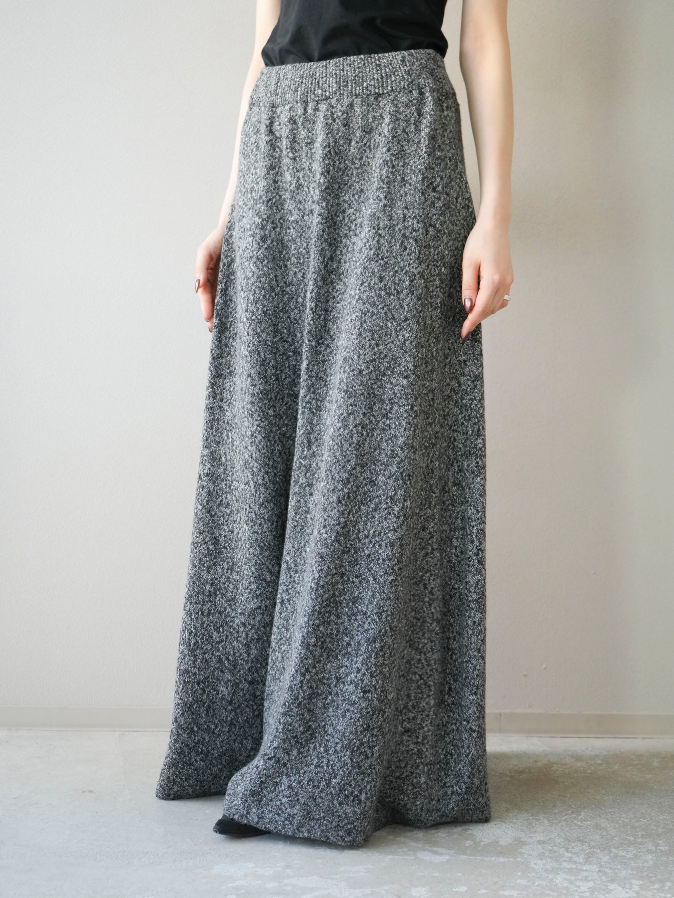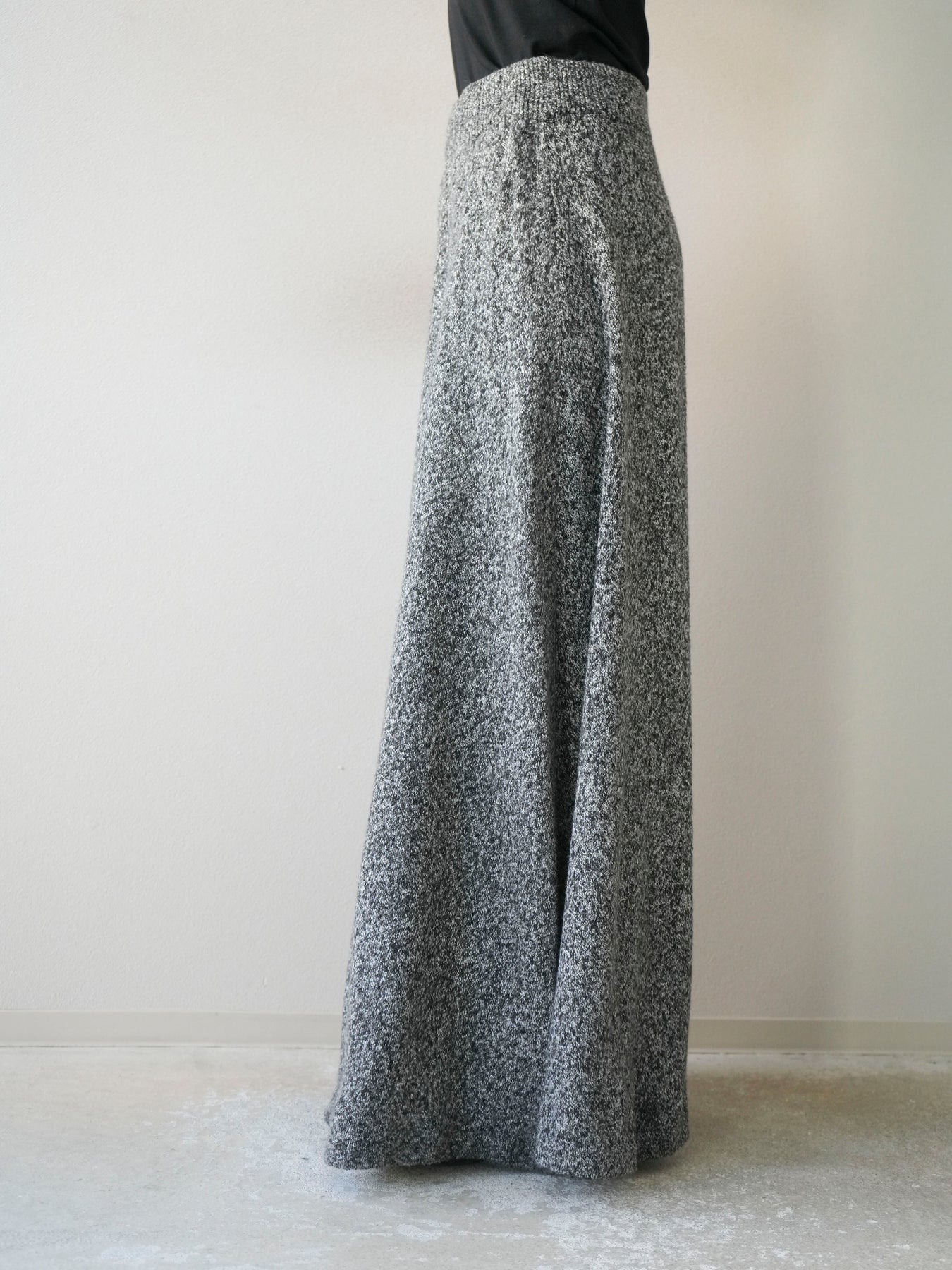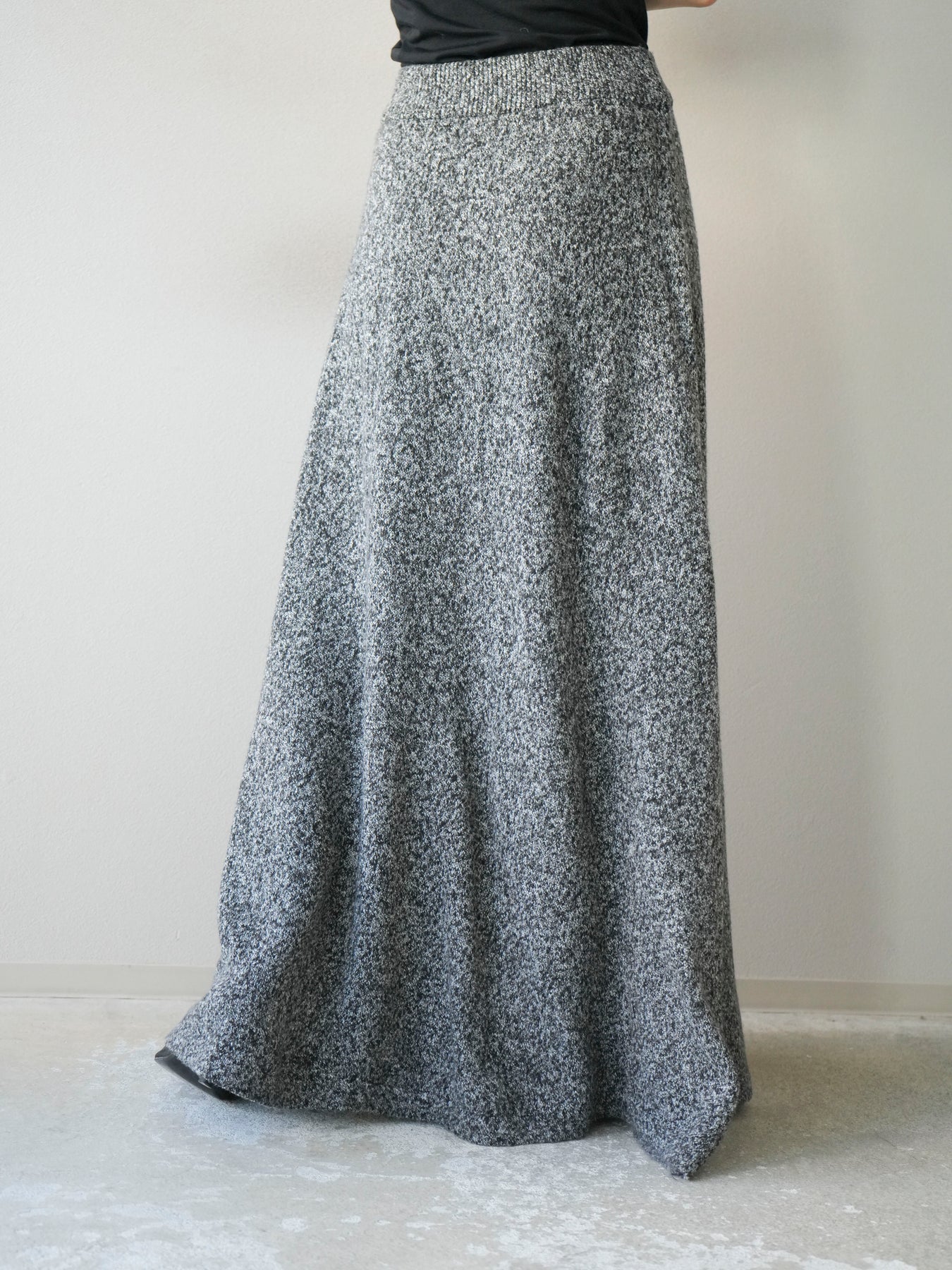 表情豊かなミックスヤーンを使用したニットスカート。歩くたびに揺れる柔らかな素材感と程よいフレアシルエットが、女性らしい印象を引き立てます。ウエストはゴム仕様で快適な穿き心地を叶えつつ、リラックス感のある着用感が魅力。シンプルなトップスを合わせるだけでコーディネートが完成し、同素材のトップスやベストと合わせてセットアップ風に着こなすのもおすすめです。シーズンムードを高めてくれる、デイリーに取り入れやすい一着です。