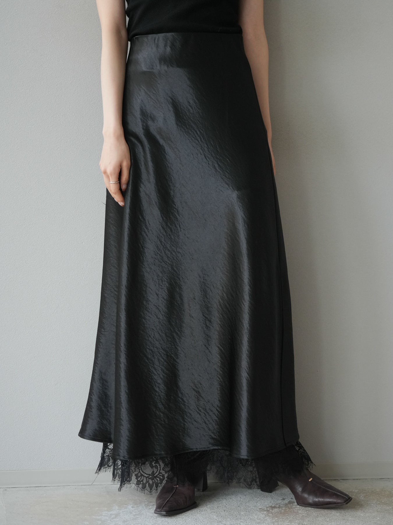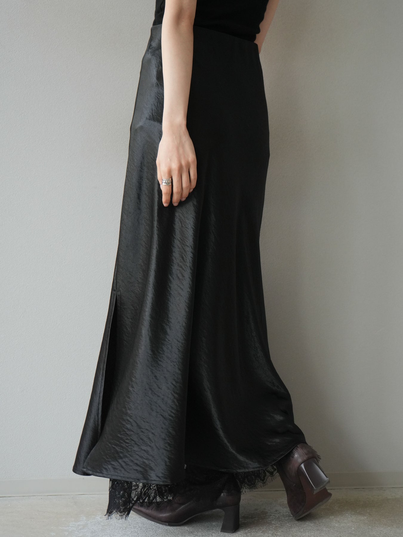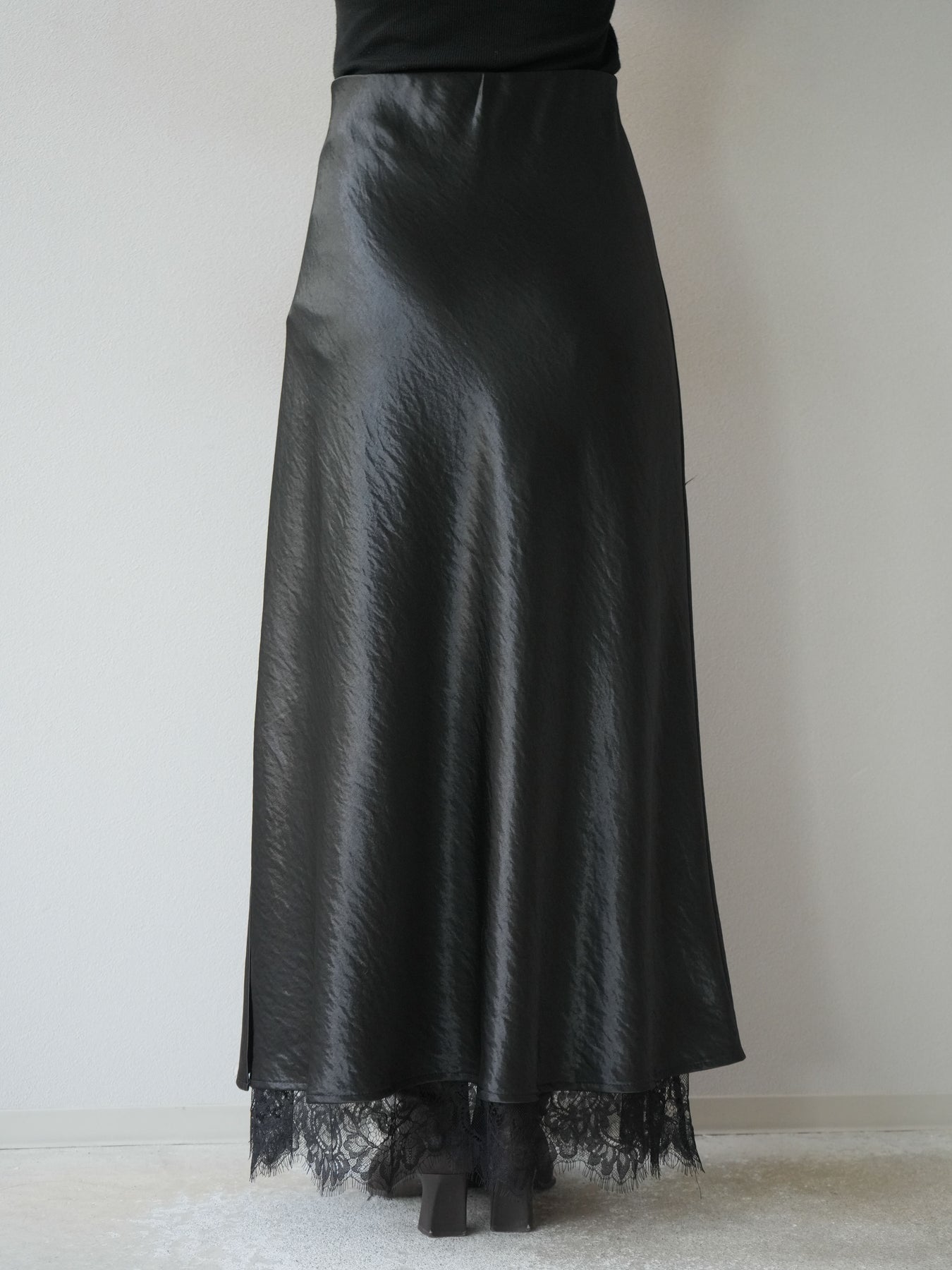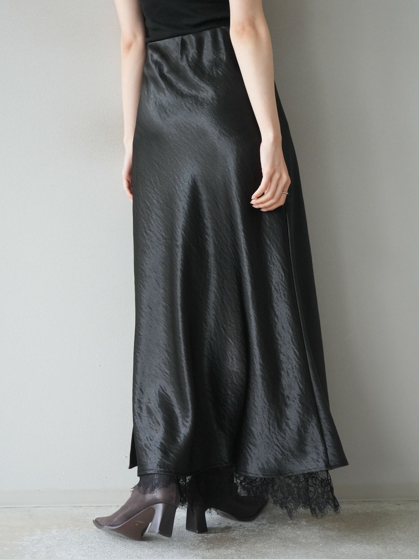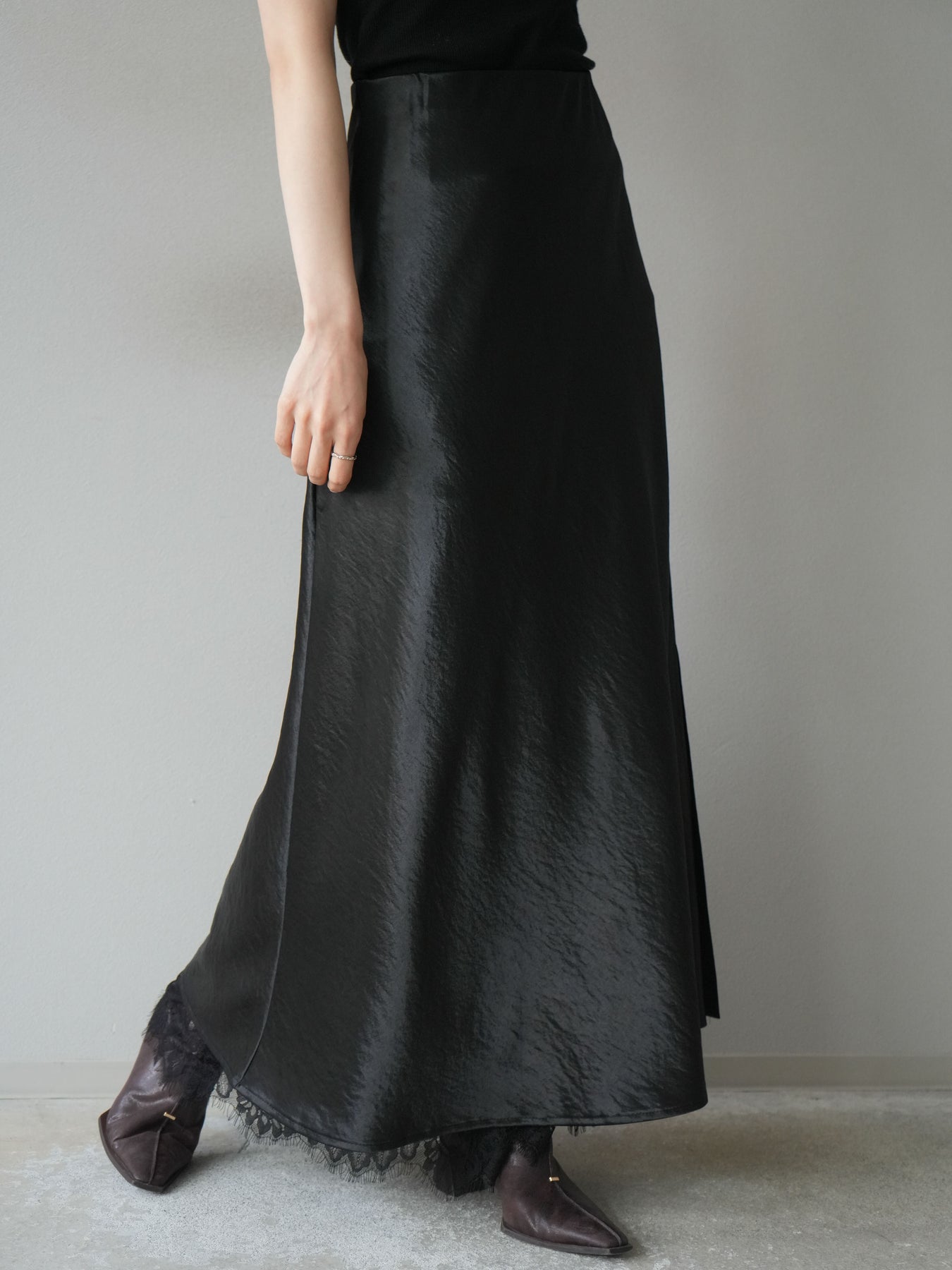 上品な光沢感のあるサテン素材に、裾のレースをあしらったナロースカート。動くたびに揺れるレースが女性らしさを引き立て、エレガントな印象を演出します。程よく身体に沿うシルエットが美しいラインを描き、スタイルアップ効果も◎。シンプルなトップスを合わせるだけで上品にまとまり、カジュアルにもきれいめにも着回せる万能アイテムです。