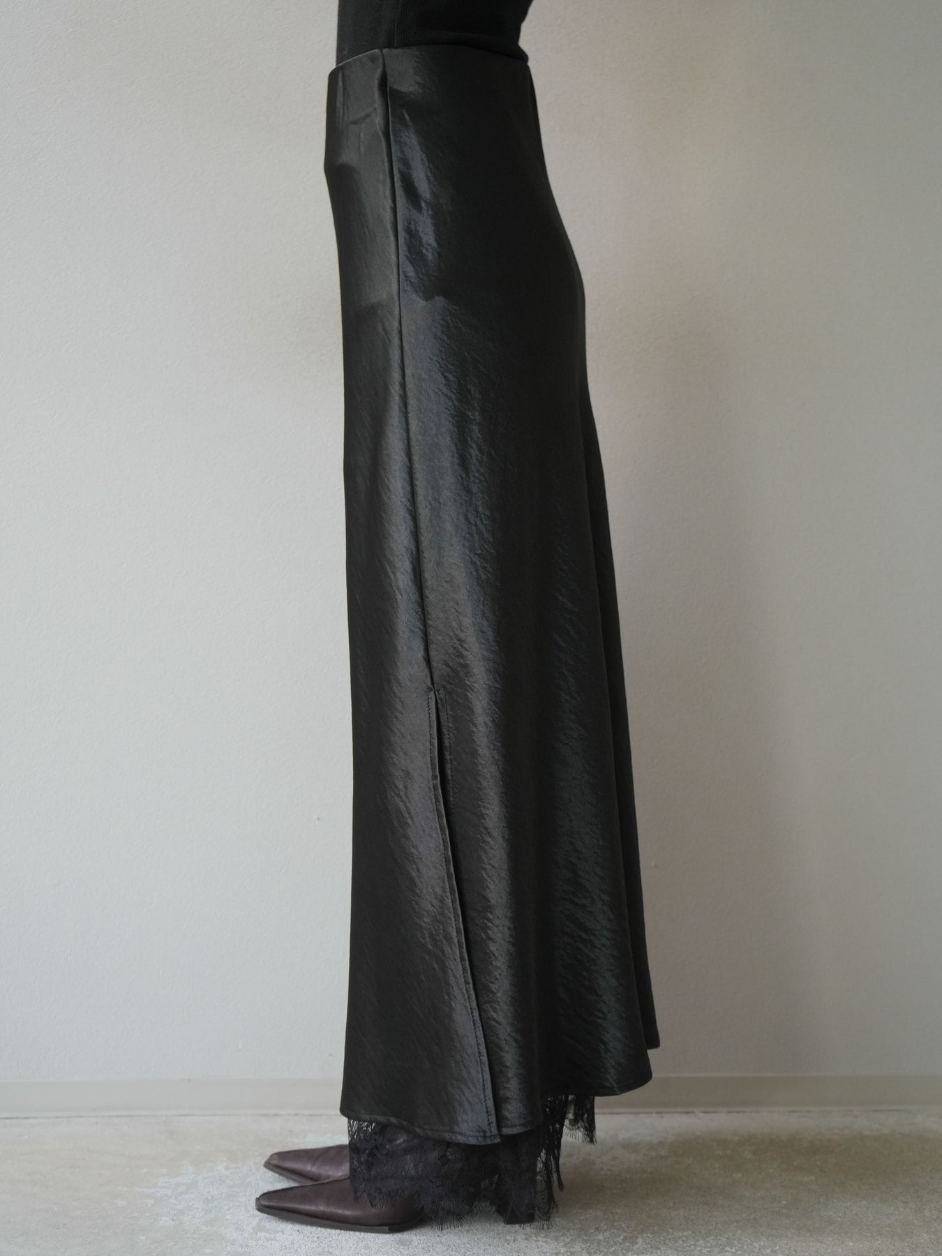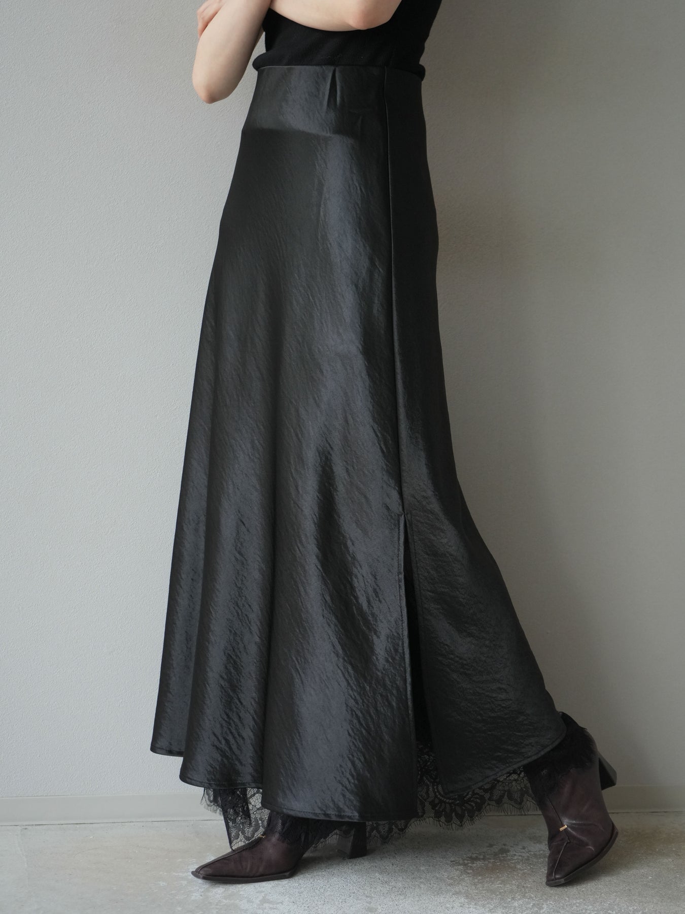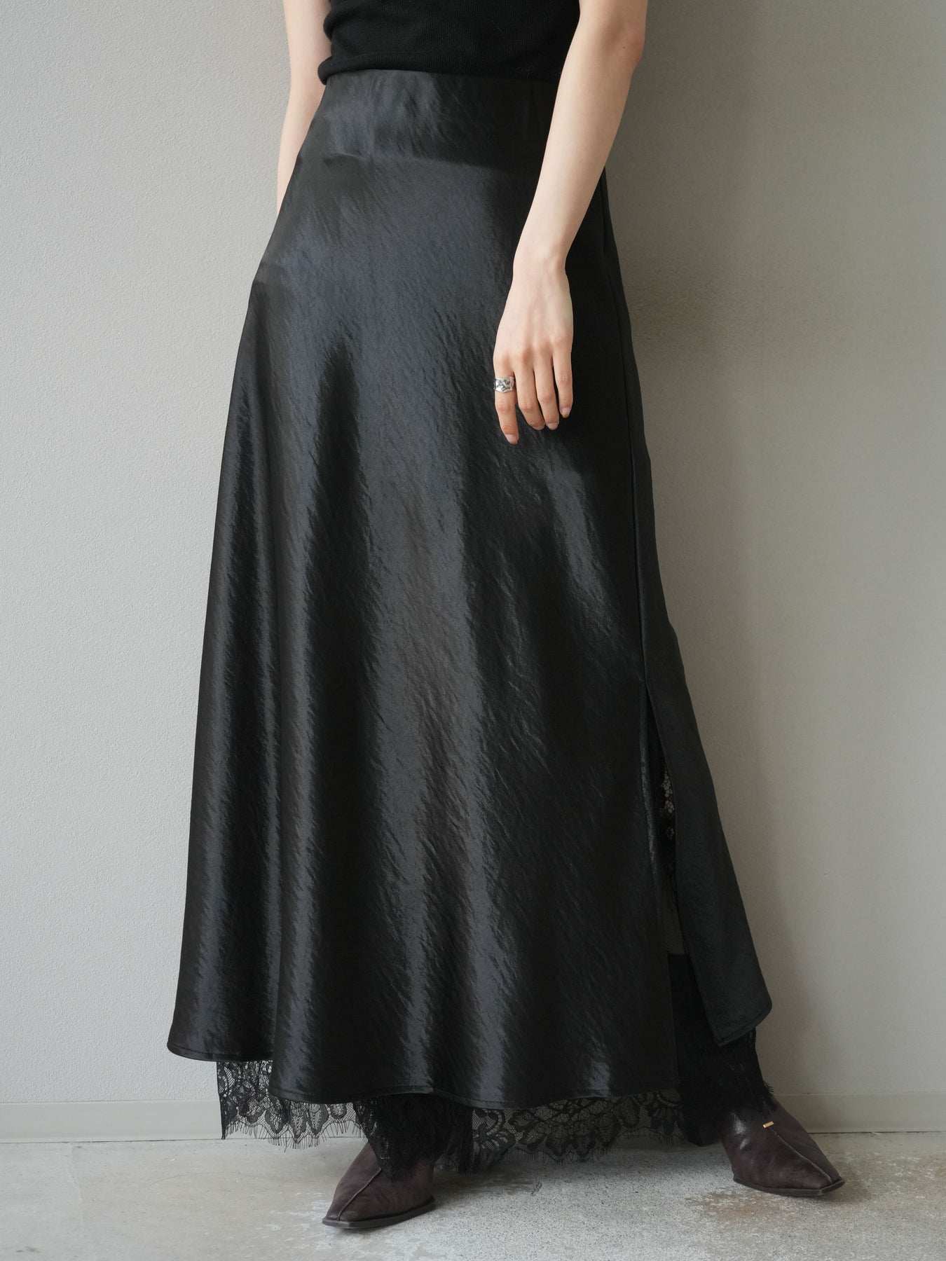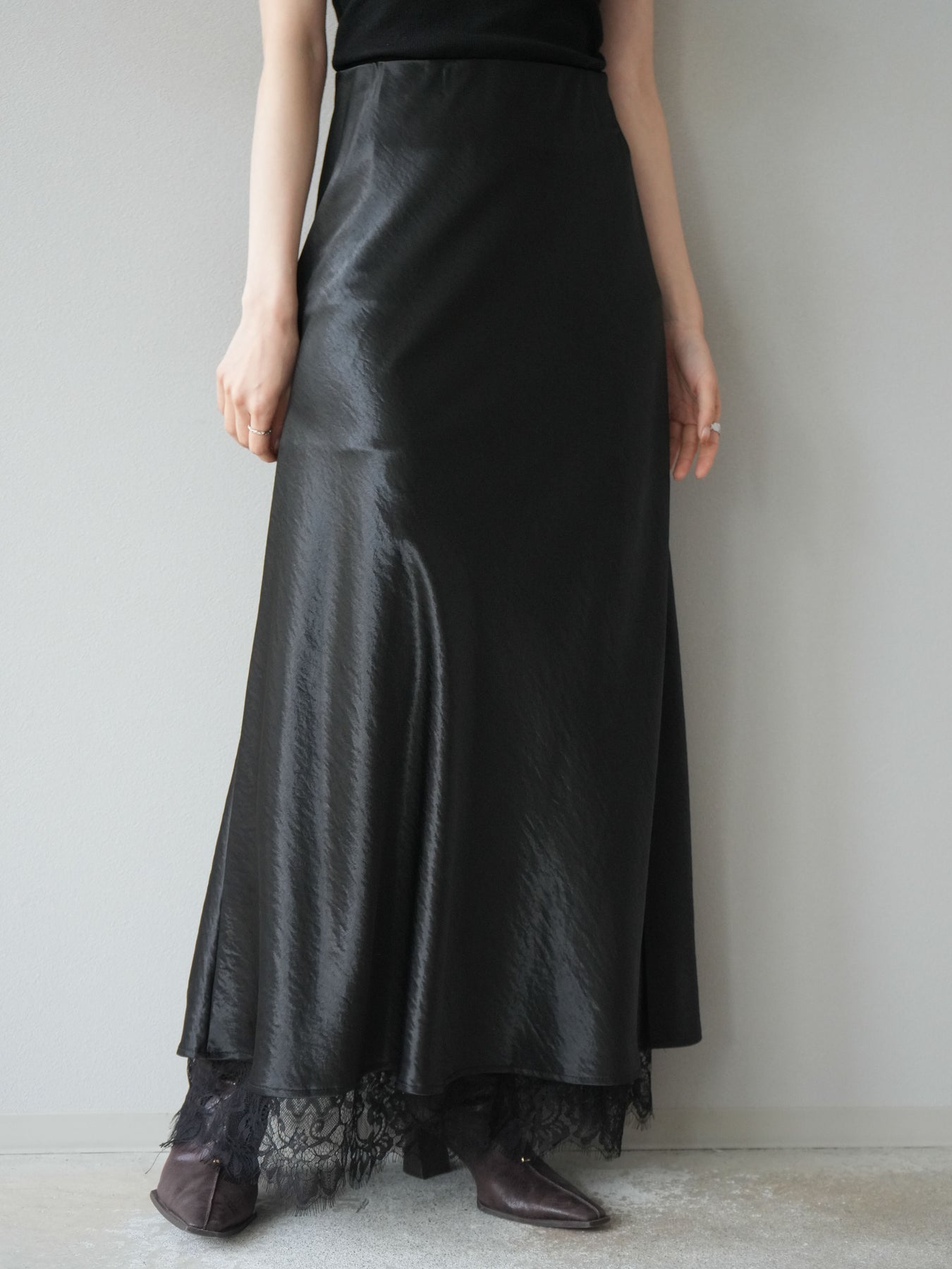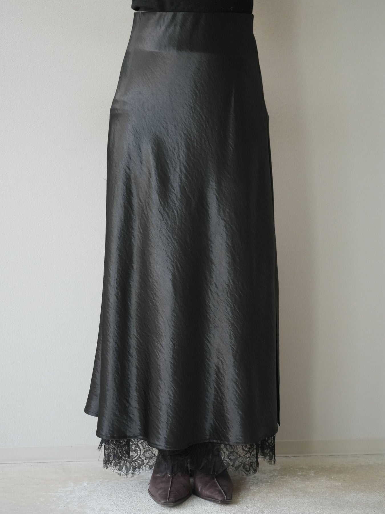 上品な光沢感のあるサテン素材に、裾のレースをあしらったナロースカート。動くたびに揺れるレースが女性らしさを引き立て、エレガントな印象を演出します。程よく身体に沿うシルエットが美しいラインを描き、スタイルアップ効果も◎。シンプルなトップスを合わせるだけで上品にまとまり、カジュアルにもきれいめにも着回せる万能アイテムです。