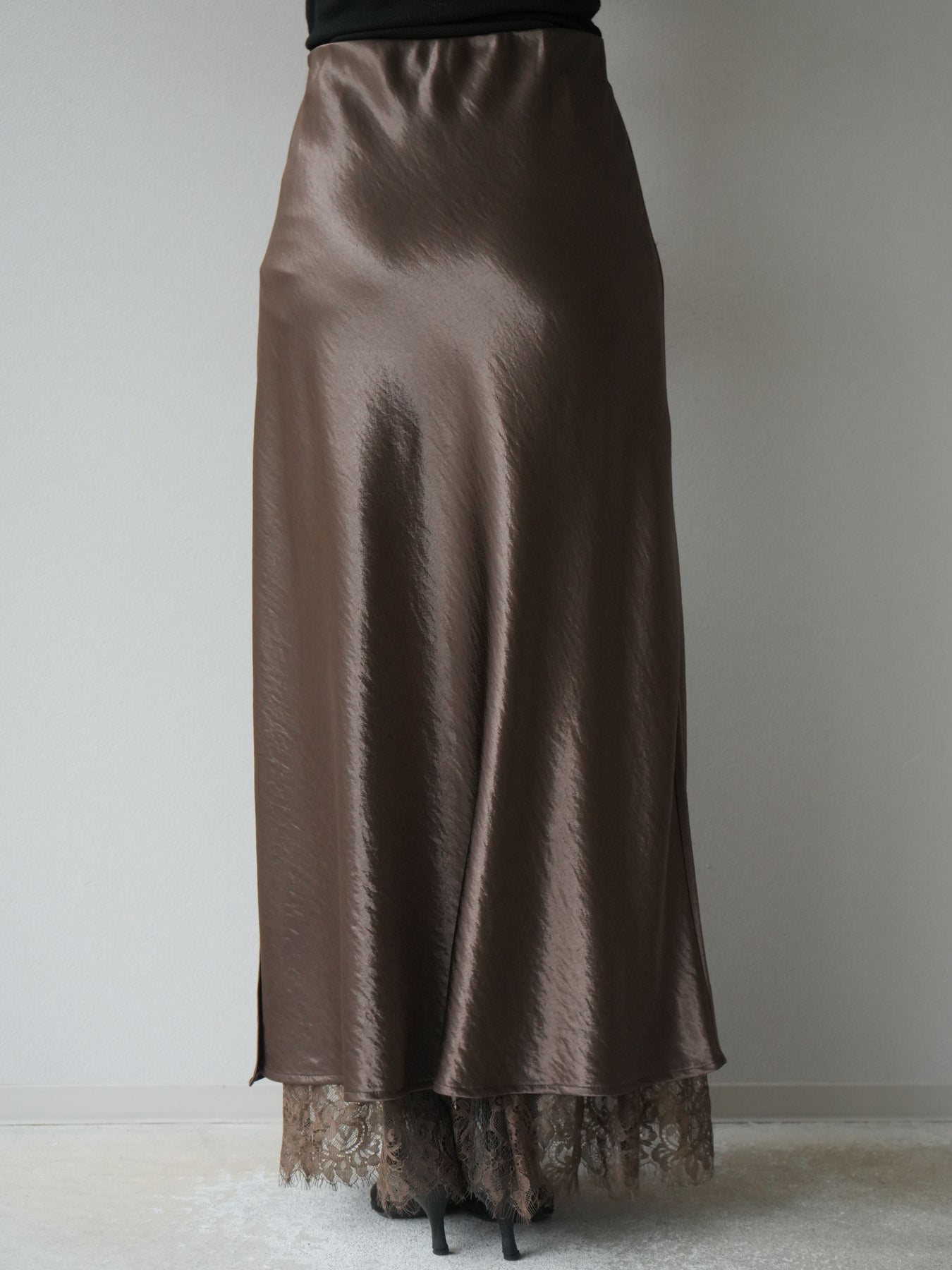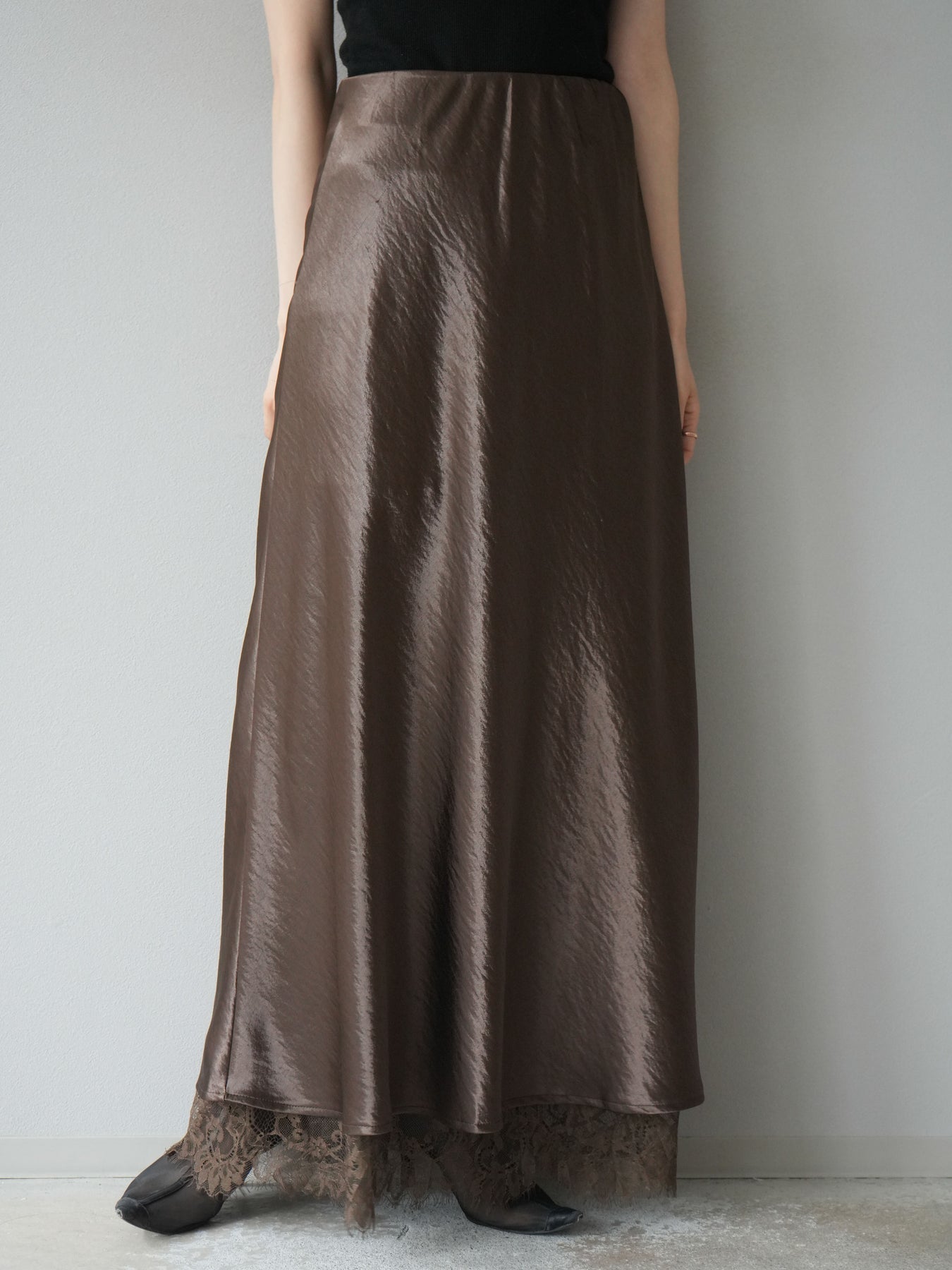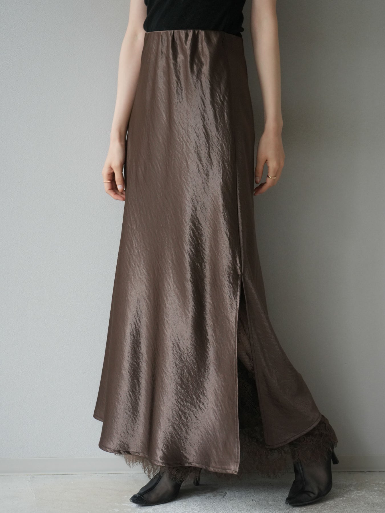 上品な光沢感のあるサテン素材に、裾のレースをあしらったナロースカート。動くたびに揺れるレースが女性らしさを引き立て、エレガントな印象を演出します。程よく身体に沿うシルエットが美しいラインを描き、スタイルアップ効果も◎。シンプルなトップスを合わせるだけで上品にまとまり、カジュアルにもきれいめにも着回せる万能アイテムです。