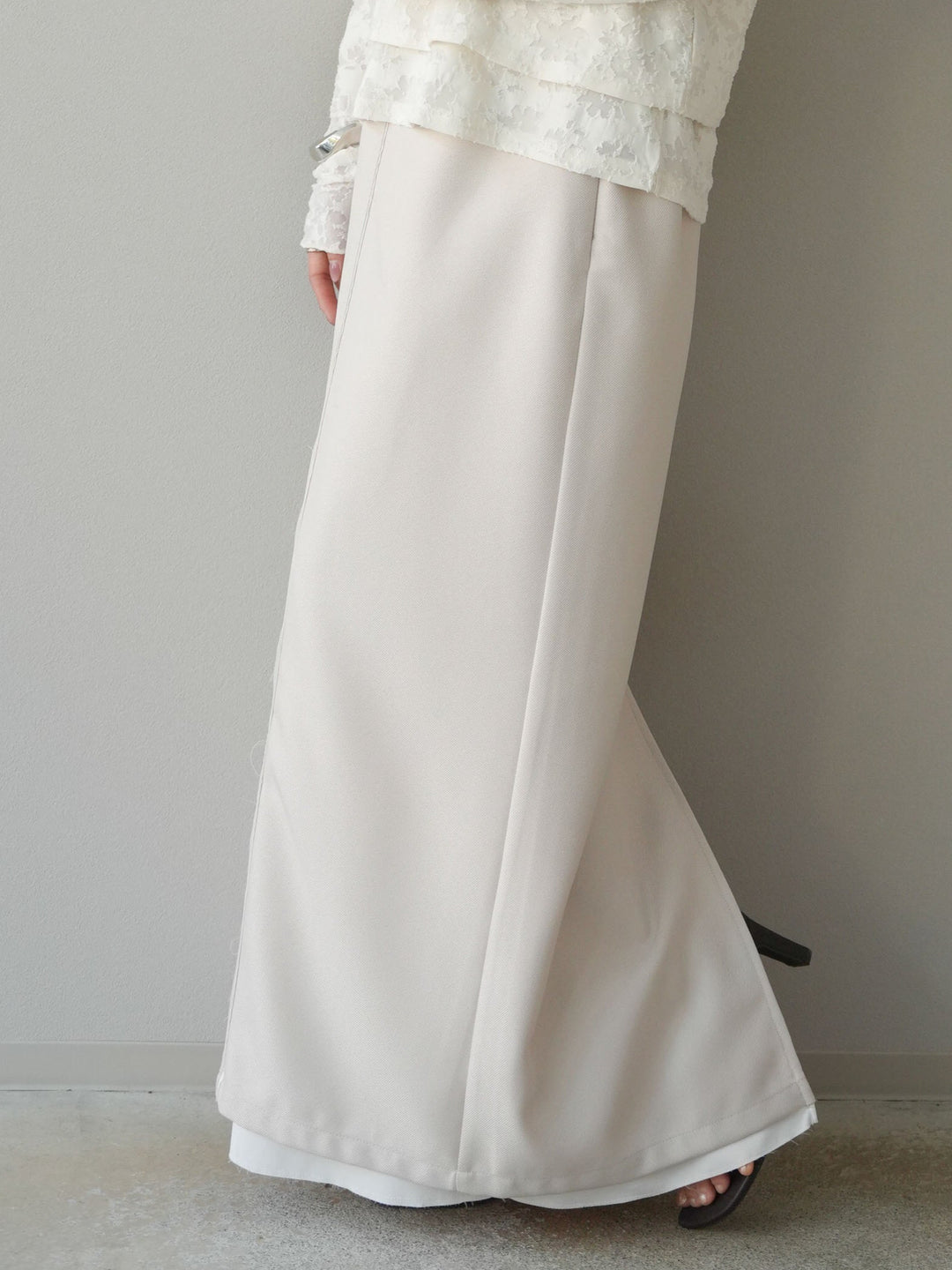 【預購】外袋疊層設計半身裙/米色